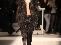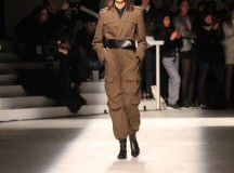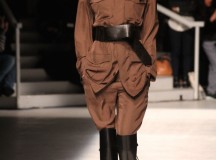 AF VANDERVORST nous a proposé une collection automne hiver 2014-2015 mêlant inspiration de la rue et inspiration militaire. Une collection aux silhouettes précises, fluides, aux couleurs beiges, noires et kakis. Les têtes sont couvertes de casquettes rappelant un côté sportif.