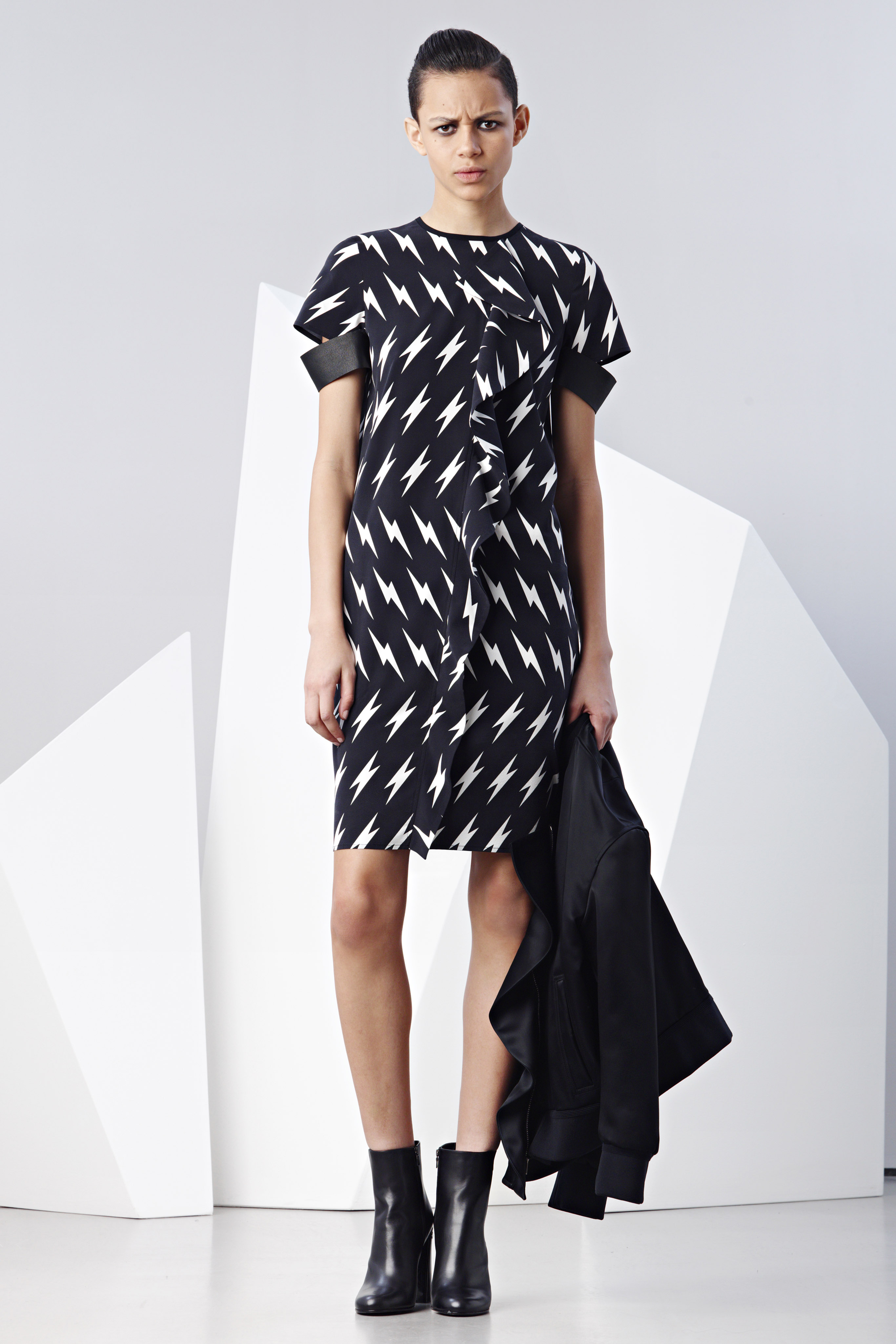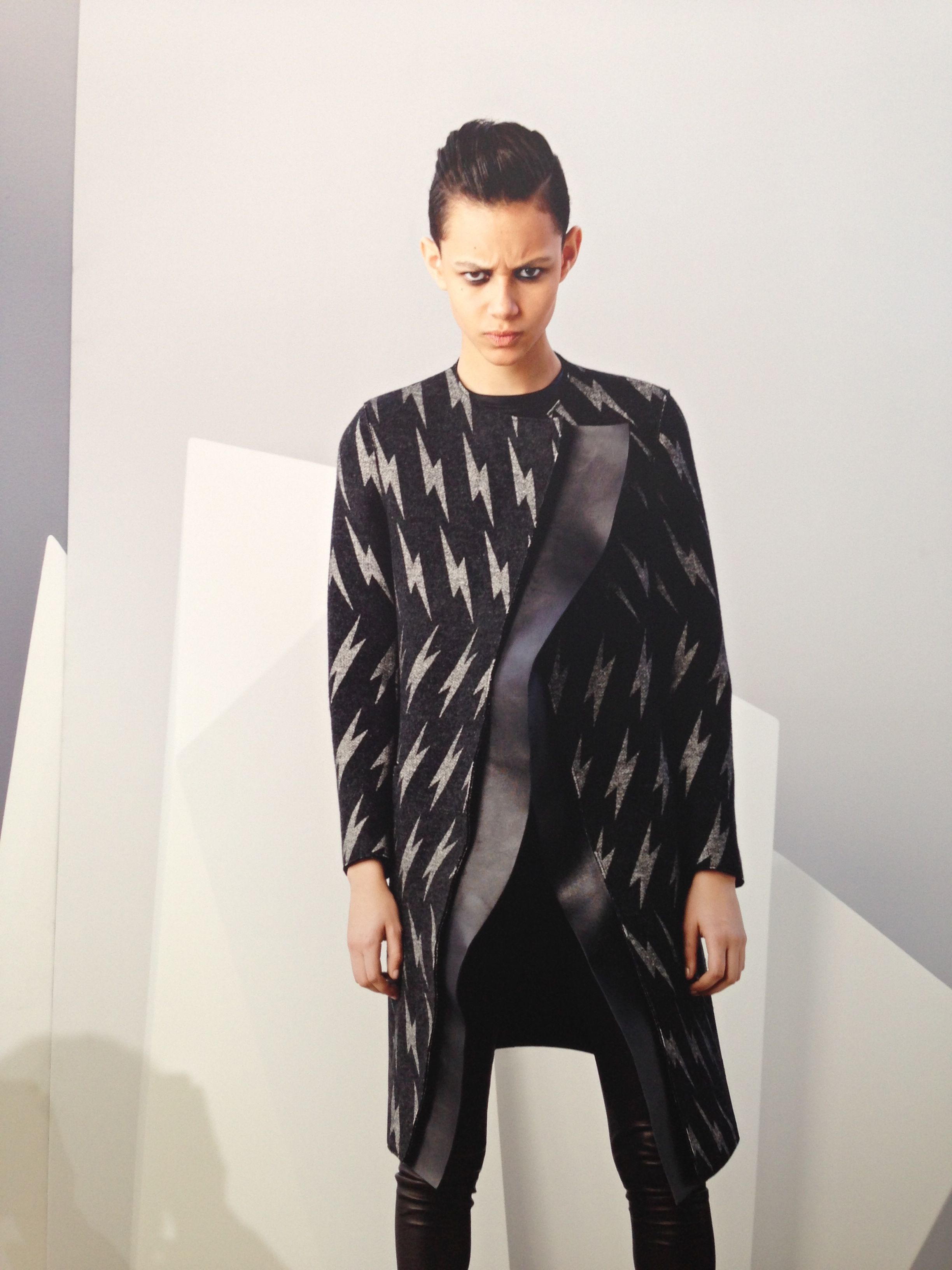 Neil Barrett présentait sa collection automne hiver 2014 2015, une collection qui équilibre le masculin et féminin. Neil Barrett crée une collection sculpturale, fluide, aux tendances streetwear qui se mélangent avec des tenues plus formelles.