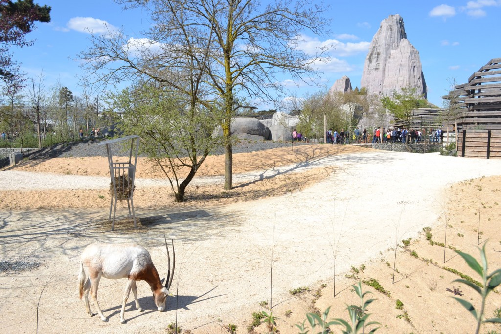 On pénètre dans ce vaste lieu avec en point de mire, le fameux rocher qui constitue vraiment l’identité visuelle du Zoo. Le lieu est organisé en zones géographiques. Le Zoo est très esthétique. Beaucoup de bois dans les allées. De vastes baies vitrées, parsèment le parc pour pouvoir voir les animaux dans les meilleures conditions.