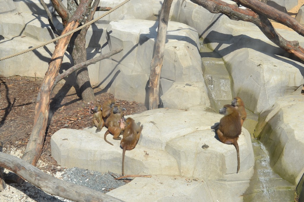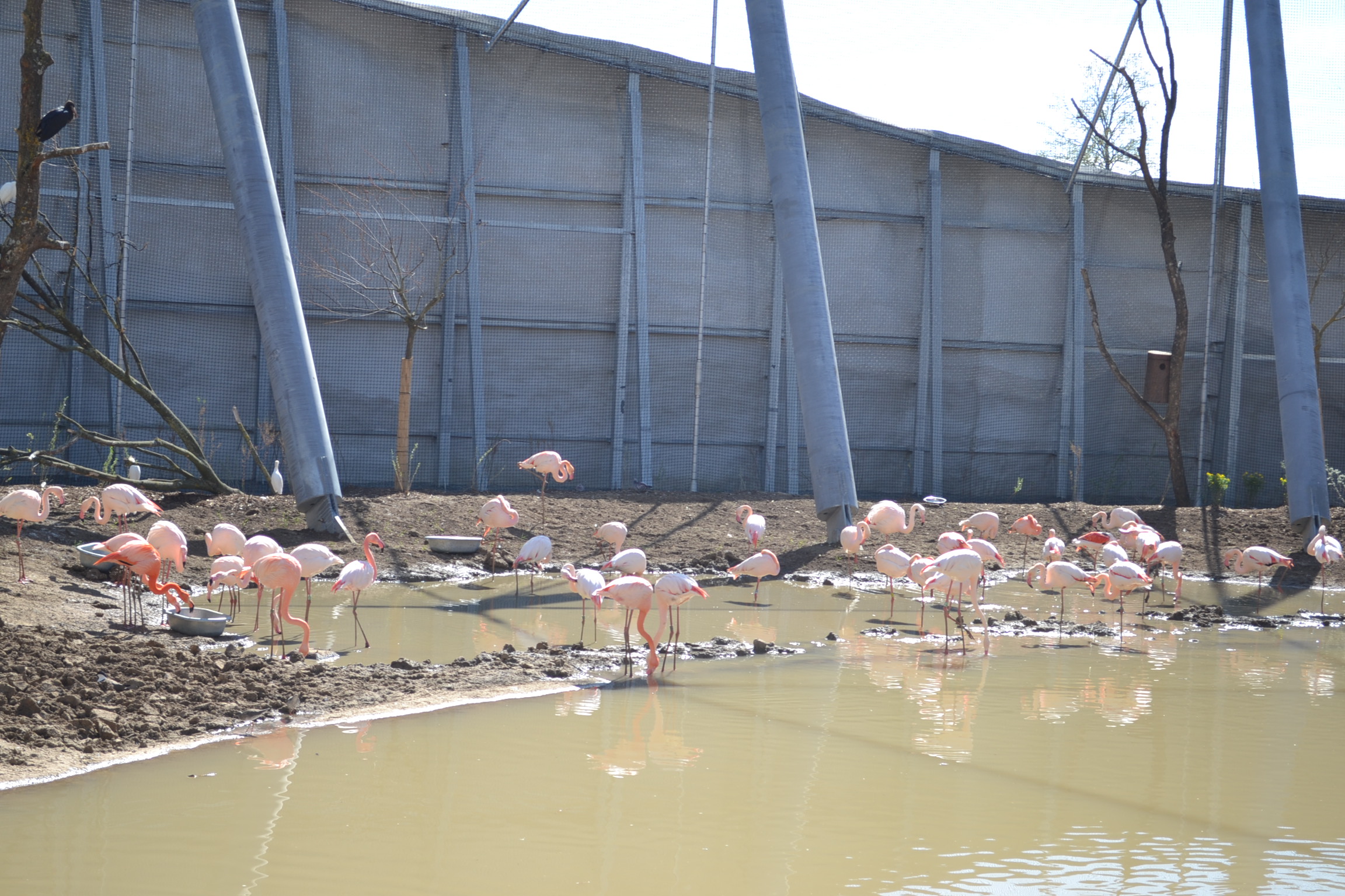 Lors de mon passage, le lion dort et frustre des centaines de visiteurs. Je passe voir un groupe de girafes. Dans la volière, je peux voir de près une centaine de flamants roses. Étonnant ! Les Babouins de Guinée se chamaillent et amusent les enfants. Après deux heures, j’en ai eu plein les yeux.