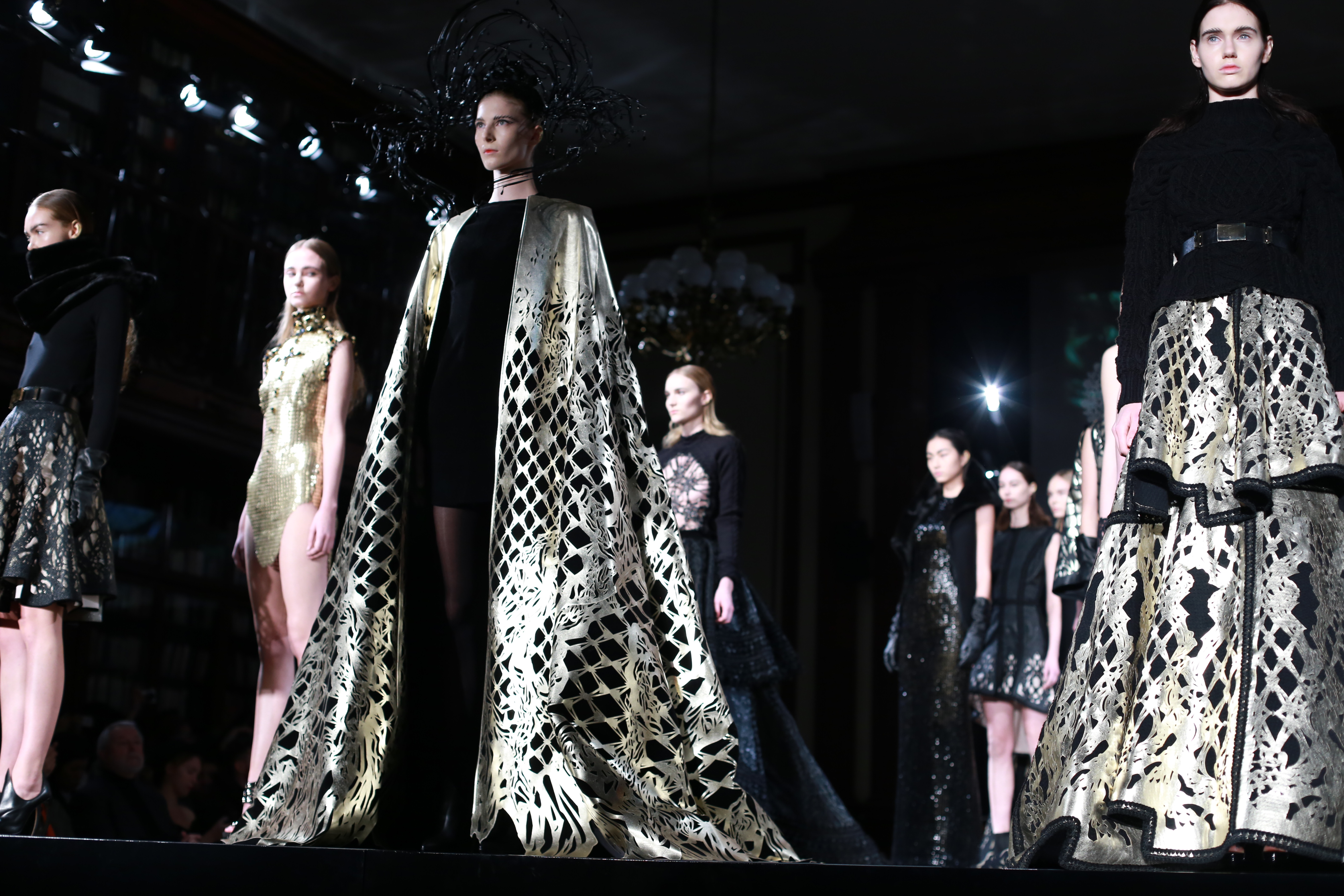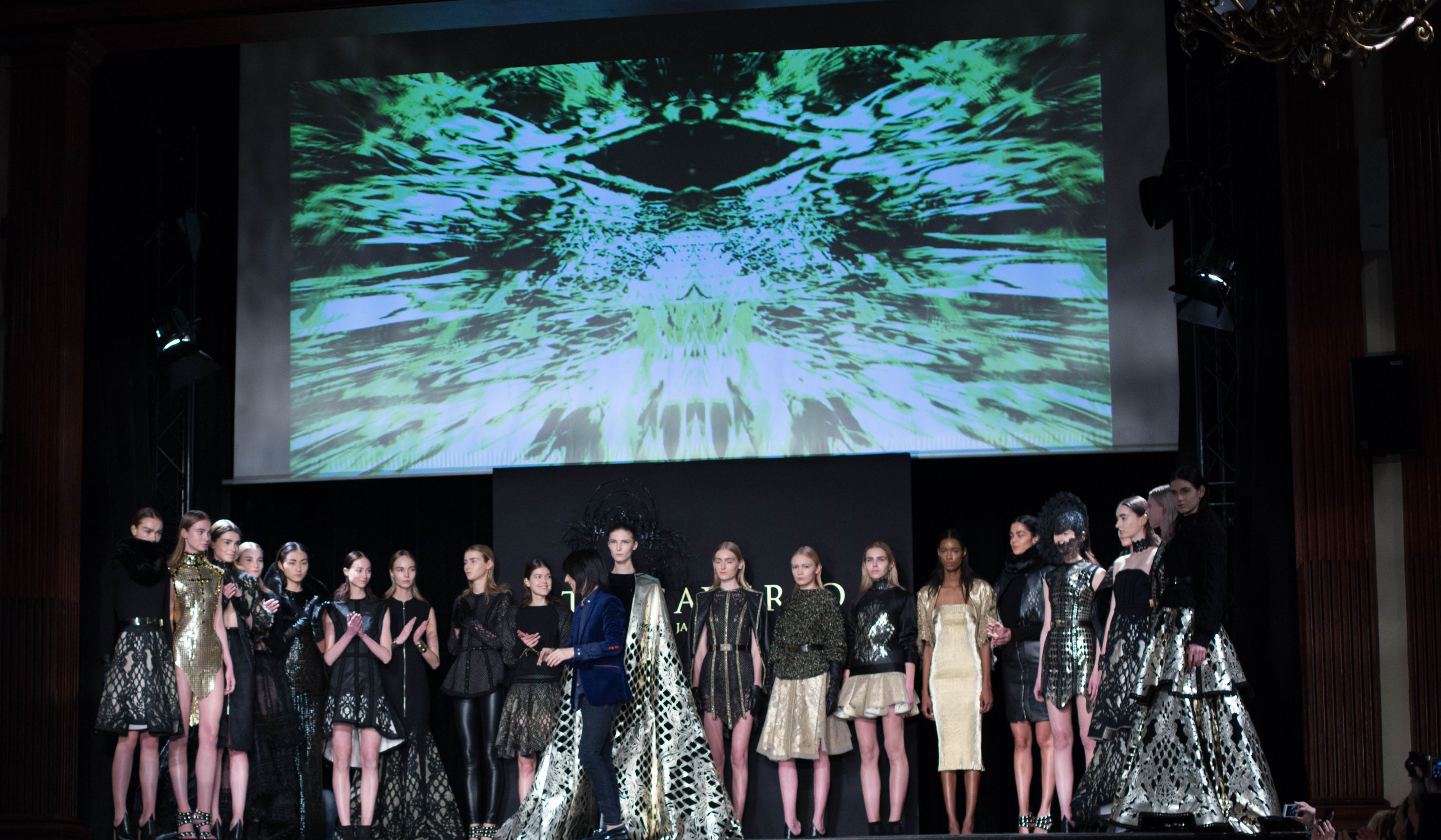 Sa collection de prêt à porter s’inspire de sa collection couture Exoskeleton. Il s’agit donc d’une collection très habillée, métallique rappelant les couleurs d’insectes merveilleux comme le scarabée.