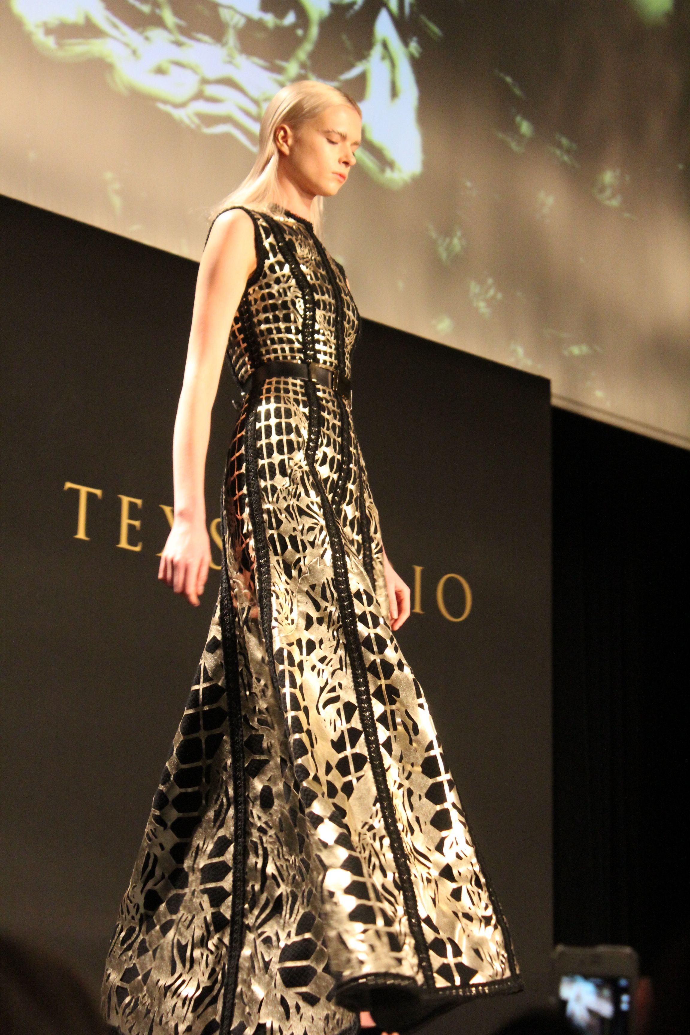 Les silhouettes sont composées de de longue robes aux motifs découpés au lasers, agrémentées de Swarovski, de bustiers.