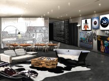 Du design du studio photo, en passant par le lounge jusqu’à la terrasse, tout a été imaginé en fonction de ses domaines de prédilection : le mélange des genres, le goût précis des jolies choses et une musicalité omniprésente.