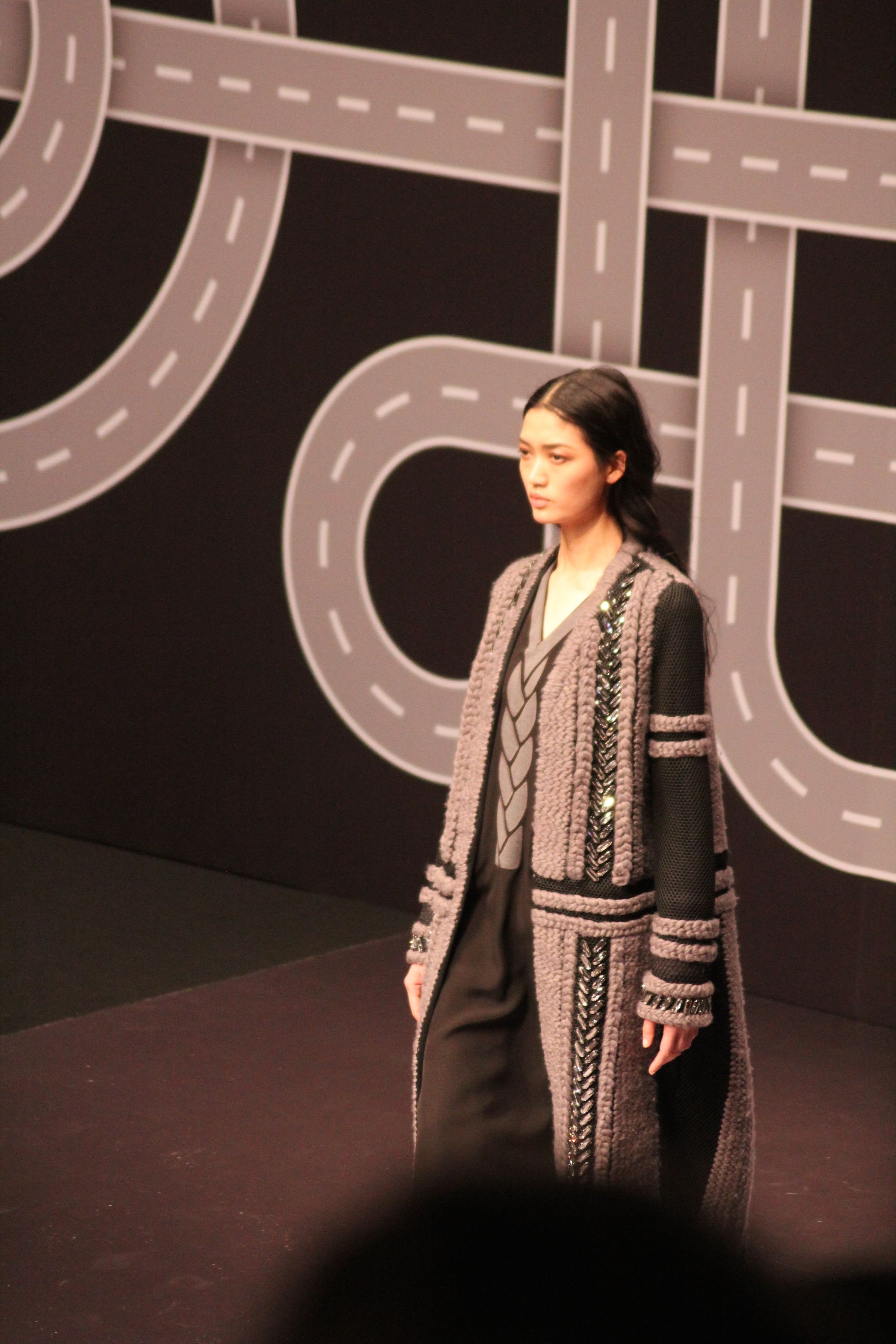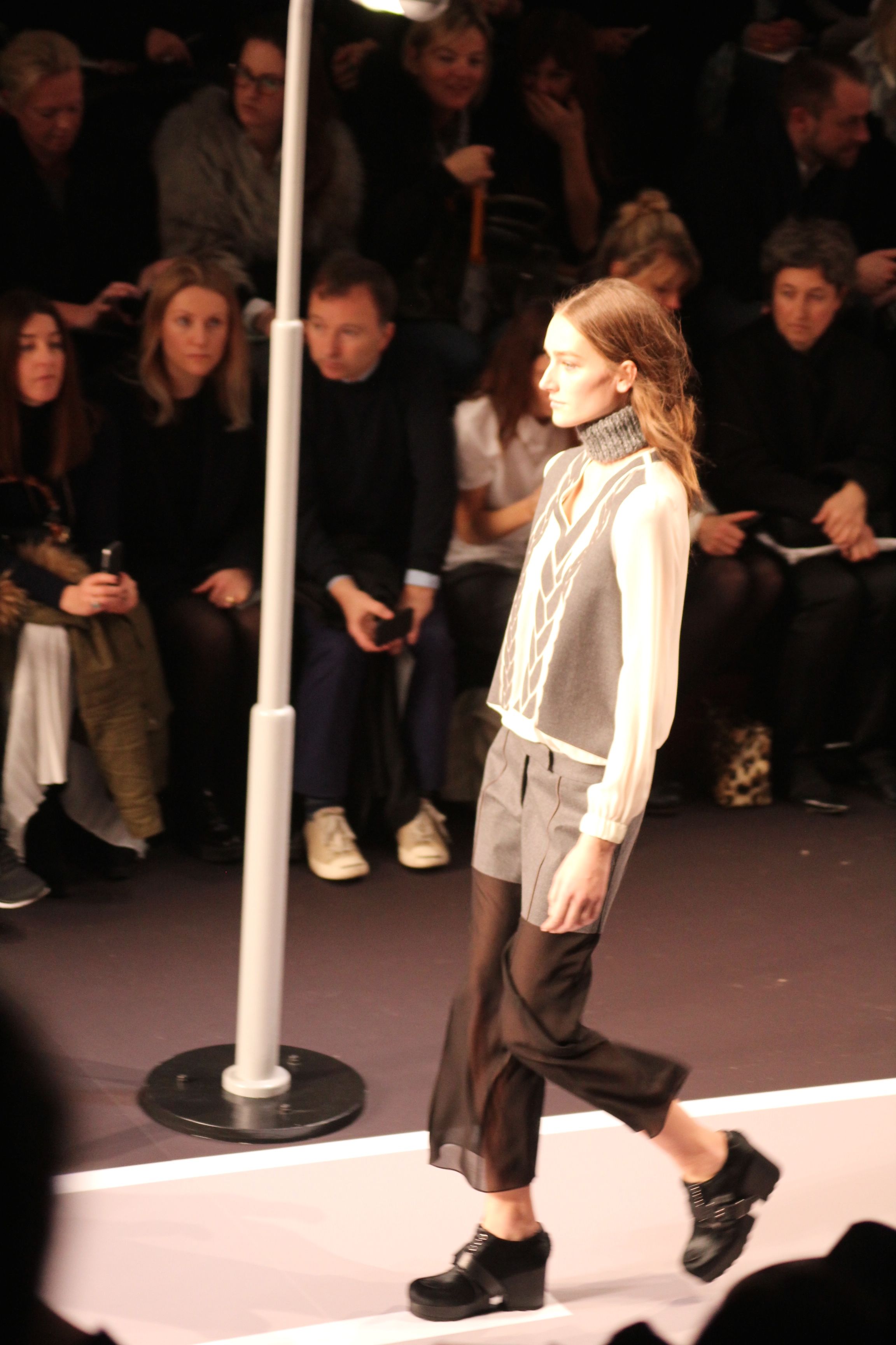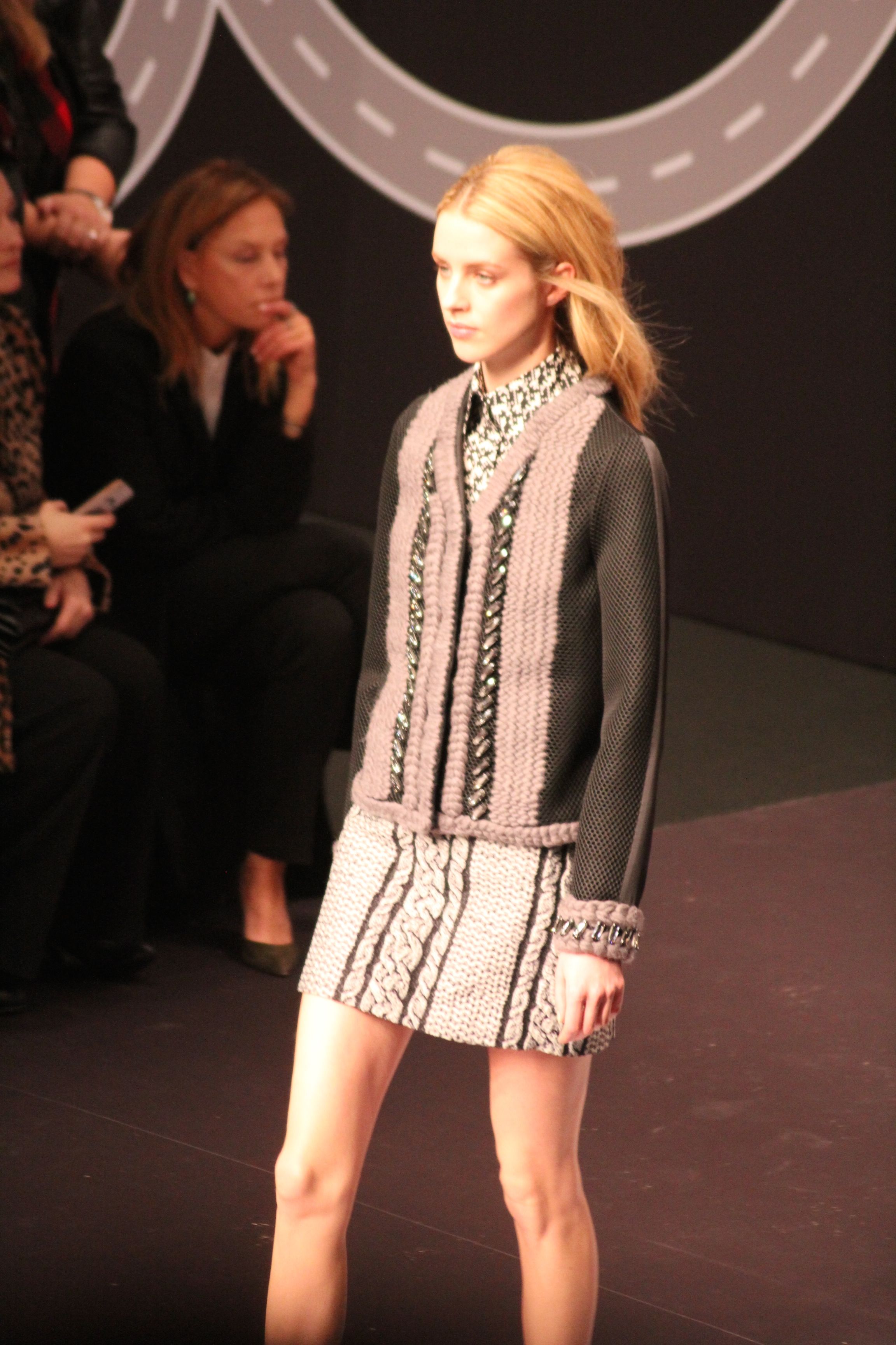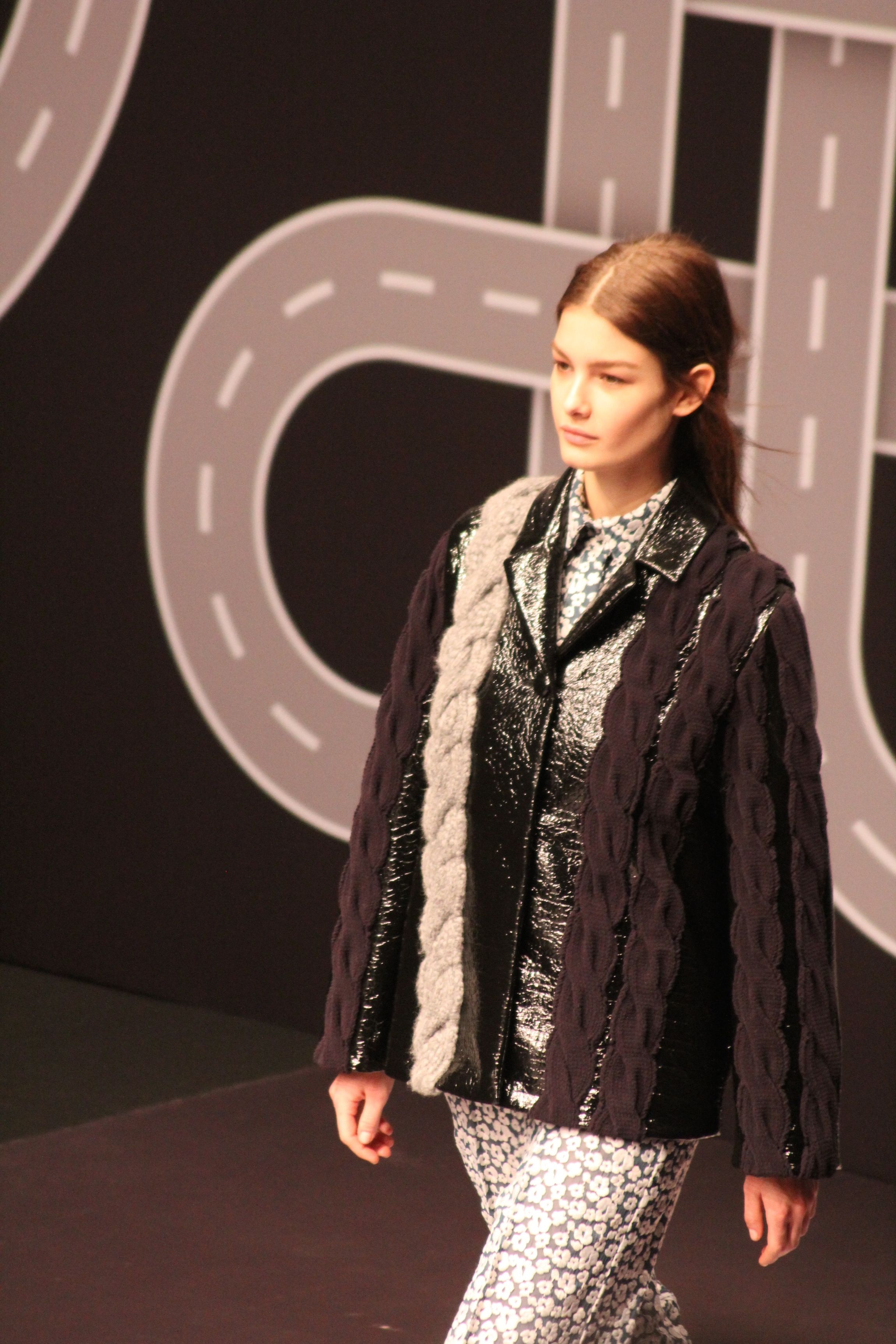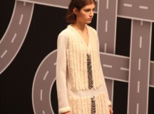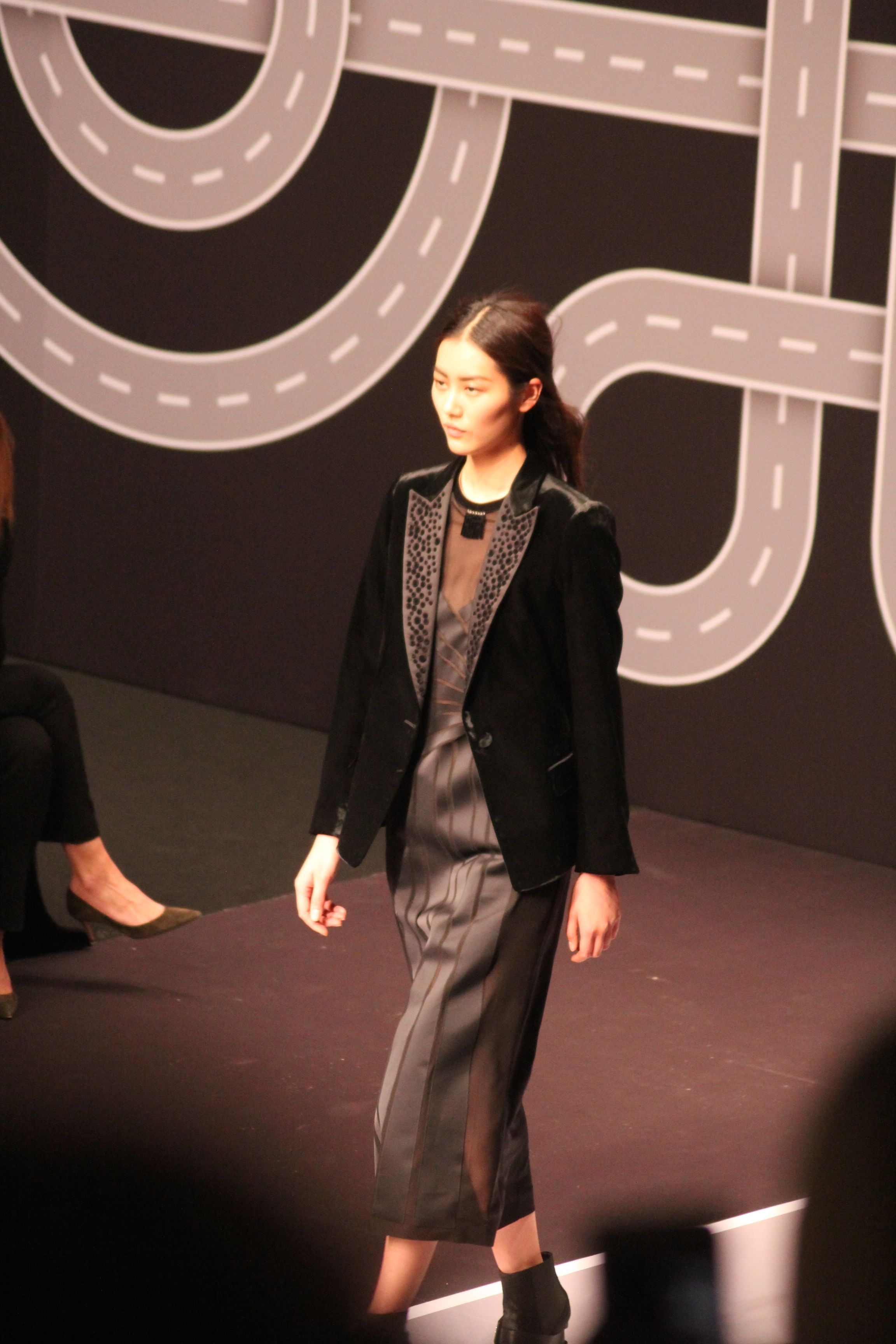 Le décor d’autoroute ainsi que les réverbères étaient là pour planter le décor. Joans As Police Woman jouait quand à elle la bande son de ce road trip. Le bitume inspire donc la mode, les gris omniprésents, le noir et le blanc.