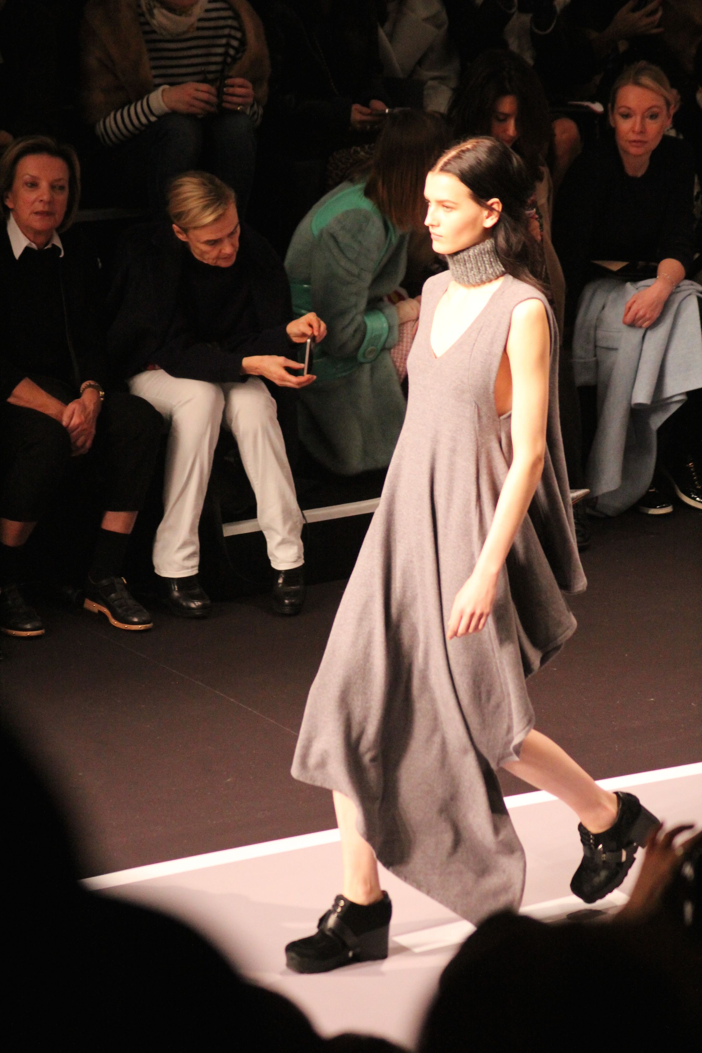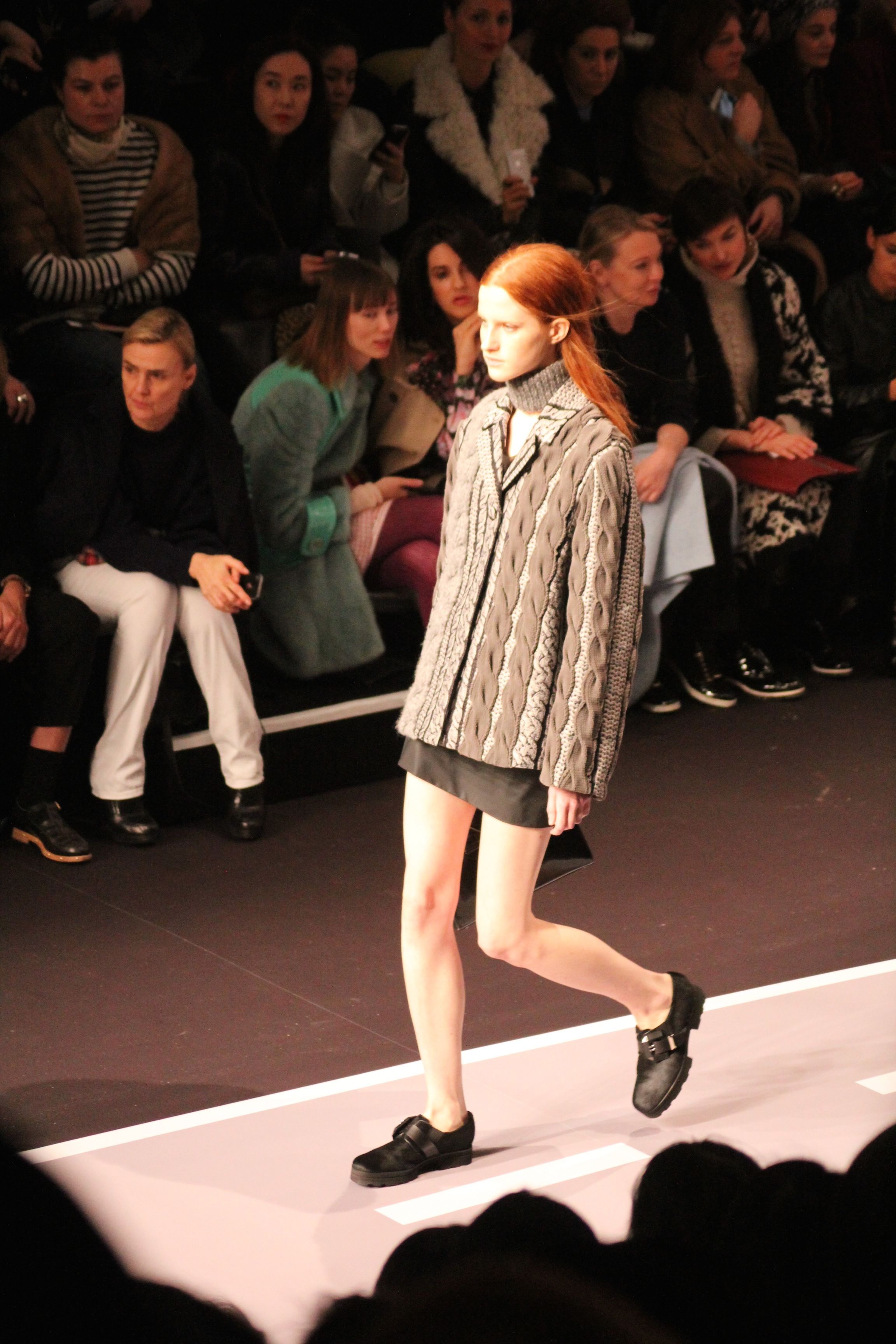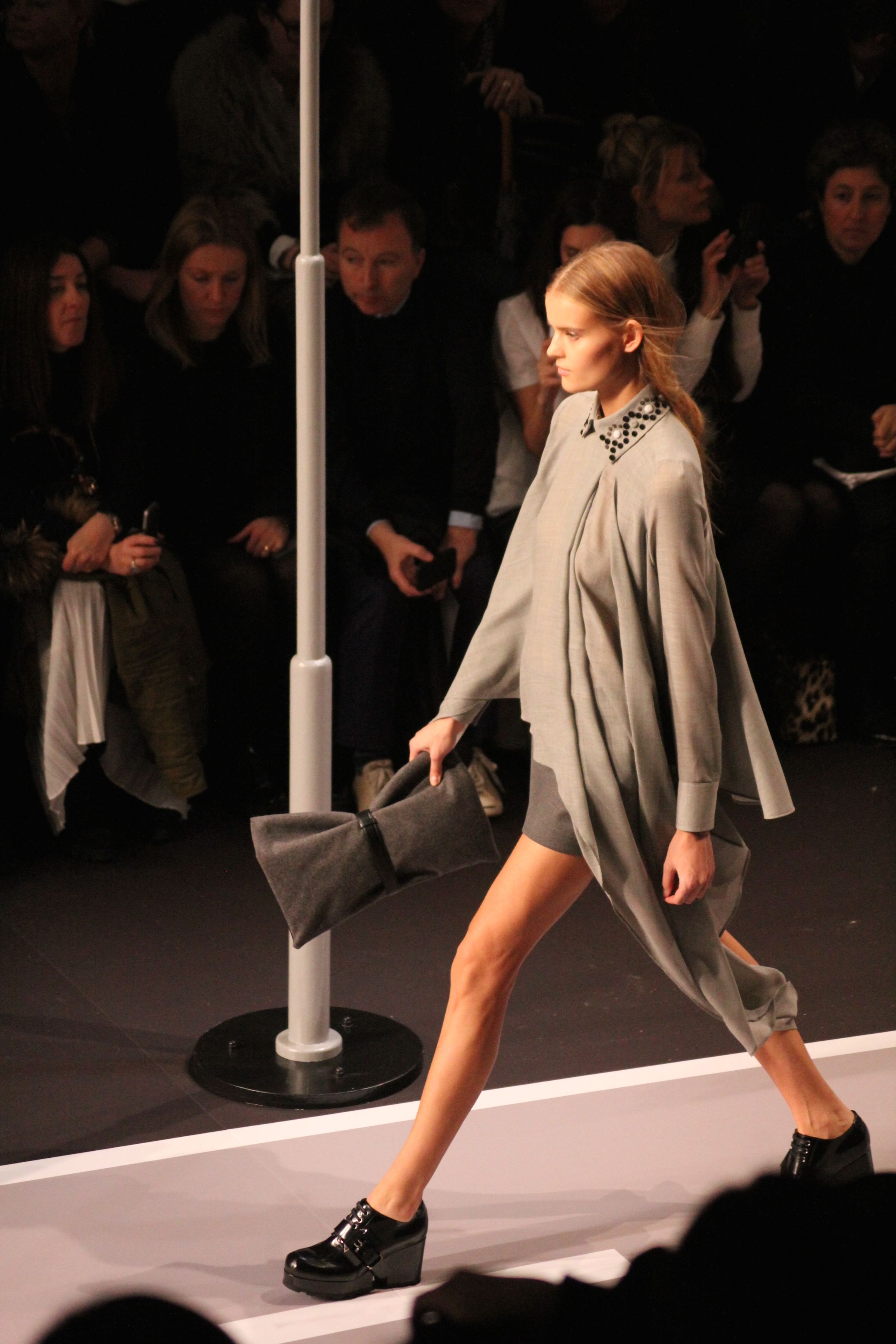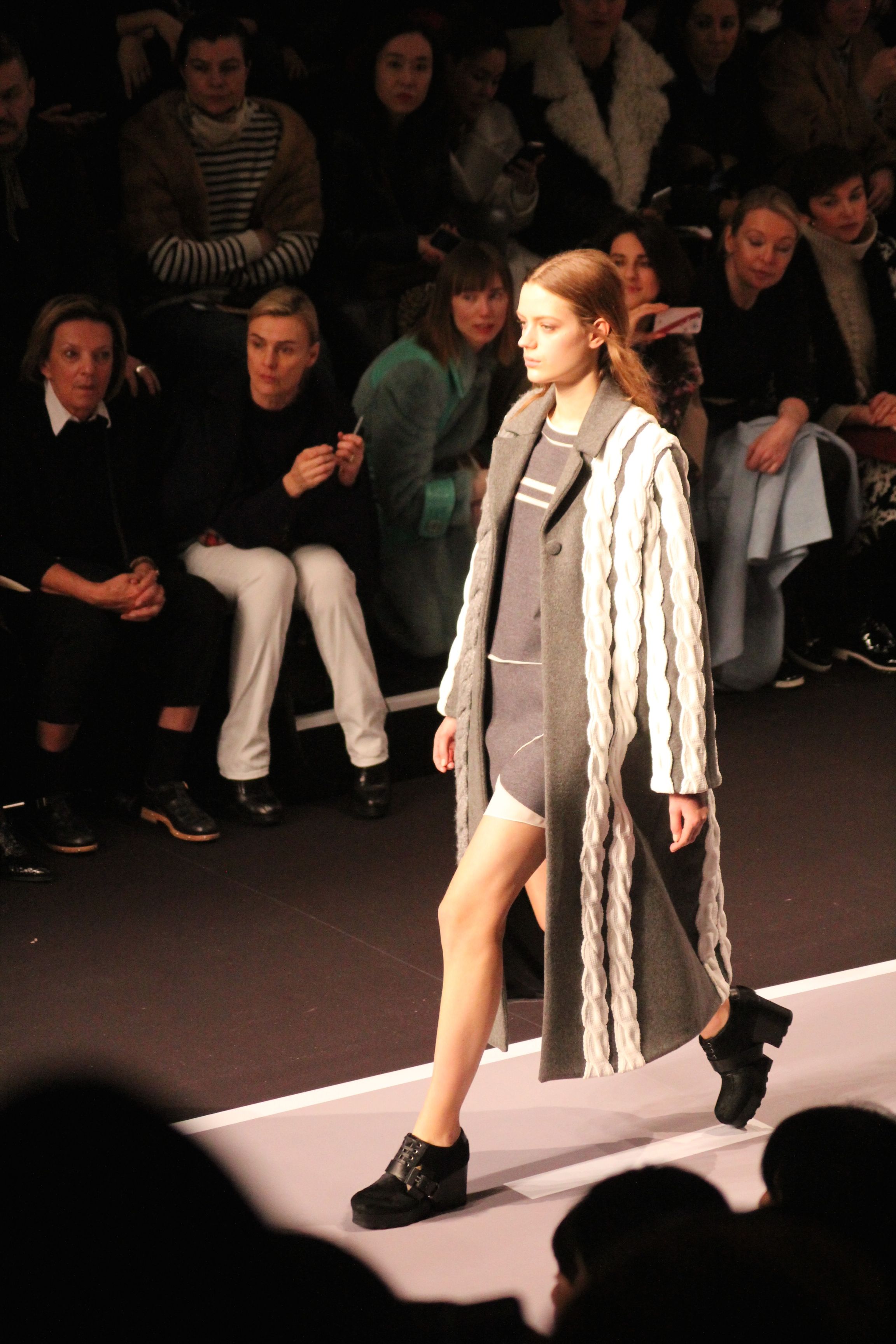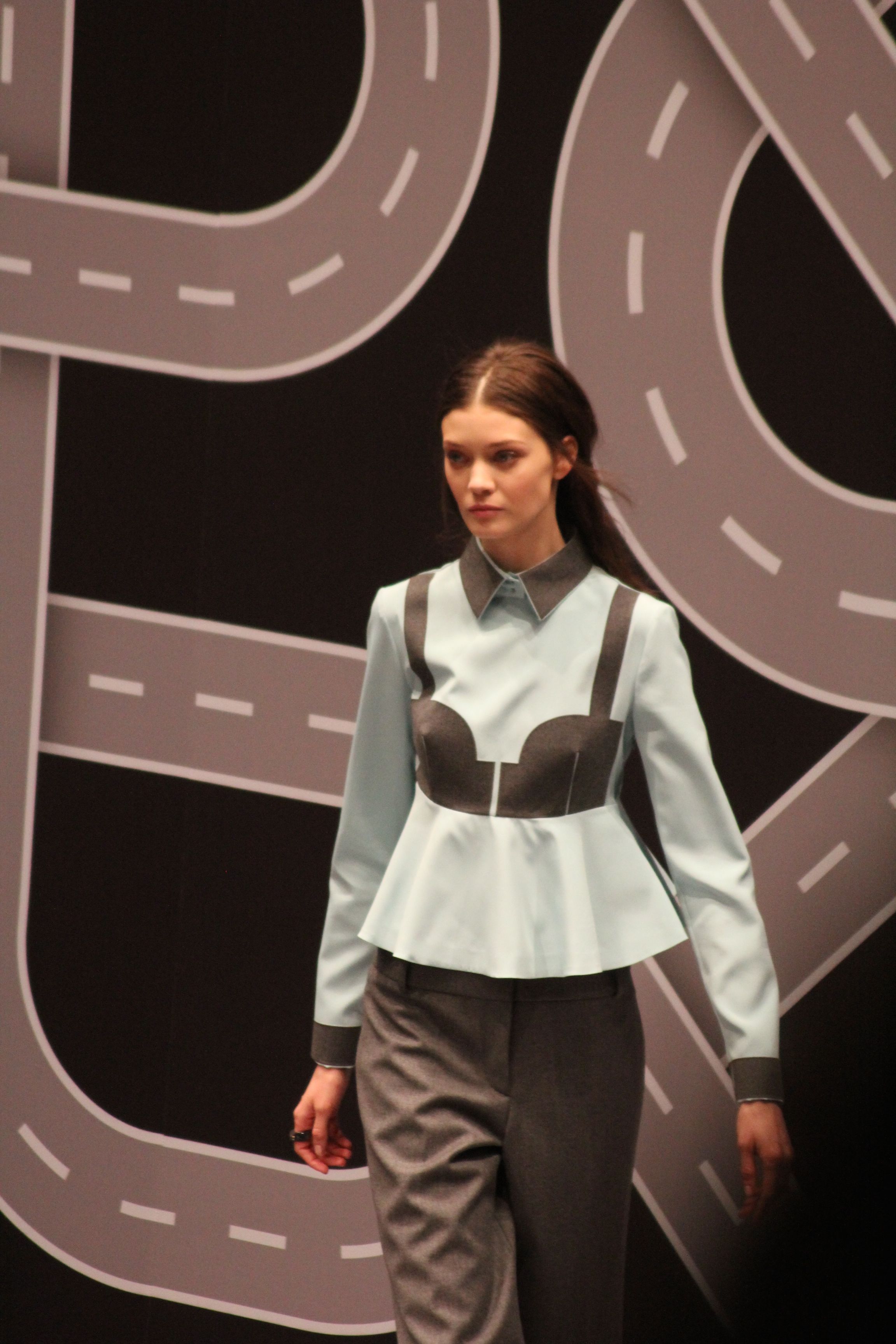Le décor d’autoroute ainsi que les réverbères étaient là pour planter le décor. Joans As Police Woman jouait quand à elle la bande son de ce road trip. Le bitume inspire donc la mode, les gris omniprésents, le noir et le blanc.