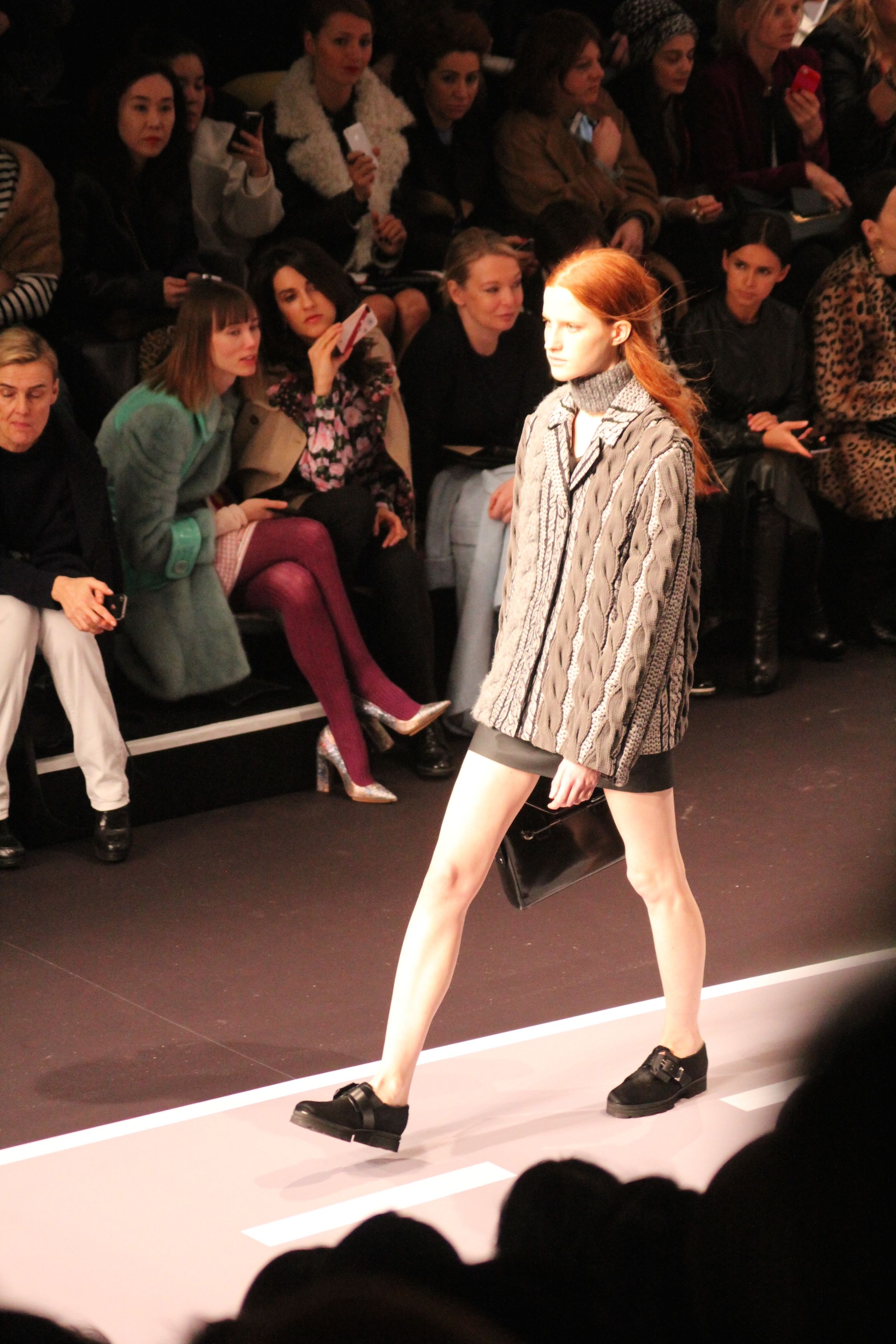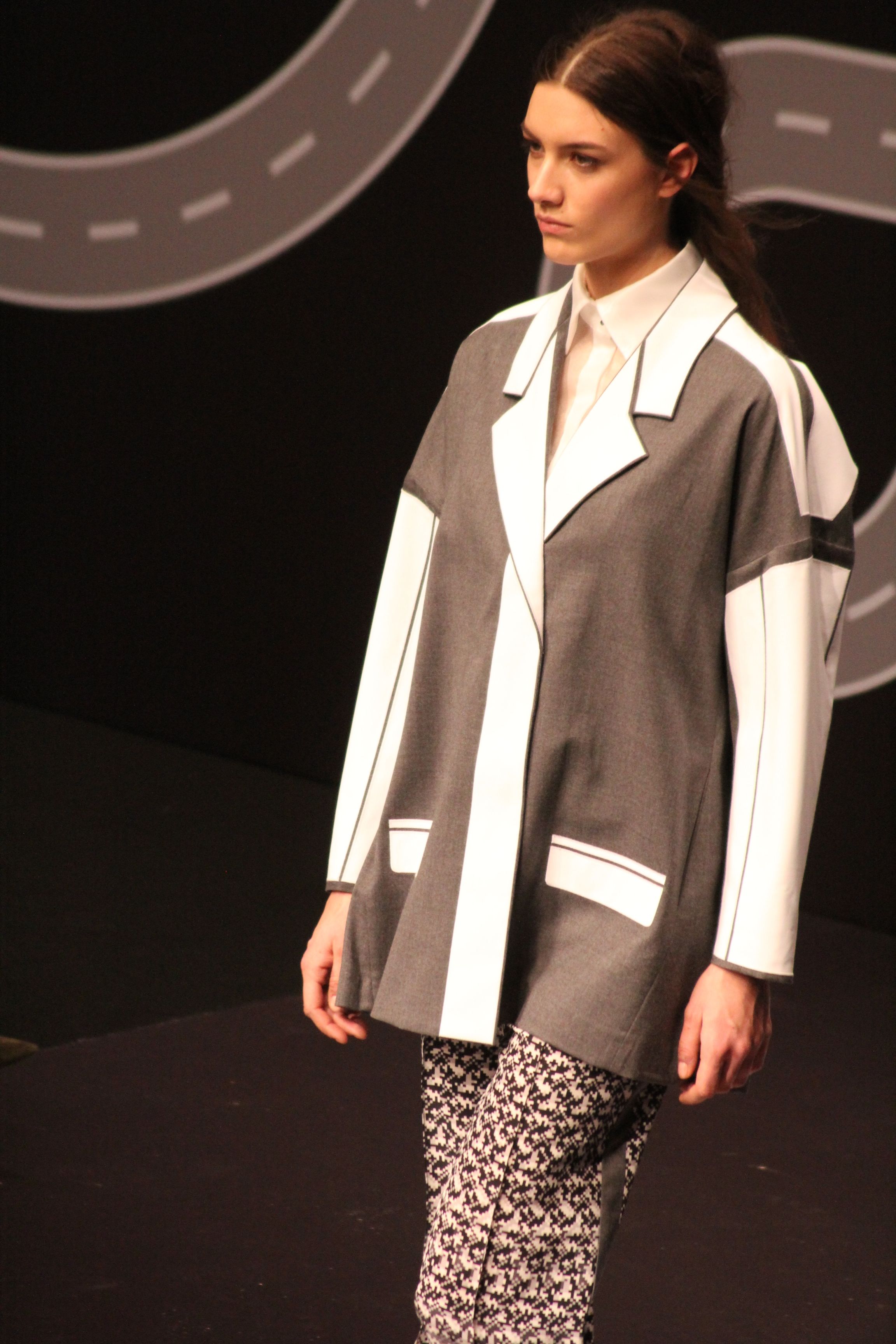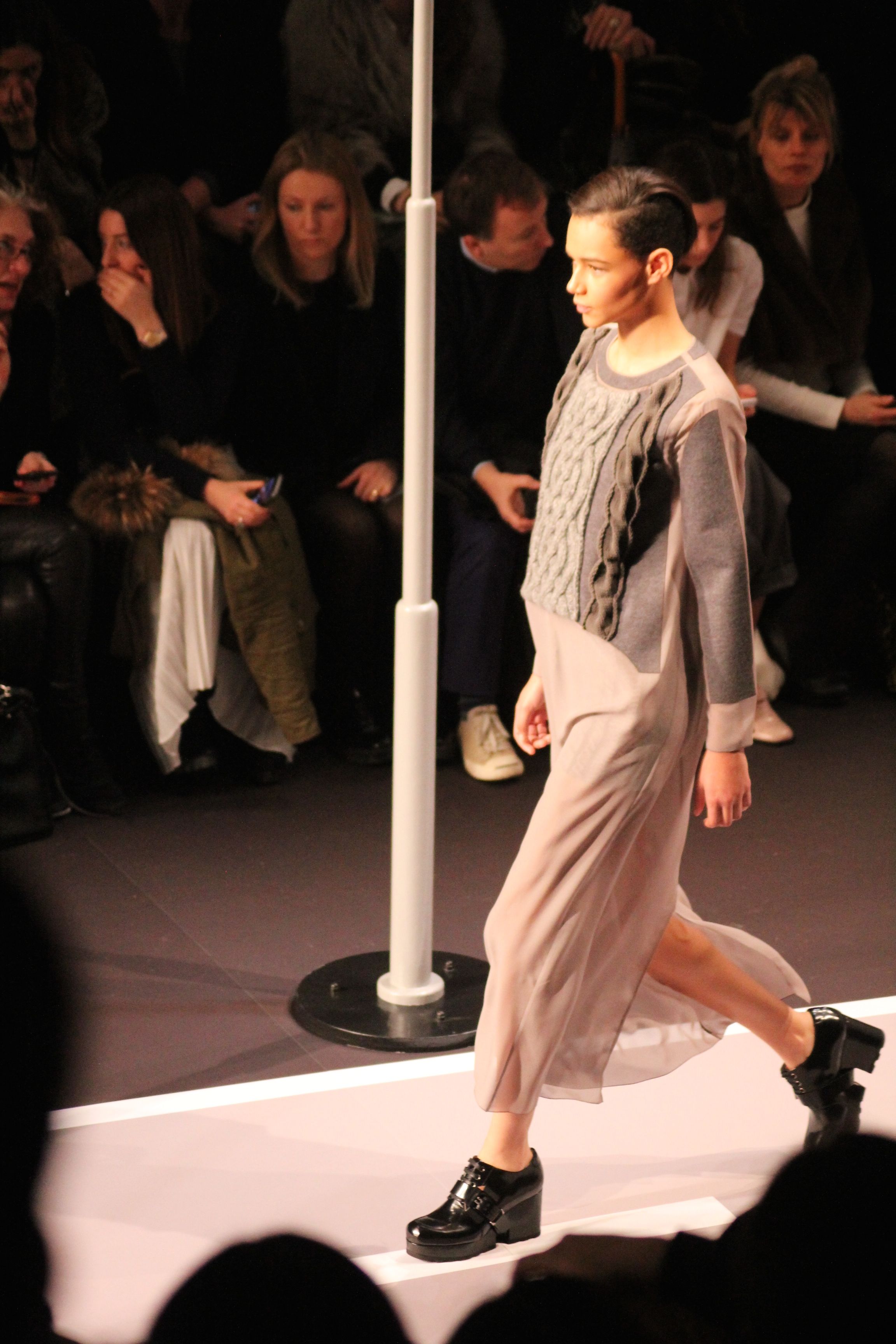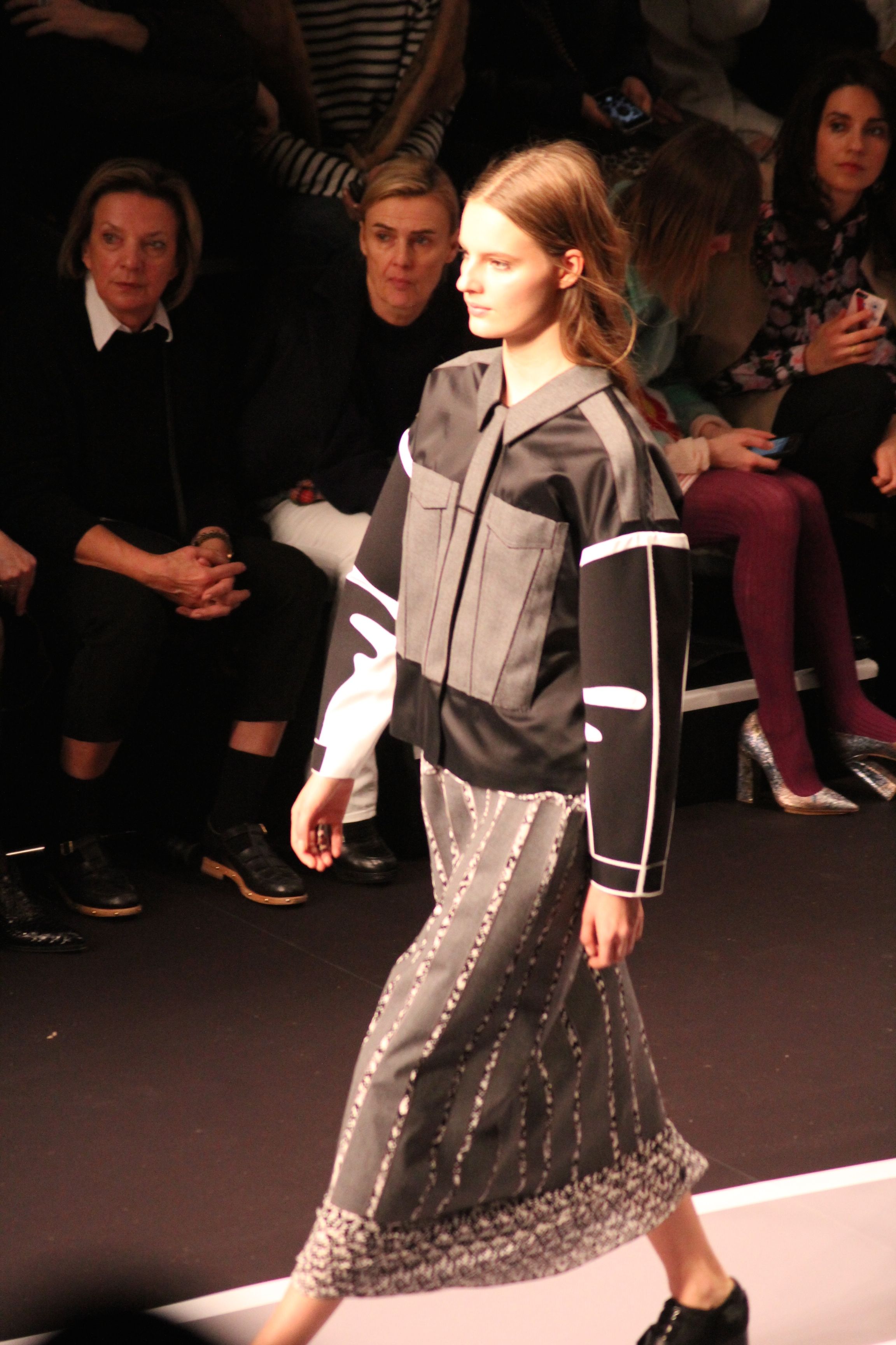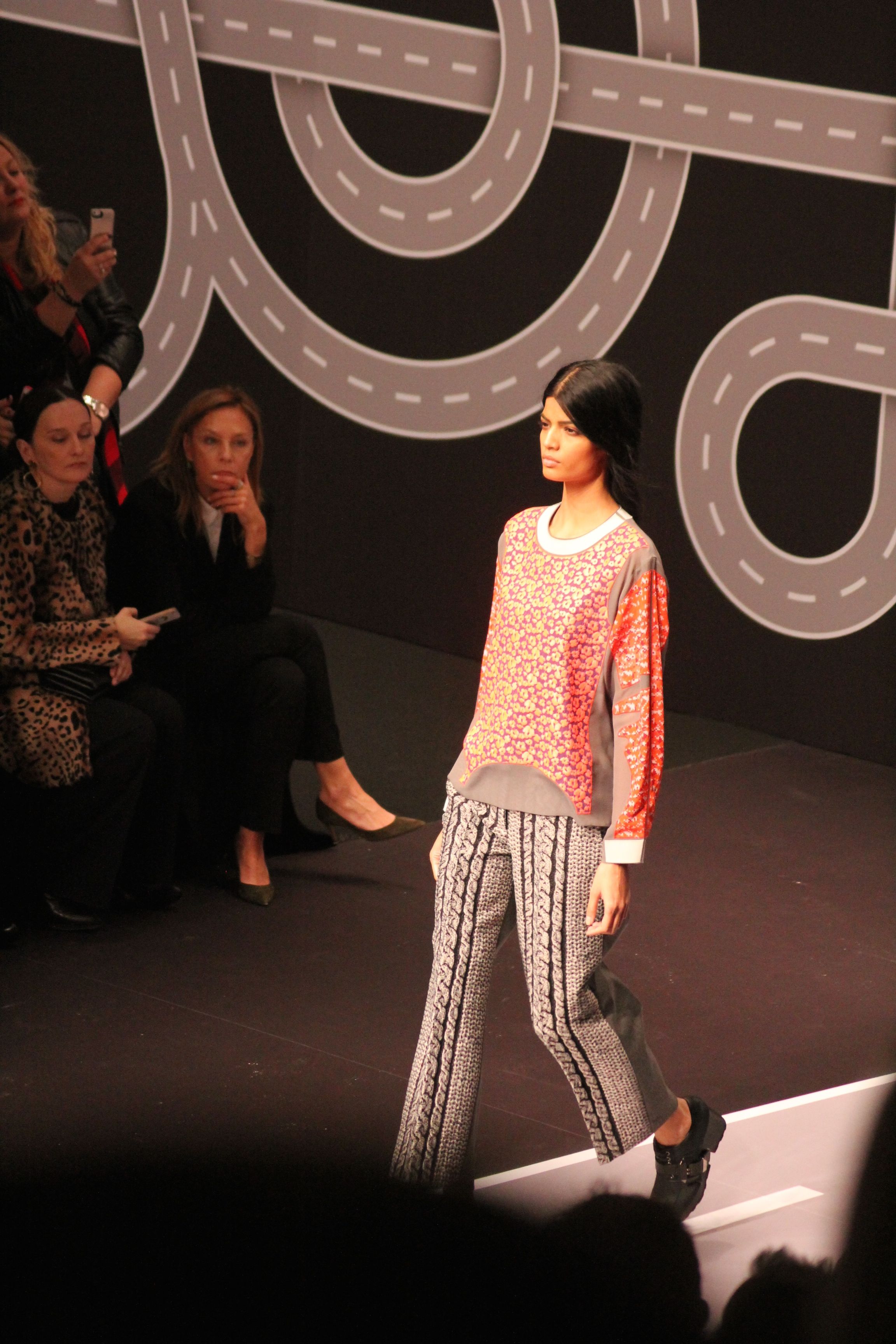 Le décor d’autoroute ainsi que les réverbères étaient là pour planter le décor. Joans As Police Woman jouait quand à elle la bande son de ce road trip. Le bitume inspire donc la mode, les gris omniprésents, le noir et le blanc.