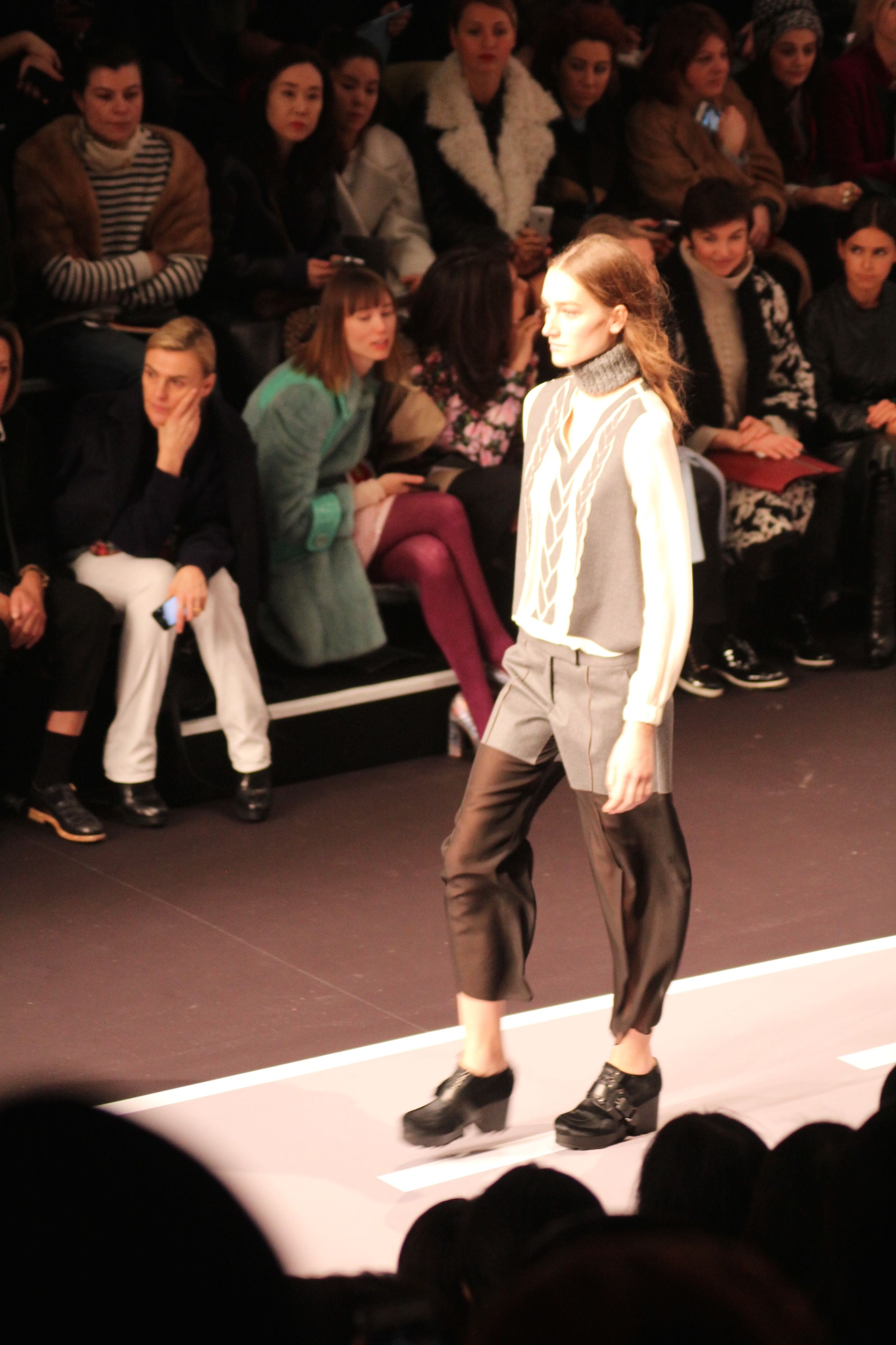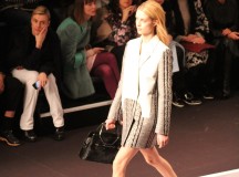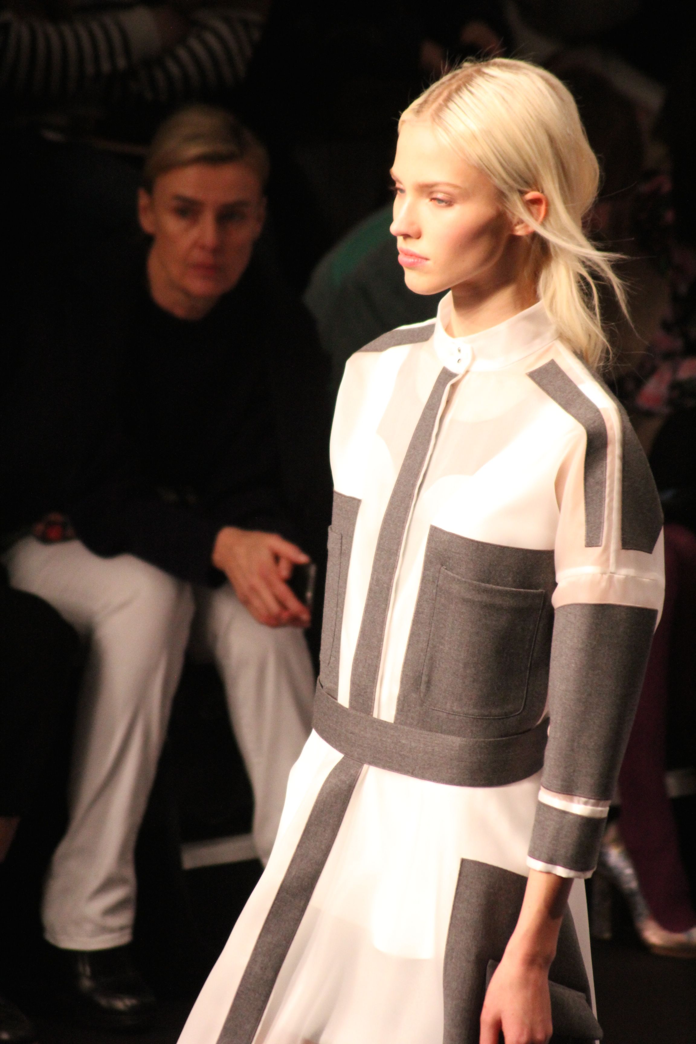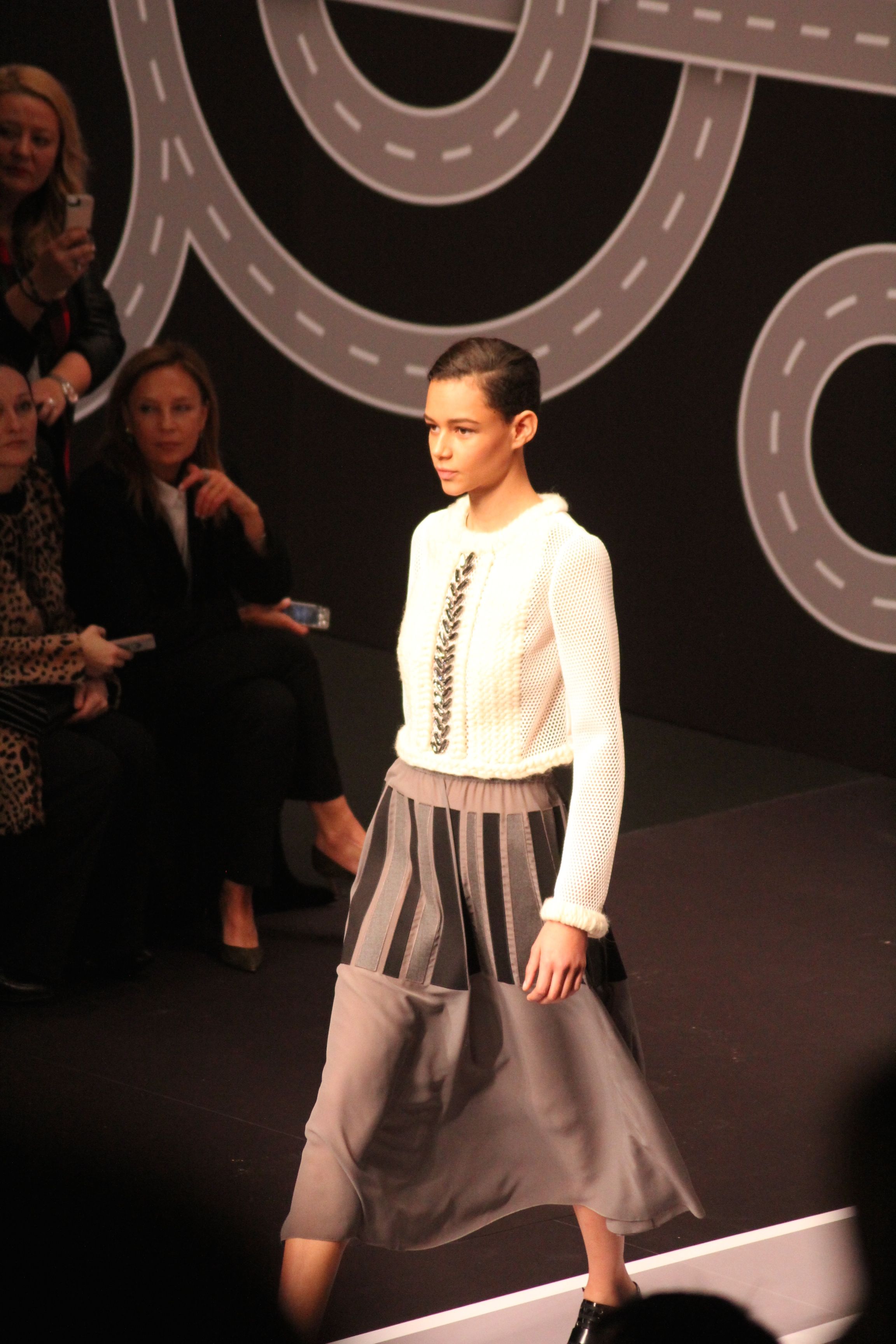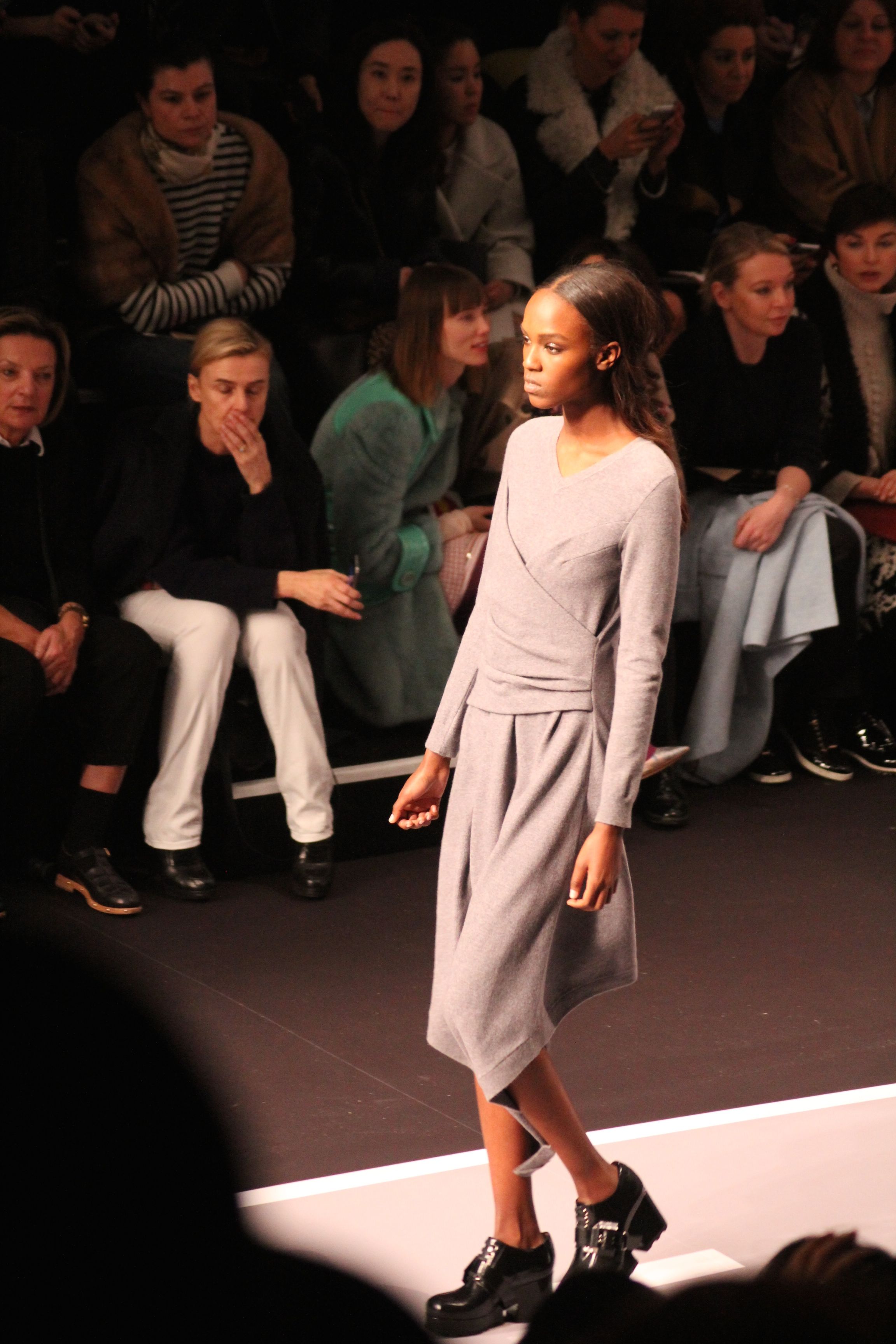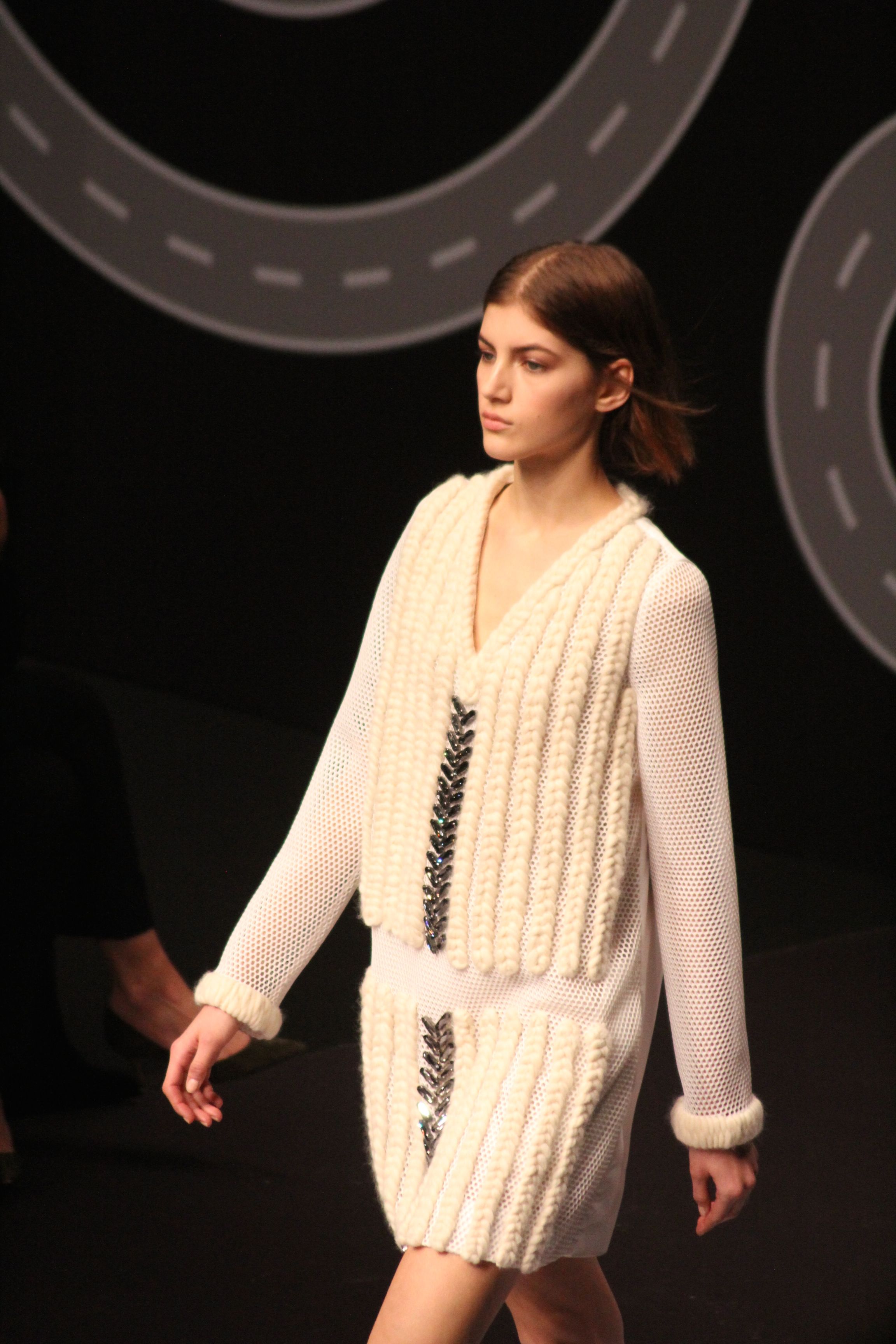 Le décor d’autoroute ainsi que les réverbères étaient là pour planter le décor. Joans As Police Woman jouait quand à elle la bande son de ce road trip. Le bitume inspire donc la mode, les gris omniprésents, le noir et le blanc.