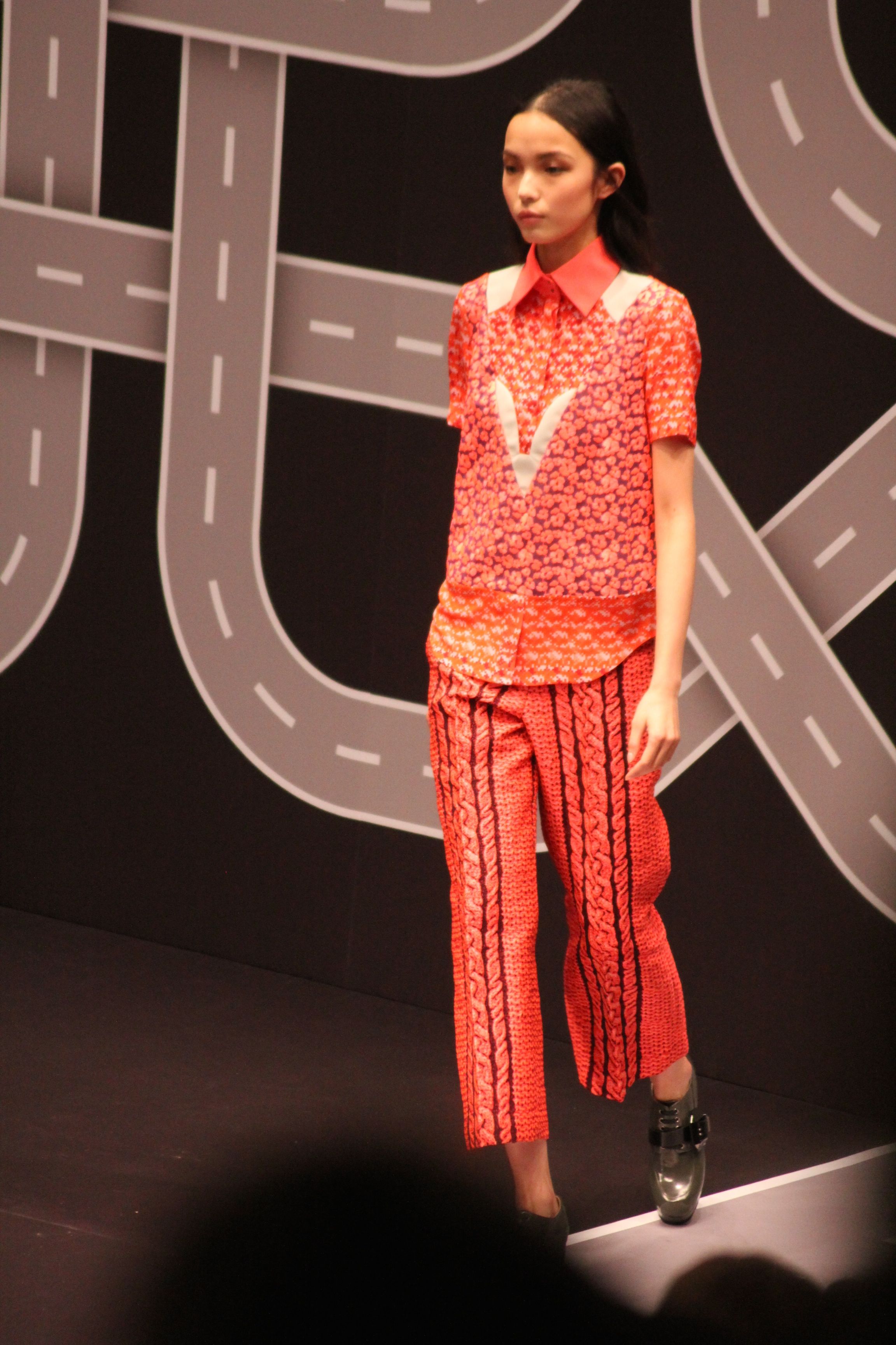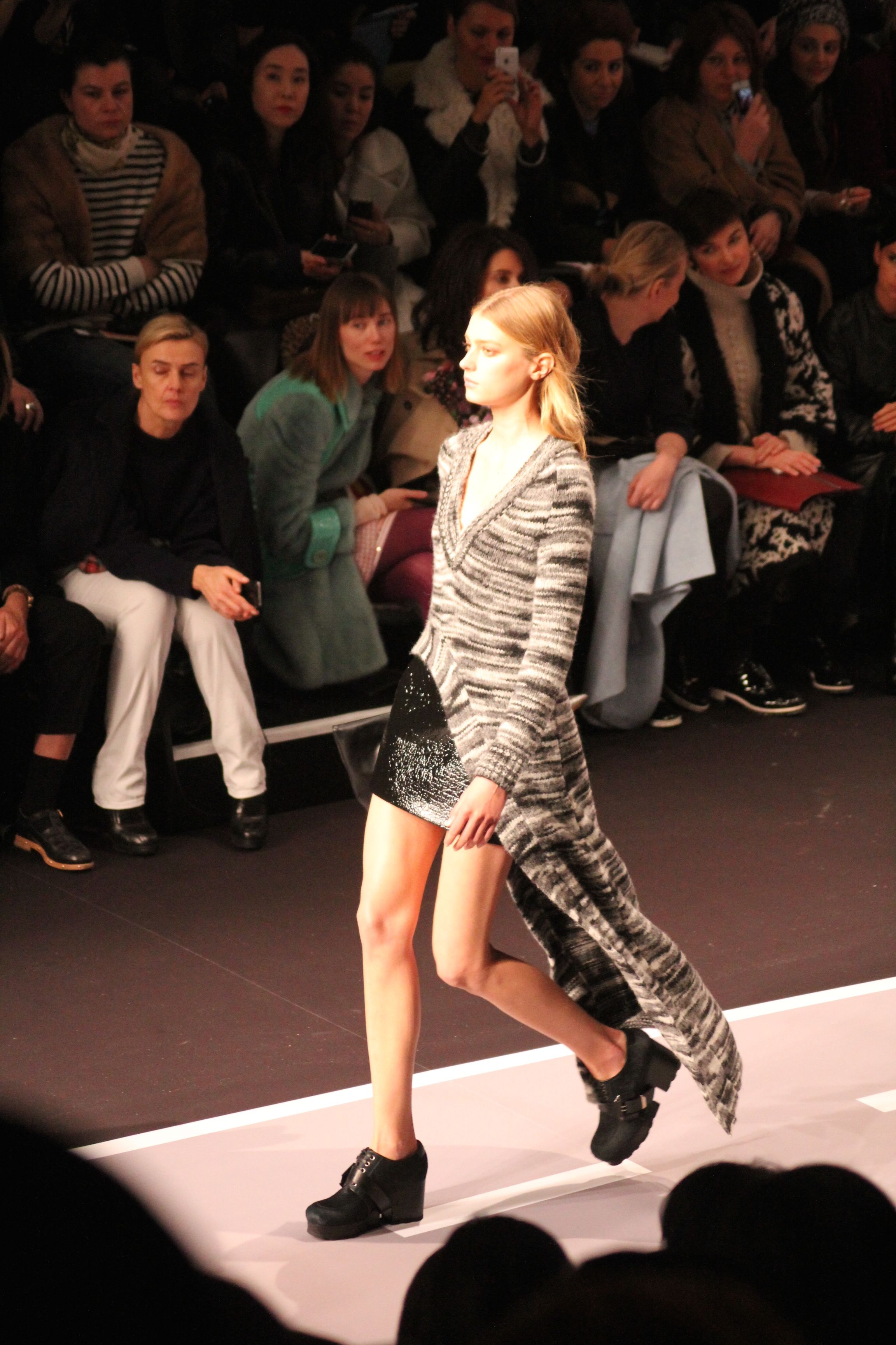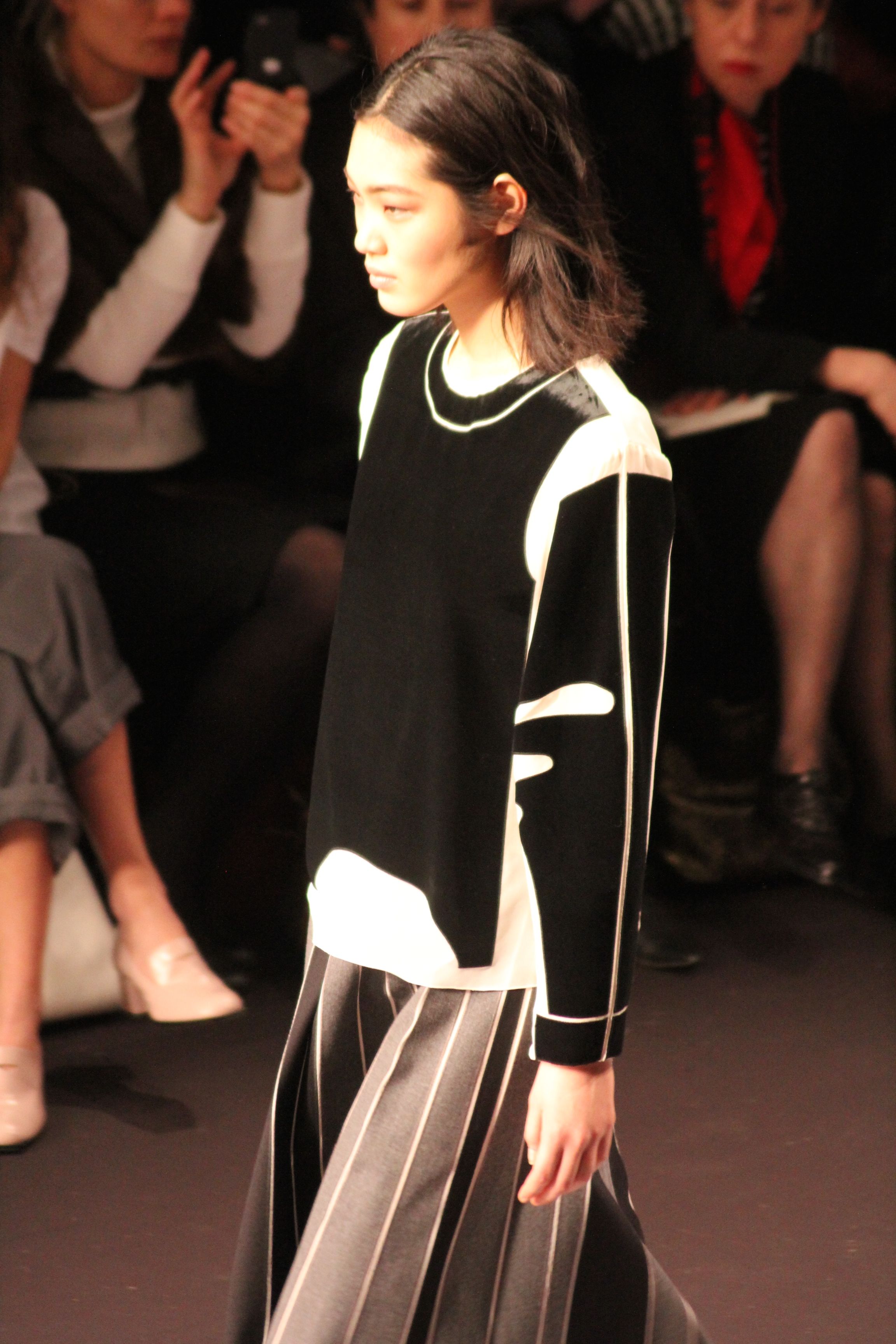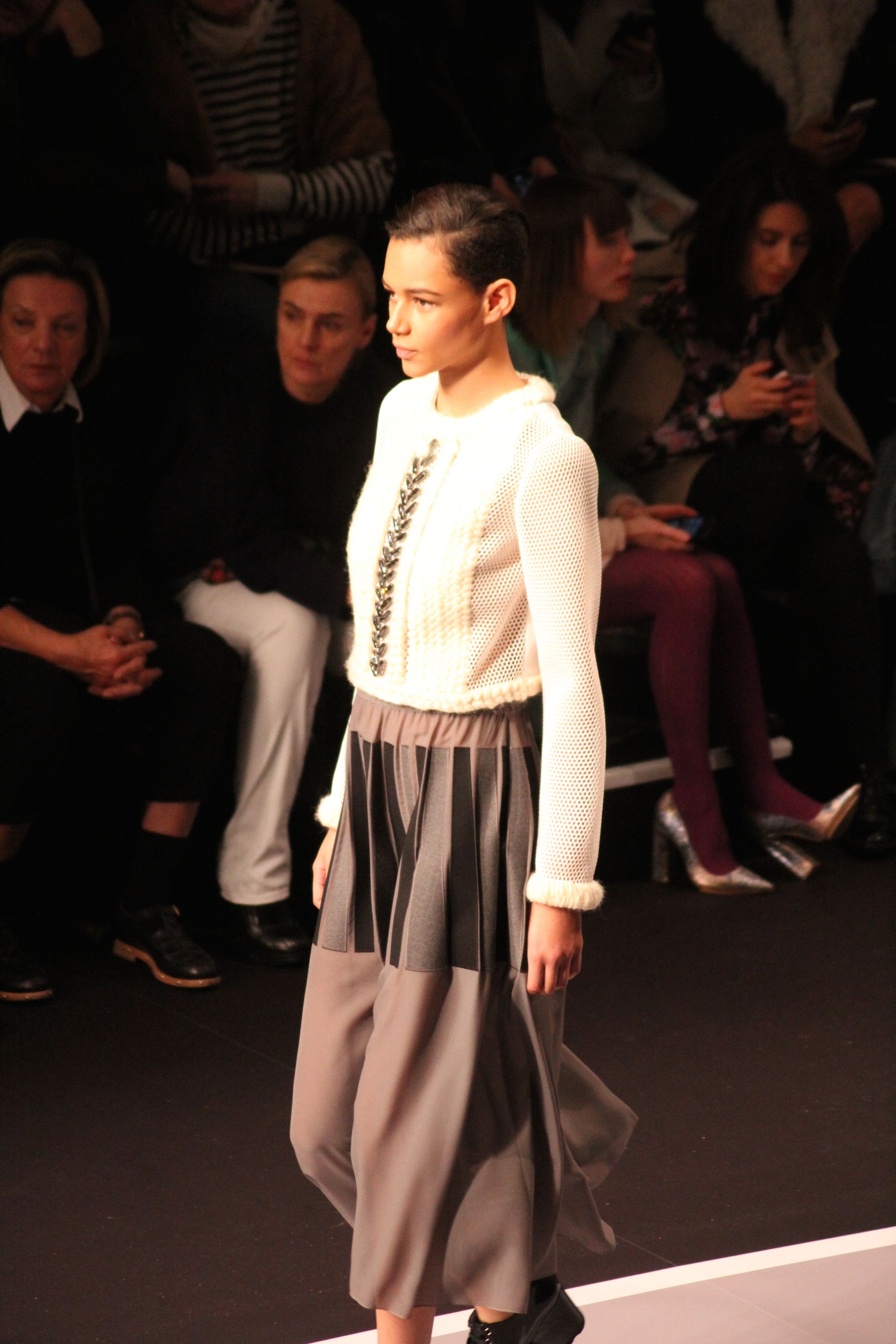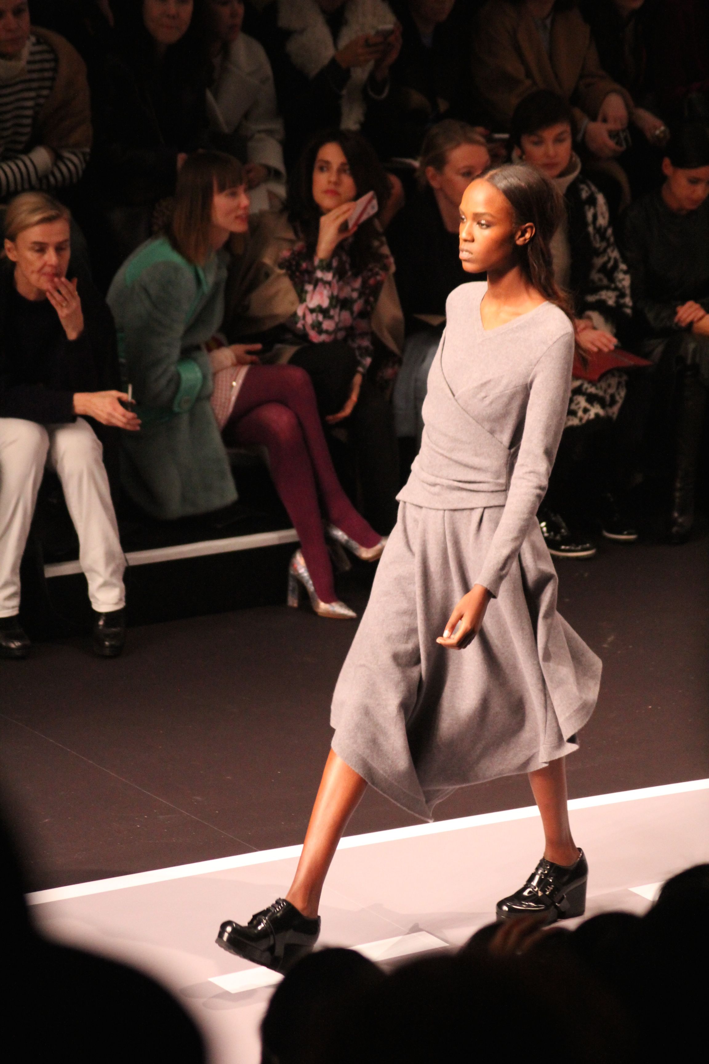 Le décor d’autoroute ainsi que les réverbères étaient là pour planter le décor. Joans As Police Woman jouait quand à elle la bande son de ce road trip. Le bitume inspire donc la mode, les gris omniprésents, le noir et le blanc.