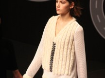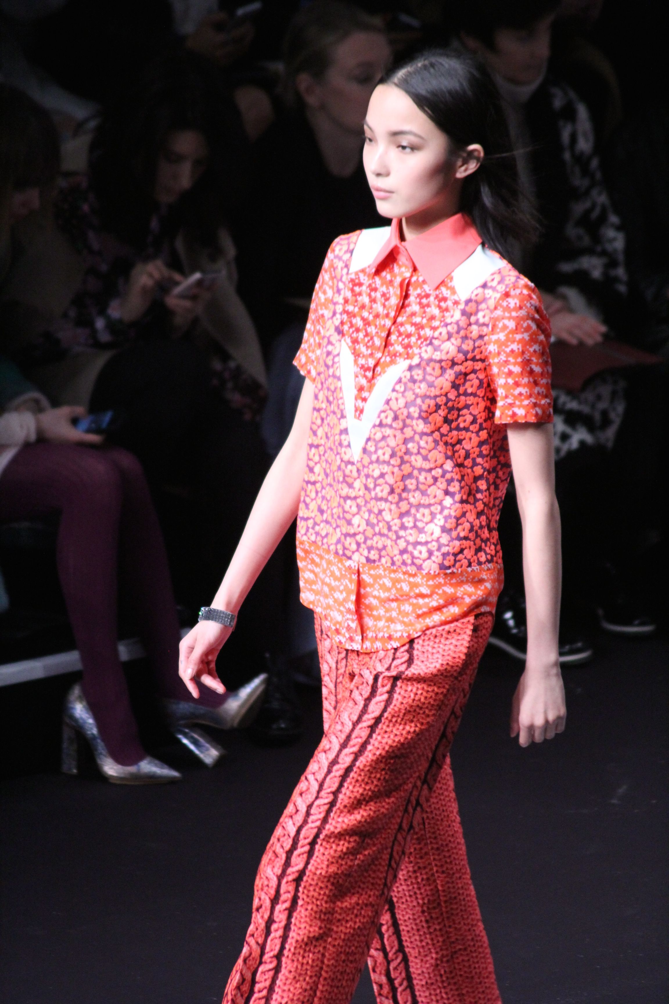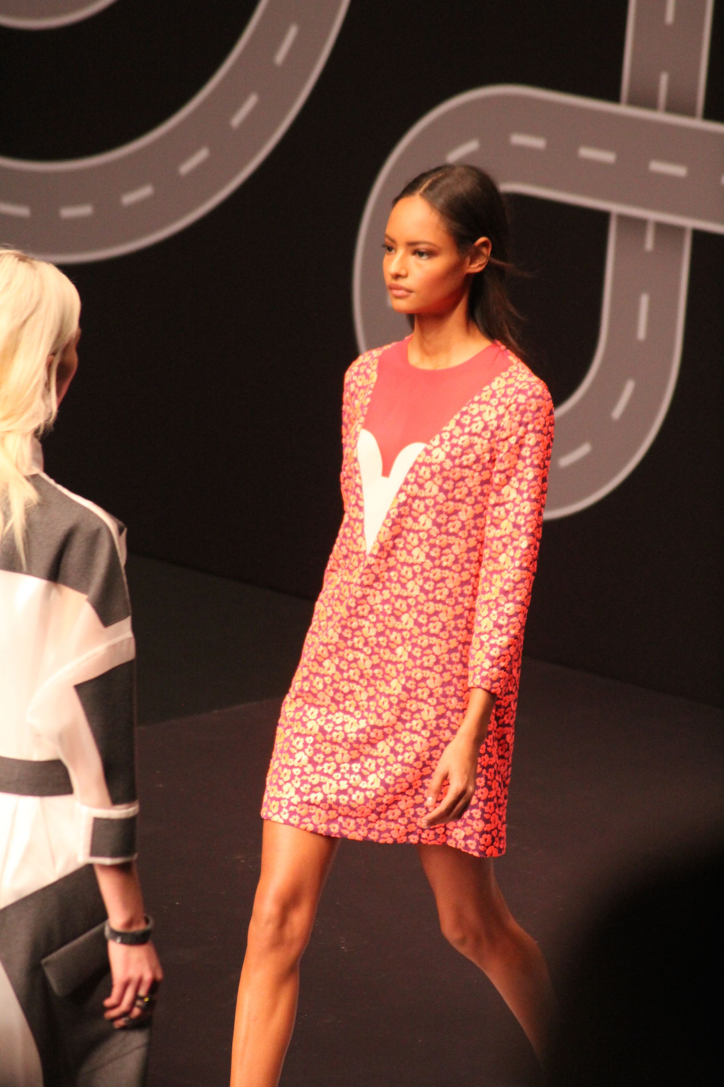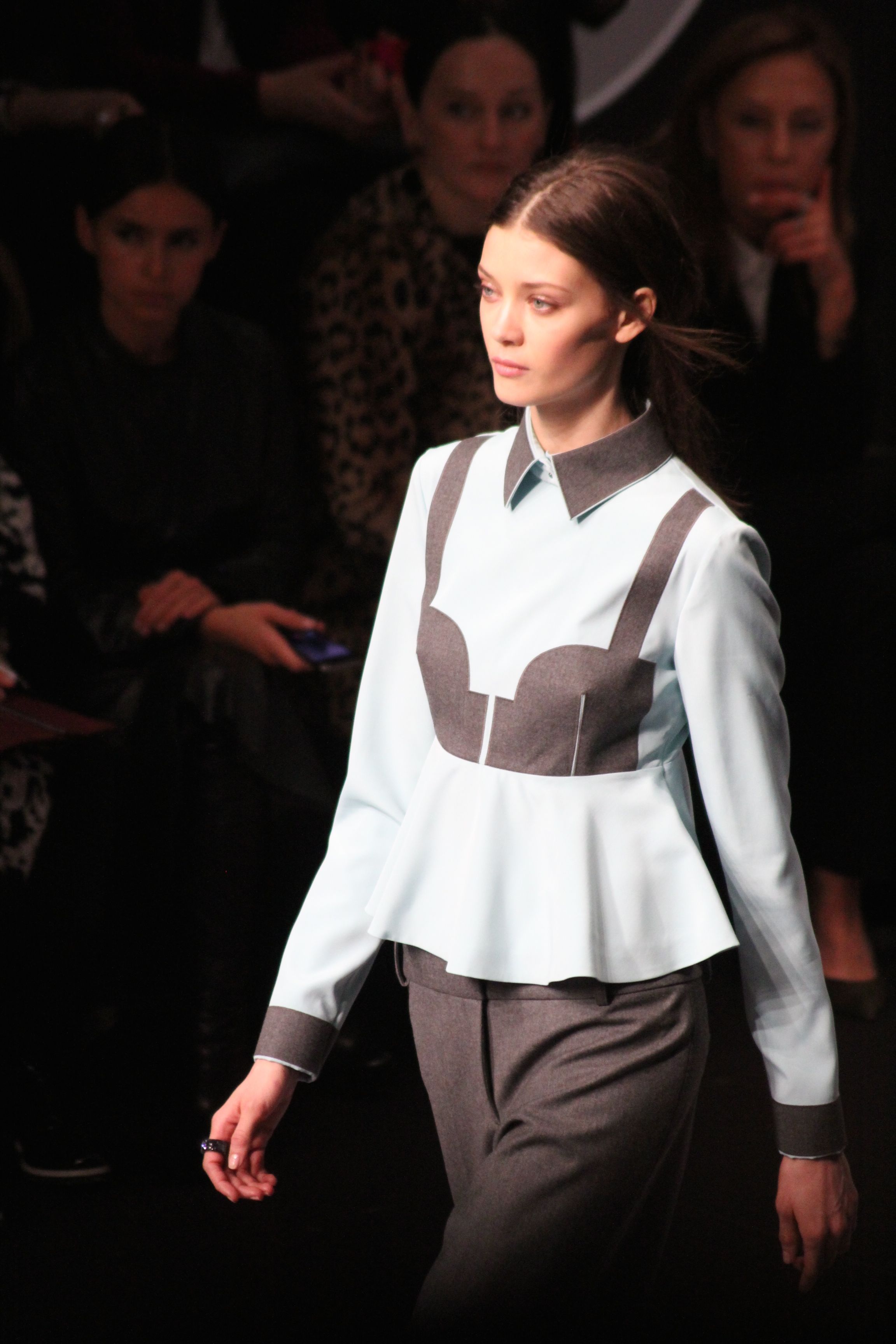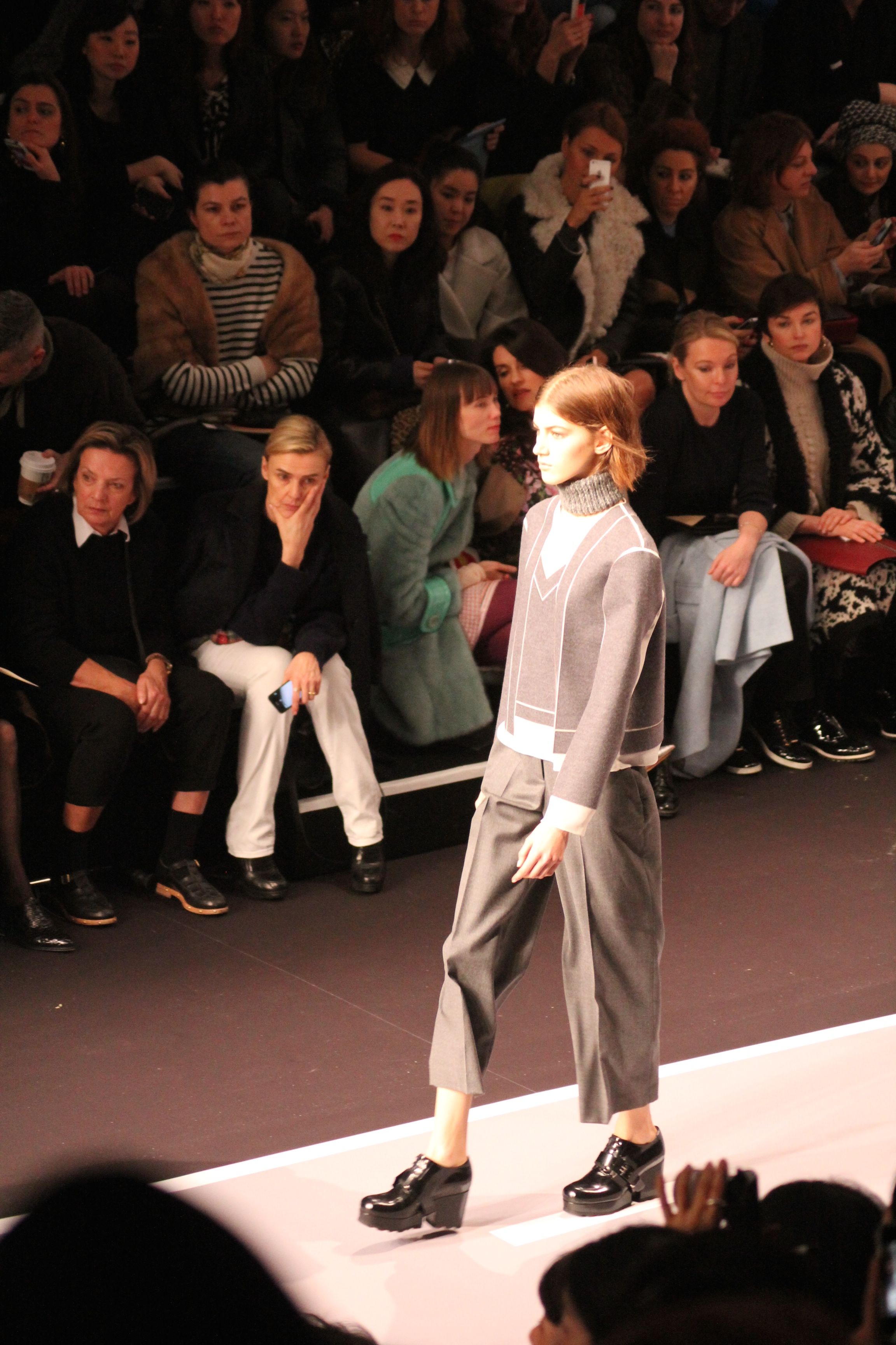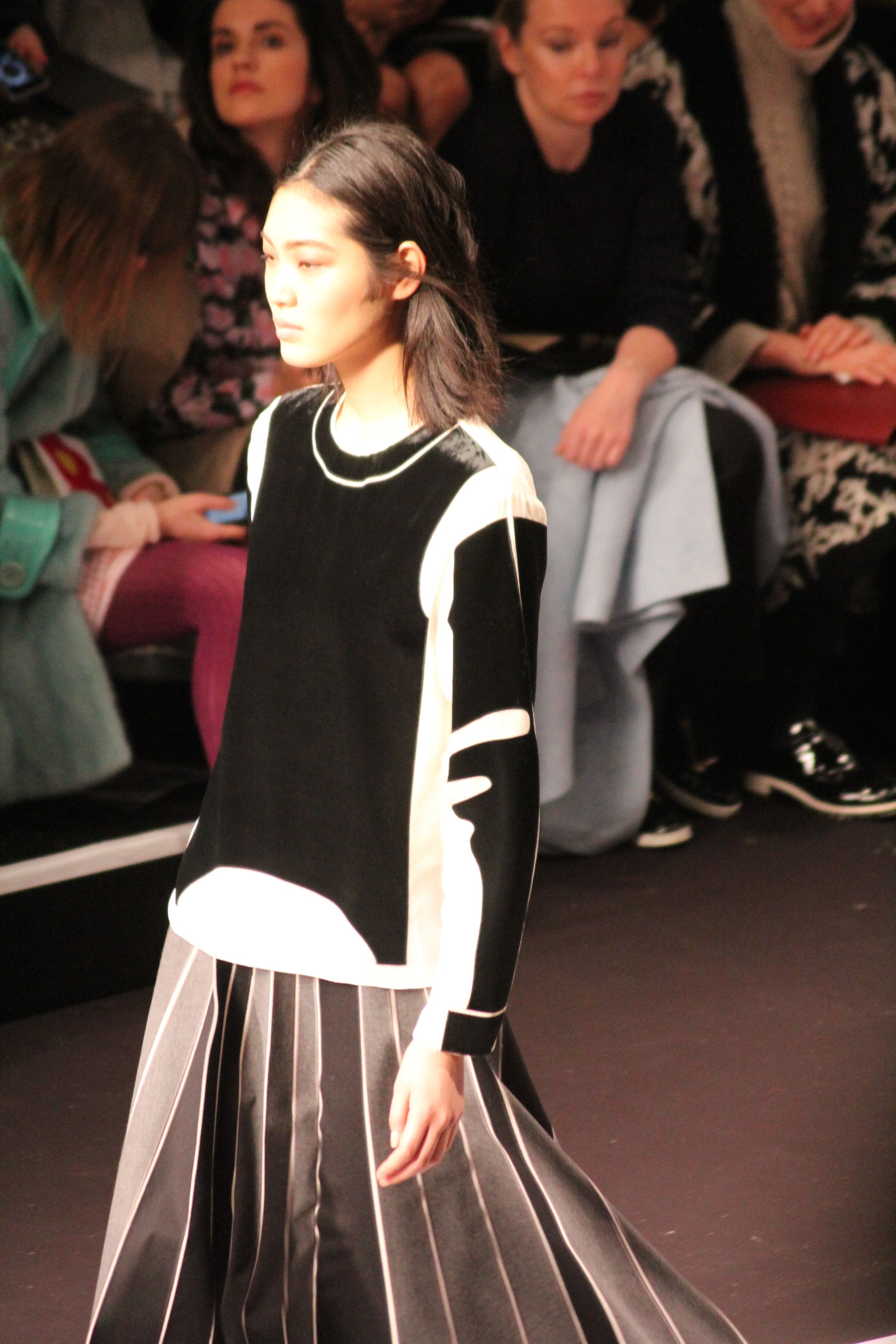Le décor d’autoroute ainsi que les réverbères étaient là pour planter le décor. Joans As Police Woman jouait quand à elle la bande son de ce road trip. Le bitume inspire donc la mode, les gris omniprésents, le noir et le blanc.