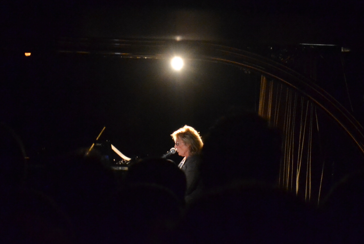 22h30, Christophe débarque. Seul. Piano/voix. Beaucoup d’émotion dans la salle pour ceux qui sont aux premières loges. Au fond de la salle, j’arrive à distinguer à peine le chanteur en montant sur une table. « Les mots bleus », « les paradis perdus », « Aline ». Les classiques sont de sortie.