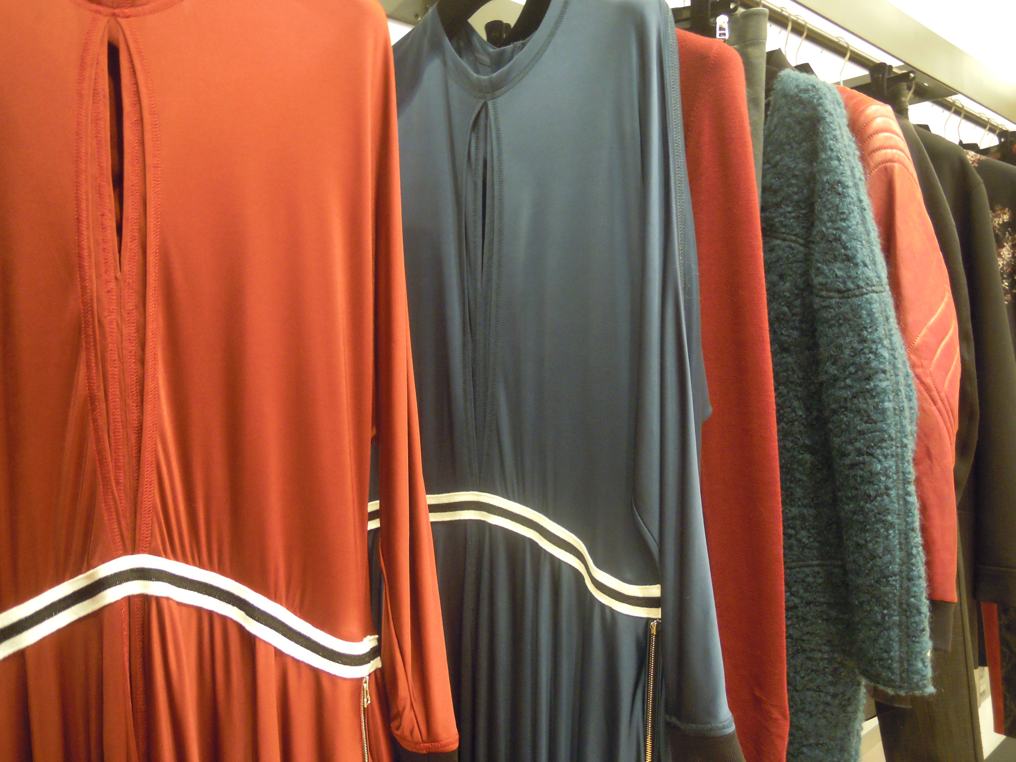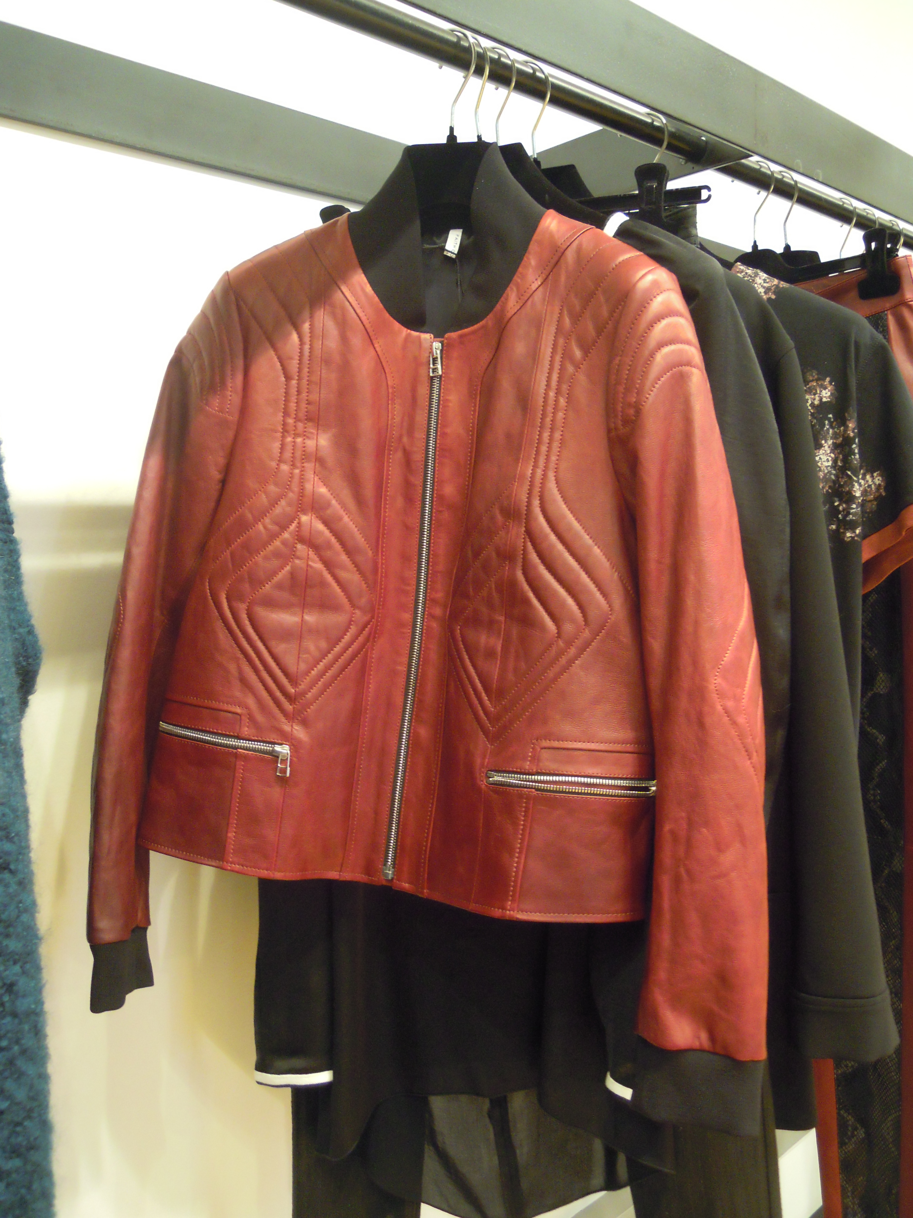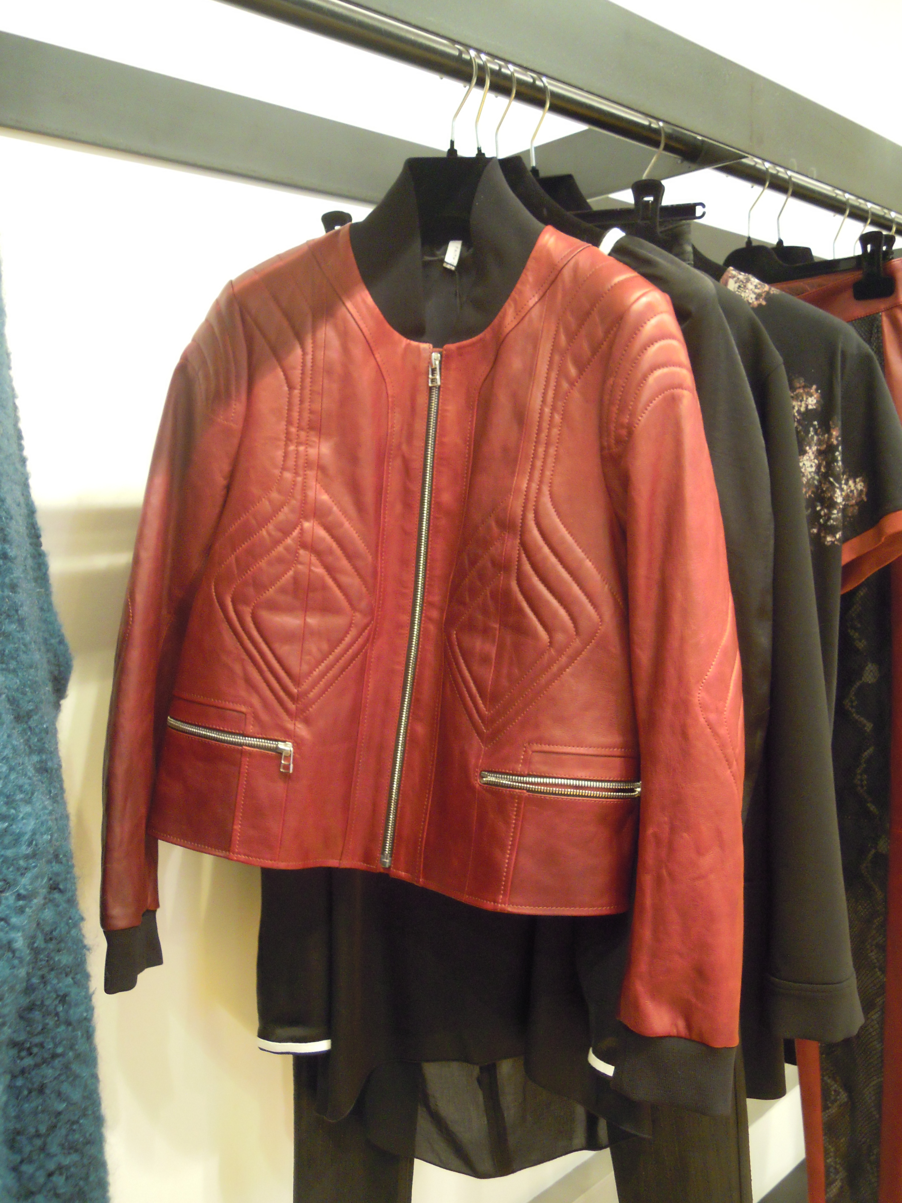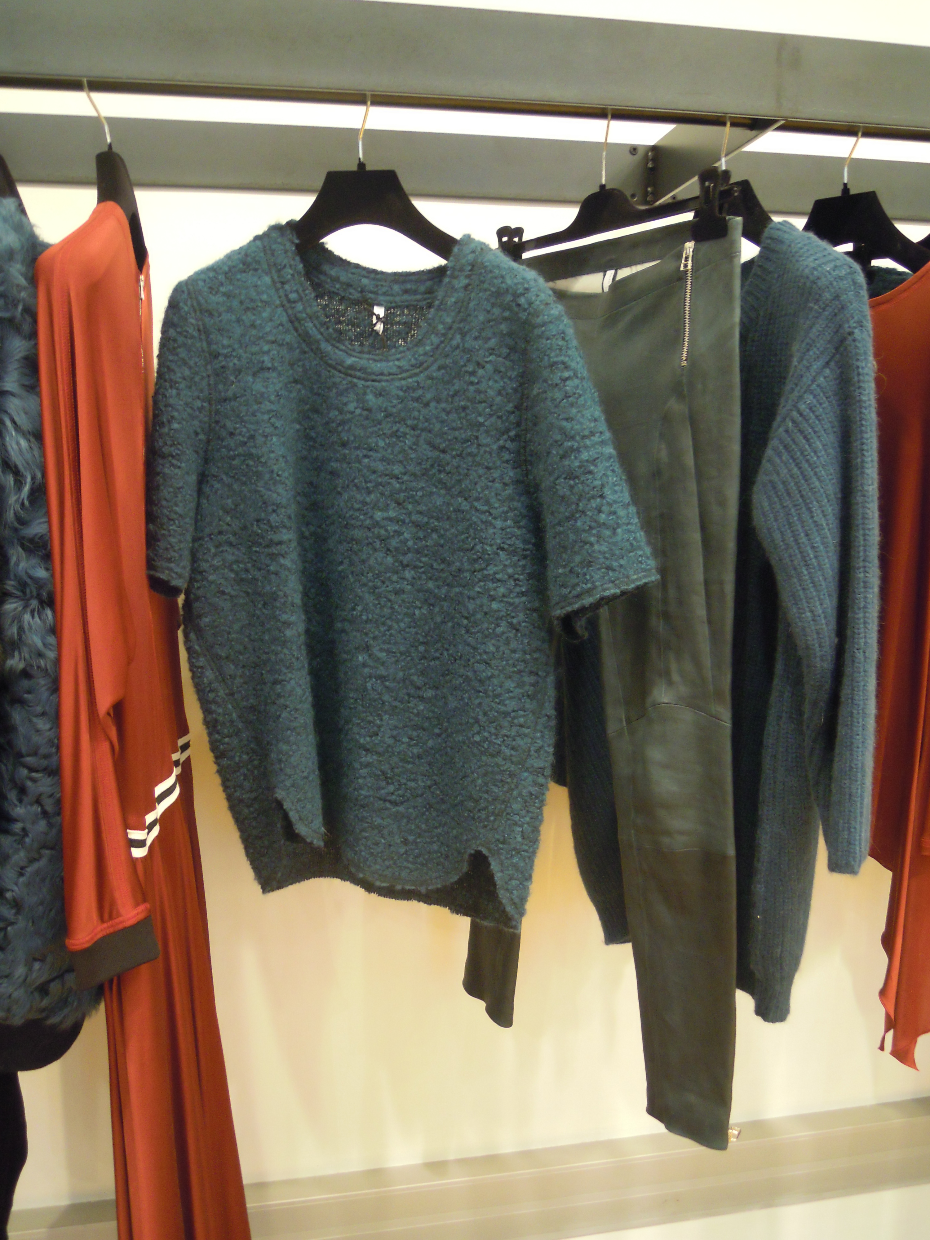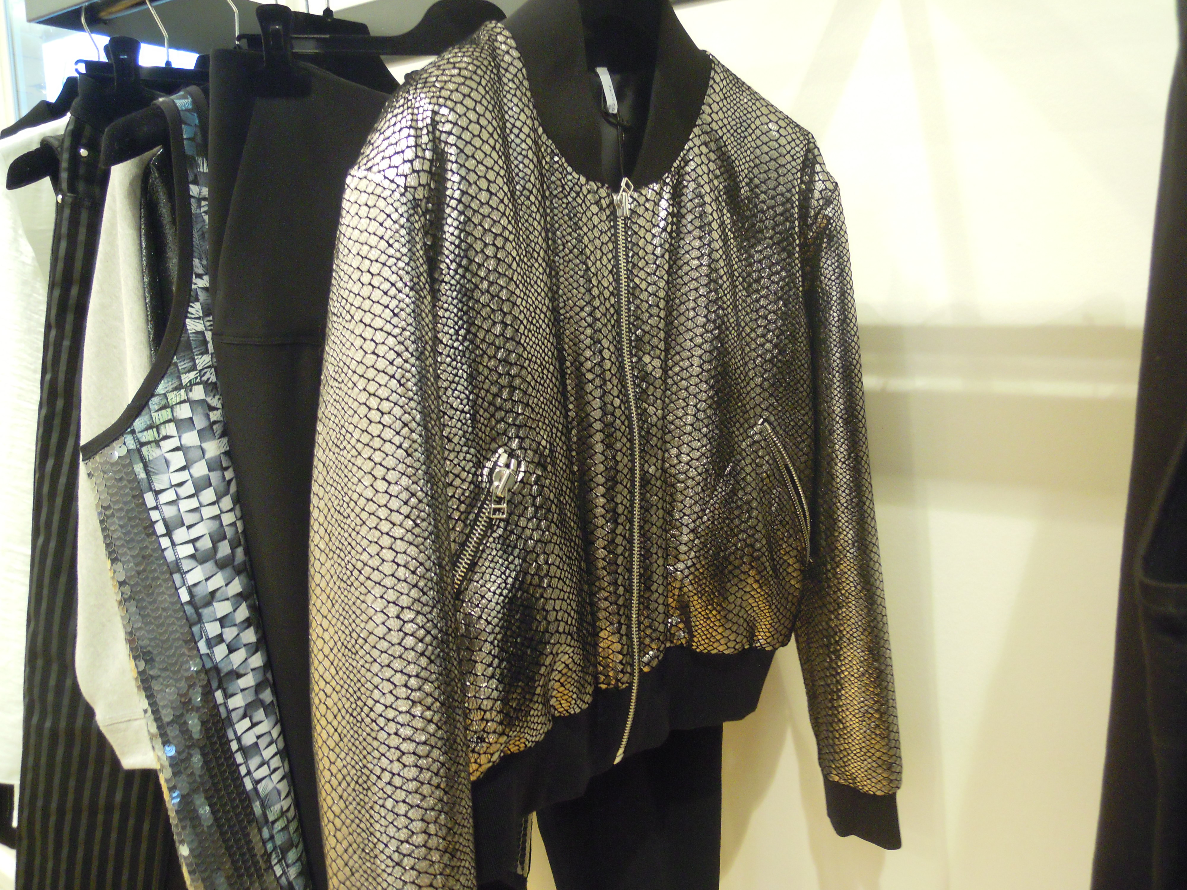 Ces lignes asymétriques se déclinent sur des jupes à volants, des robes larges à l’ourlet décalé ; côté couleurs, on plonge dans le turquoise, dans le bordeaux, et on se recroqueville dans les mailles beiges. On se pare du cuir effet serpent sur les pantalons et des vestes de motarde aux lignes très géométriques ; Pour le soir, on penchera pour les pièces métallisées, avec effet python ou non. On peut aussi miser sur les sequins, qui dans la collection s’assemble pour former un imprimé.