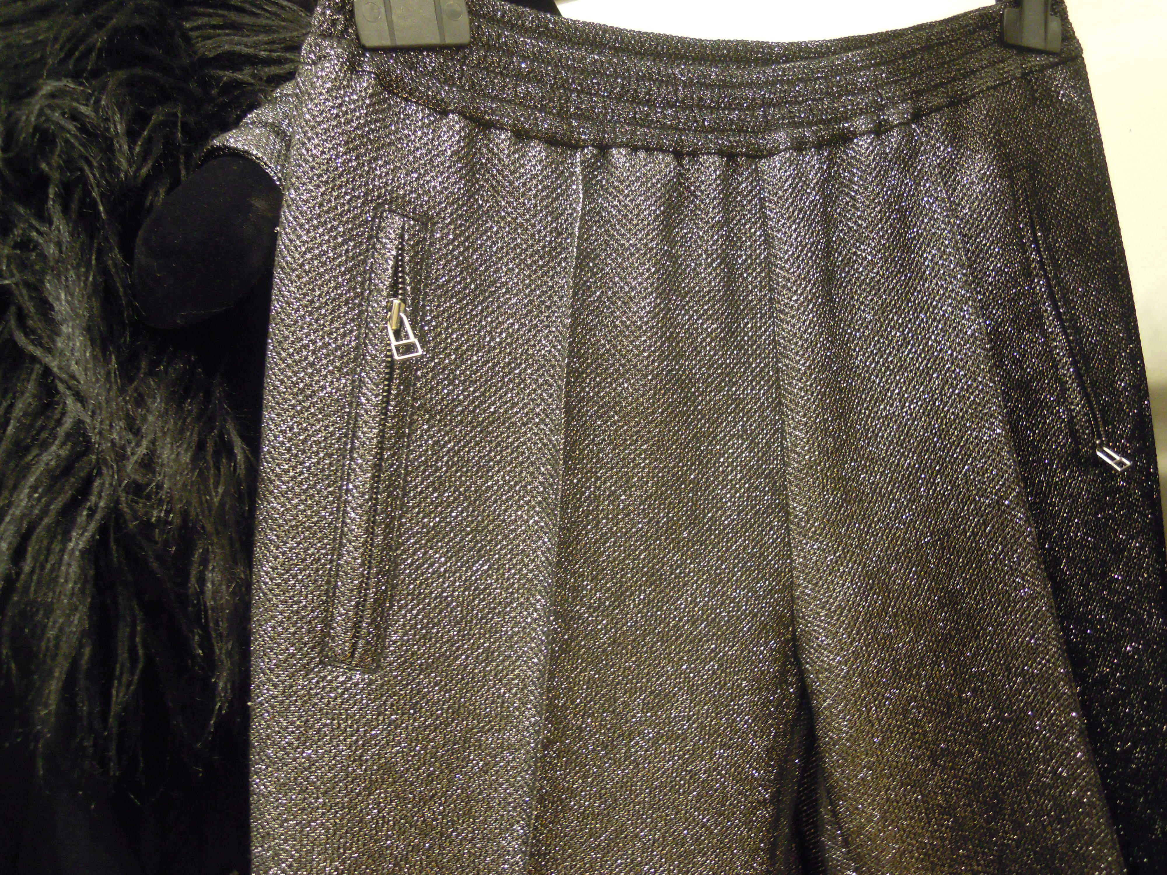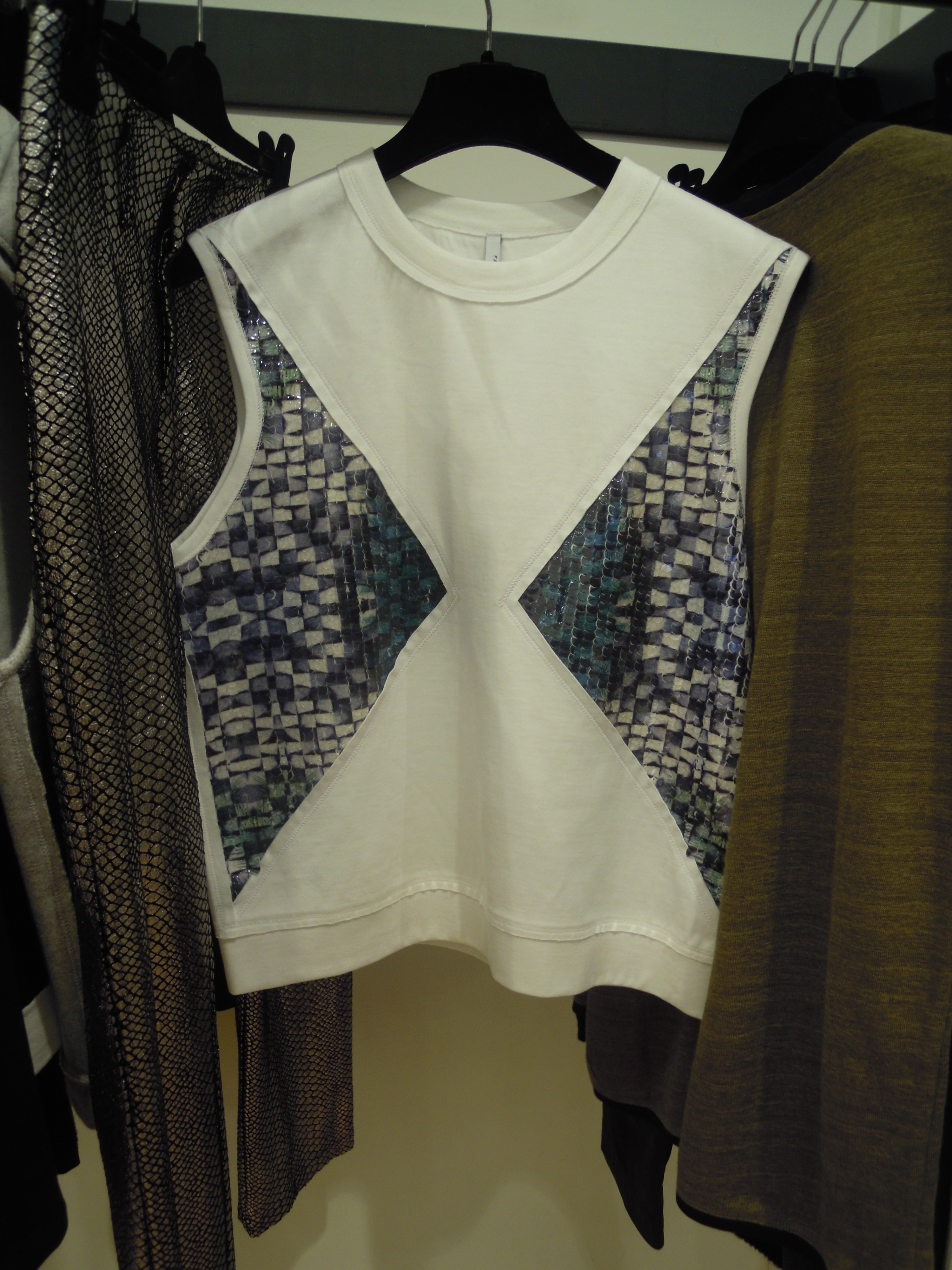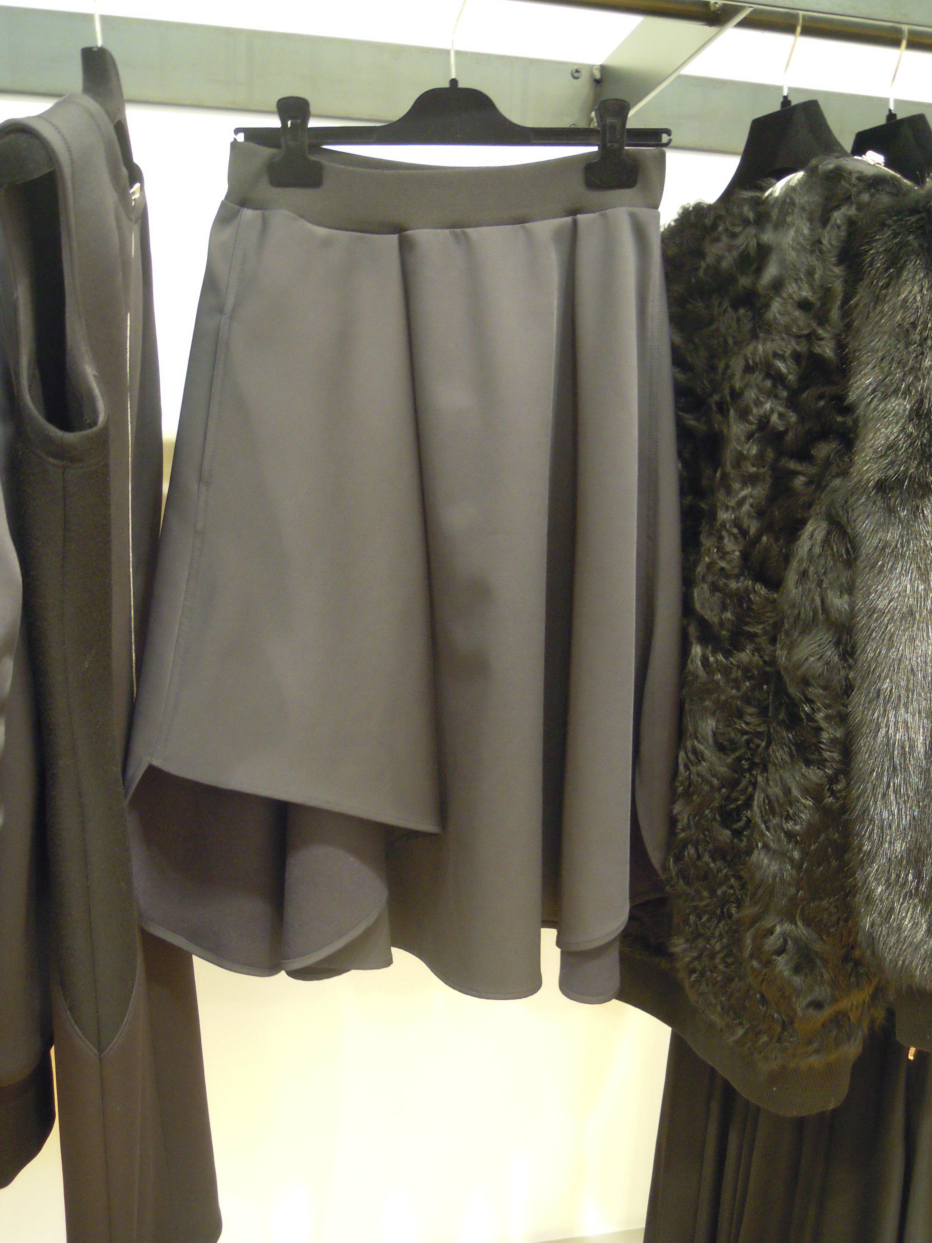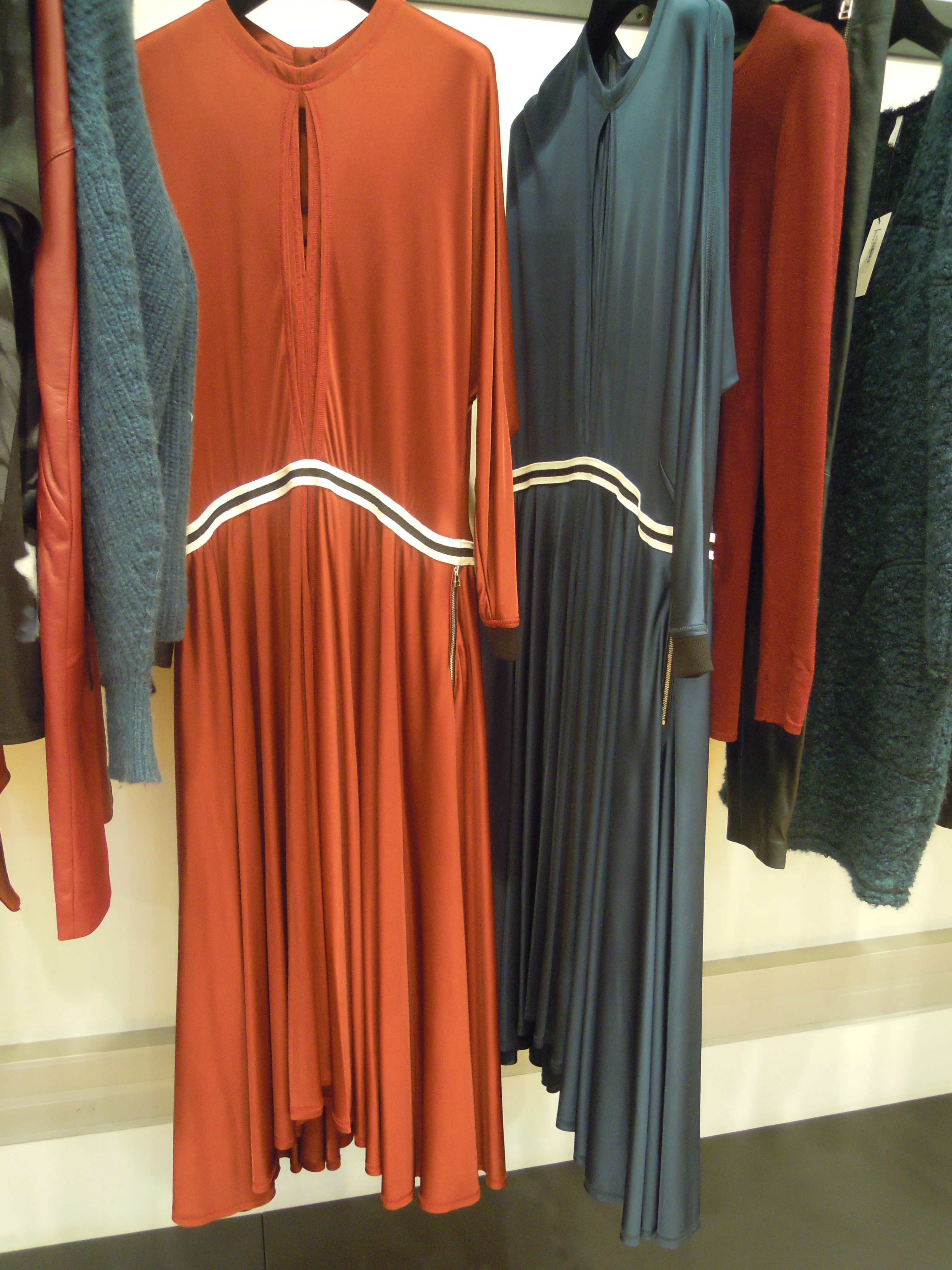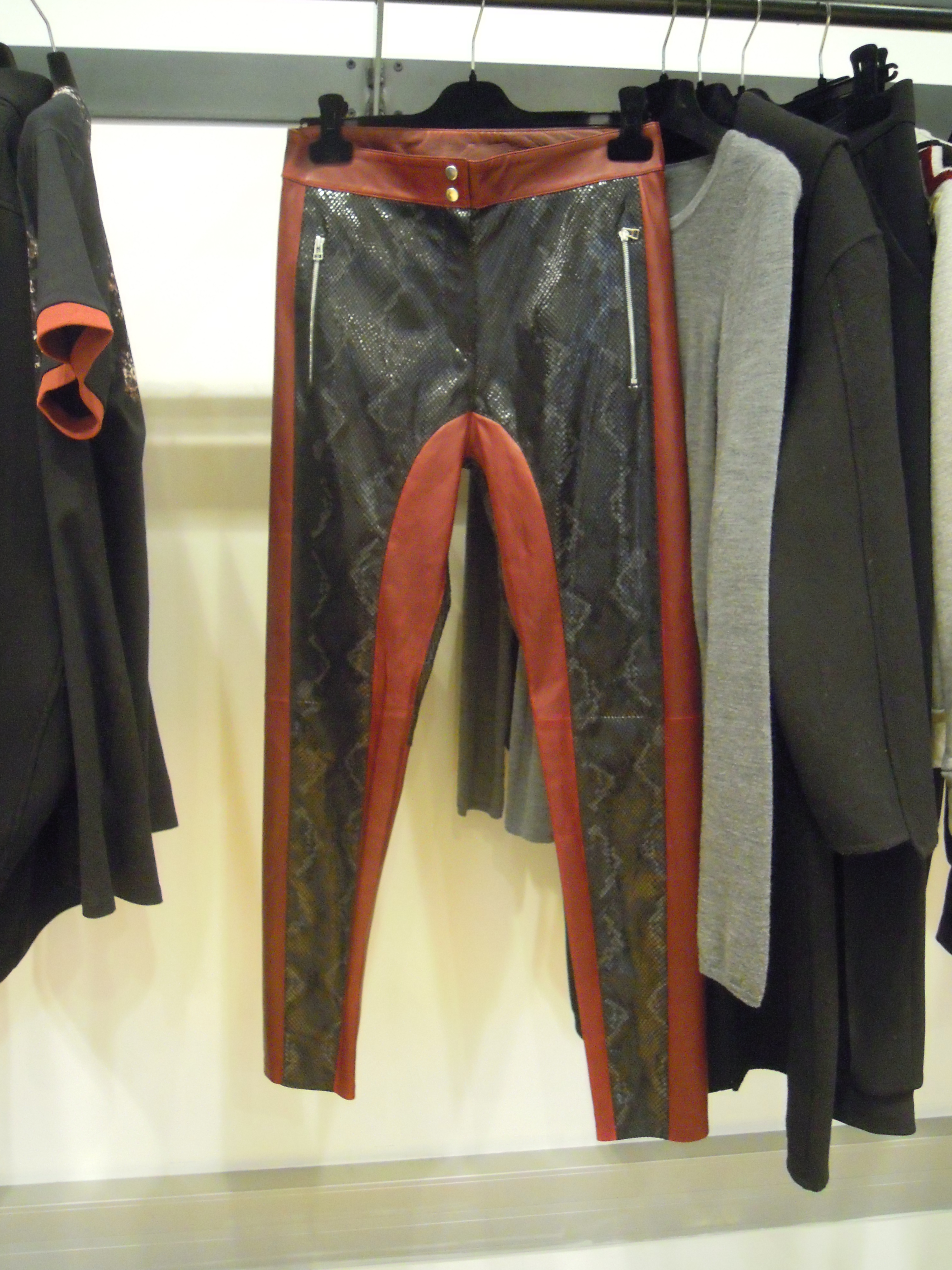 Ces lignes asymétriques se déclinent sur des jupes à volants, des robes larges à l’ourlet décalé ; côté couleurs, on plonge dans le turquoise, dans le bordeaux, et on se recroqueville dans les mailles beiges. On se pare du cuir effet serpent sur les pantalons et des vestes de motarde aux lignes très géométriques ; Pour le soir, on penchera pour les pièces métallisées, avec effet python ou non. On peut aussi miser sur les sequins, qui dans la collection s’assemble pour former un imprimé.