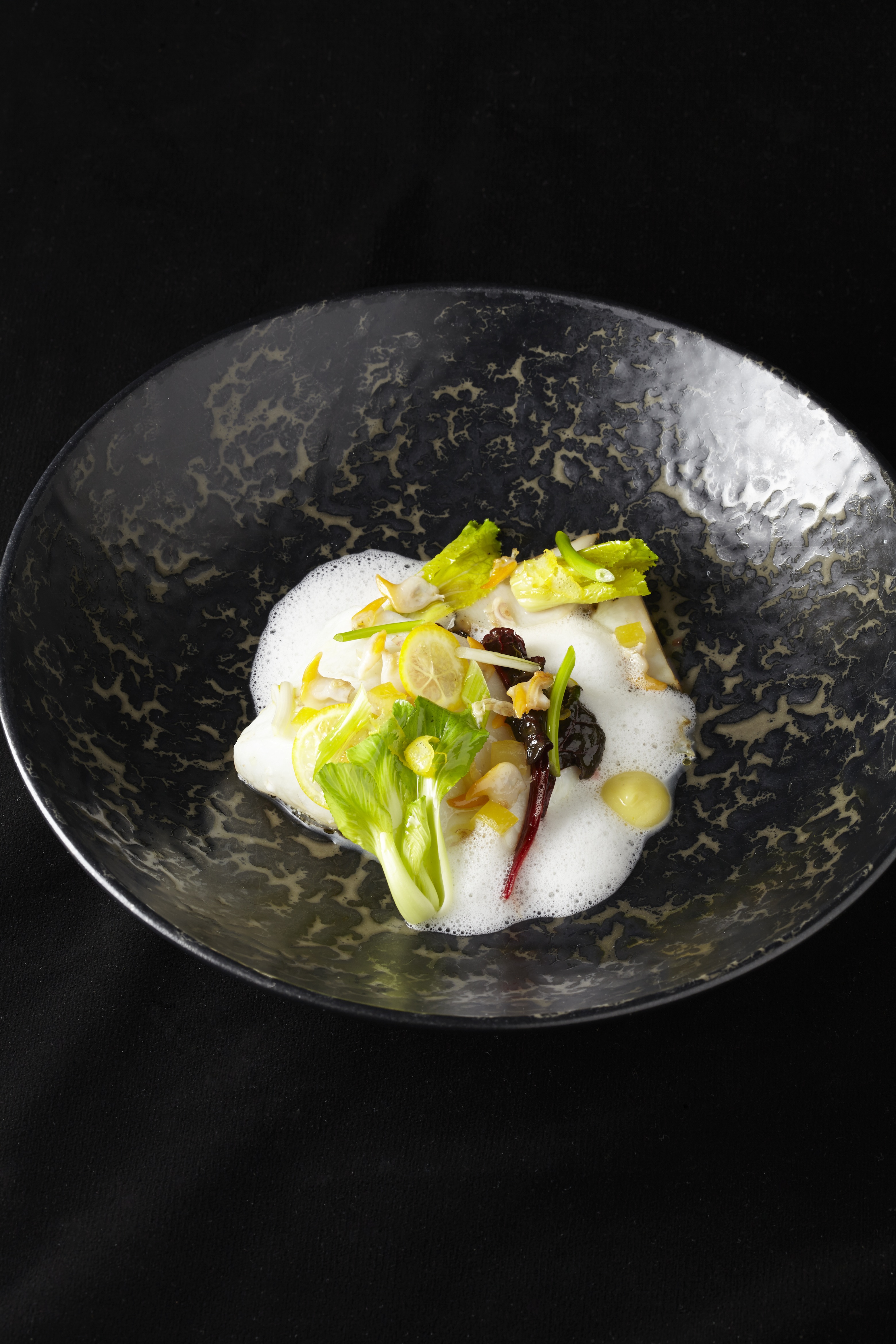 Cabillaud vapeur, bouillon coques-ormeaux-agrumes