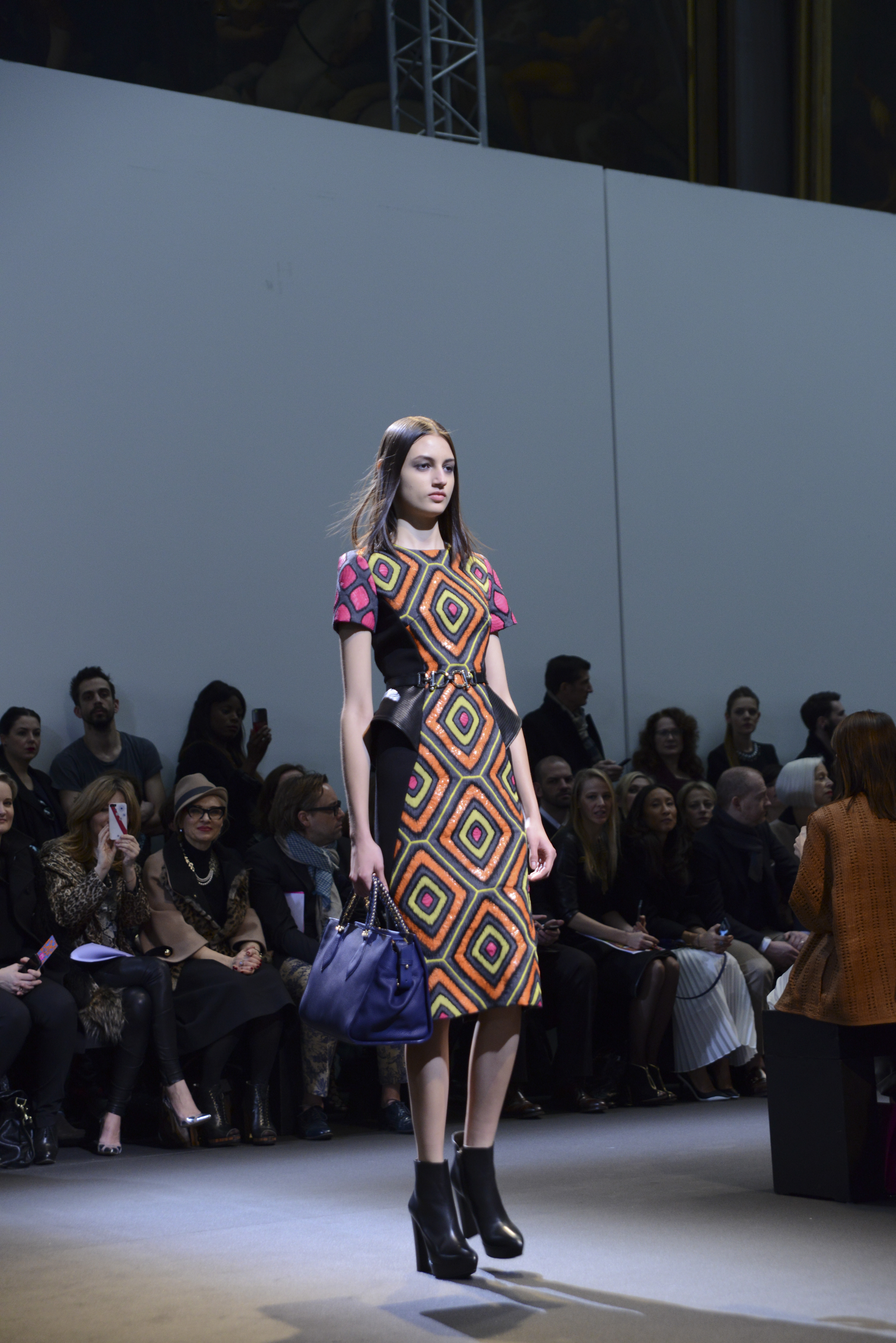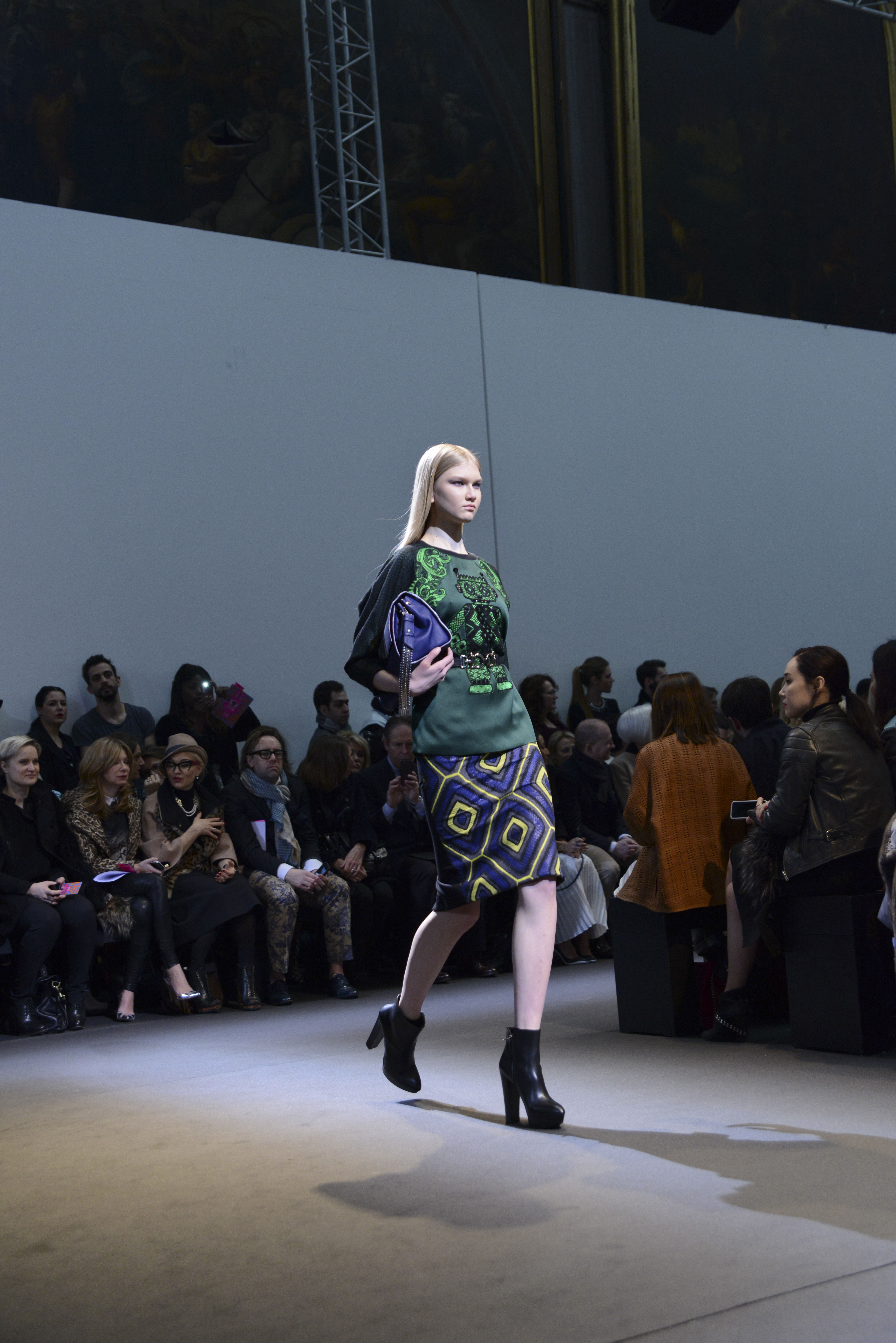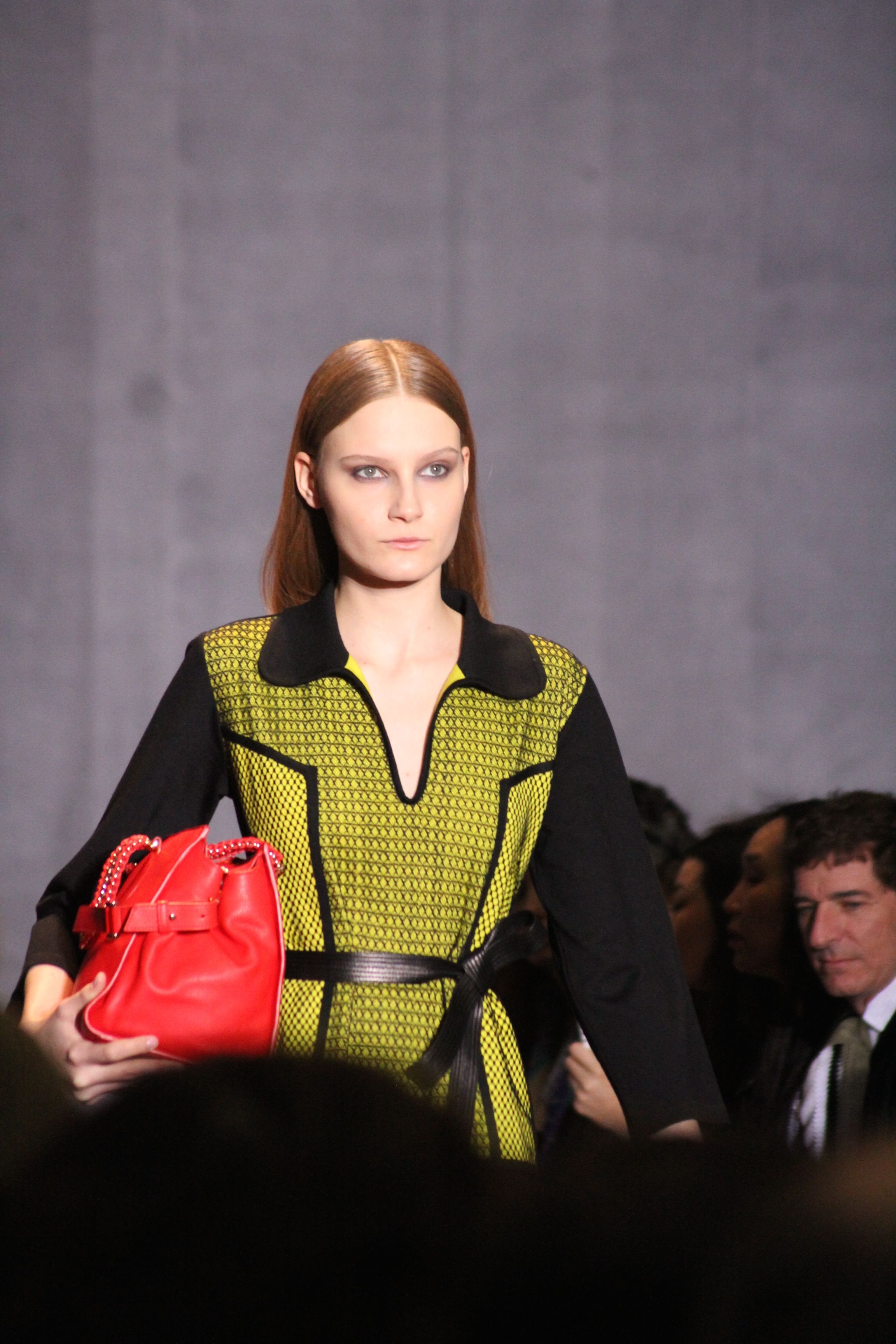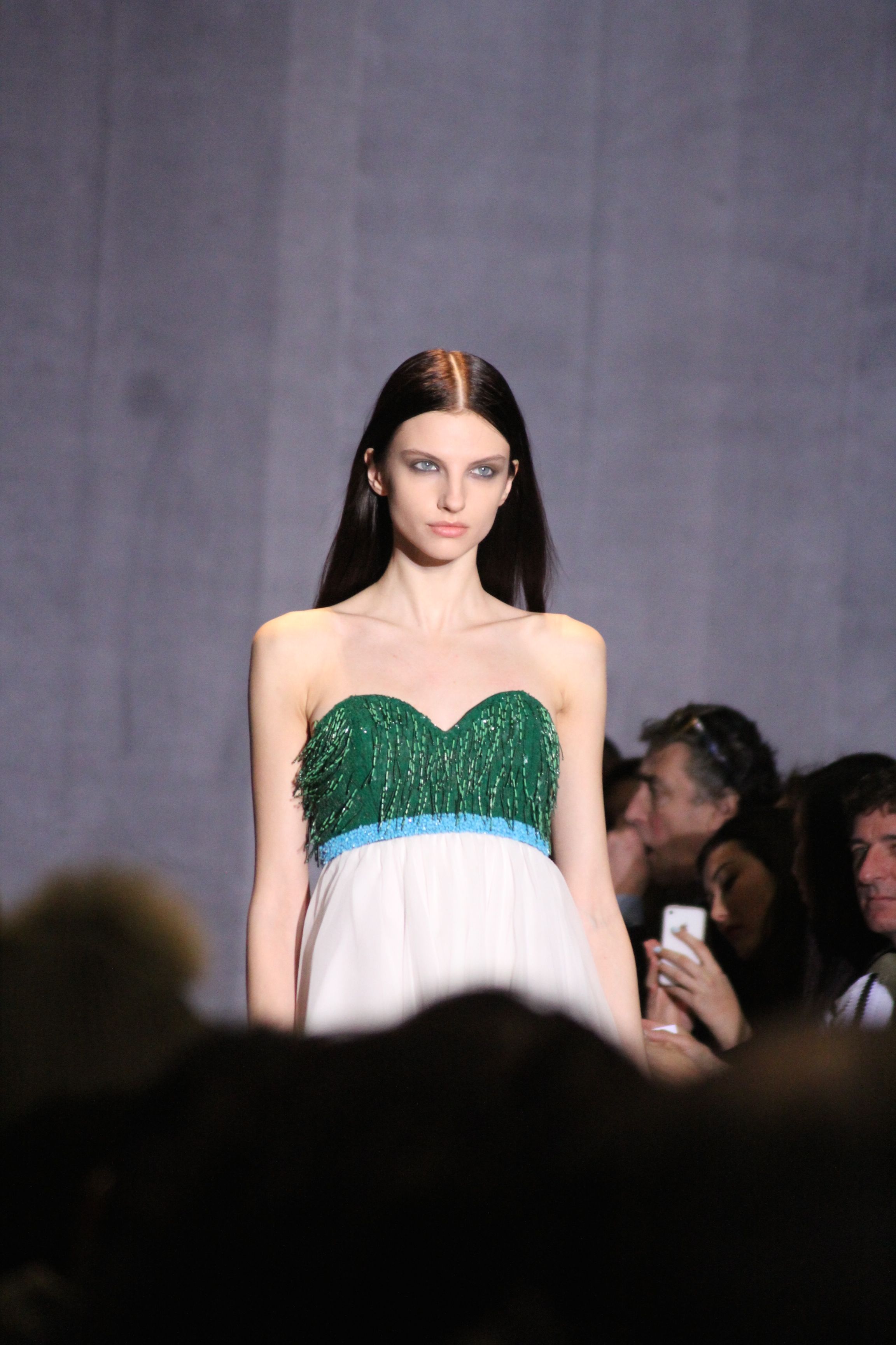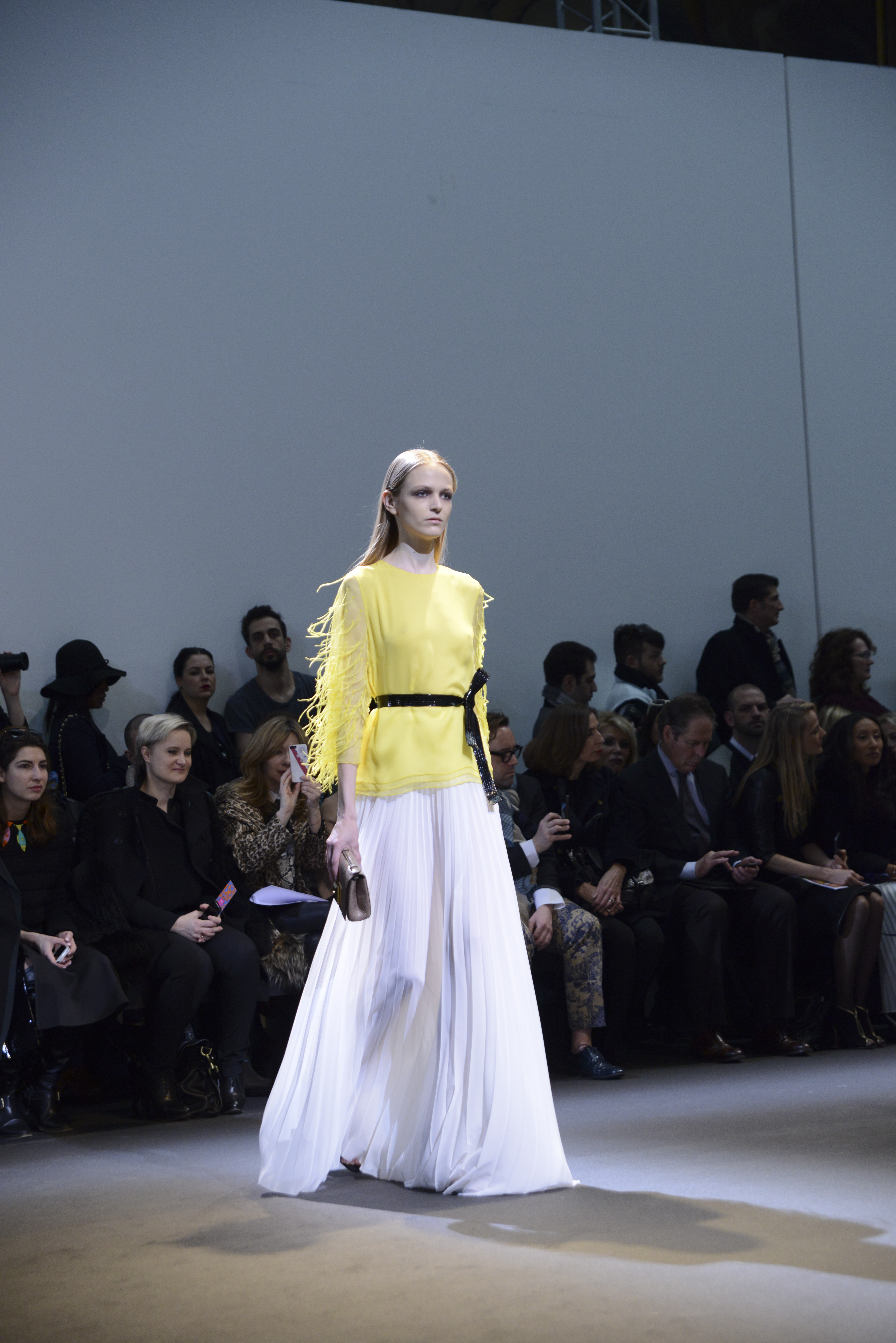 Andrew Gn nous surprend avec cette « good robot collection » excentrique et graphique inspirée de l’univers de Yayoi Kusama et Tina Chow. On retrouve donc une collection bigarrée, colorée, aux imprimés graphiques et ces fameux robots. La première partie du défilé propose une femme fatale, sophistiquée peu à peu celle ci devient plus agressive avec ces couleurs flash avant de devenir robotique et psychédélique.