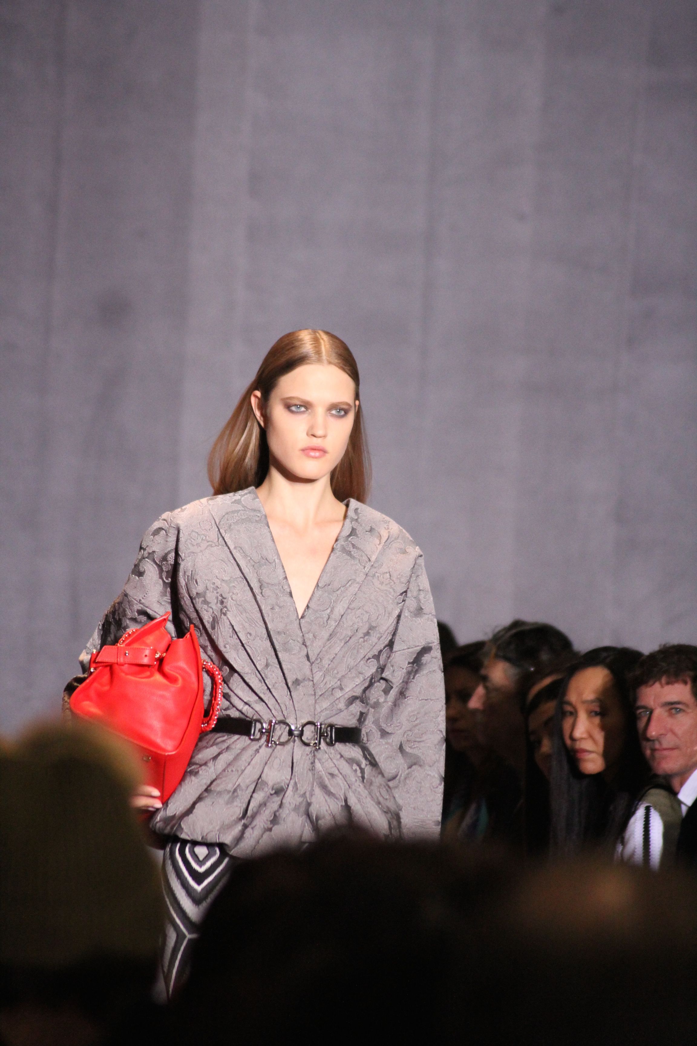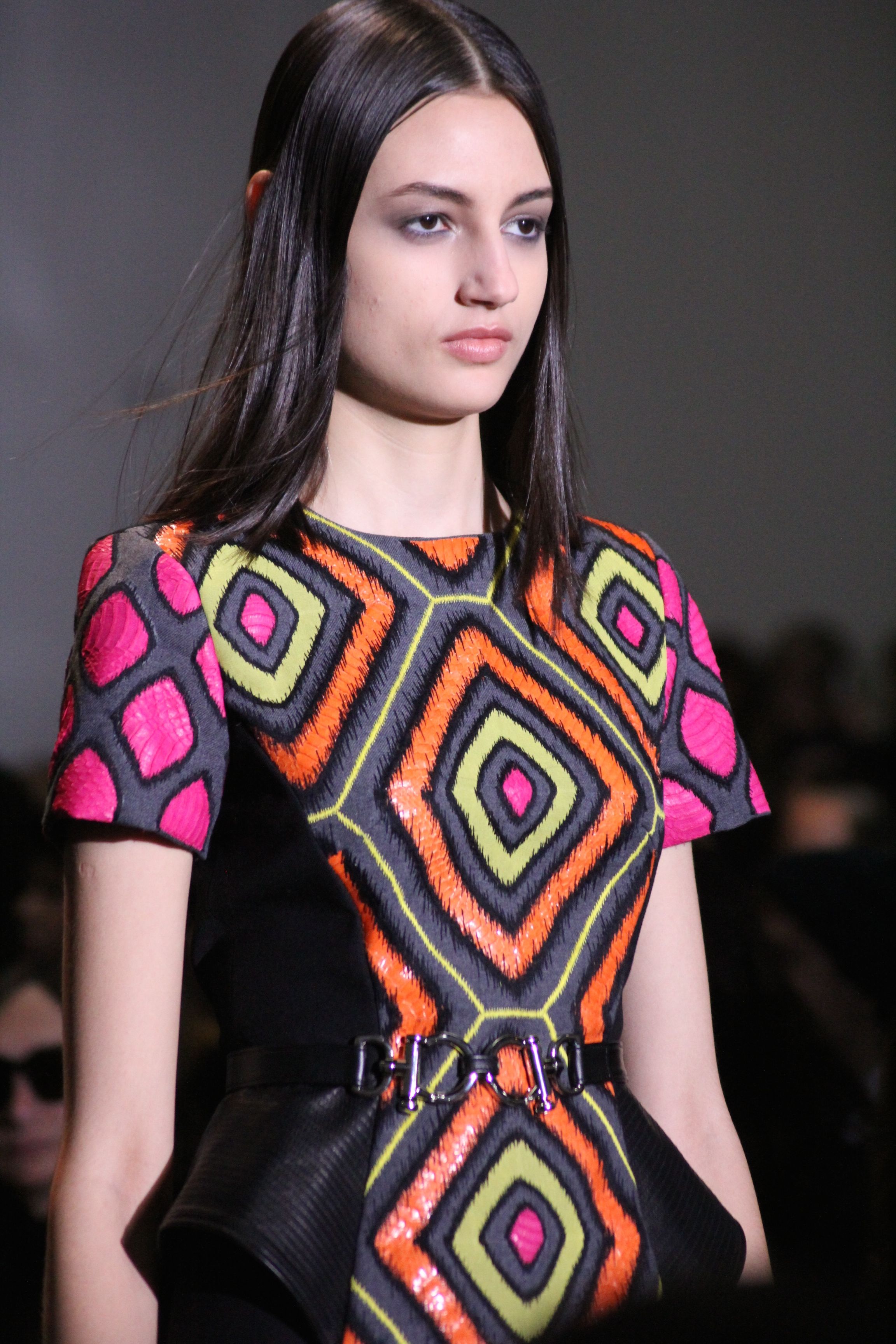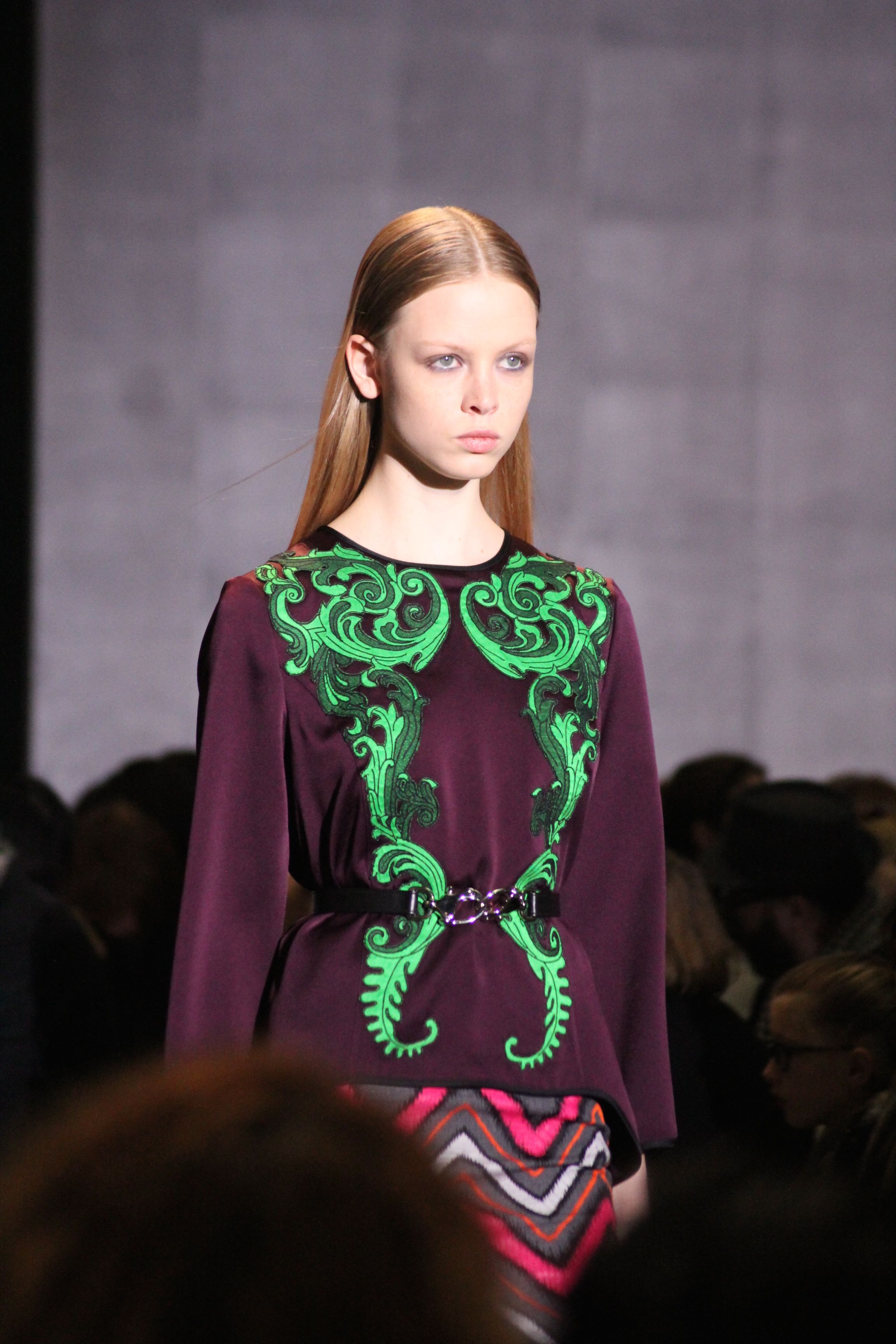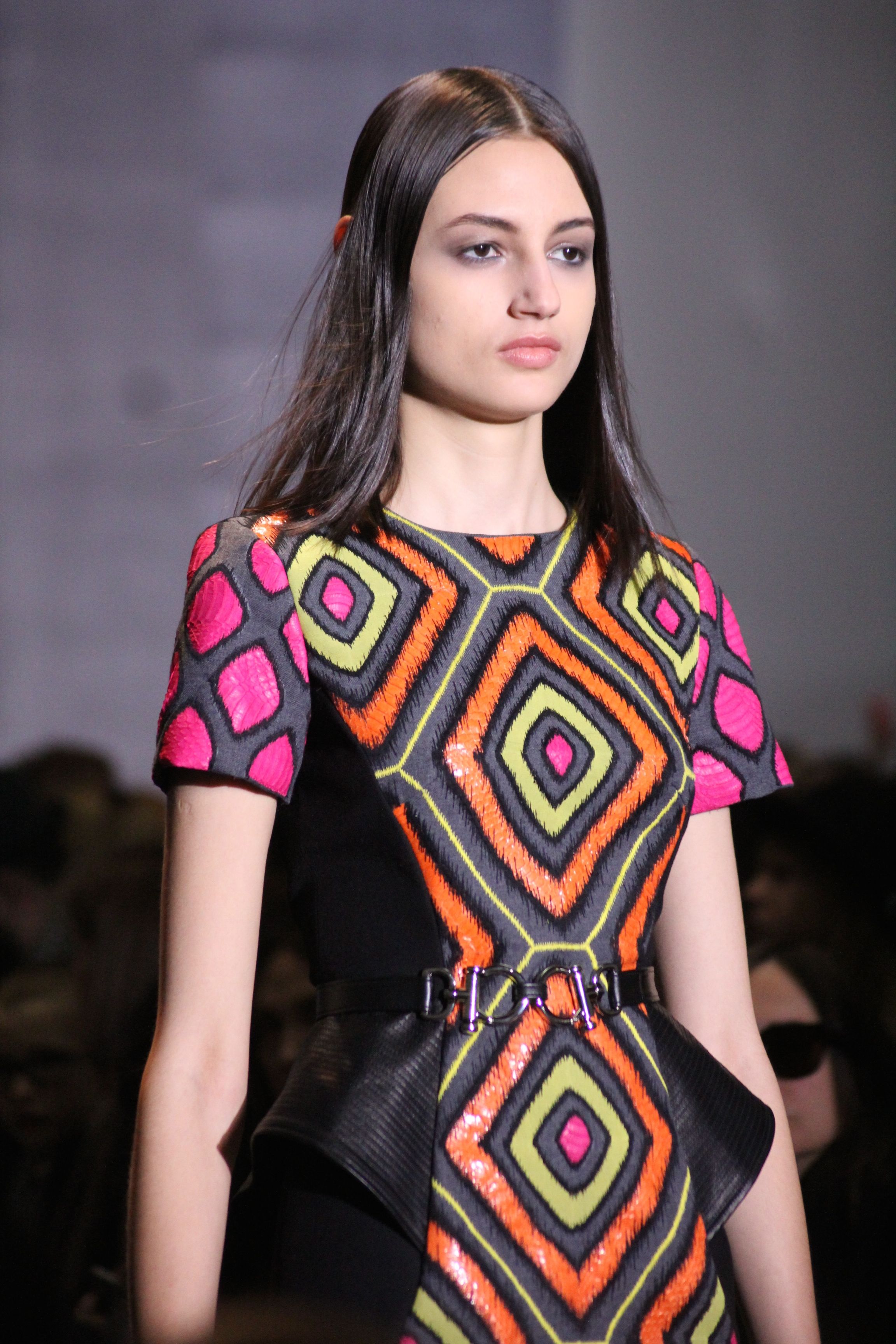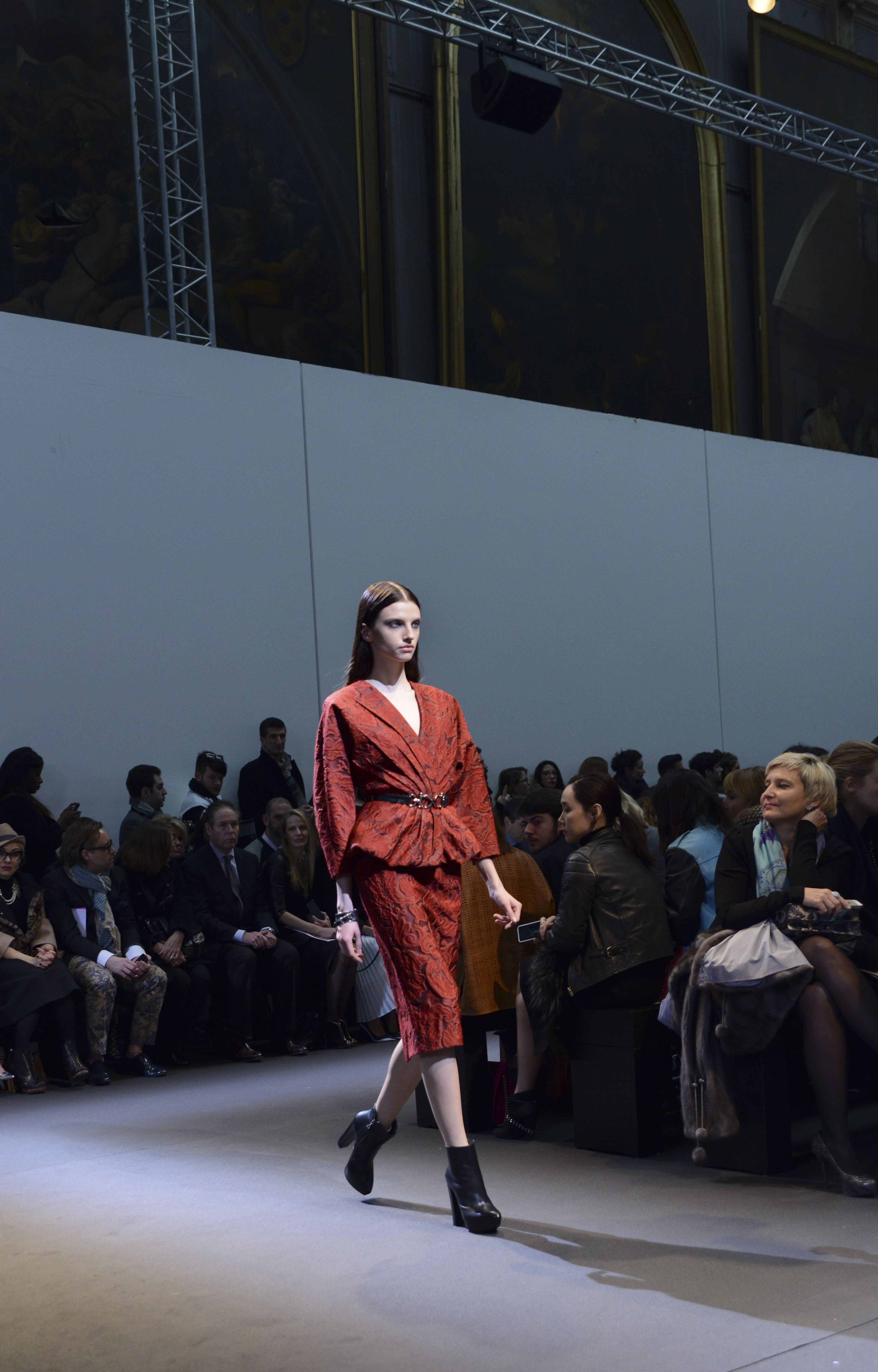 Andrew Gn nous surprend avec cette « good robot collection » excentrique et graphique inspirée de l’univers de Yayoi Kusama et Tina Chow. On retrouve donc une collection bigarrée, colorée, aux imprimés graphiques et ces fameux robots. La première partie du défilé propose une femme fatale, sophistiquée peu à peu celle ci devient plus agressive avec ces couleurs flash avant de devenir robotique et psychédélique.