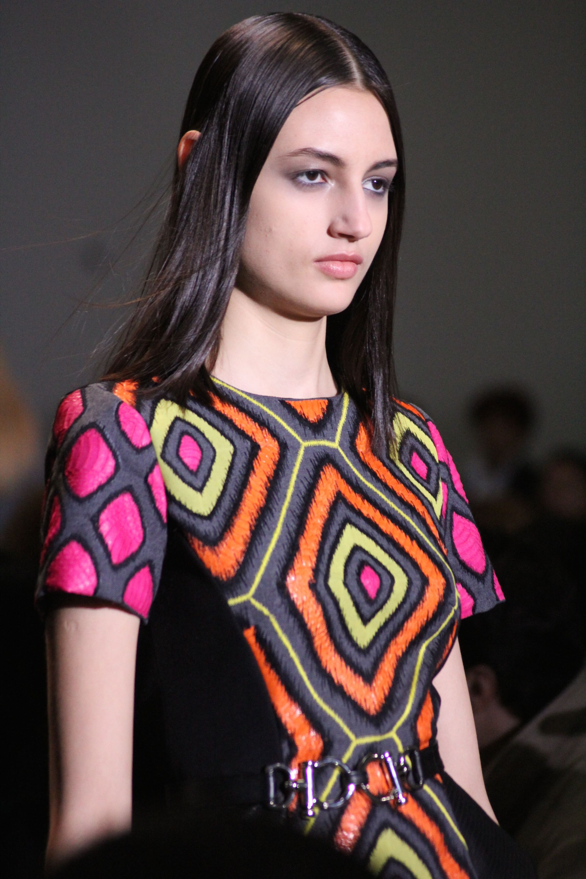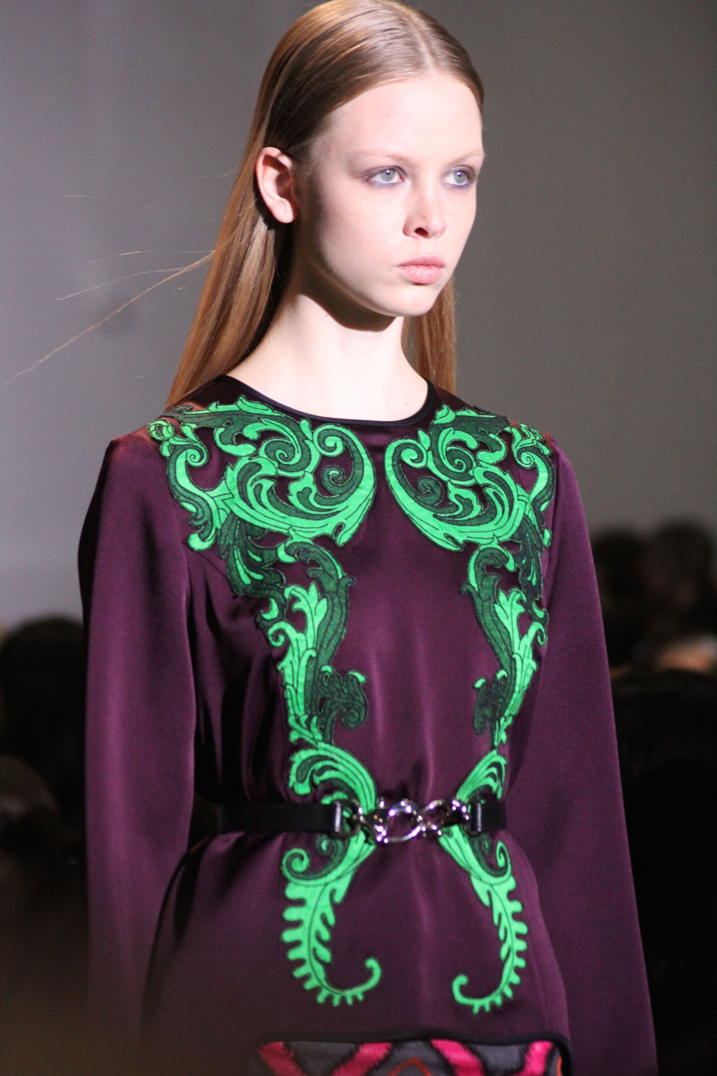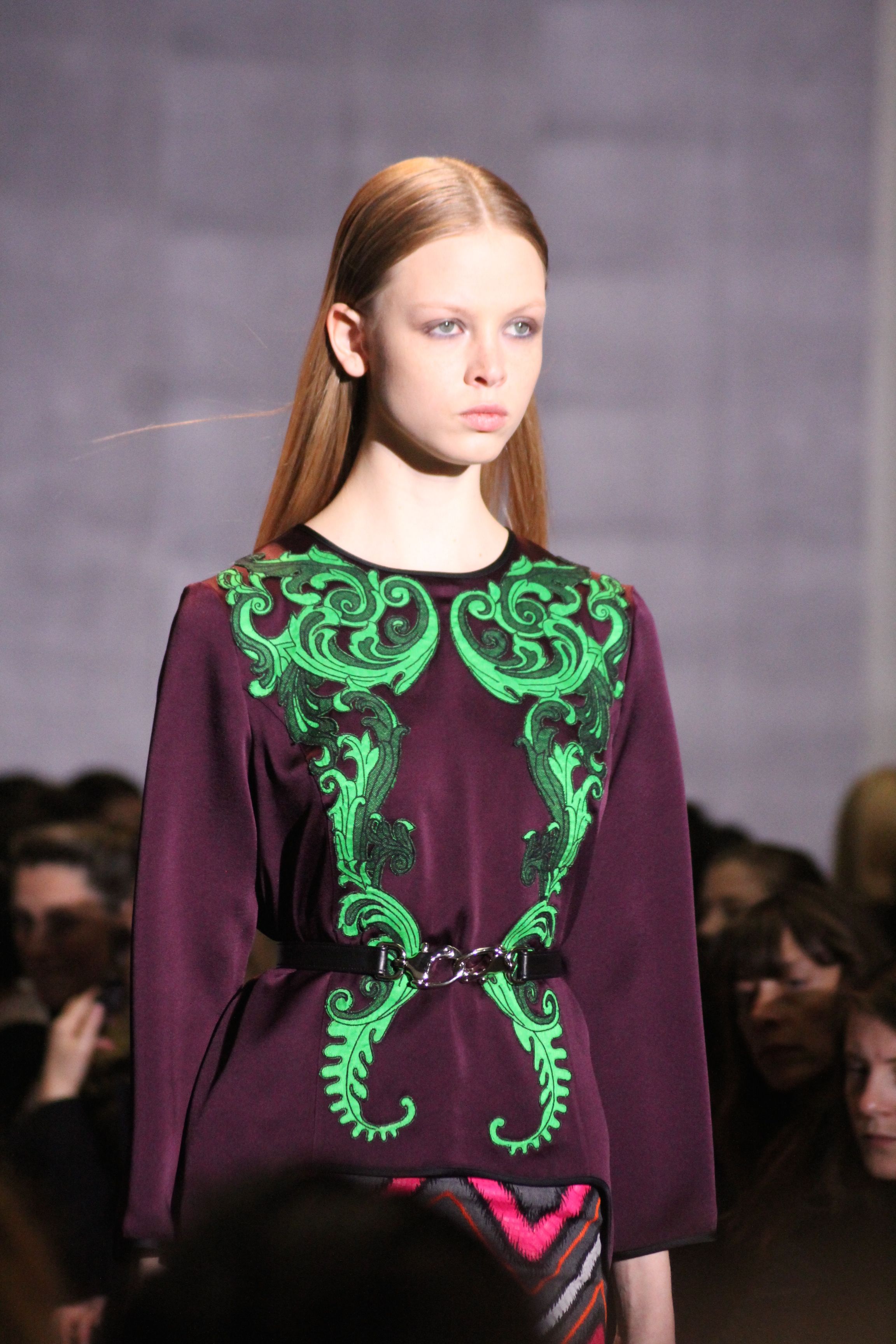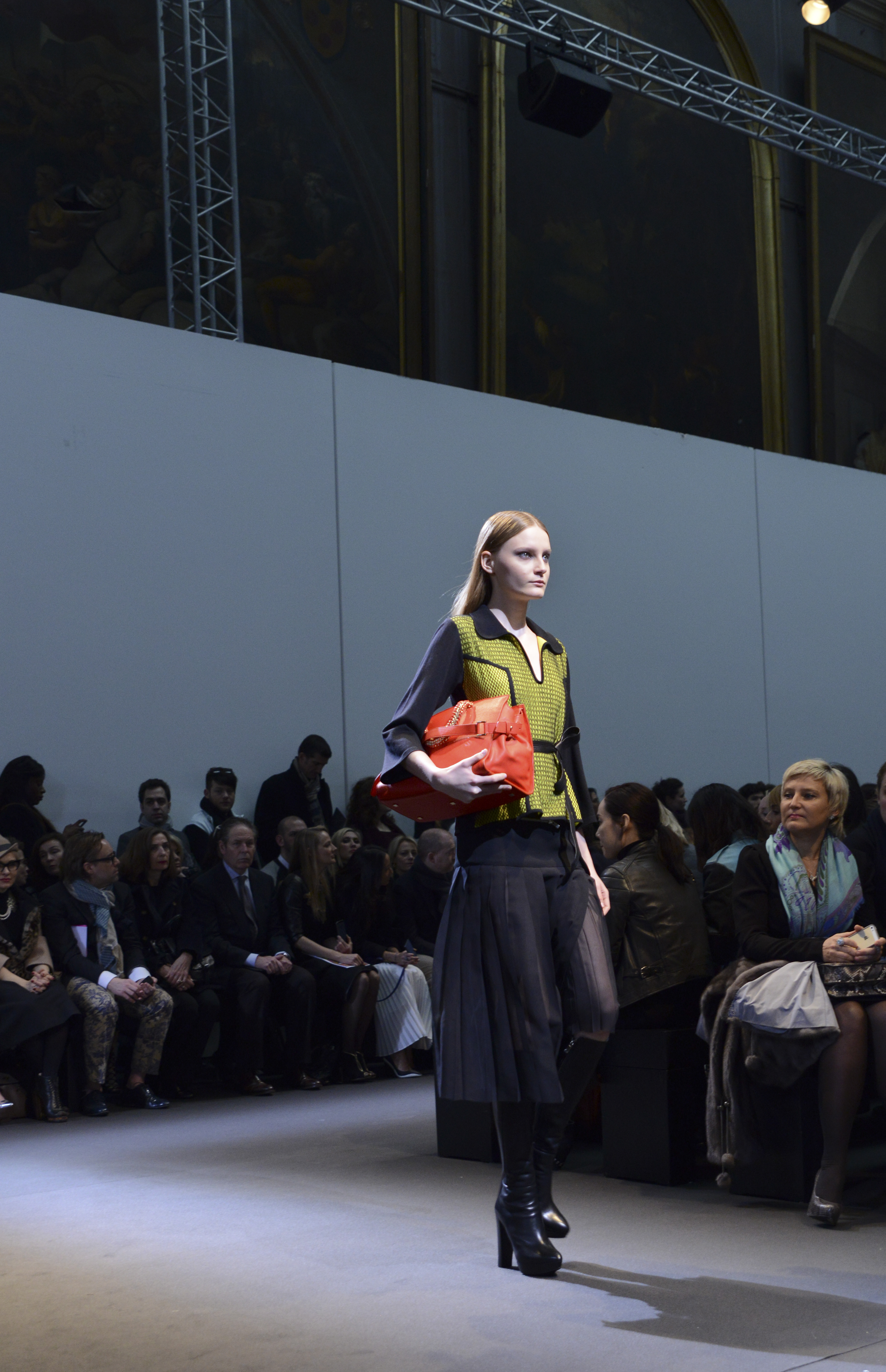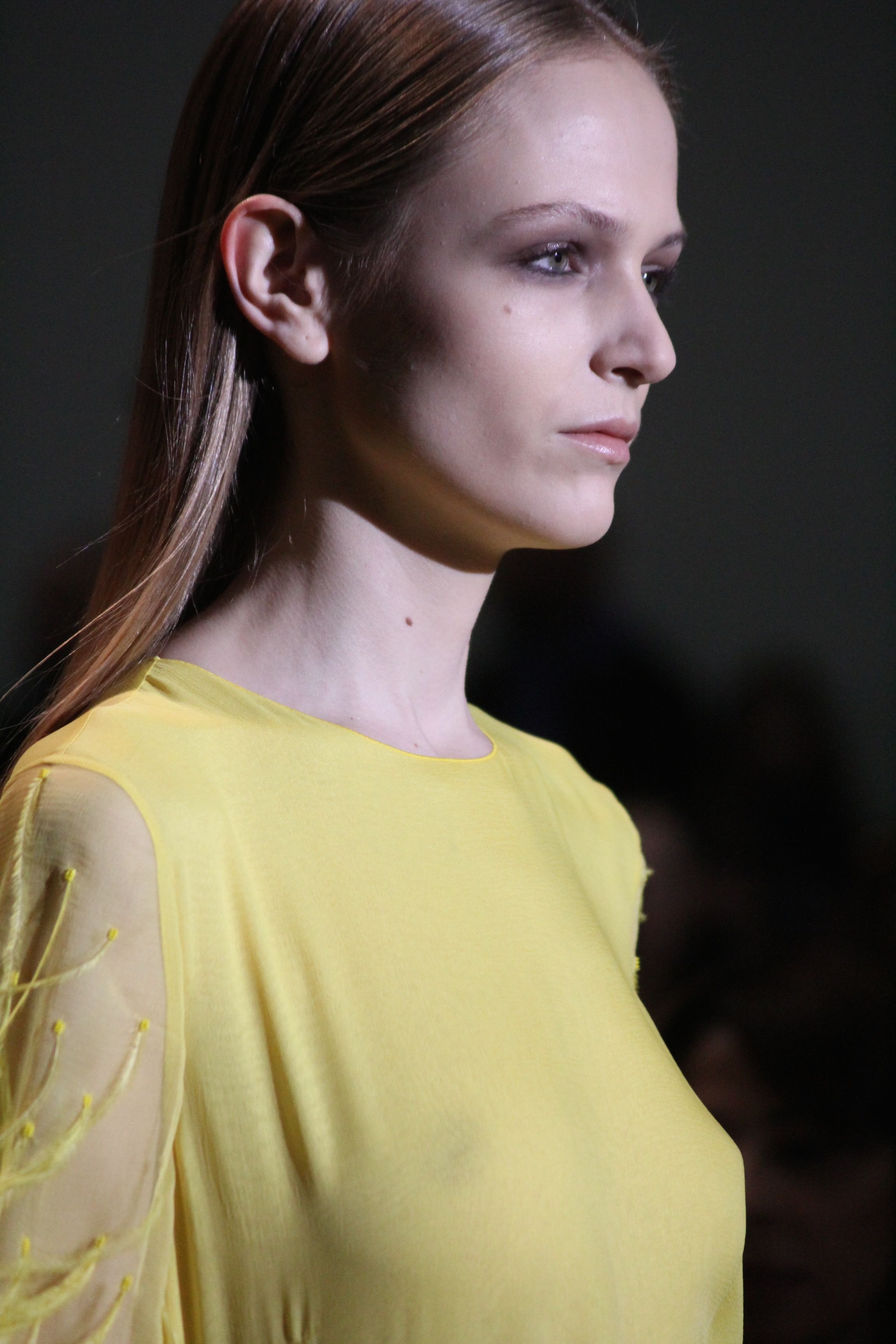 Andrew Gn nous surprend avec cette « good robot collection » excentrique et graphique inspirée de l’univers de Yayoi Kusama et Tina Chow. On retrouve donc une collection bigarrée, colorée, aux imprimés graphiques et ces fameux robots. La première partie du défilé propose une femme fatale, sophistiquée peu à peu celle ci devient plus agressive avec ces couleurs flash avant de devenir robotique et psychédélique.