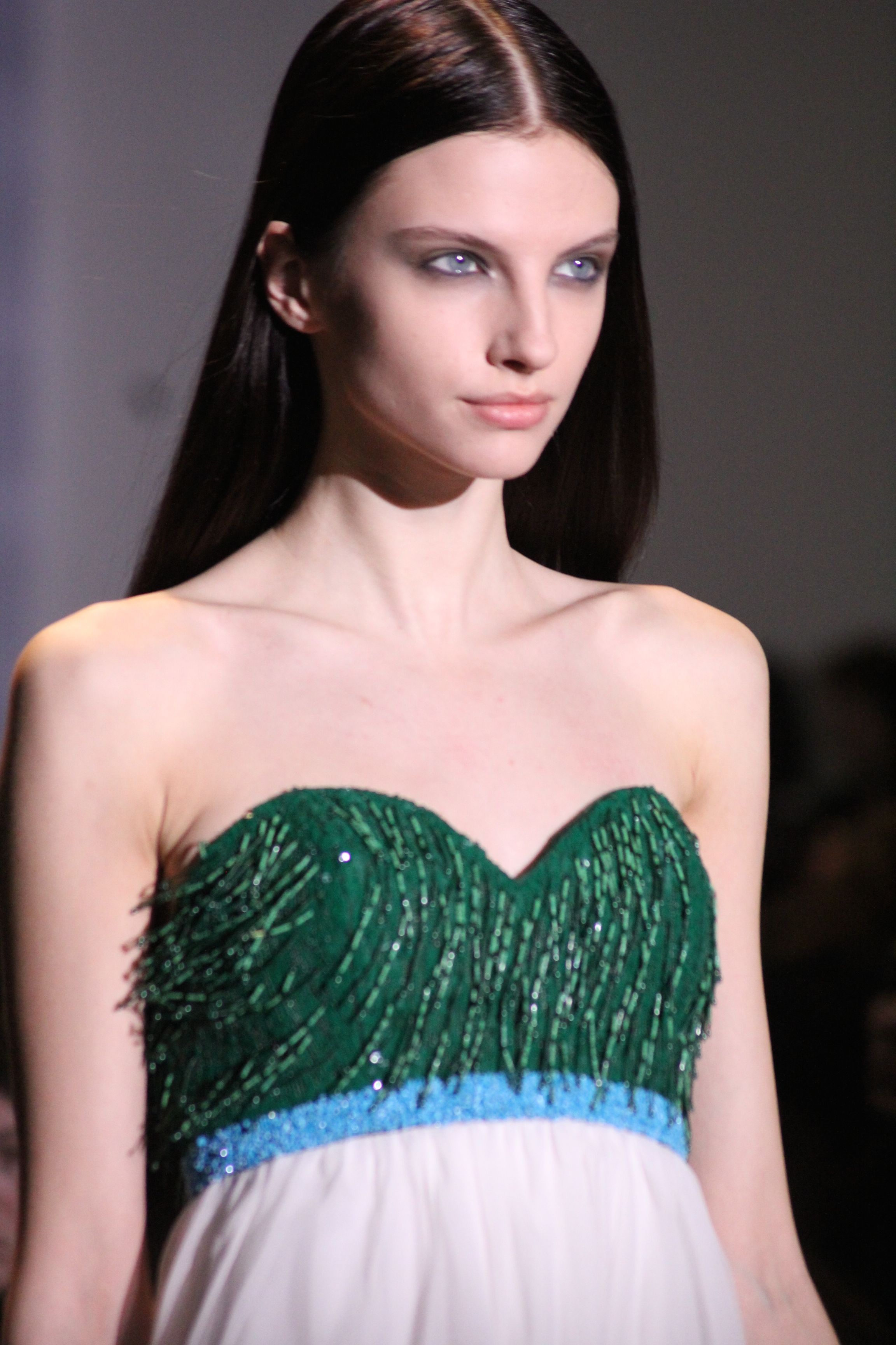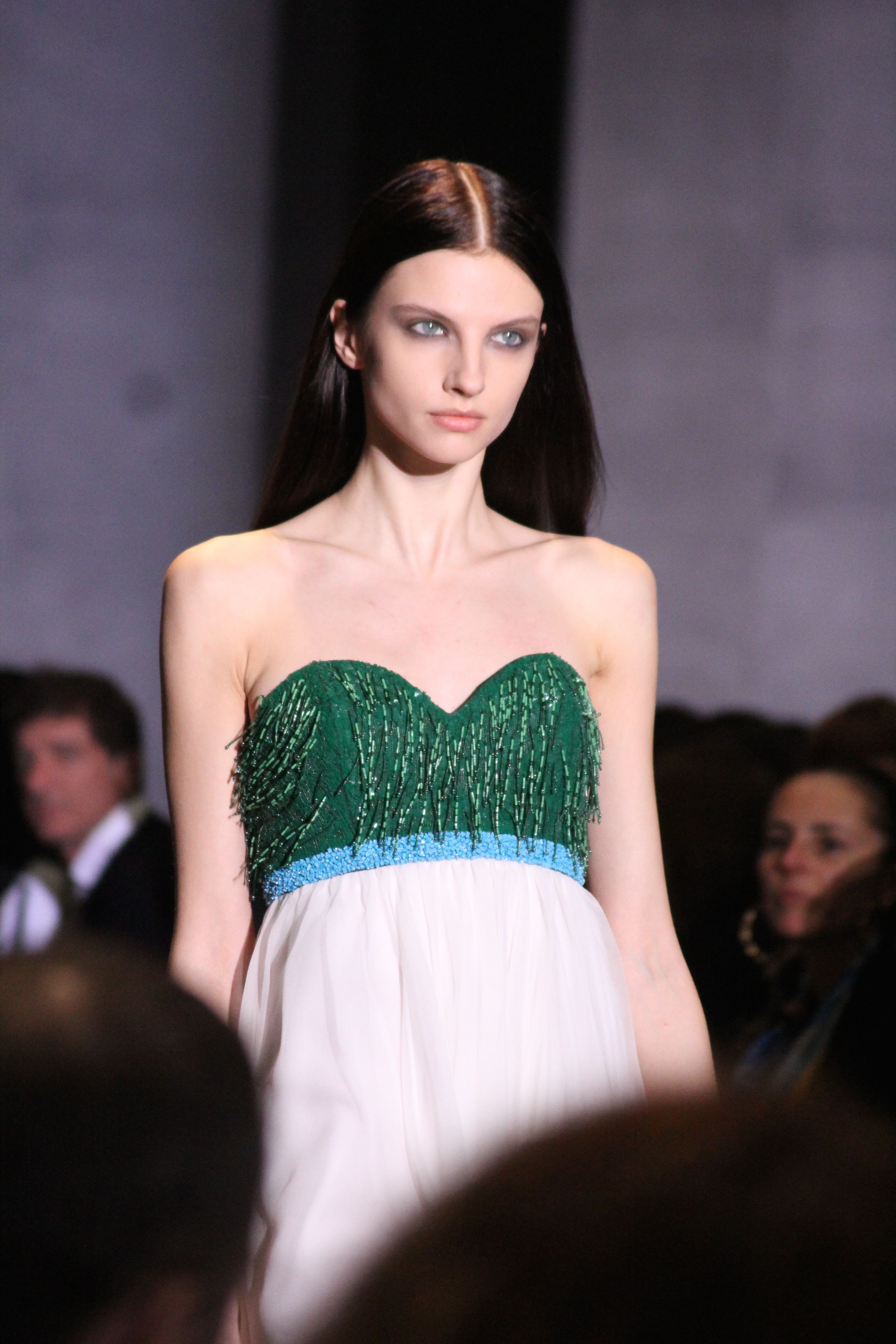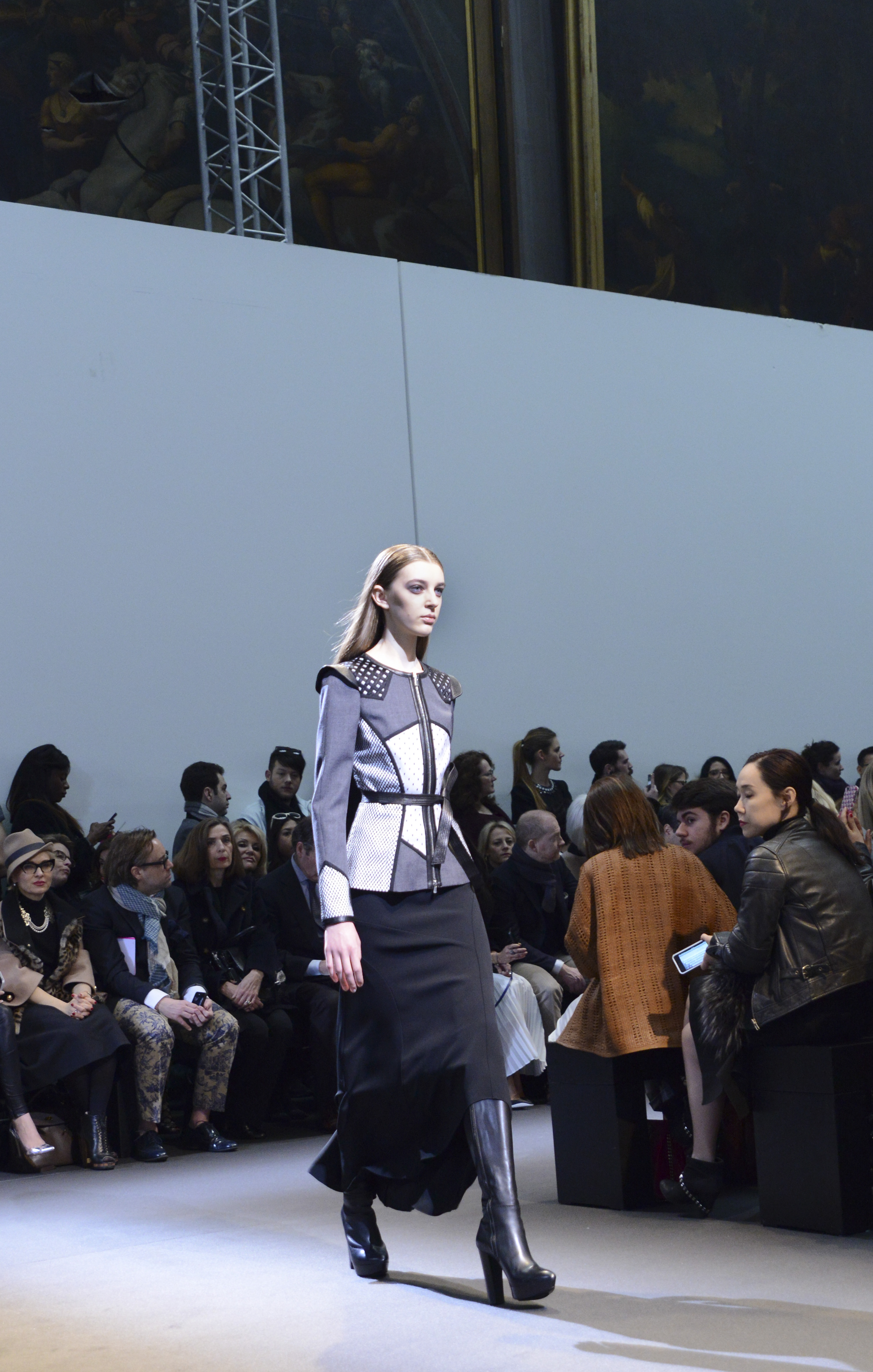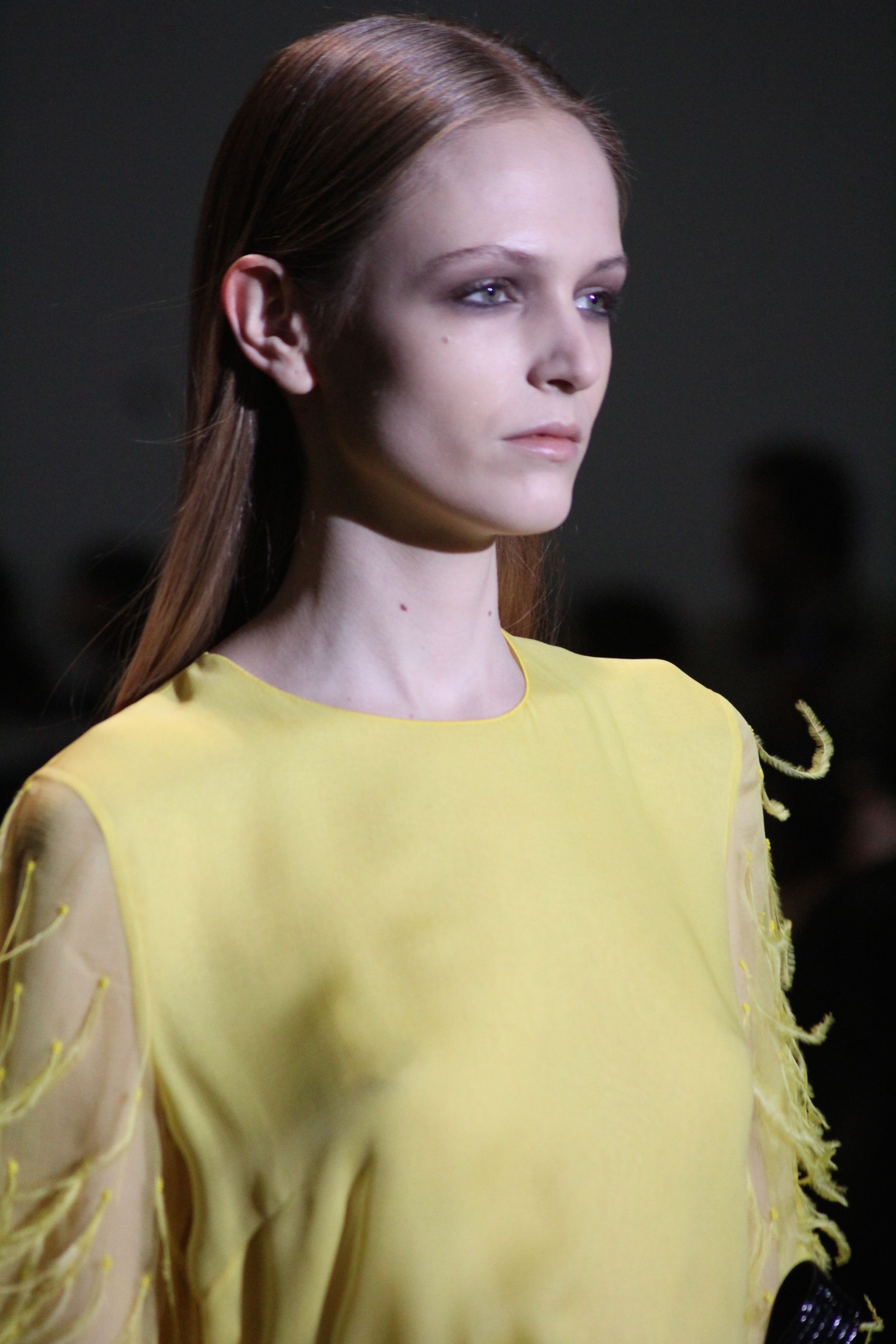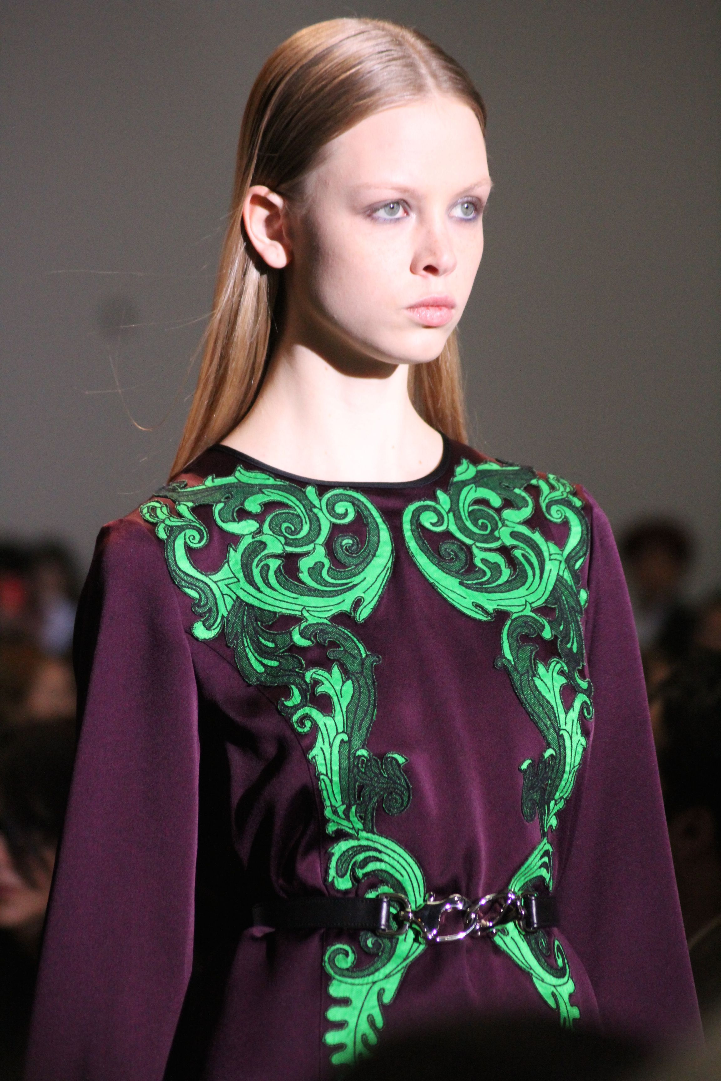 Andrew Gn nous surprend avec cette « good robot collection » excentrique et graphique inspirée de l’univers de Yayoi Kusama et Tina Chow. On retrouve donc une collection bigarrée, colorée, aux imprimés graphiques et ces fameux robots. La première partie du défilé propose une femme fatale, sophistiquée peu à peu celle ci devient plus agressive avec ces couleurs flash avant de devenir robotique et psychédélique.
