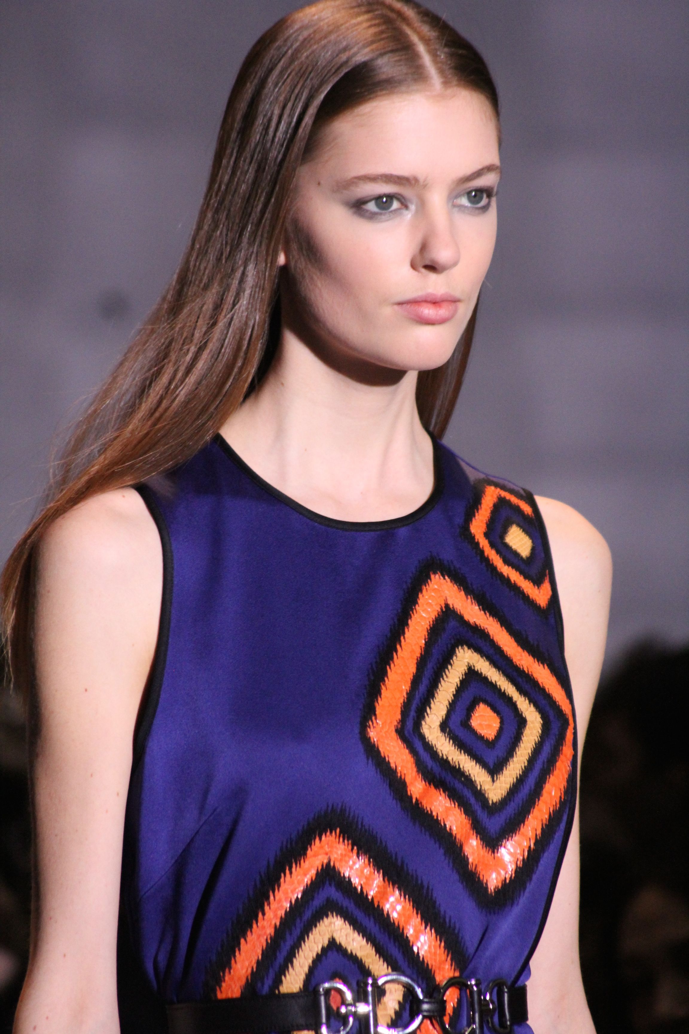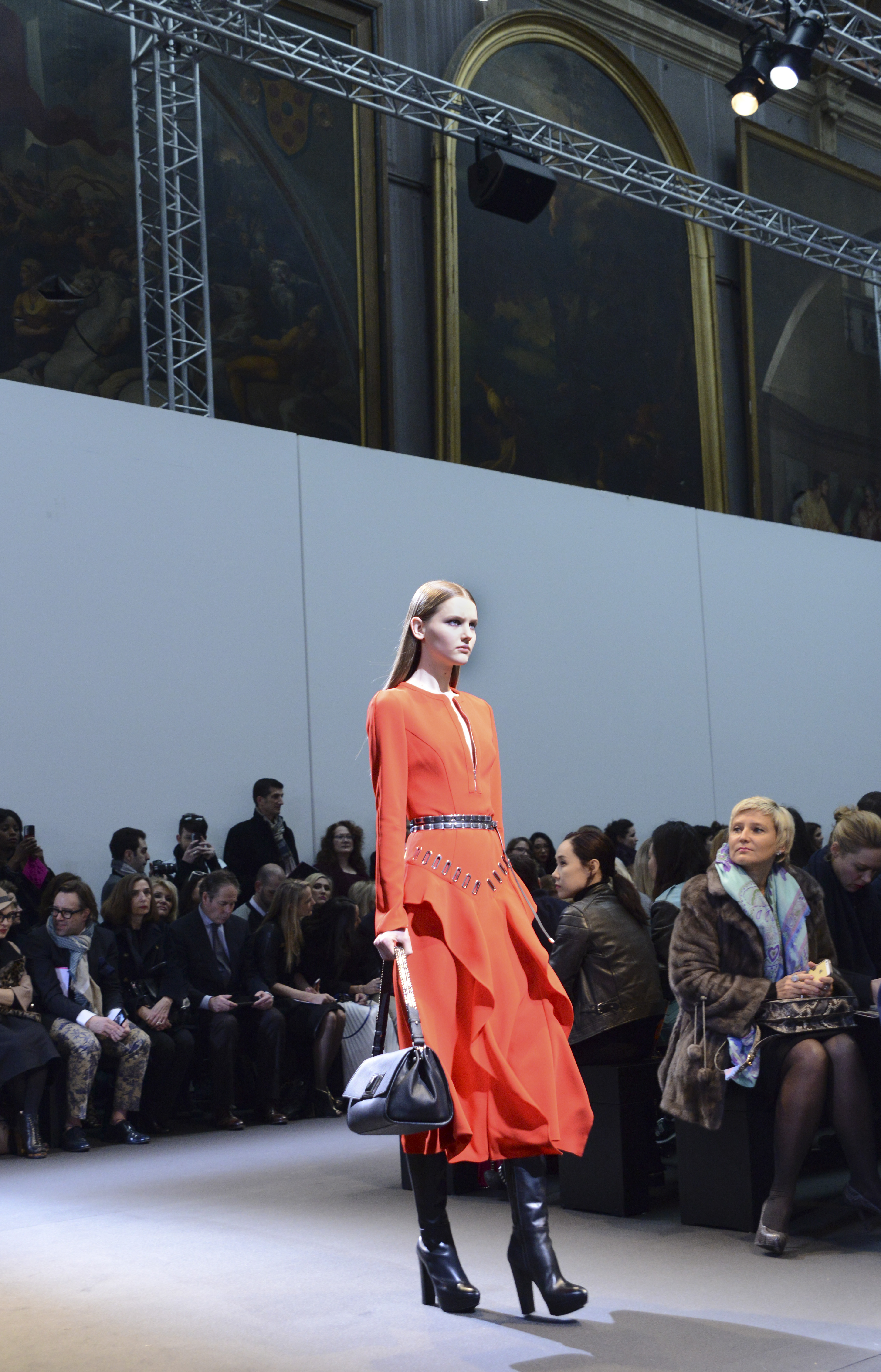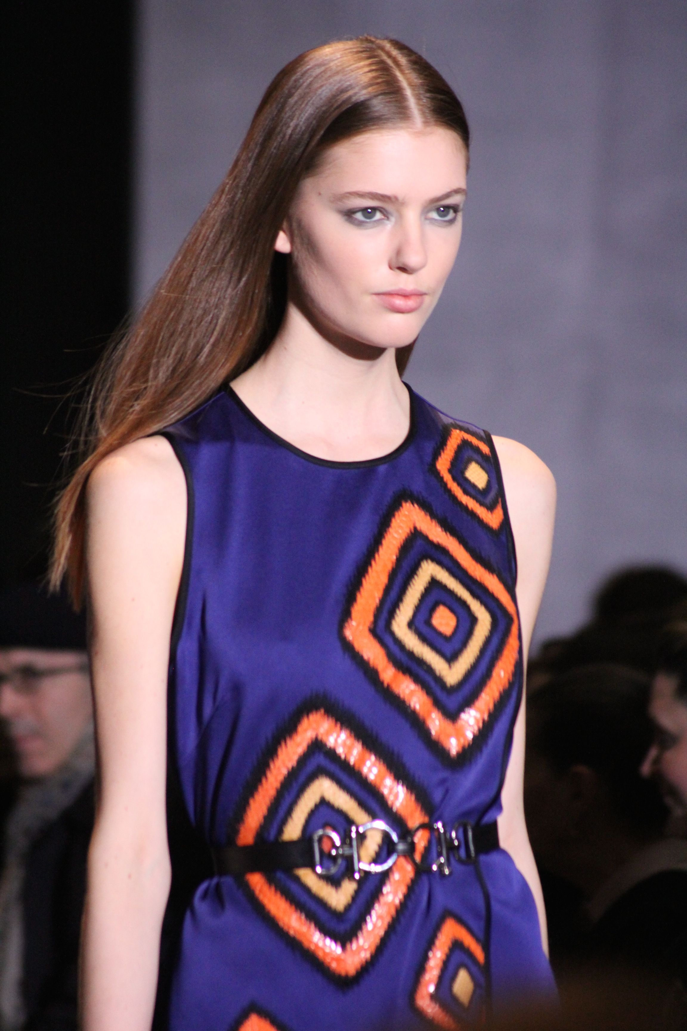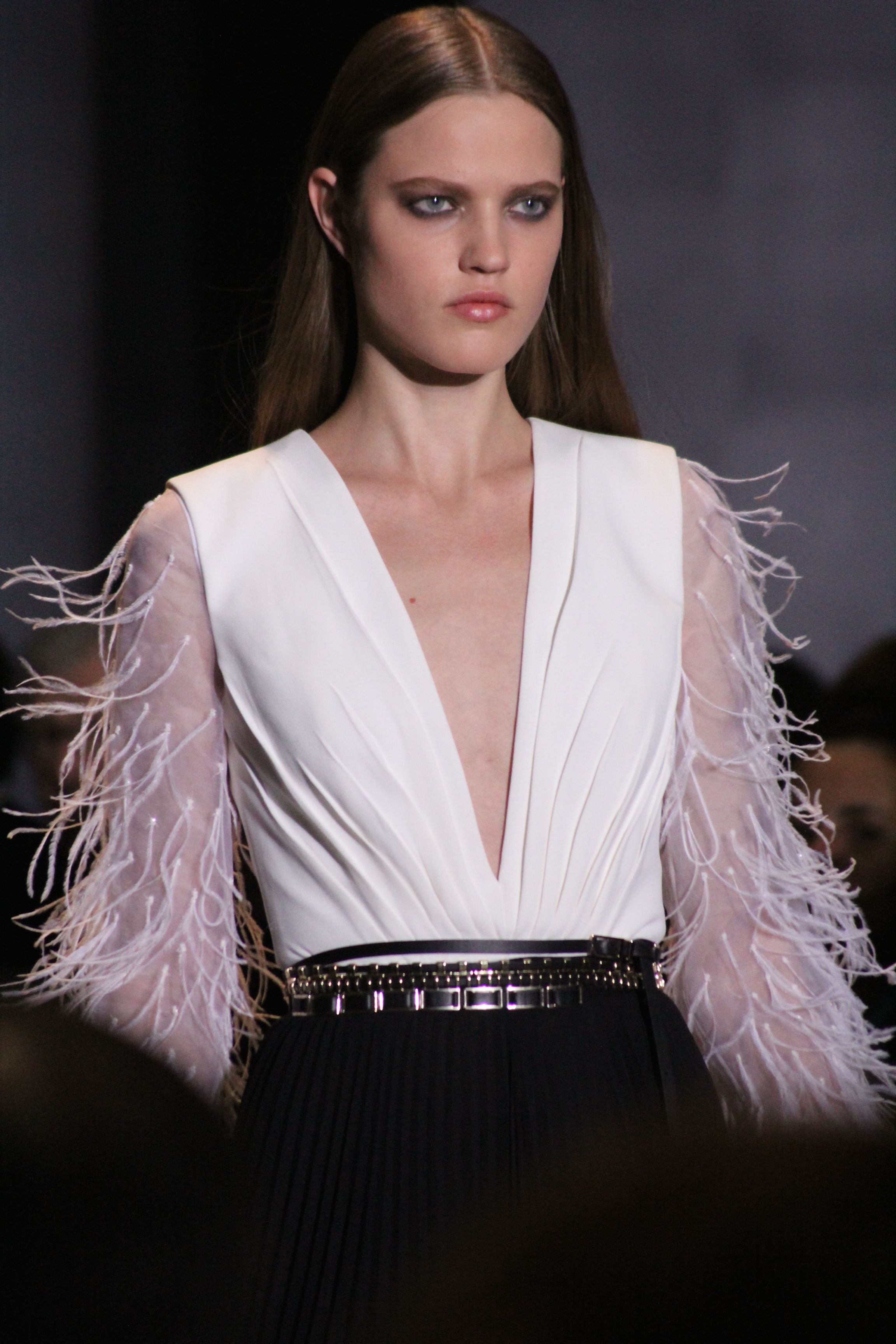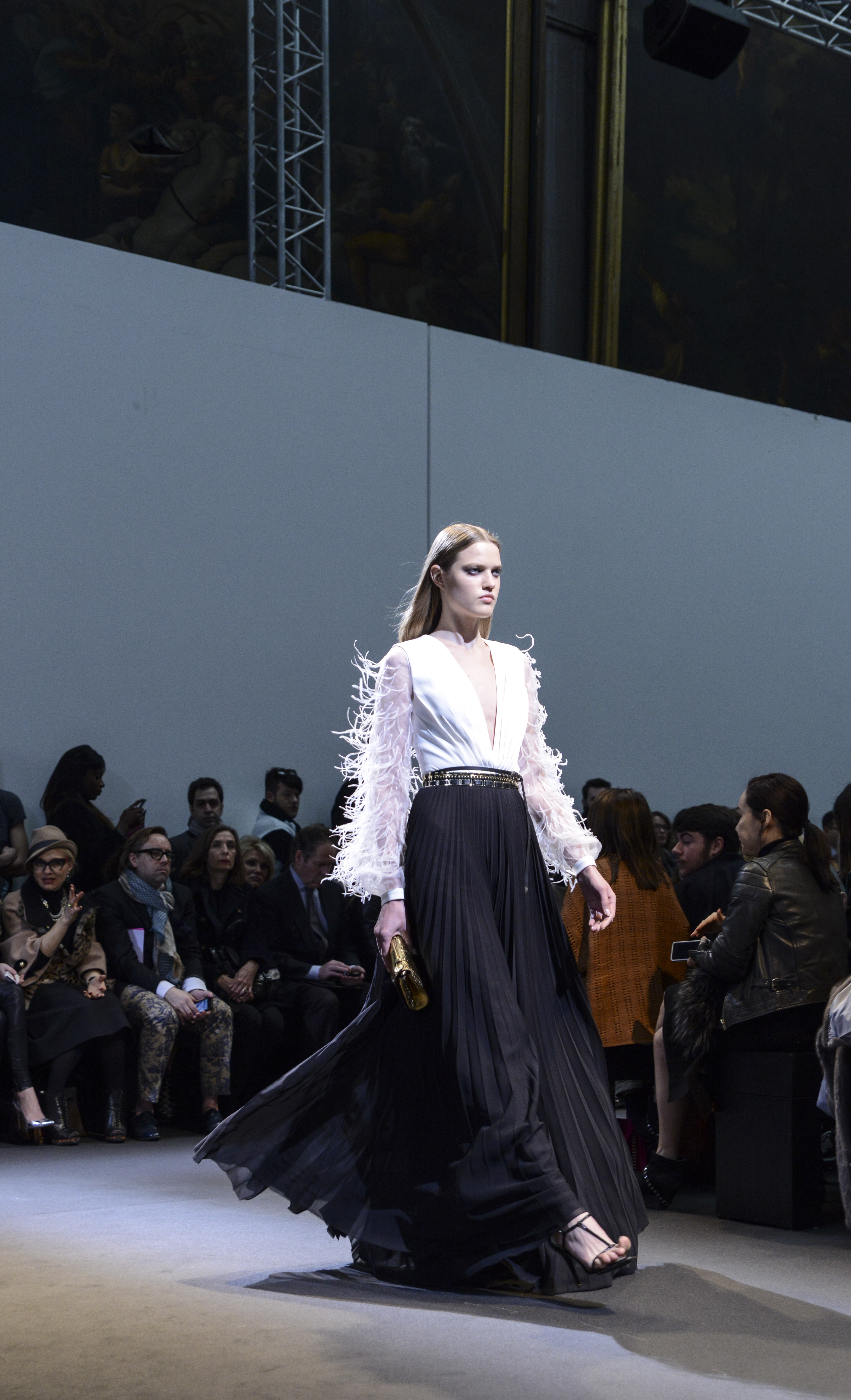 Andrew Gn nous surprend avec cette « good robot collection » excentrique et graphique inspirée de l’univers de Yayoi Kusama et Tina Chow. On retrouve donc une collection bigarrée, colorée, aux imprimés graphiques et ces fameux robots. La première partie du défilé propose une femme fatale, sophistiquée peu à peu celle ci devient plus agressive avec ces couleurs flash avant de devenir robotique et psychédélique.