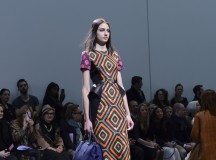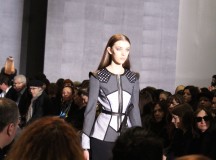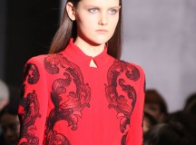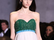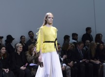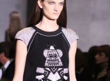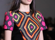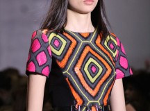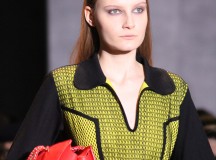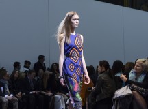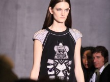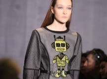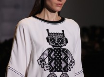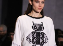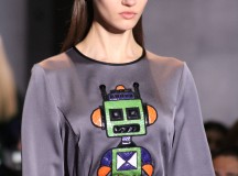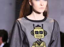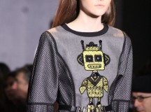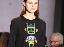 Andrew Gn nous surprend avec cette « good robot collection » excentrique et graphique inspirée de l’univers de Yayoi Kusama et Tina Chow. On retrouve donc une collection bigarrée, colorée, aux imprimés graphiques et ces fameux robots. La première partie du défilé propose une femme fatale, sophistiquée peu à peu celle ci devient plus agressive avec ces couleurs flash avant de devenir robotique et psychédélique.