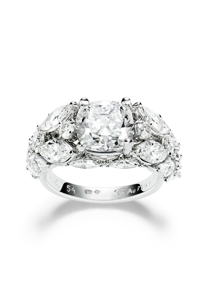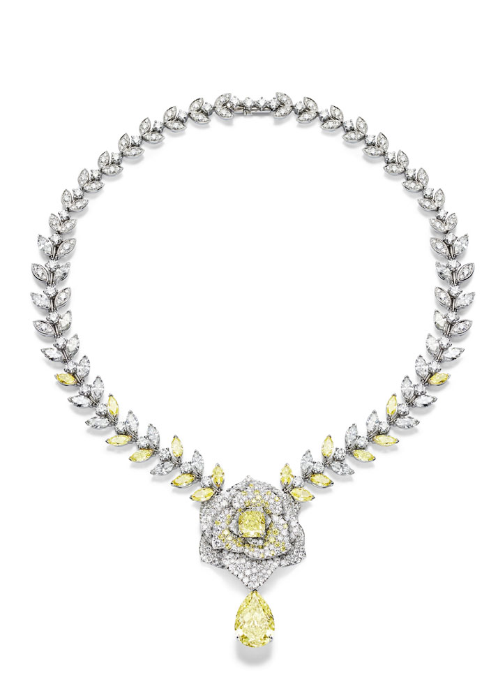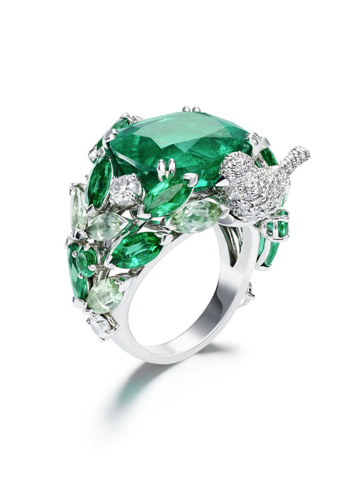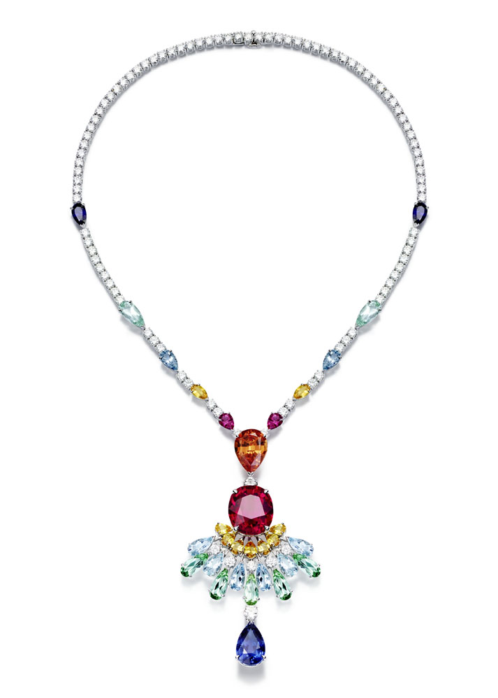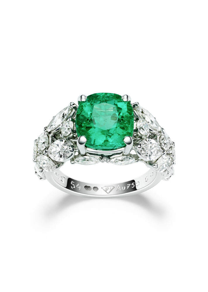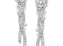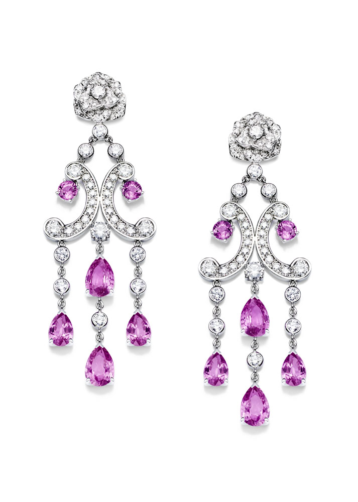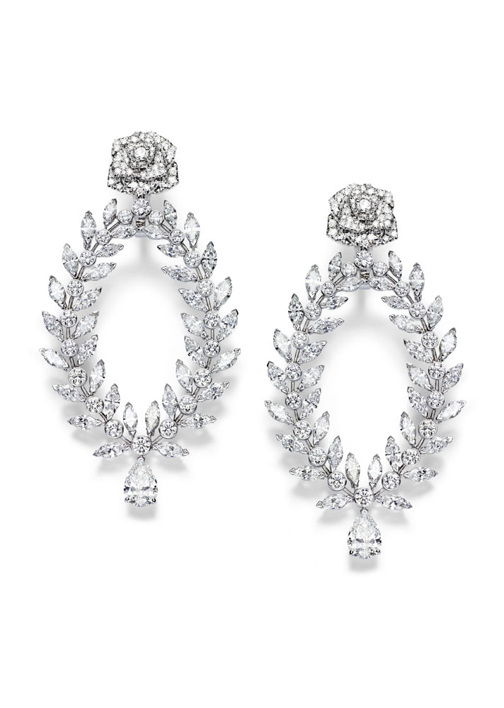 Les emmaillements précis et les chatons aux fines griffes sont fabriqués un à un à la main par les artisans joailliers de la Maison, et mettent en valeur les formes délicates et la beauté des pierres précieuses, qui épousent souplement décolletés et poignets.
