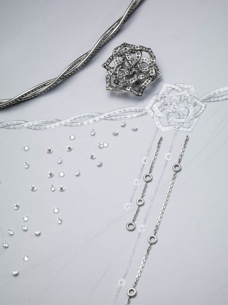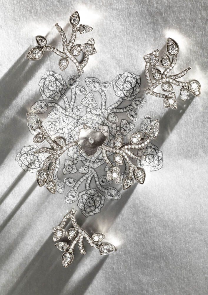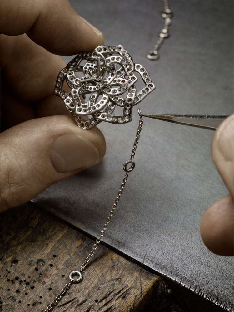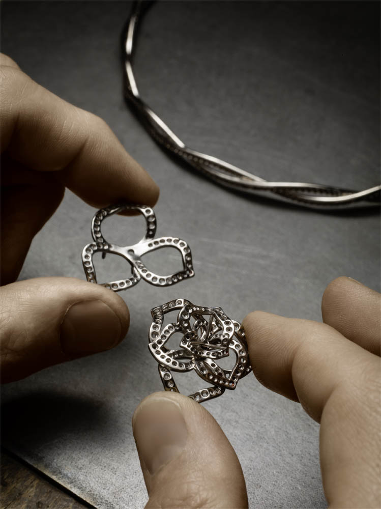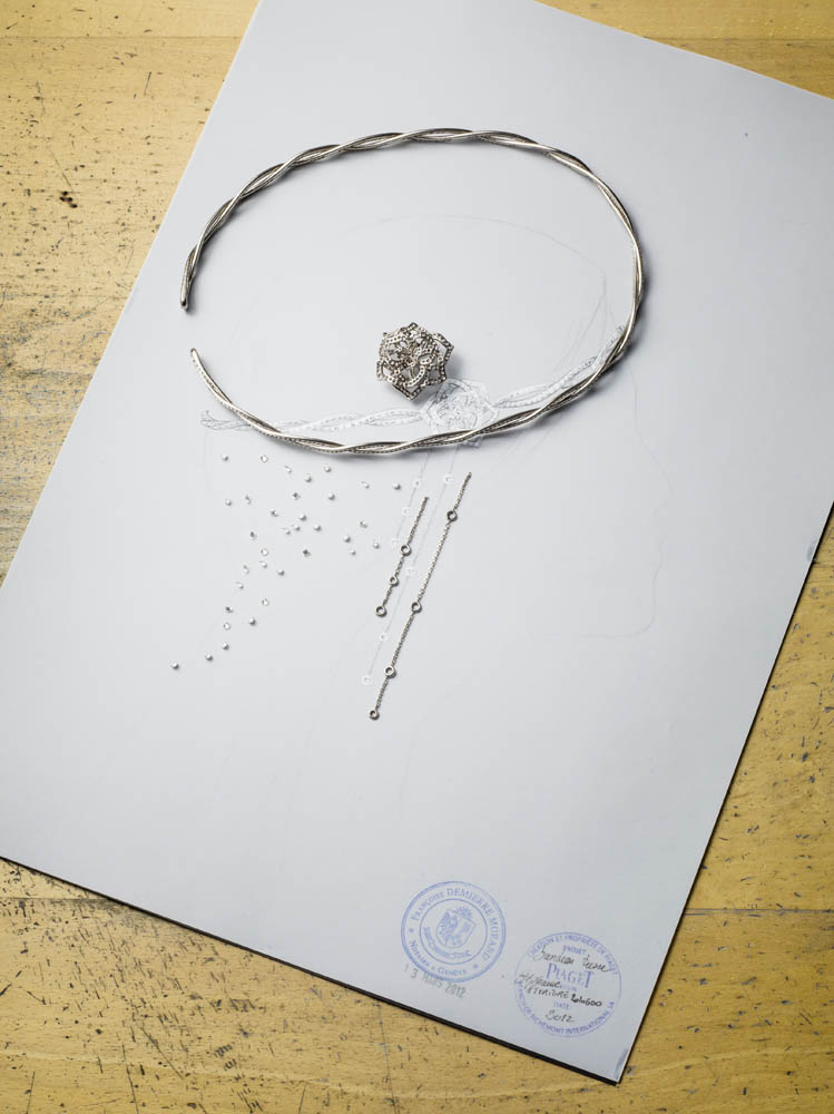 Entièrement fabriquée dans les ateliers de joallierie de Piaget, la collection affectionne les bijoux aux portés multiples, les peignes, les tiares ou encore les montres manchettes et à secrets, chères à la marque. Elle redécouvre pour l’occasion les techniques exclusives de la haute joaillerie dont la sensibilité se marie avec bonheur à la précision joaillère.