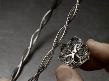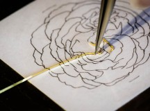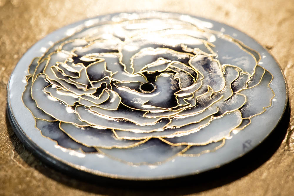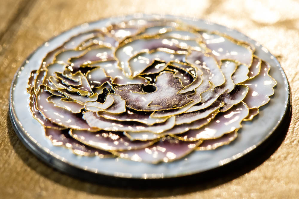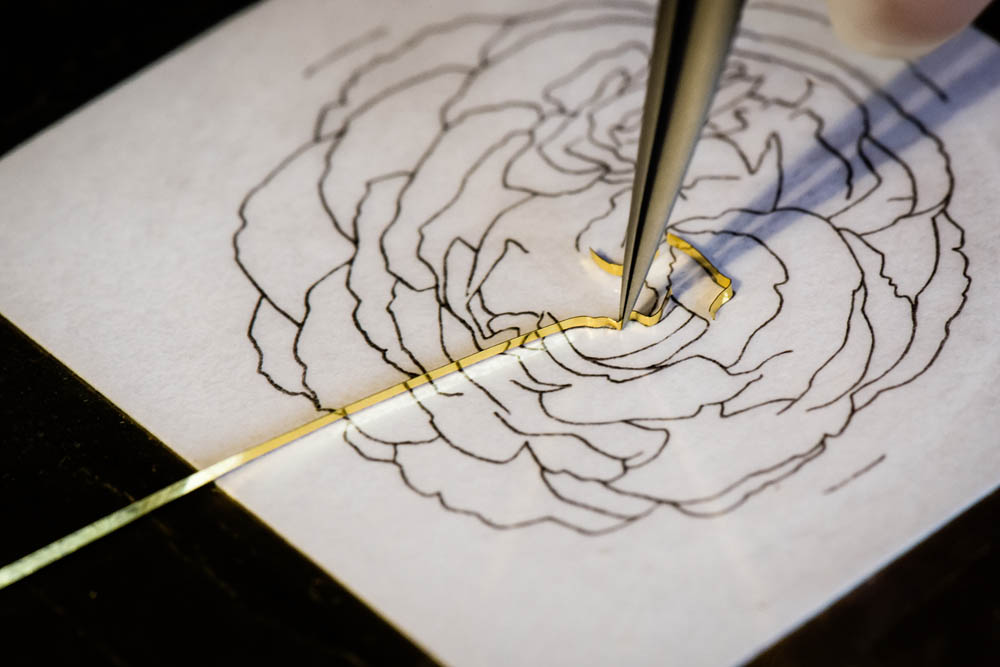 La technique de l’émail cloisonné consiste en la formation de petites alvéoles créant un motif. Dans un premier temps, les contours du motif décoratif désiré sont tracés avec du fil d’argent ou d’or. La première préoccupation de Piaget étant d’assurer une qualité exceptionnelle, la Maison utilise exclusivement un fil d’or pour délimiter les alvéoles. Une fois que le dessin est reproduit, il est fixé avec de la gomme adragante qui disparaît pendant la cuisson.