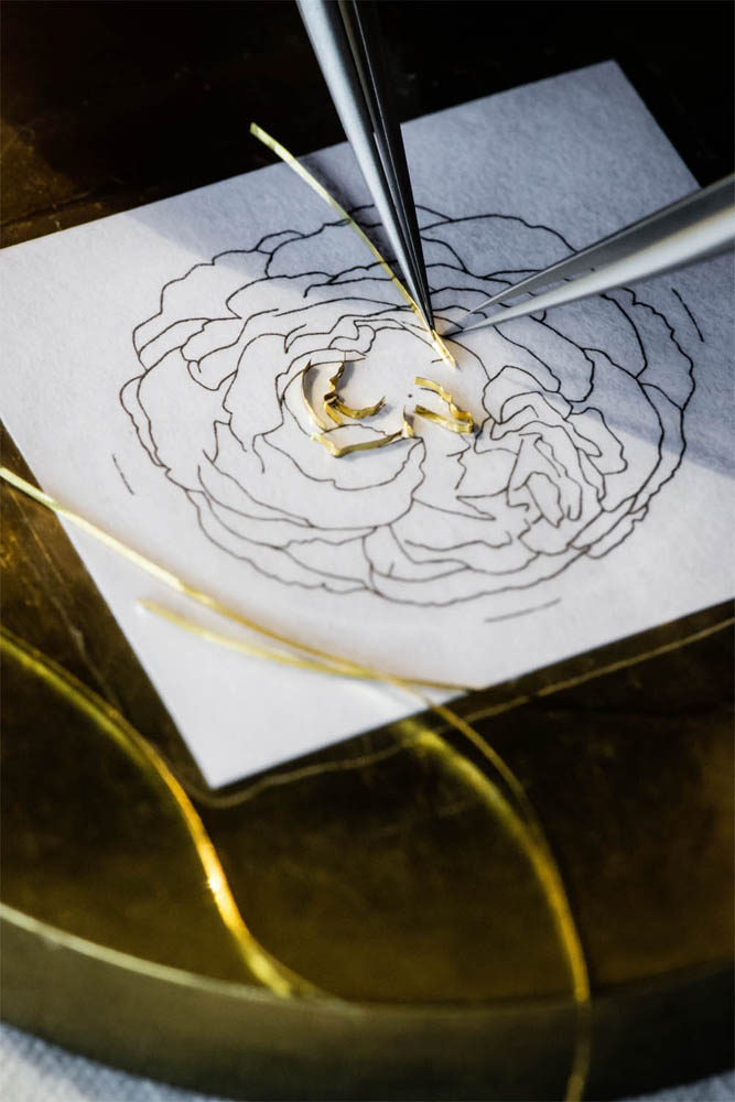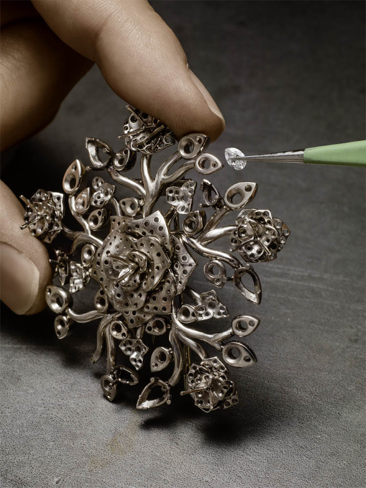 Pour le travail de glyptique, les pierres dures sont gravées, sculptées et taillées pour rendre à chaque pétale son relief et l’émotion qu’il véhicule.
