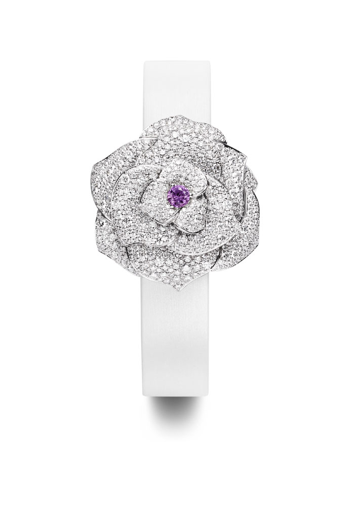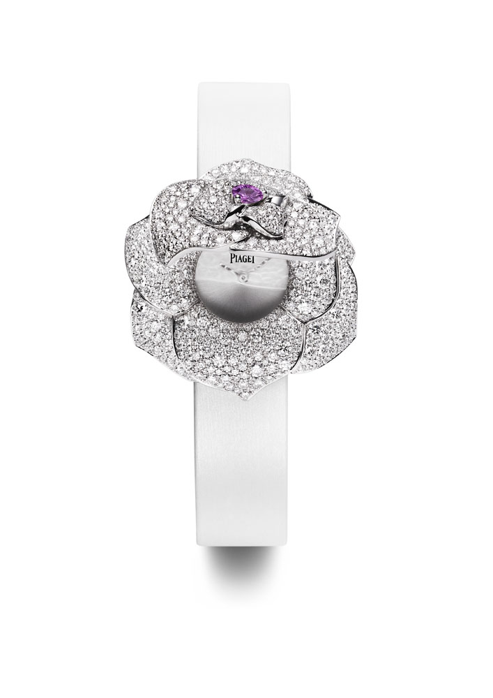 Piaget a mis toute son expertise, et tout son savoir-faire joaillier dans cette collection particulièrement vaste, puisqu’elle est composée de 100 pièces d’une richesse créative. Elle regroupe des montres et des bijoux de joaillerie et de haute joaillerie ainsi que des pièces Métiers d’art, reliés par le fil conducteur de la rose et l’esprit de Joséphine qui habite chaque pièce.