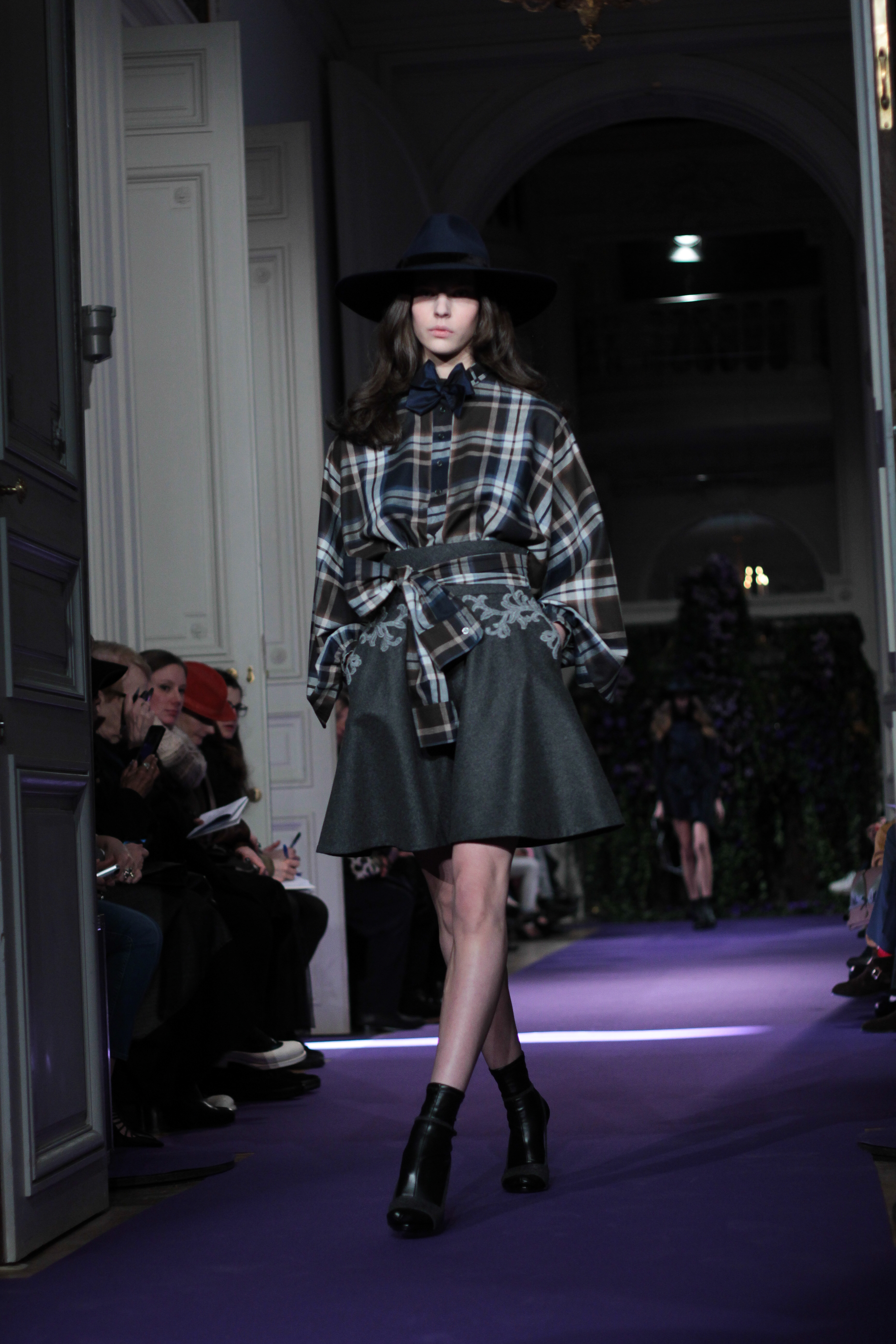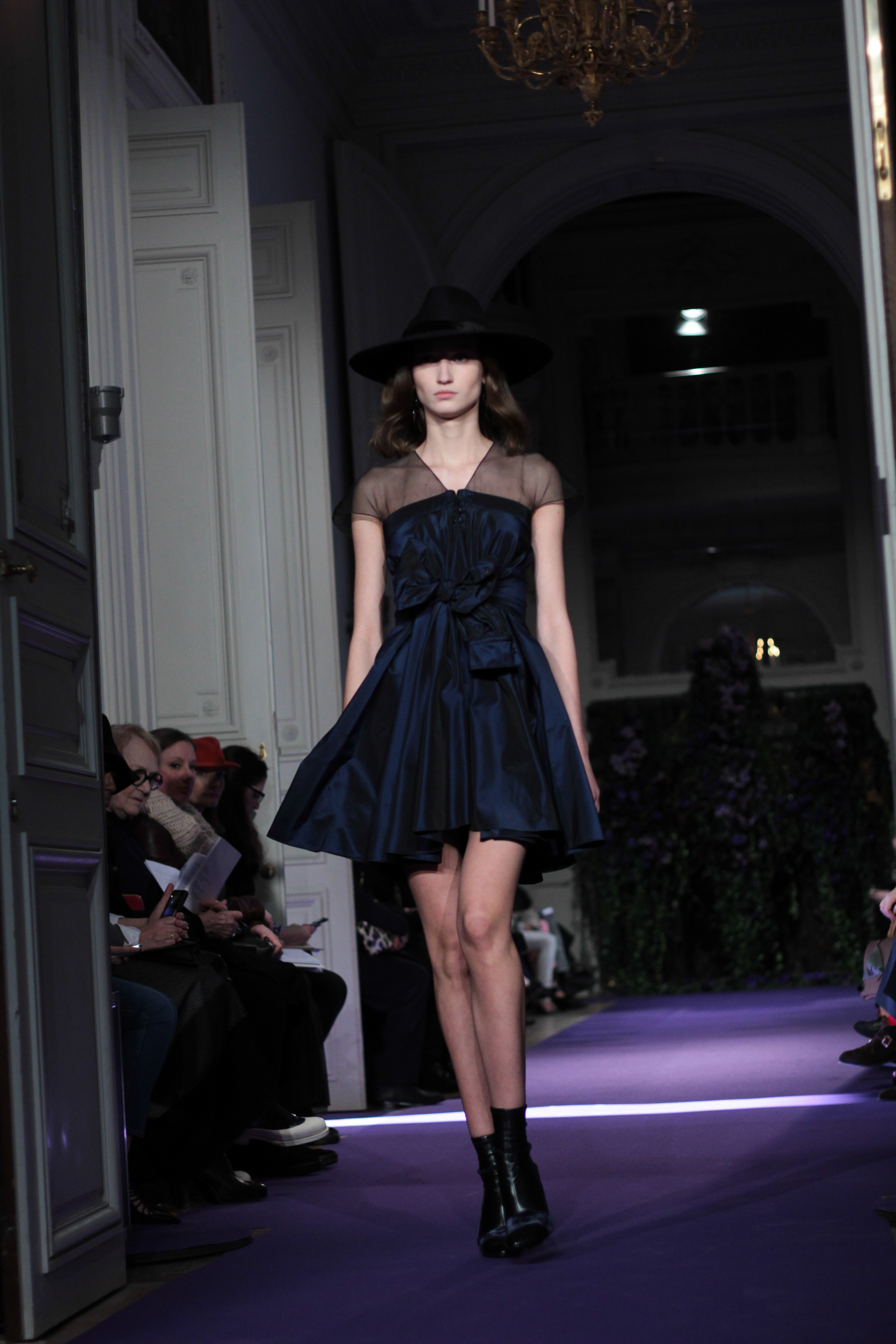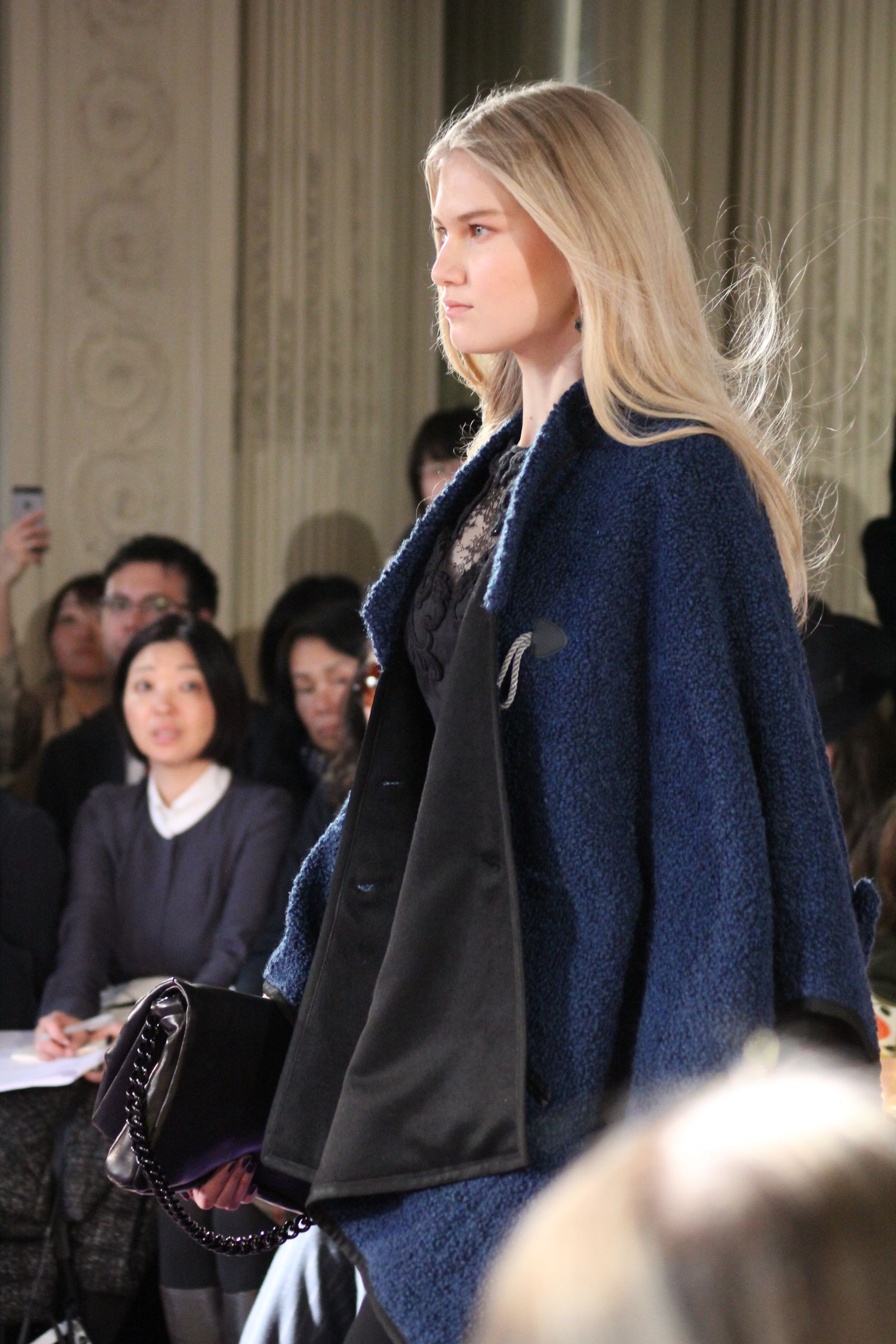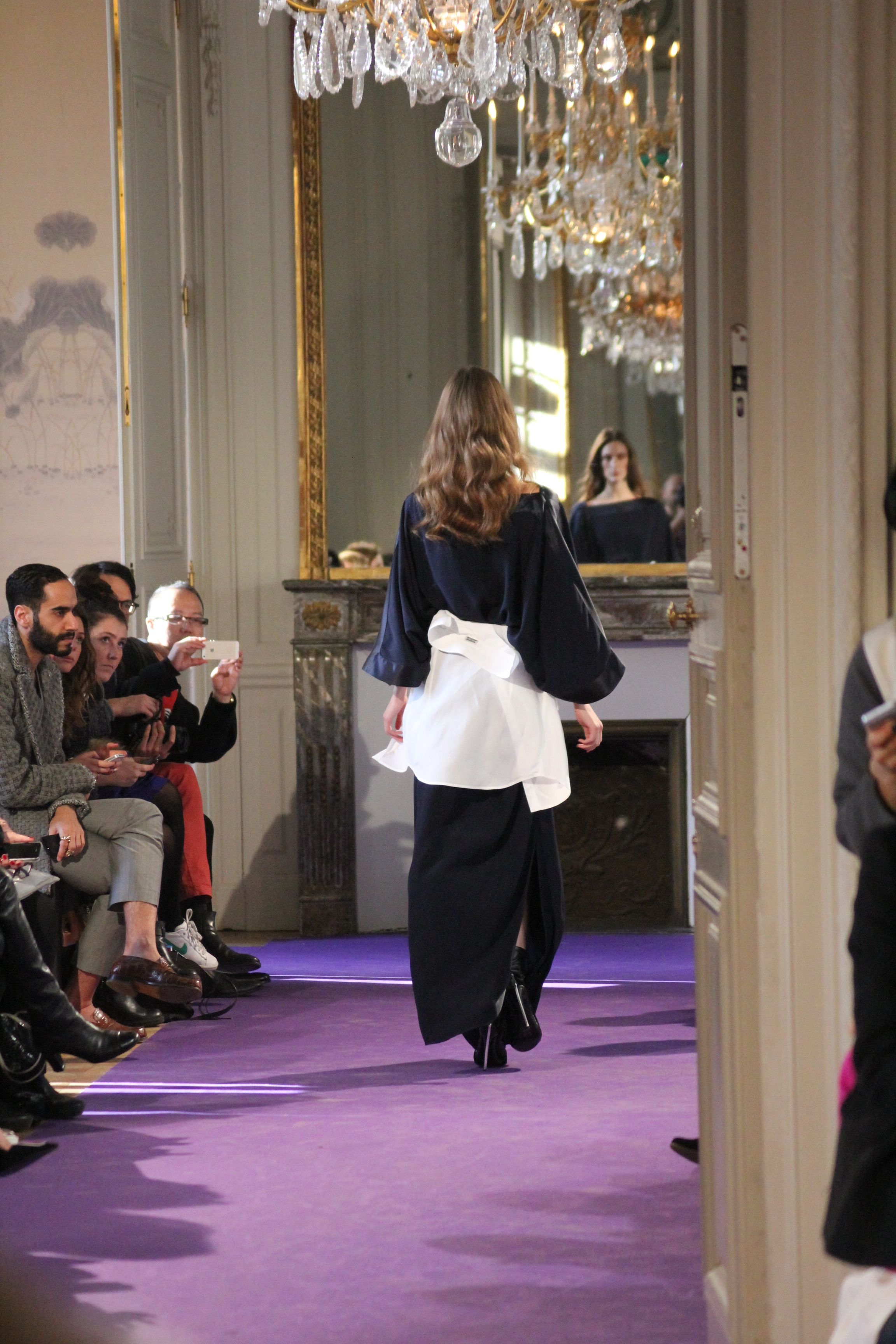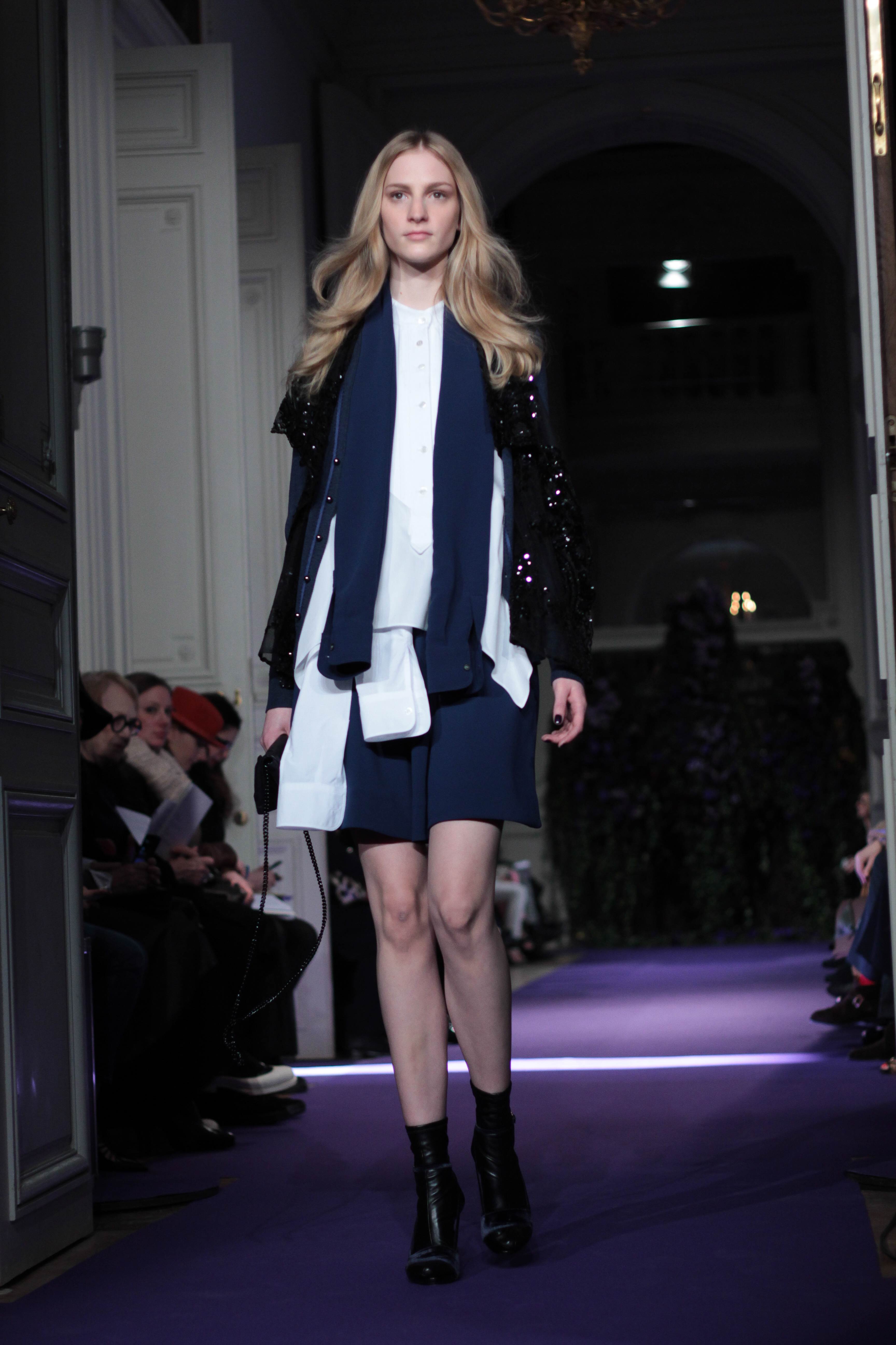 Alexis Mabille nous propose une collection Automne Hiver 2014-2015 en mouvement, le maître mot est la fluidité, le vent. Les coupes sont précises mais fluides.