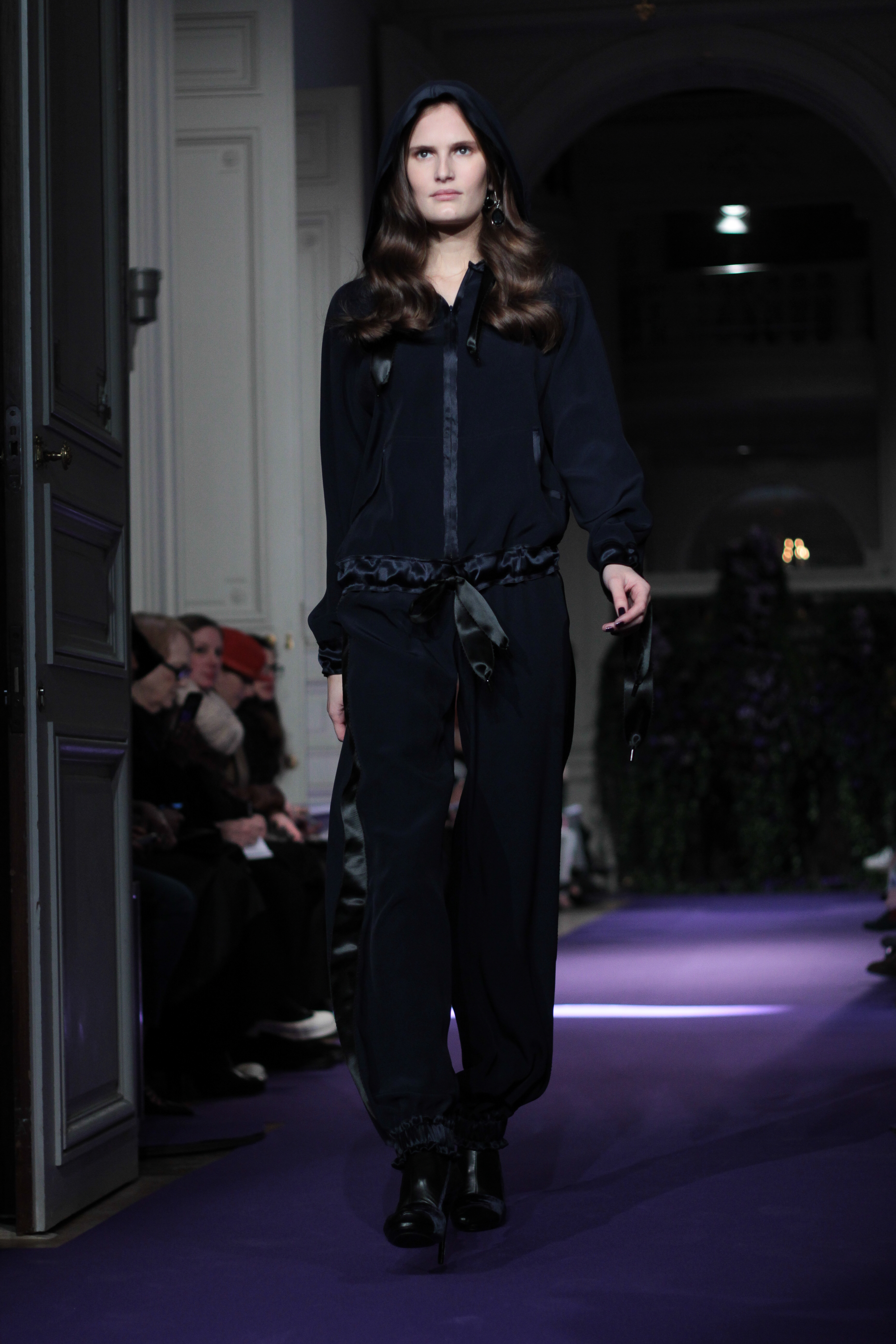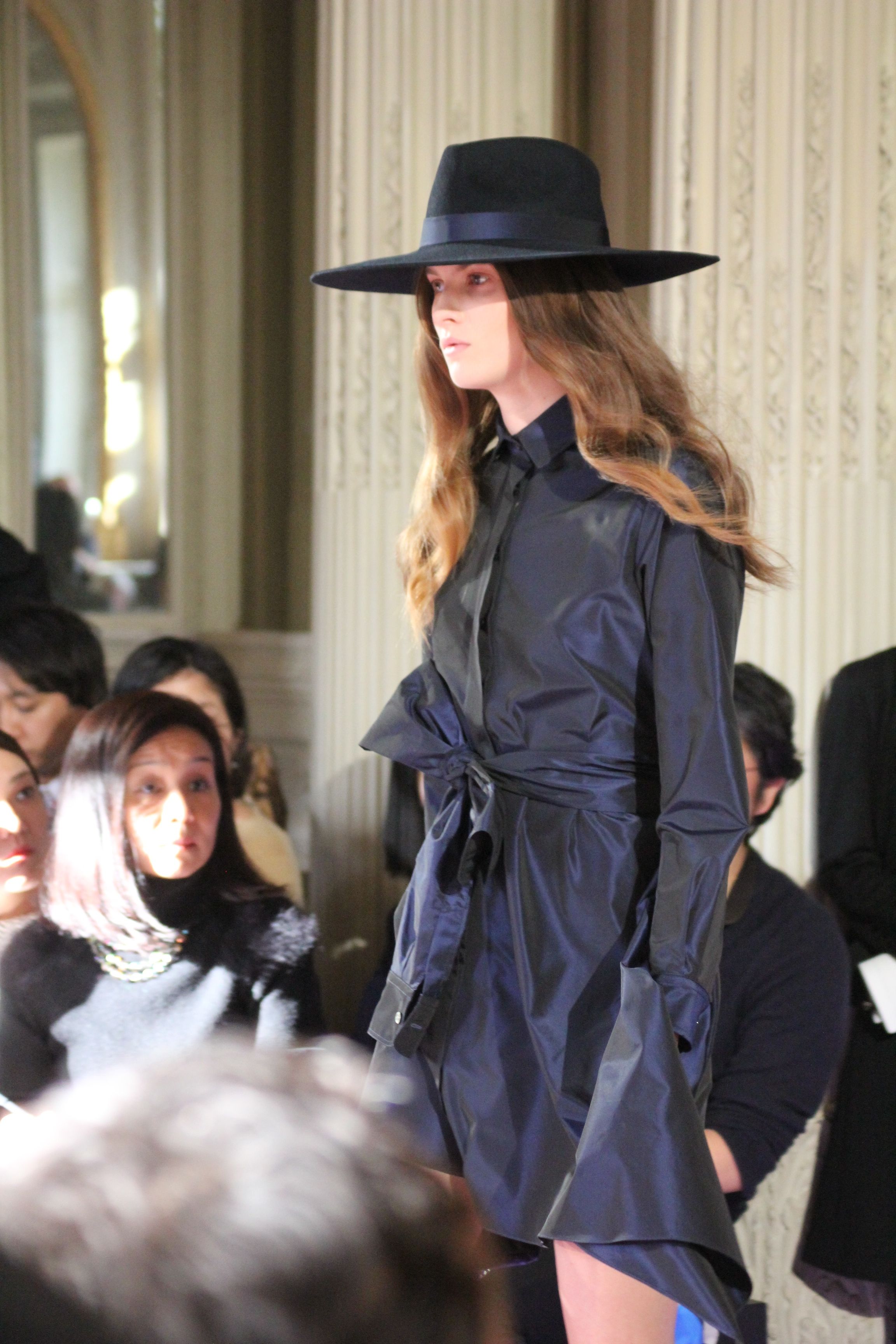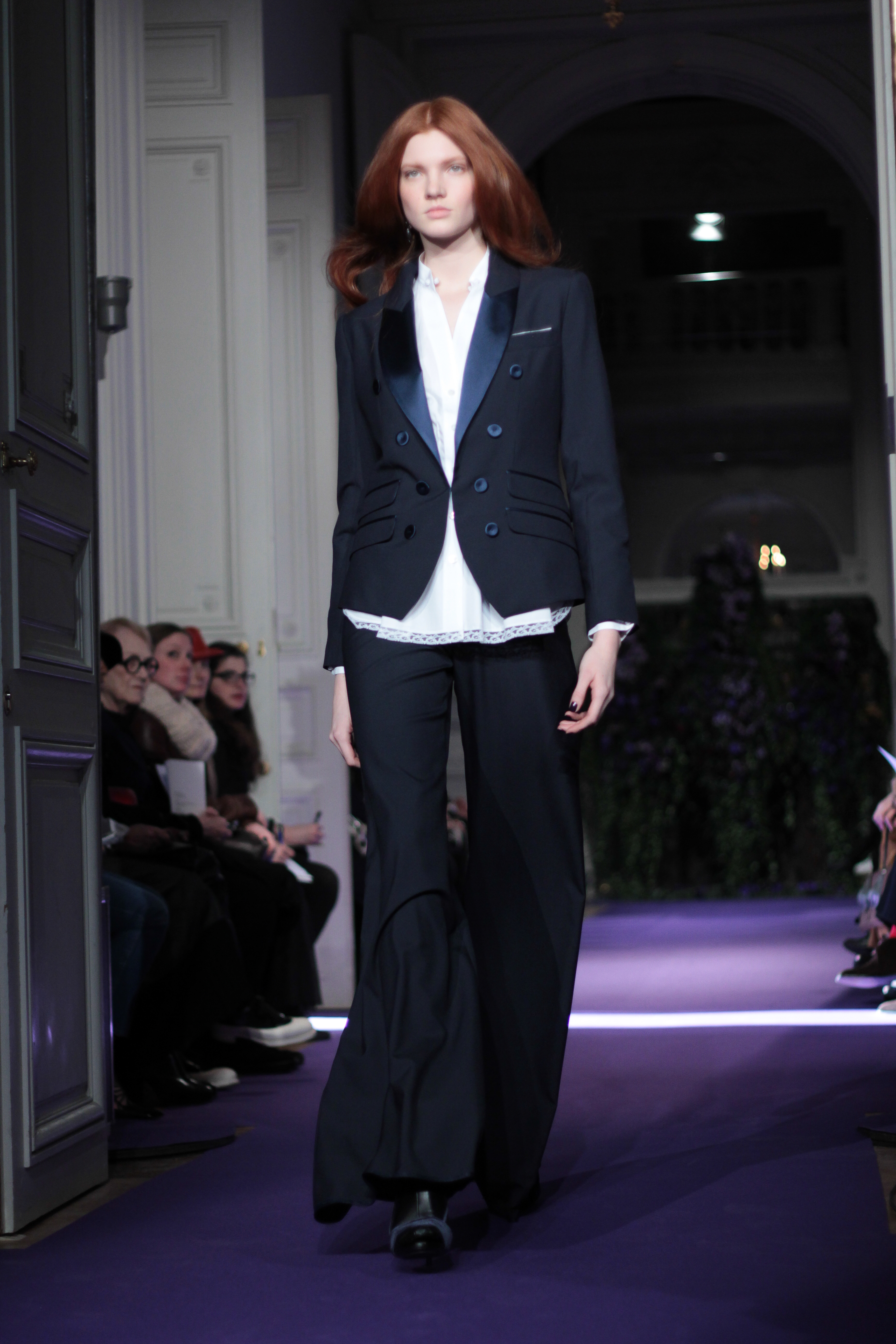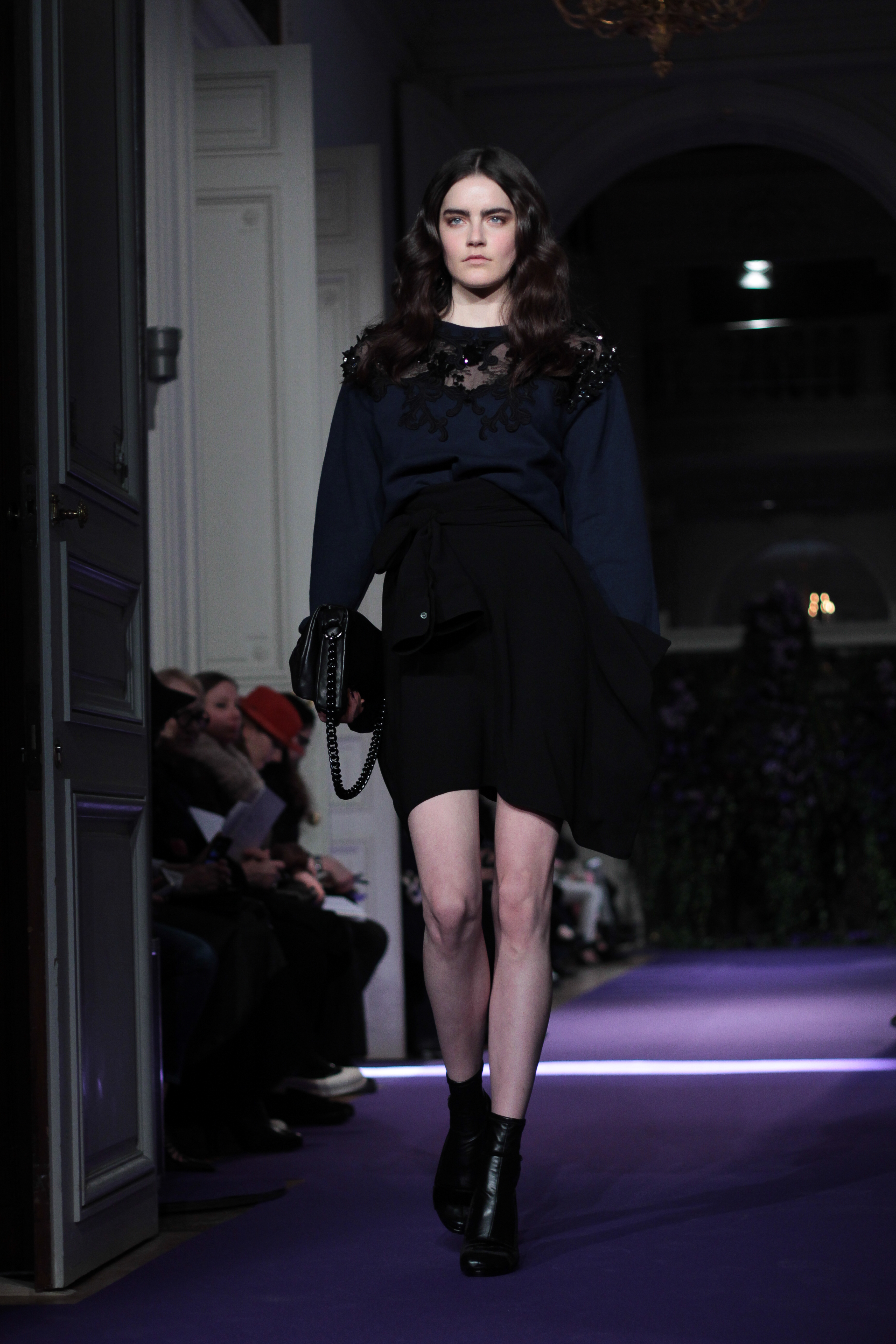 Alexis Mabille nous propose une collection Automne Hiver 2014-2015 en mouvement, le maître mot est la fluidité, le vent. Les coupes sont précises mais fluides.