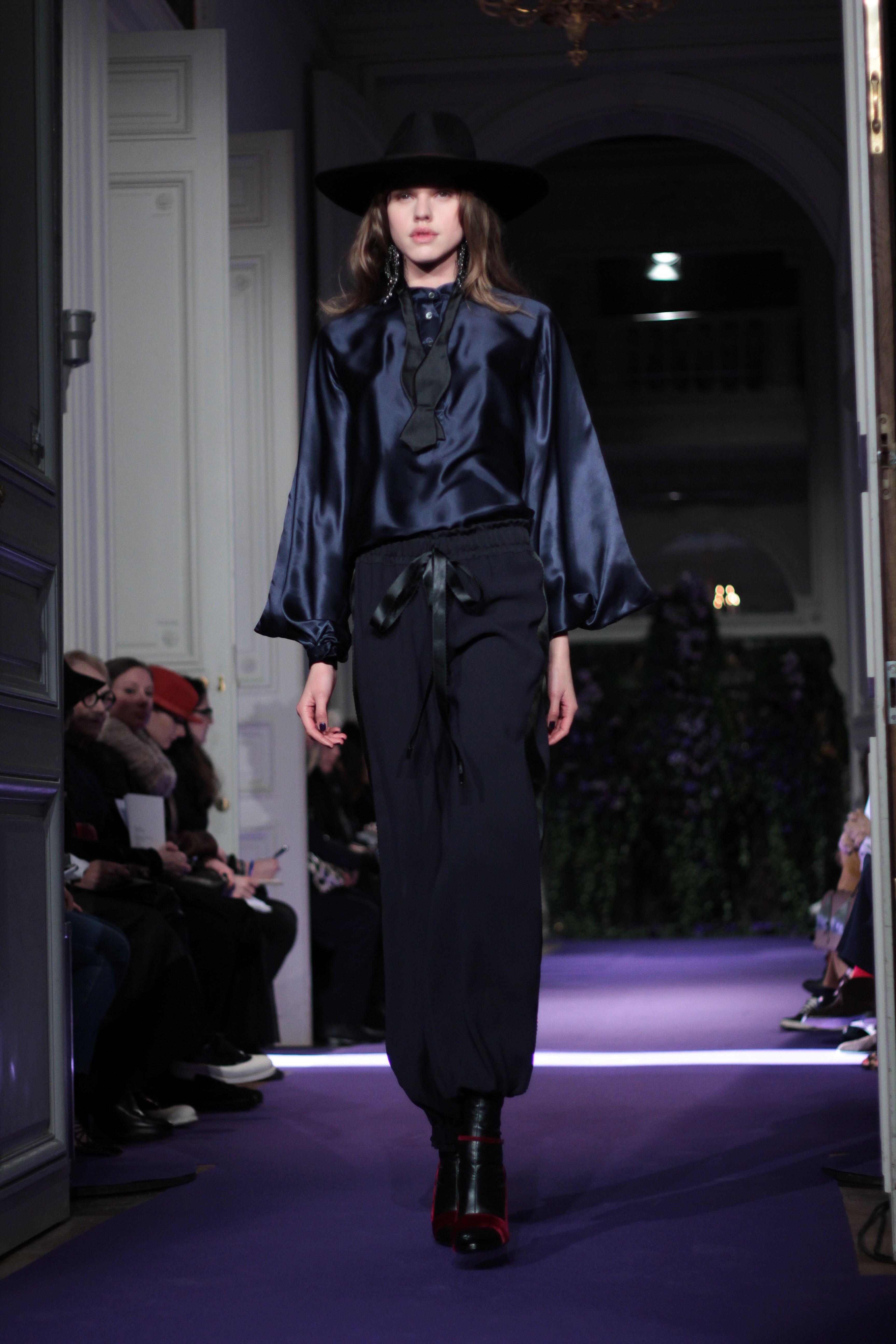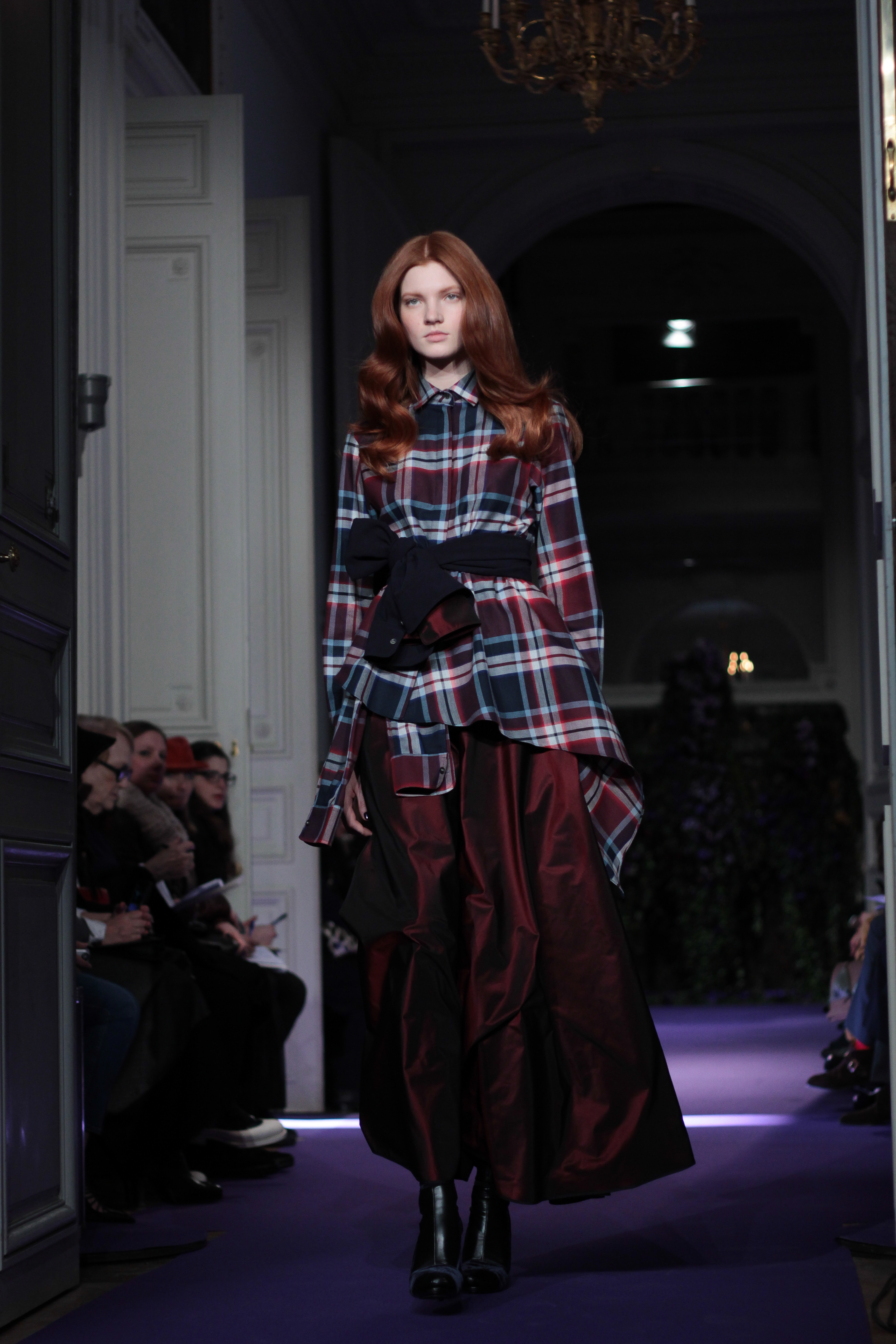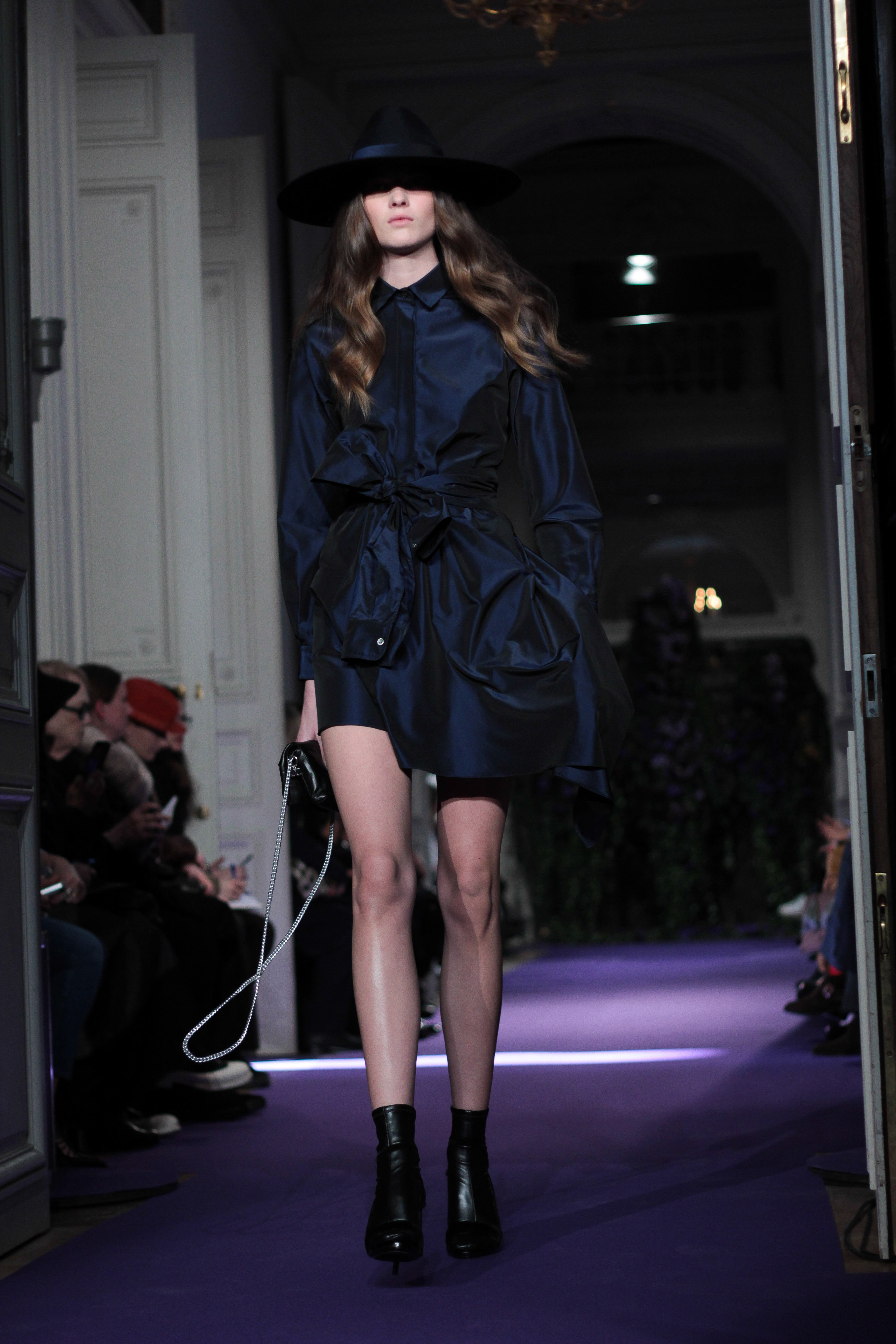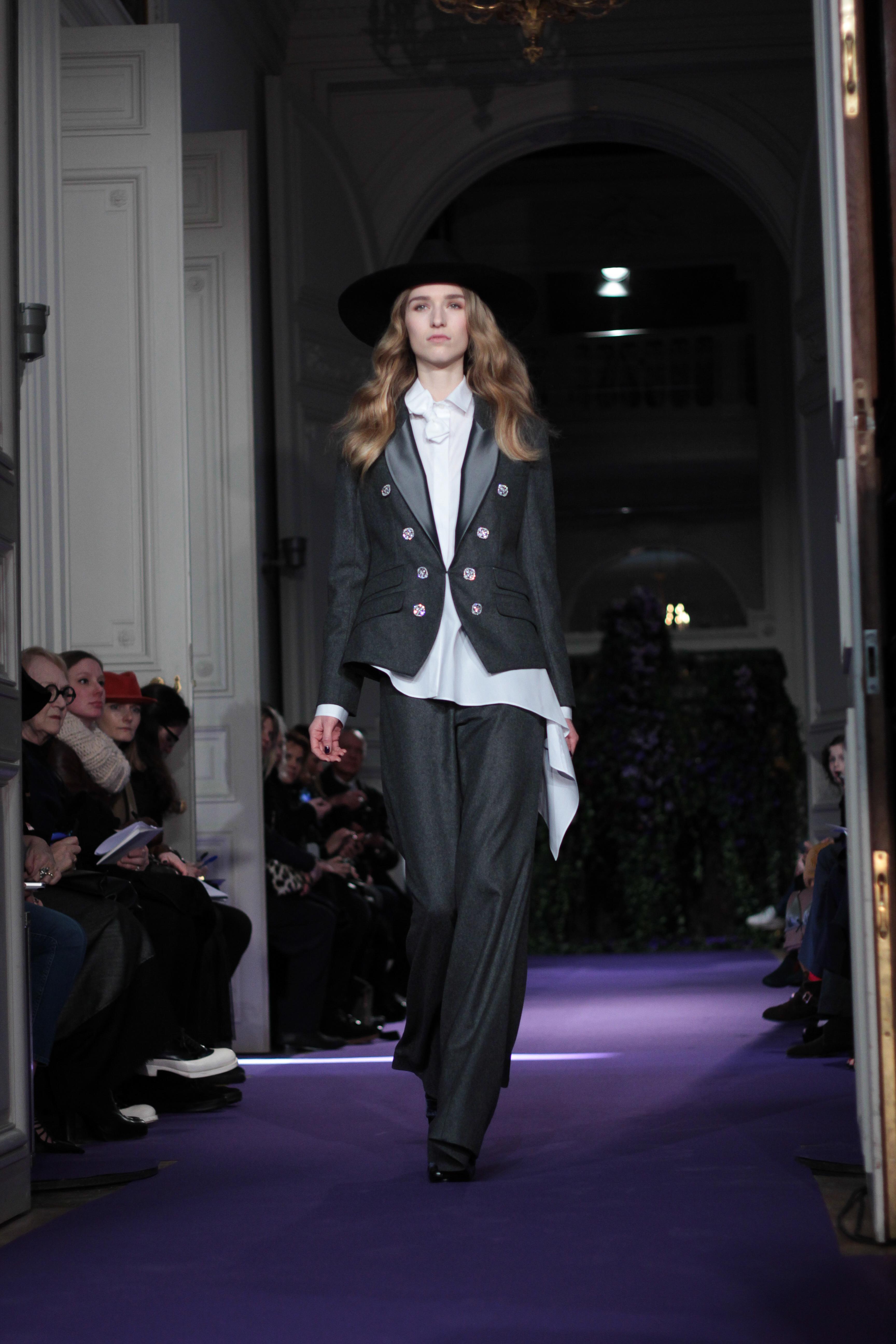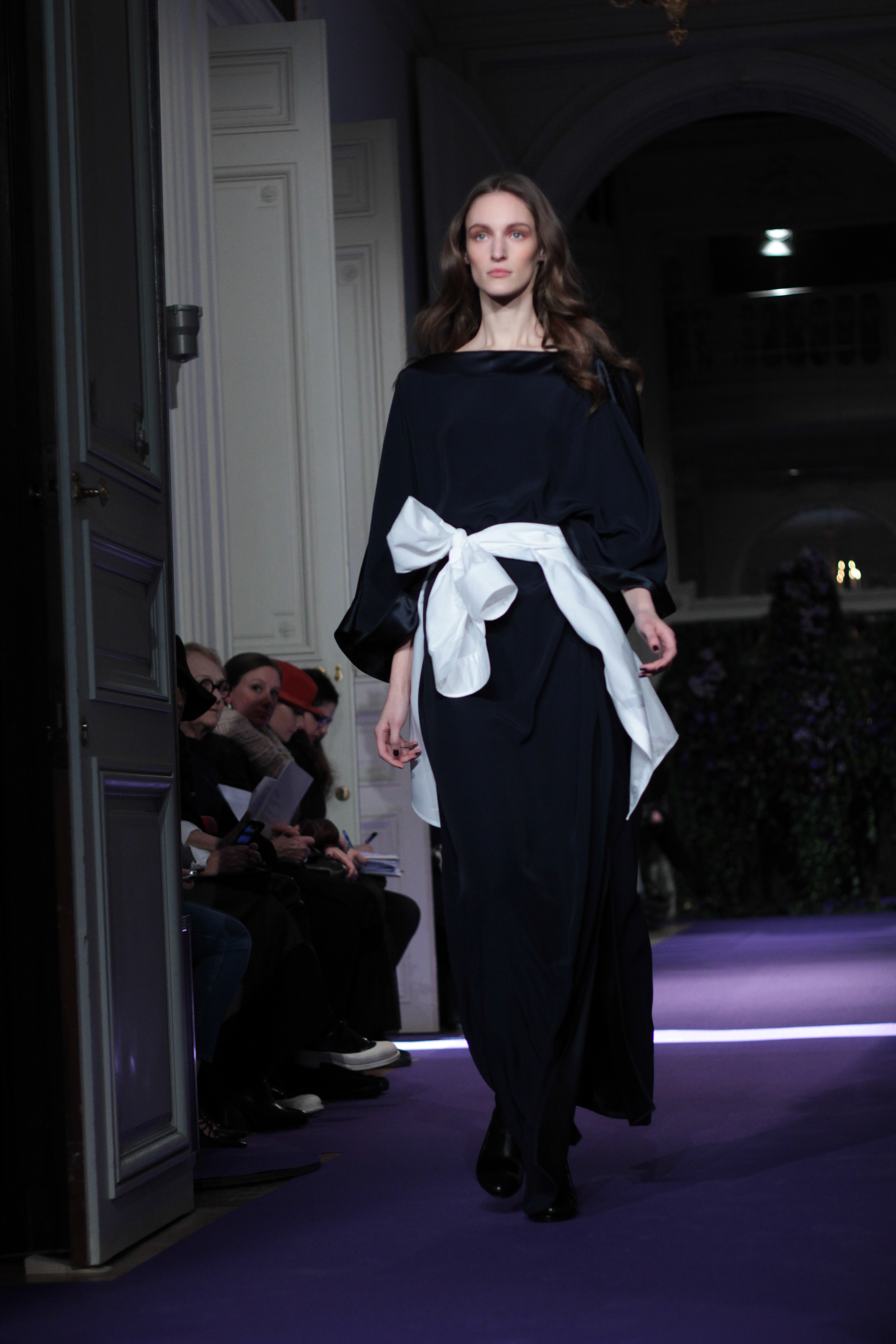 Alexis Mabille nous propose une collection Automne Hiver 2014-2015 en mouvement, le maître mot est la fluidité, le vent. Les coupes sont précises mais fluides.