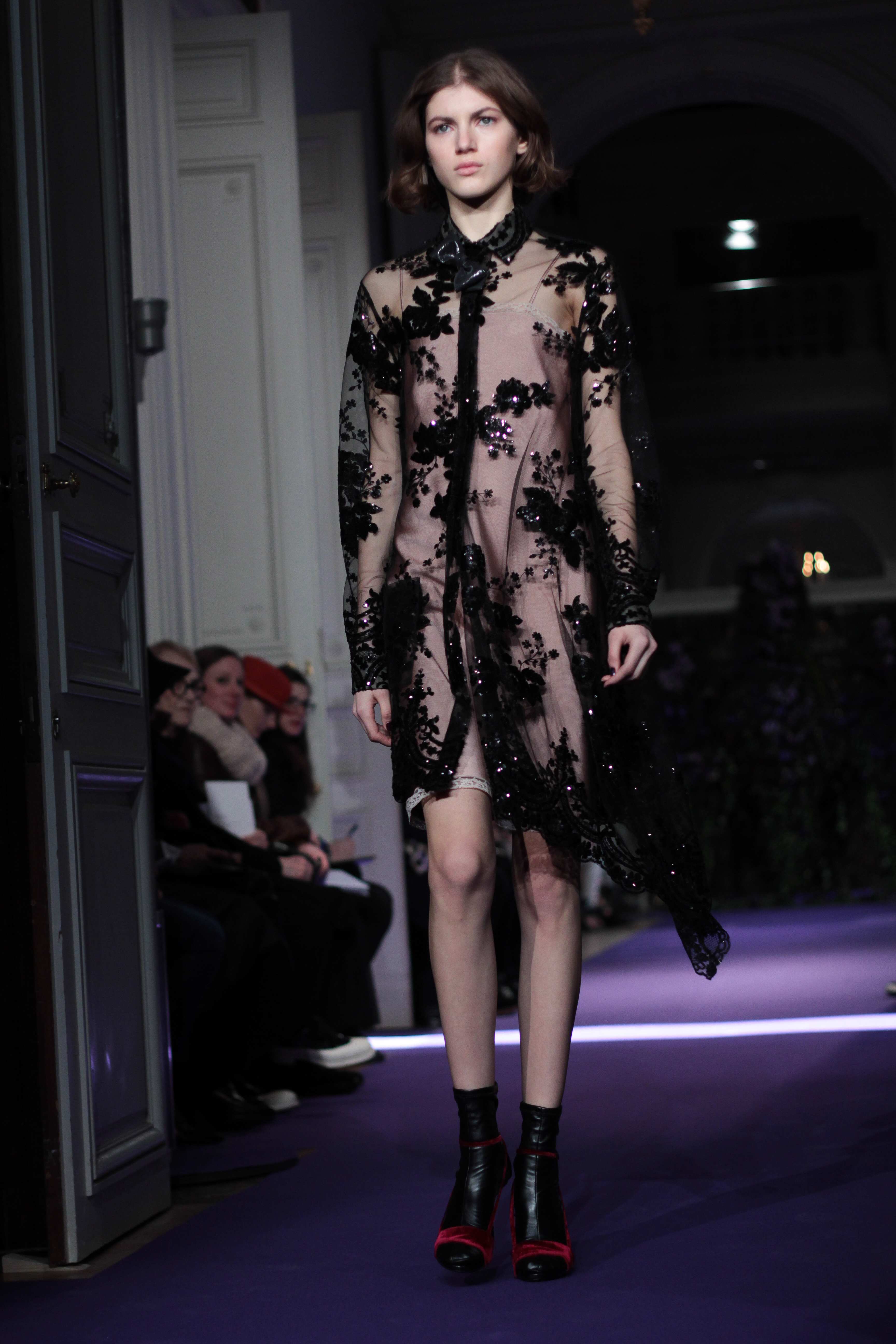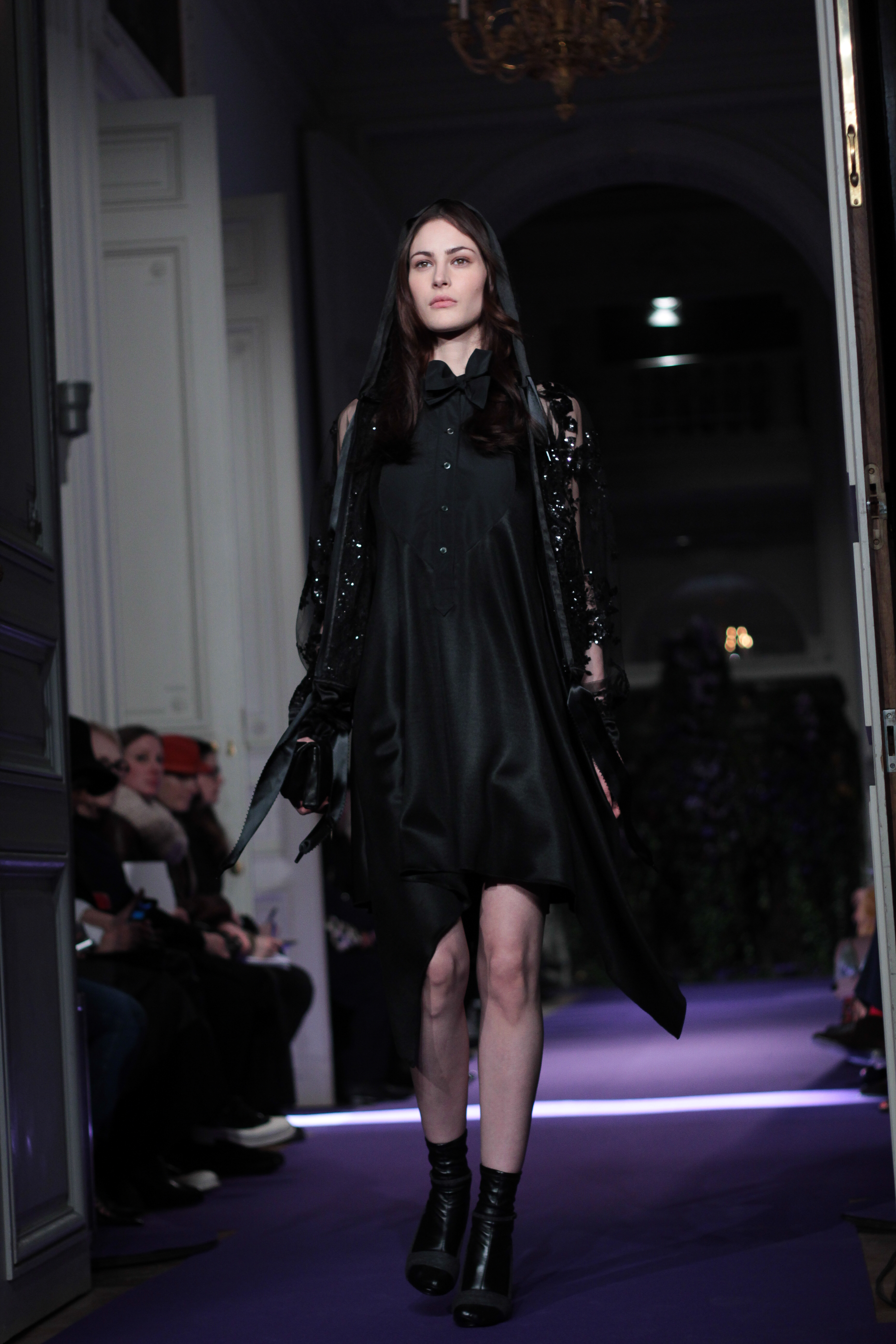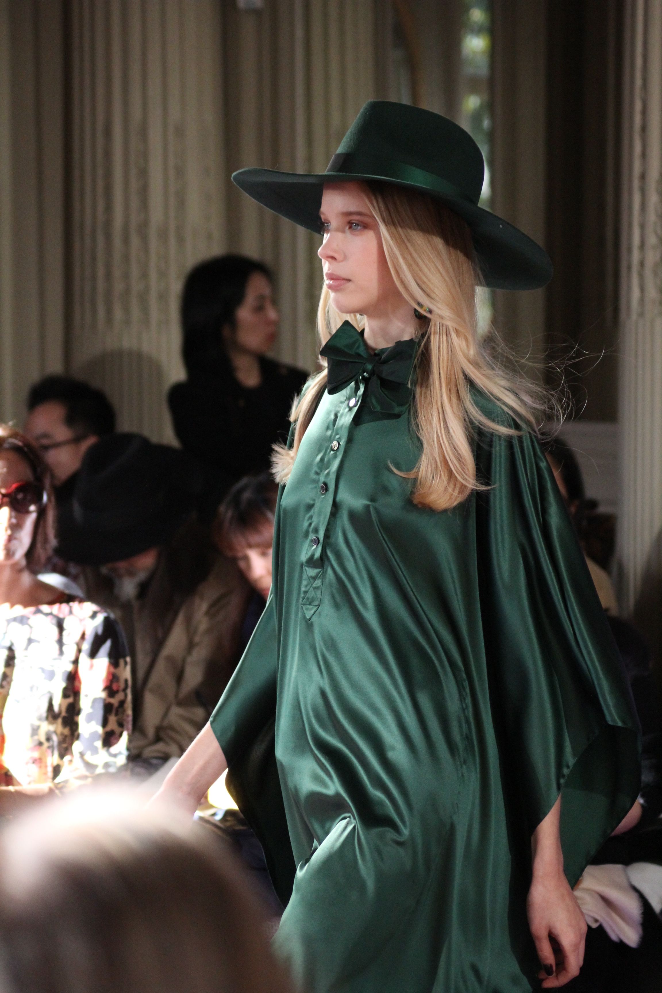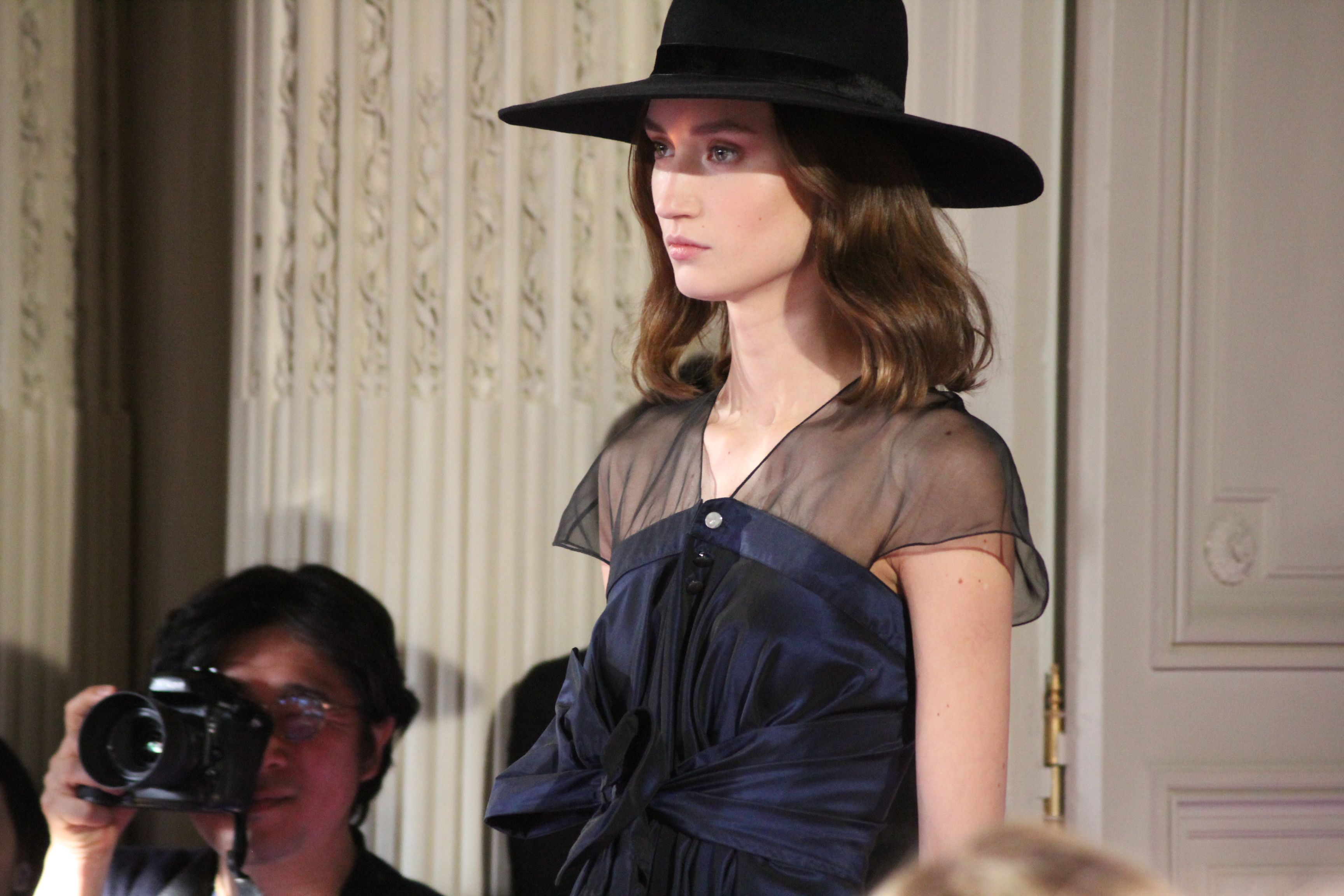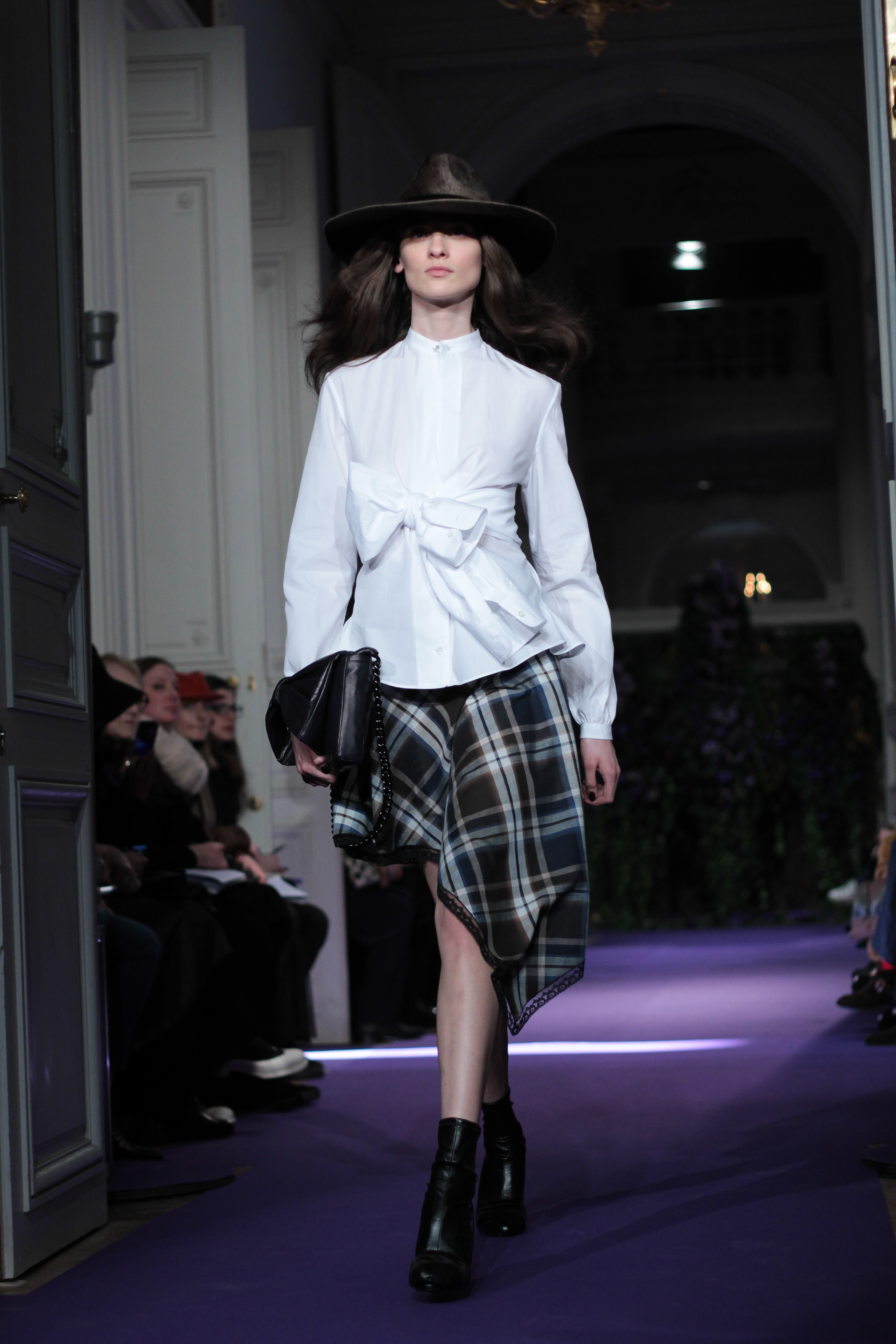 Alexis Mabille nous propose une collection Automne Hiver 2014-2015 en mouvement, le maître mot est la fluidité, le vent. Les coupes sont précises mais fluides.
