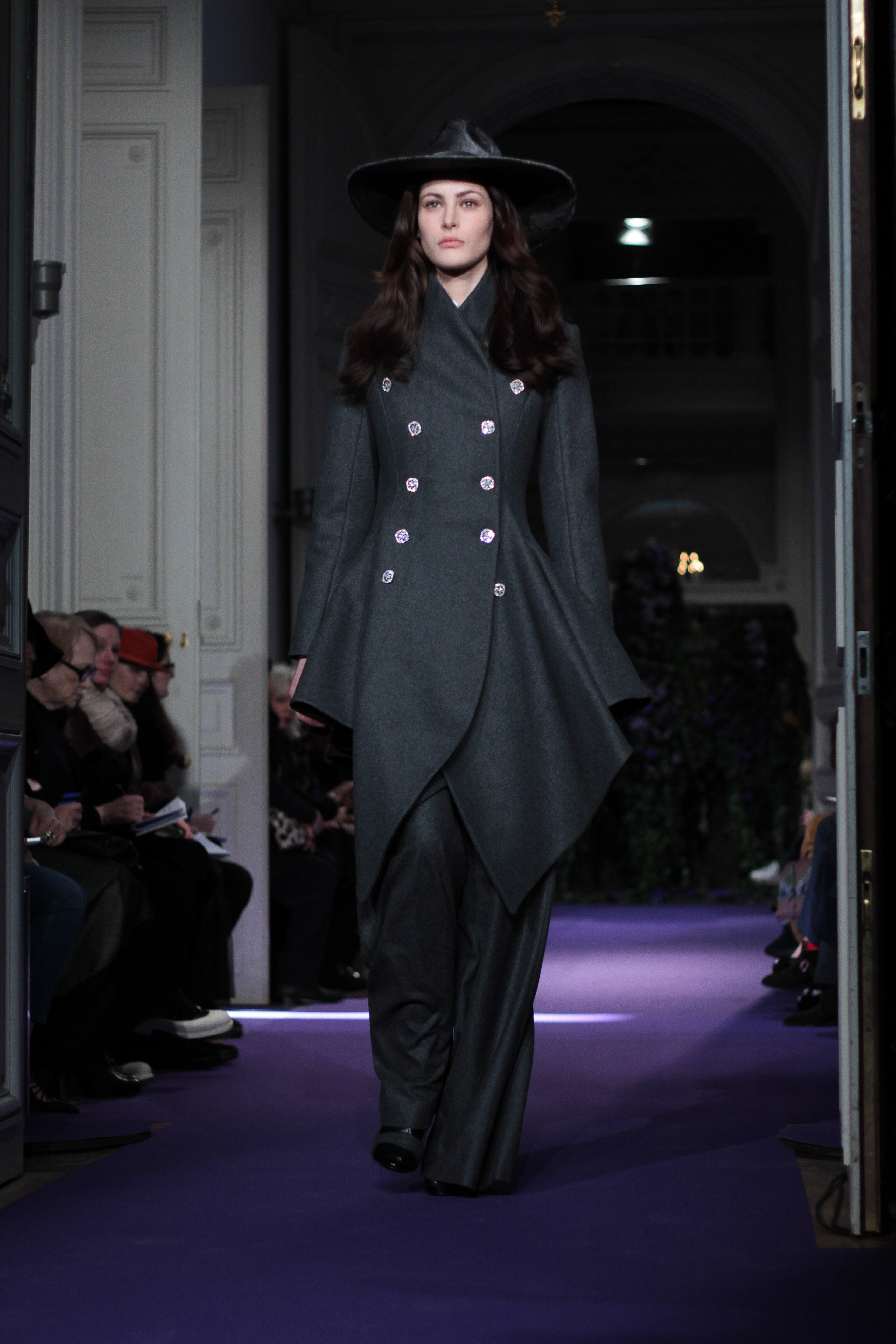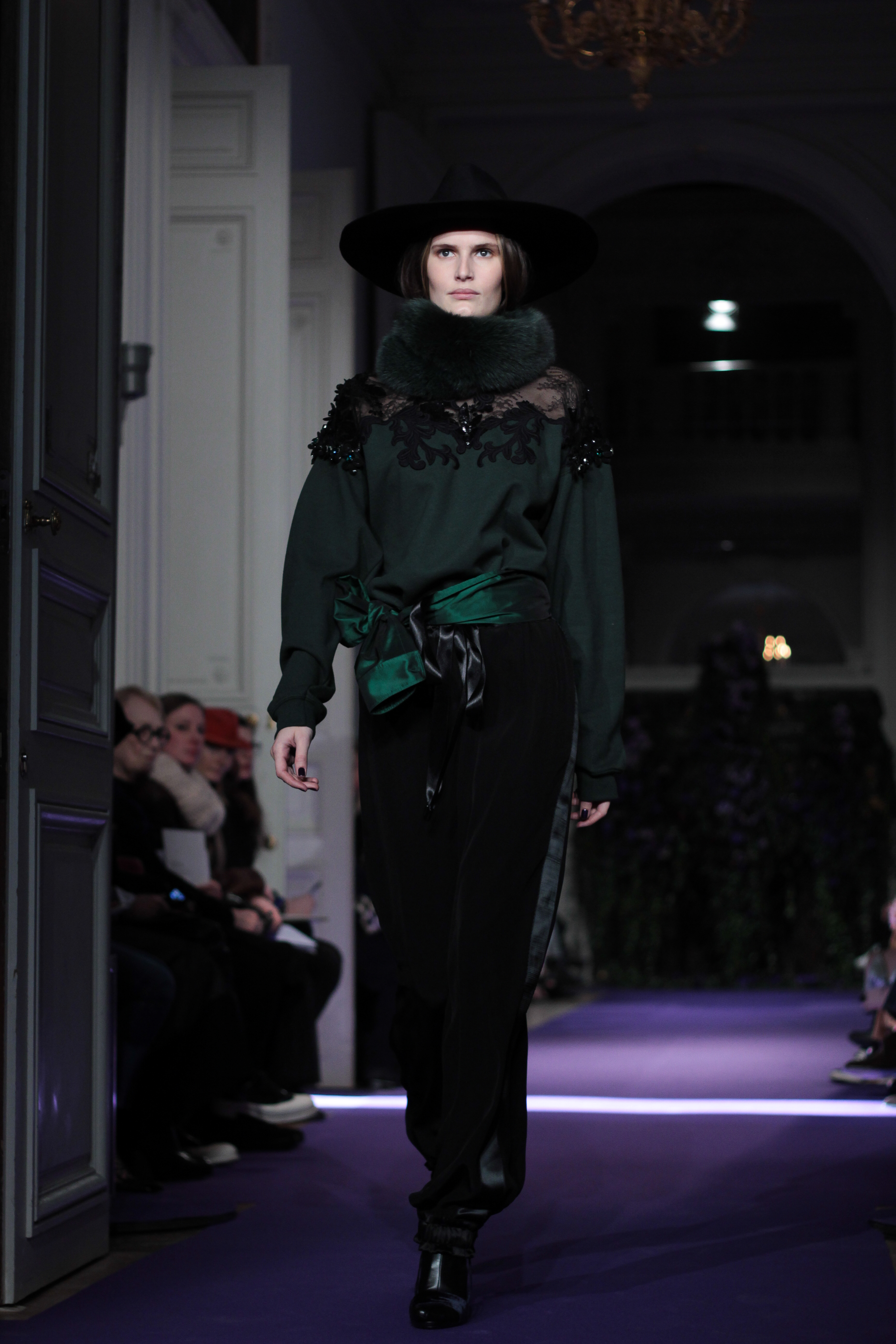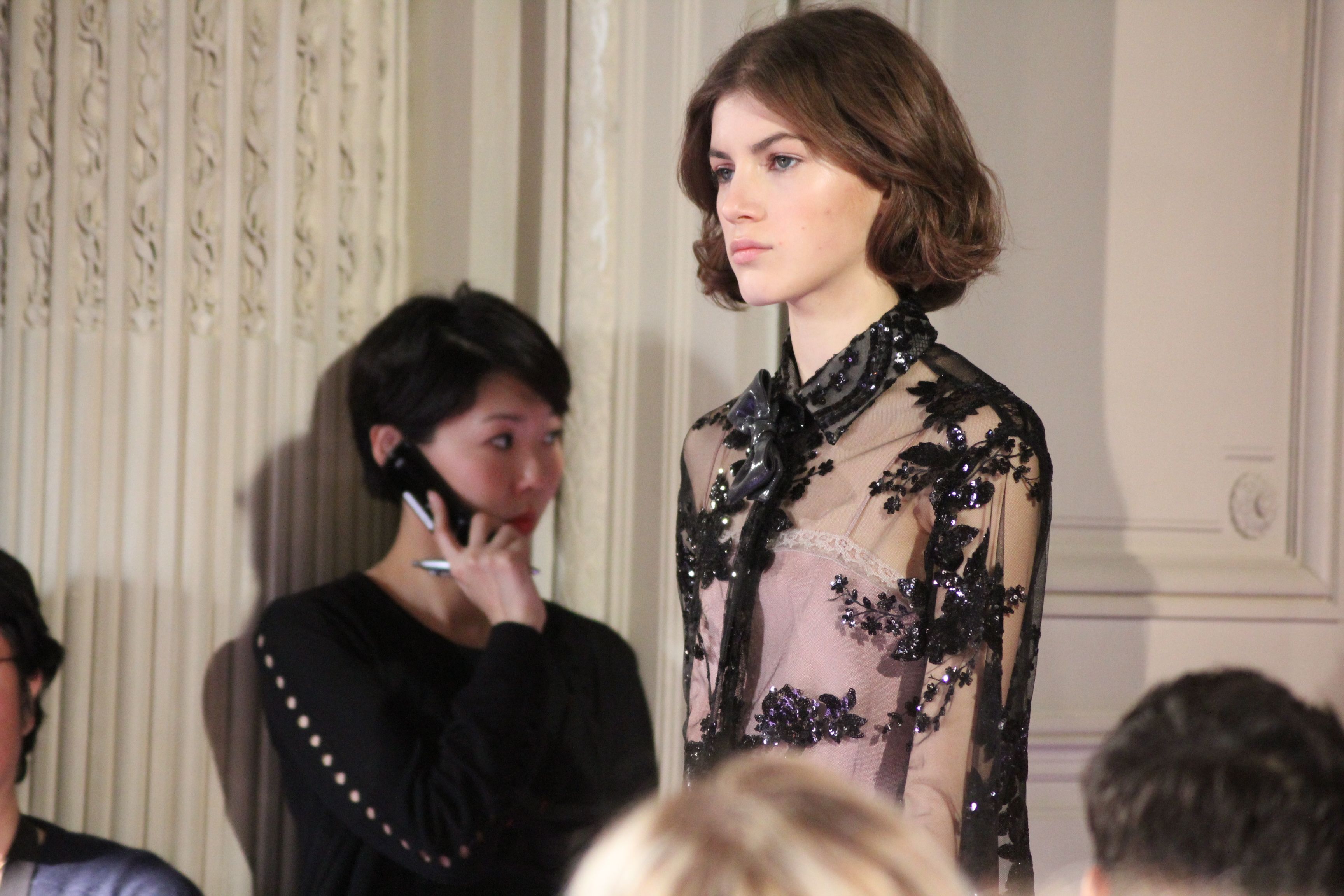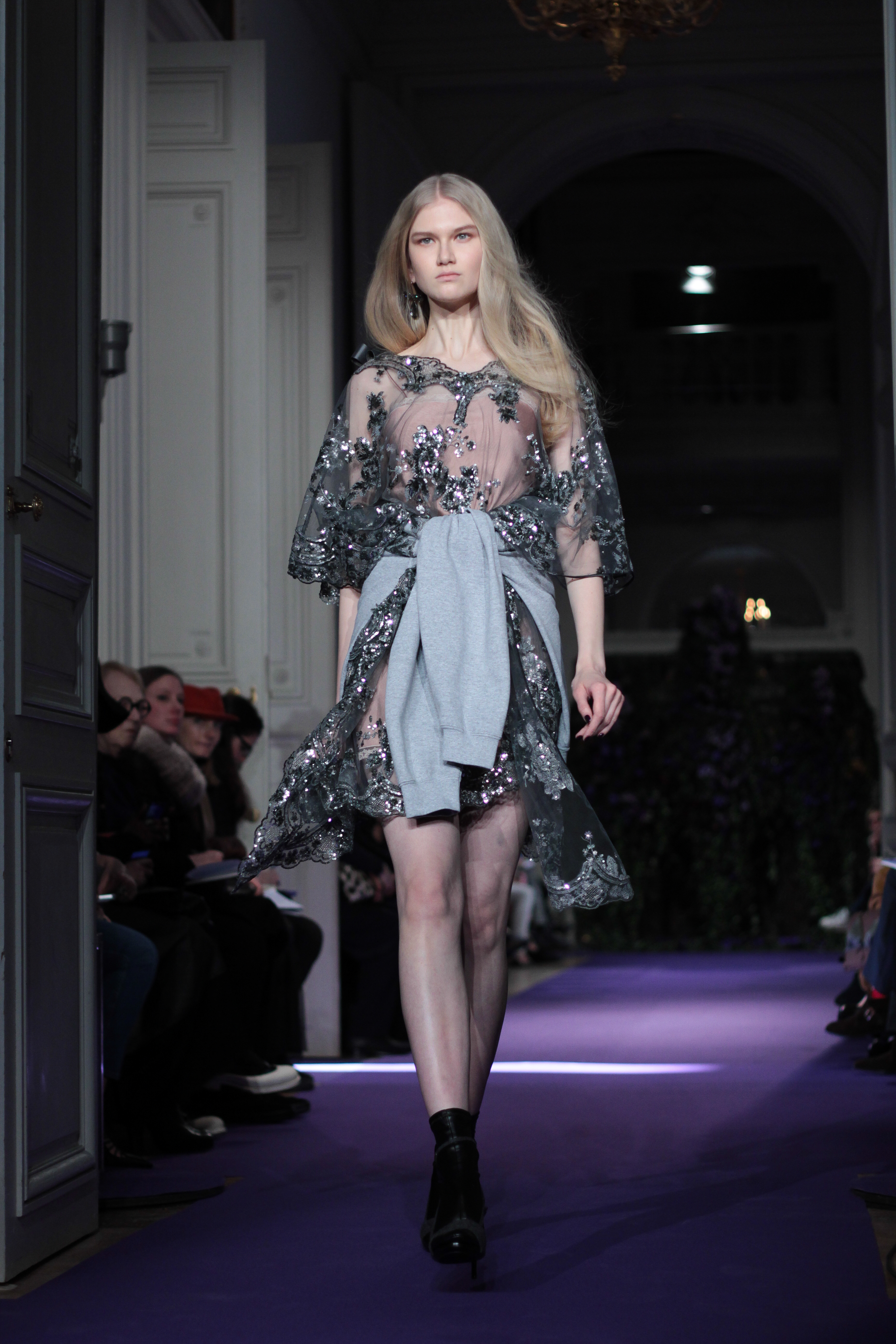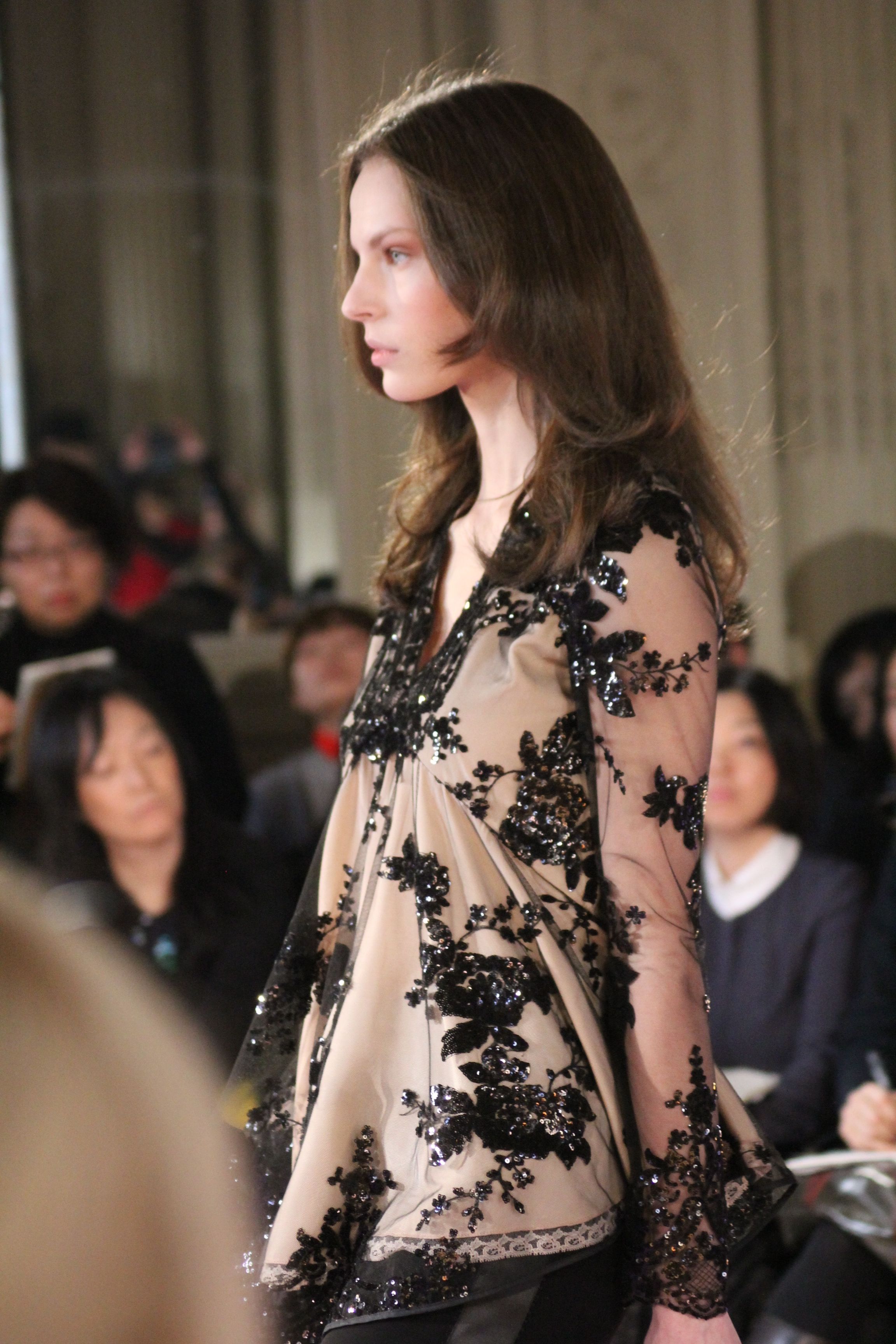 Alexis Mabille nous propose une collection Automne Hiver 2014-2015 en mouvement, le maître mot est la fluidité, le vent. Les coupes sont précises mais fluides.