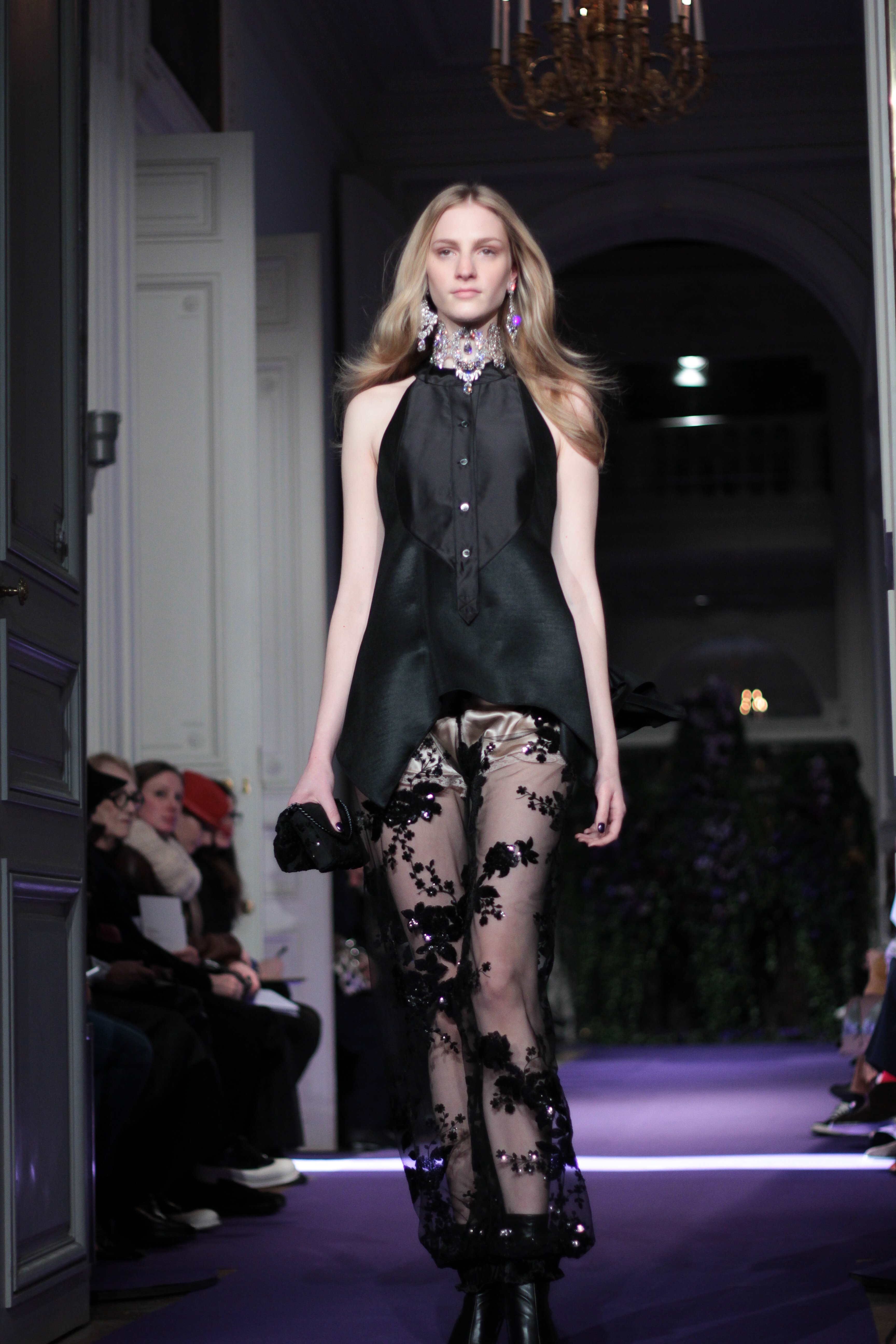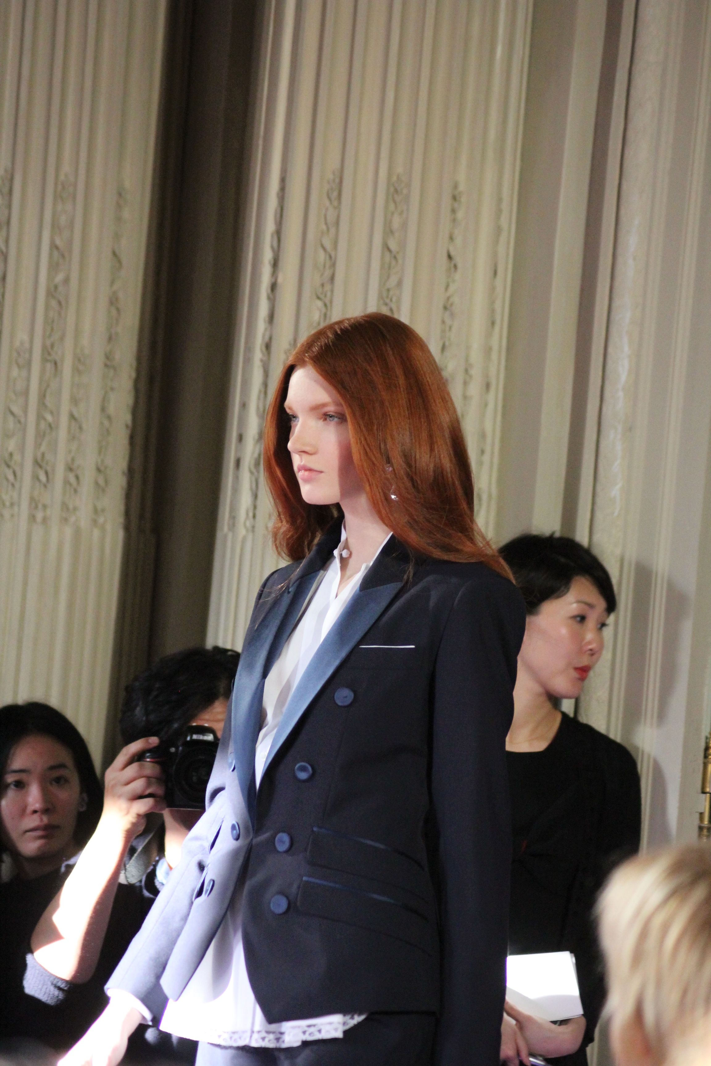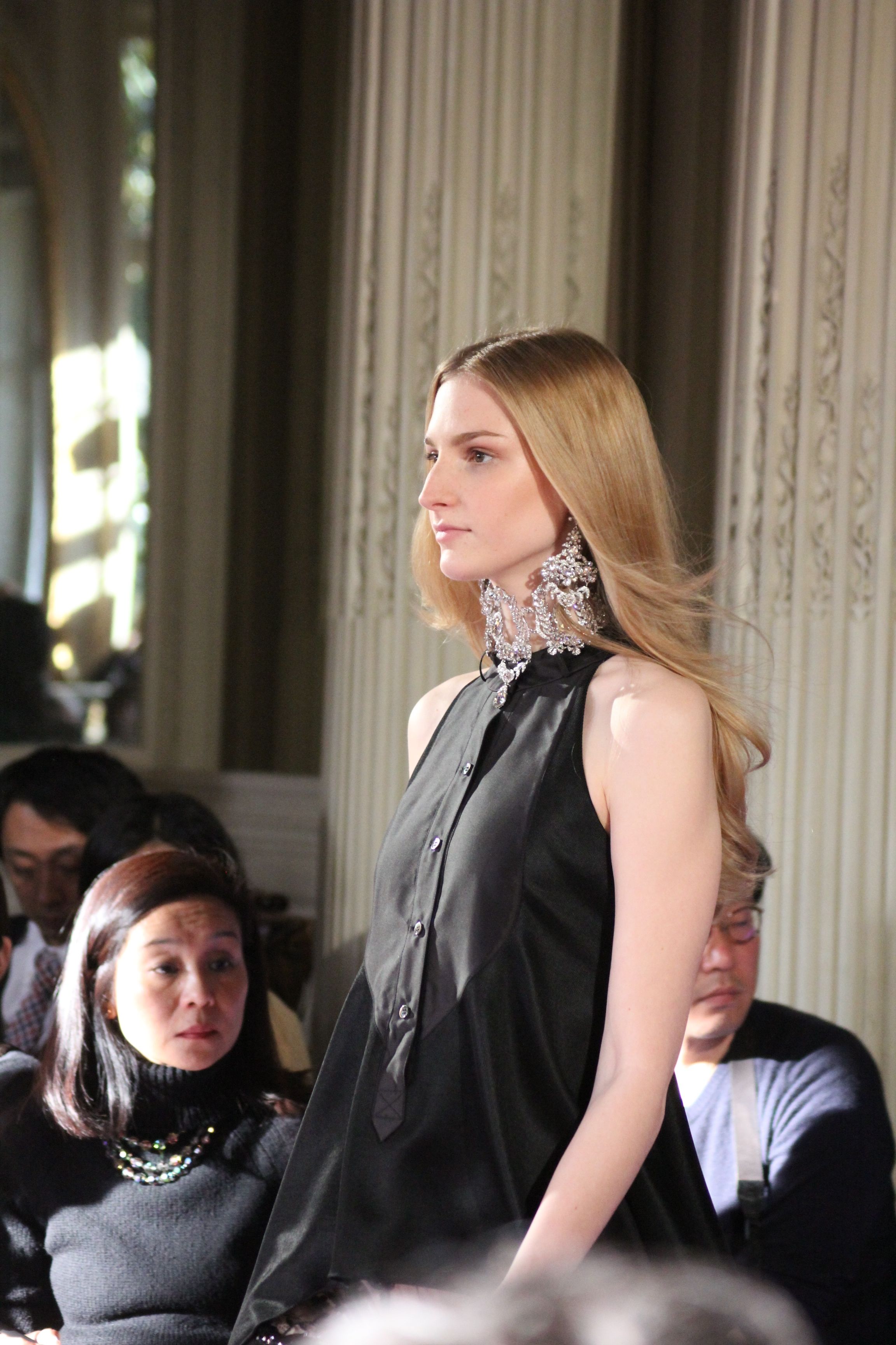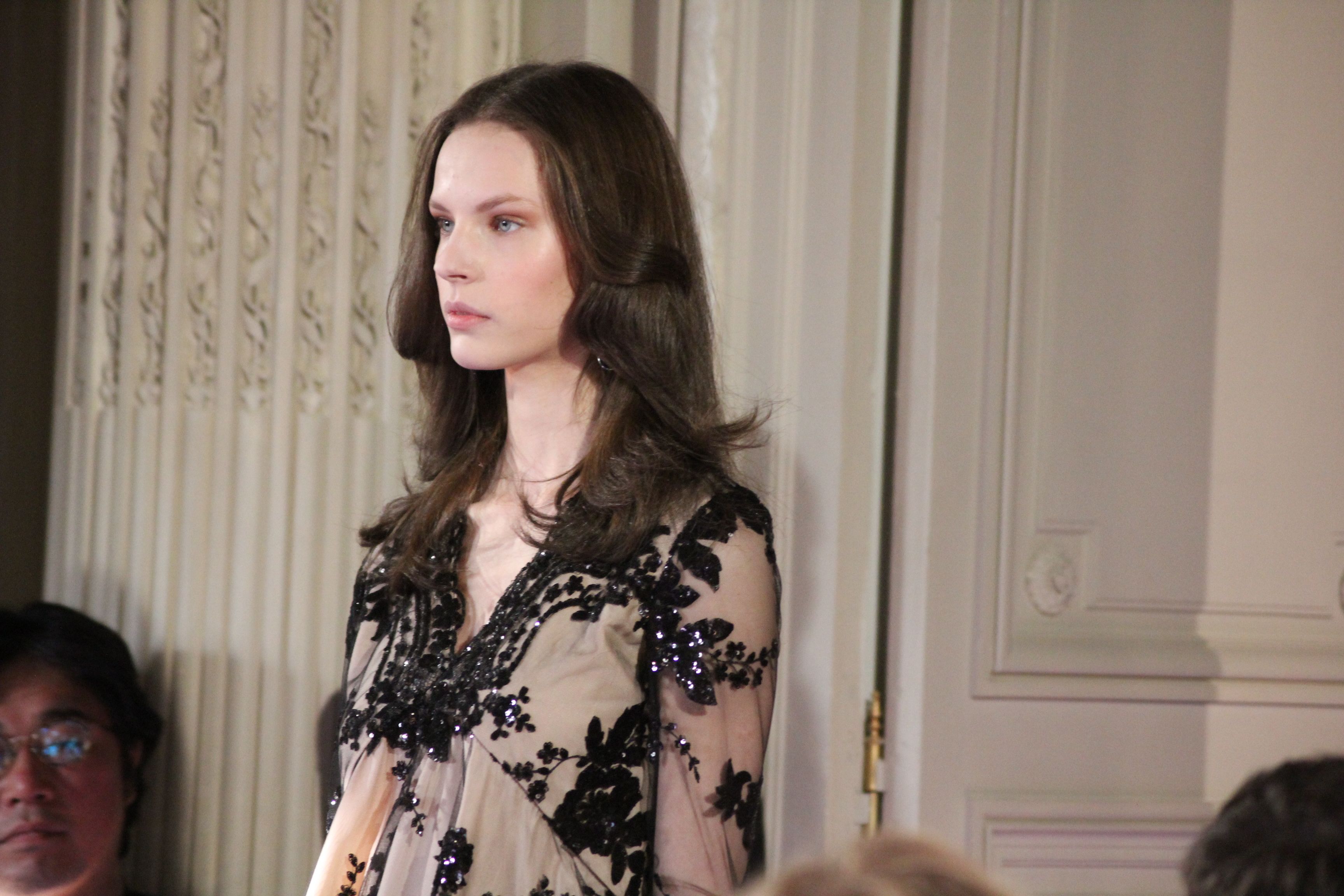 Alexis Mabille nous propose une collection Automne Hiver 2014-2015 en mouvement, le maître mot est la fluidité, le vent. Les coupes sont précises mais fluides.