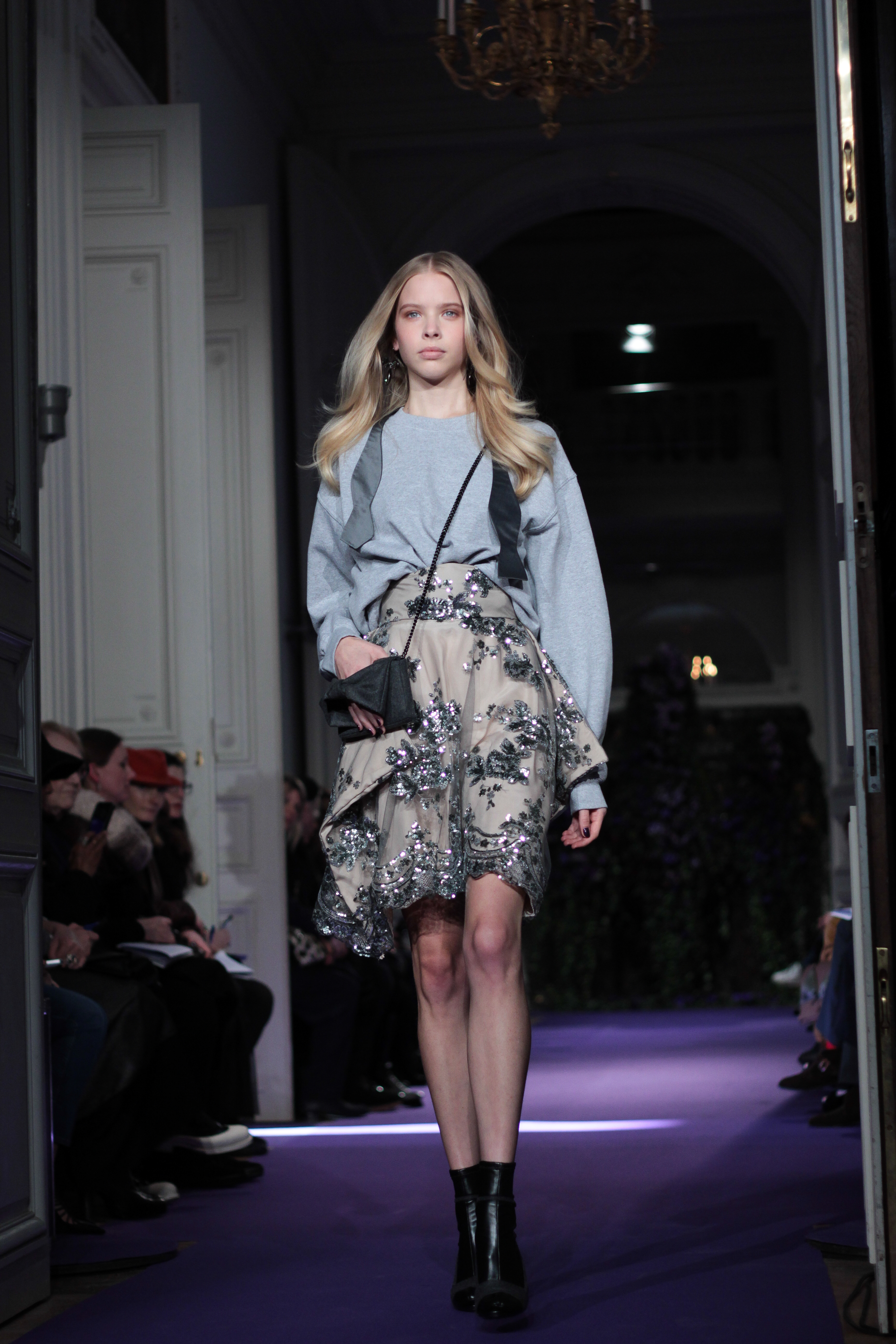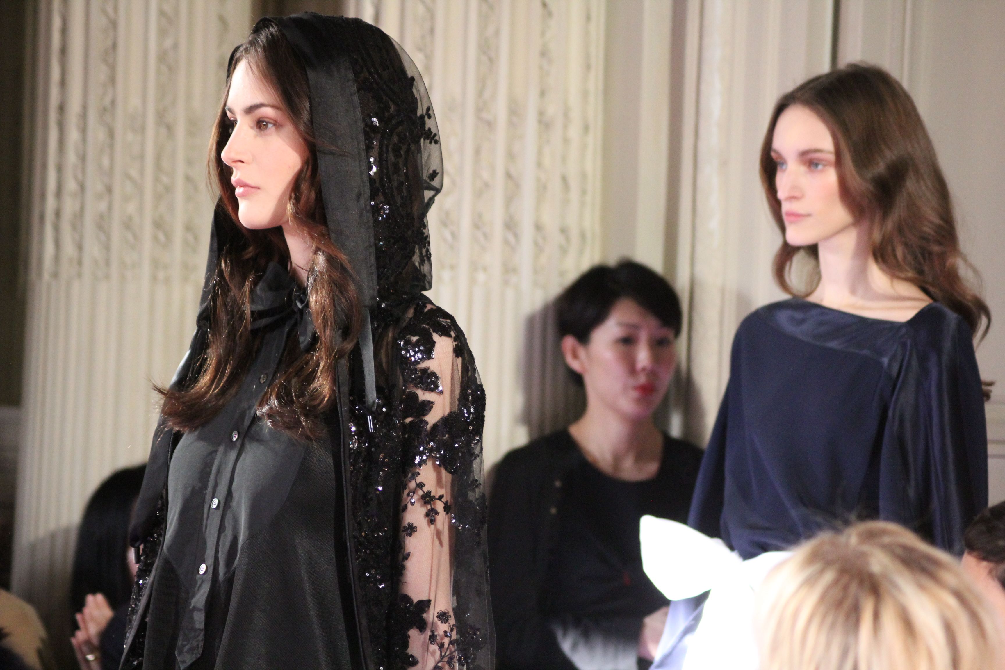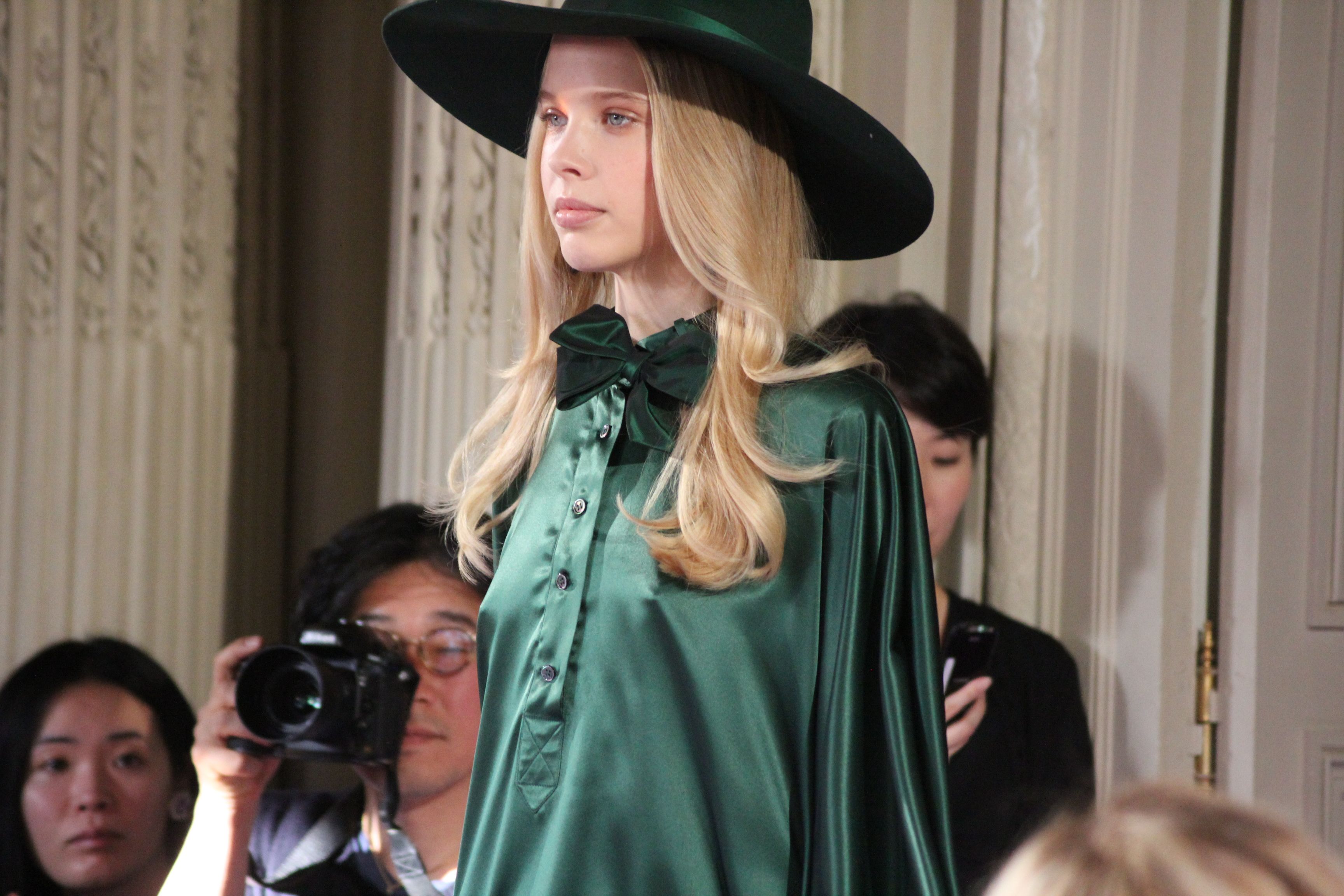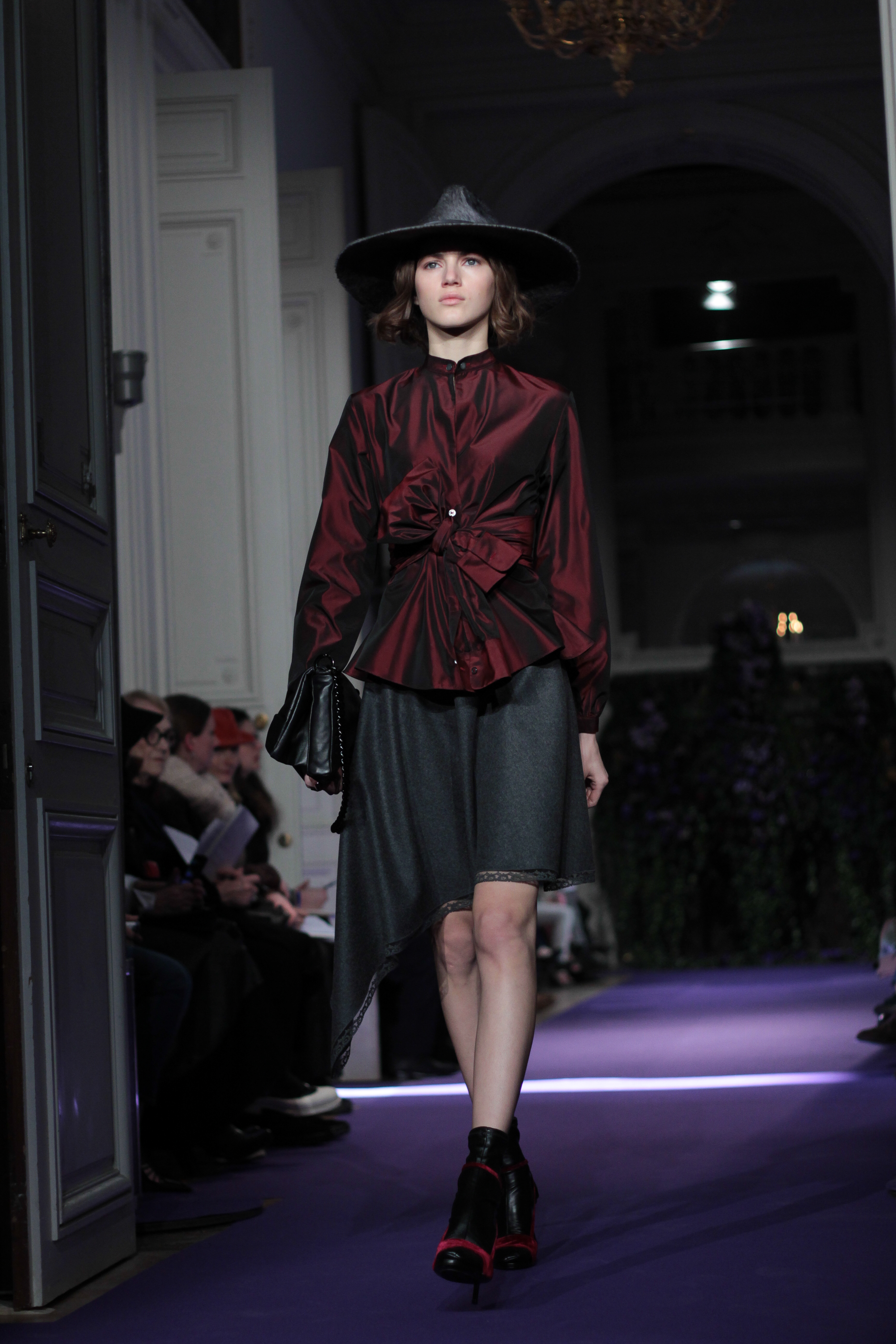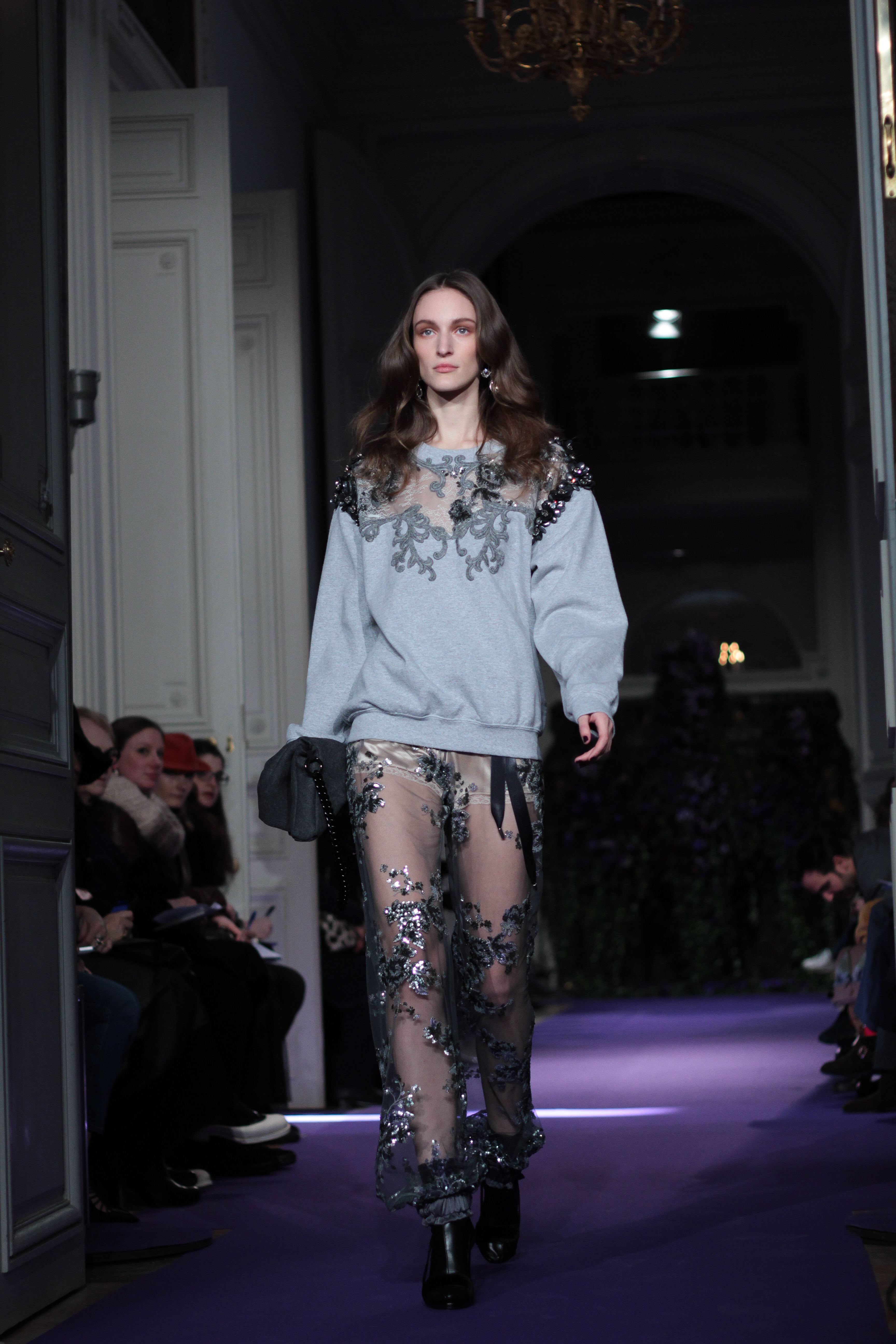 Alexis Mabille nous propose une collection Automne Hiver 2014-2015 en mouvement, le maître mot est la fluidité, le vent. Les coupes sont précises mais fluides.