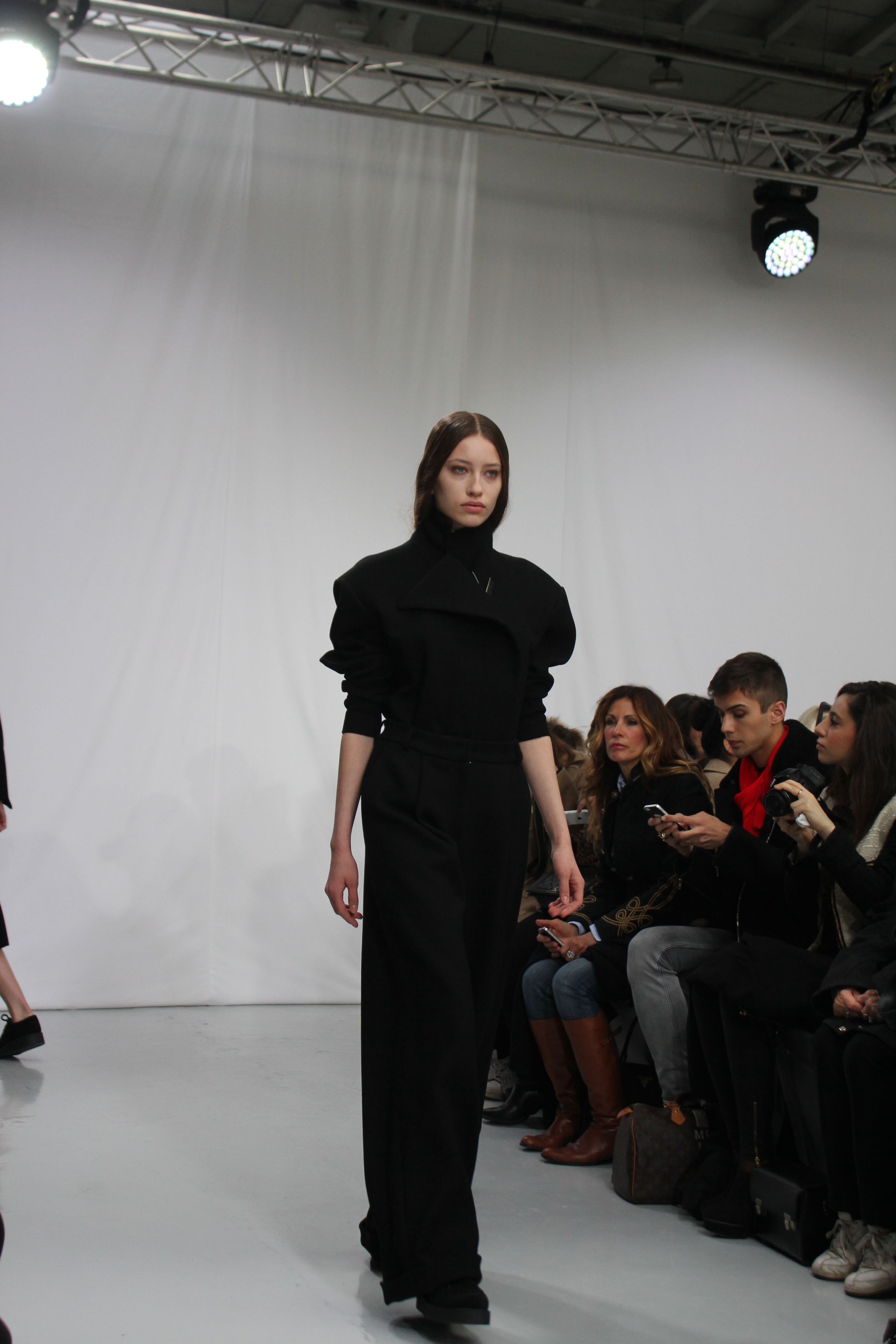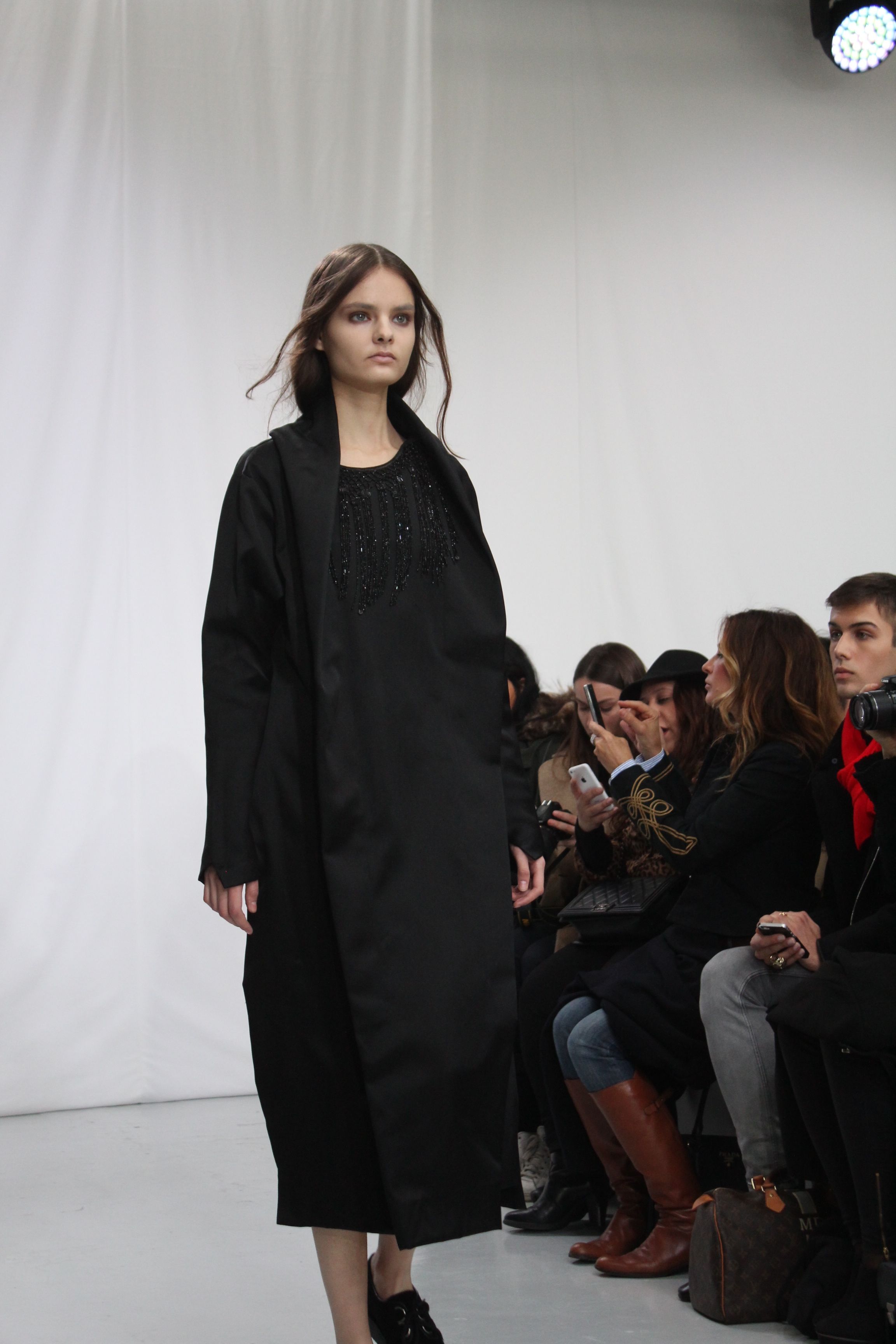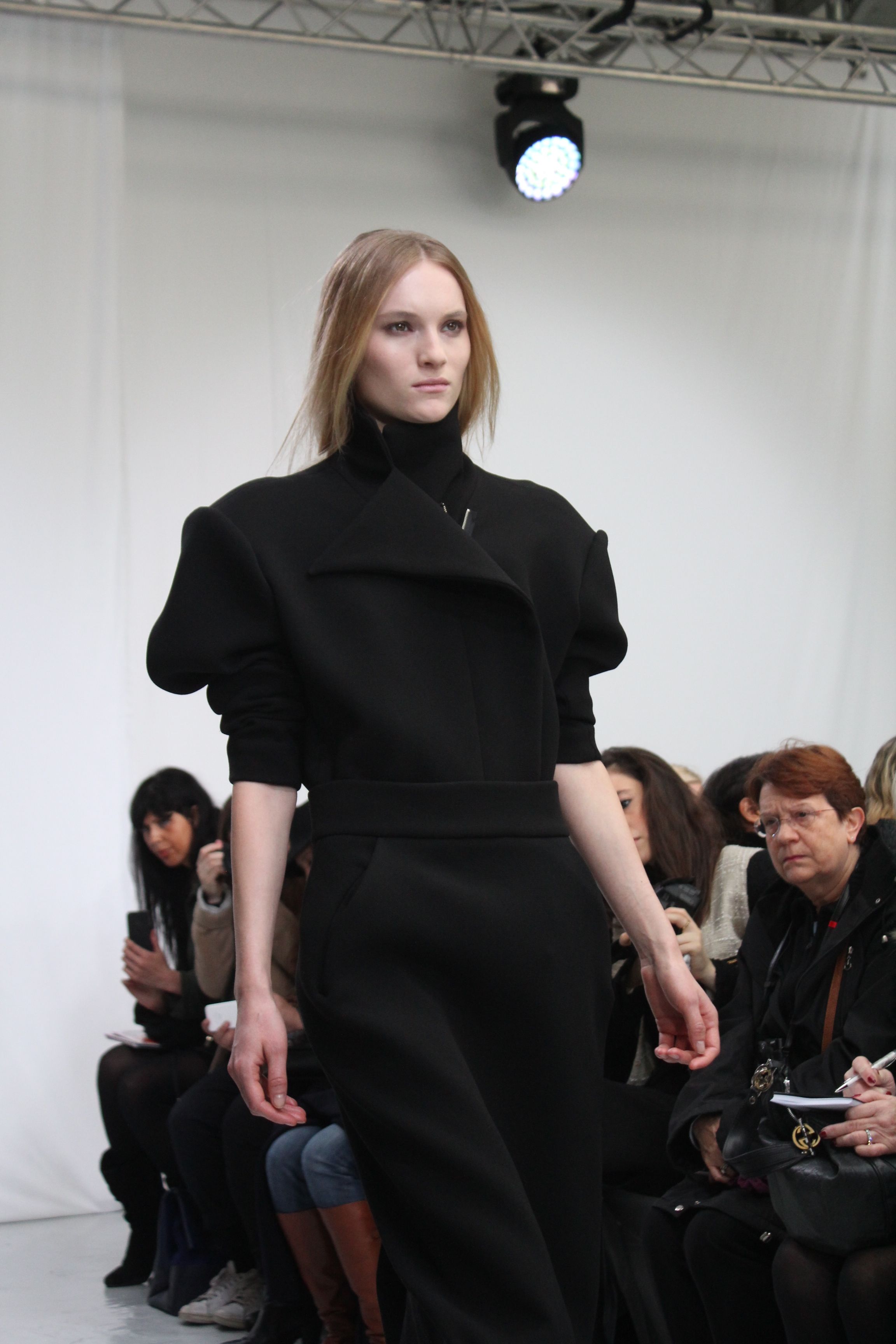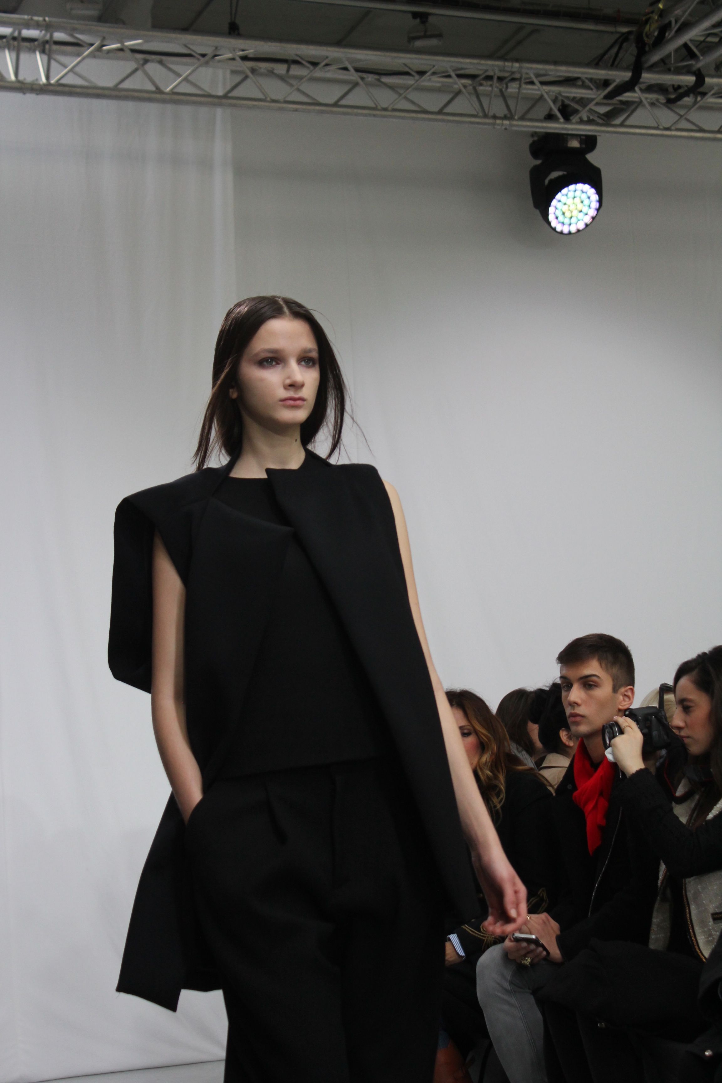 Moon Young Hee présentait une collection automne hiver 2014 aux silhouettes amples, à la fluidité assumée. Les tons sont austères noir, blancs ou beiges. Origamis de matières, superpositions, amplitude des tissus, superpositions de matières, pantalons oversize. Il ressort un sensation de vêtements cocooning, confortables pour une collection masculin féminin.