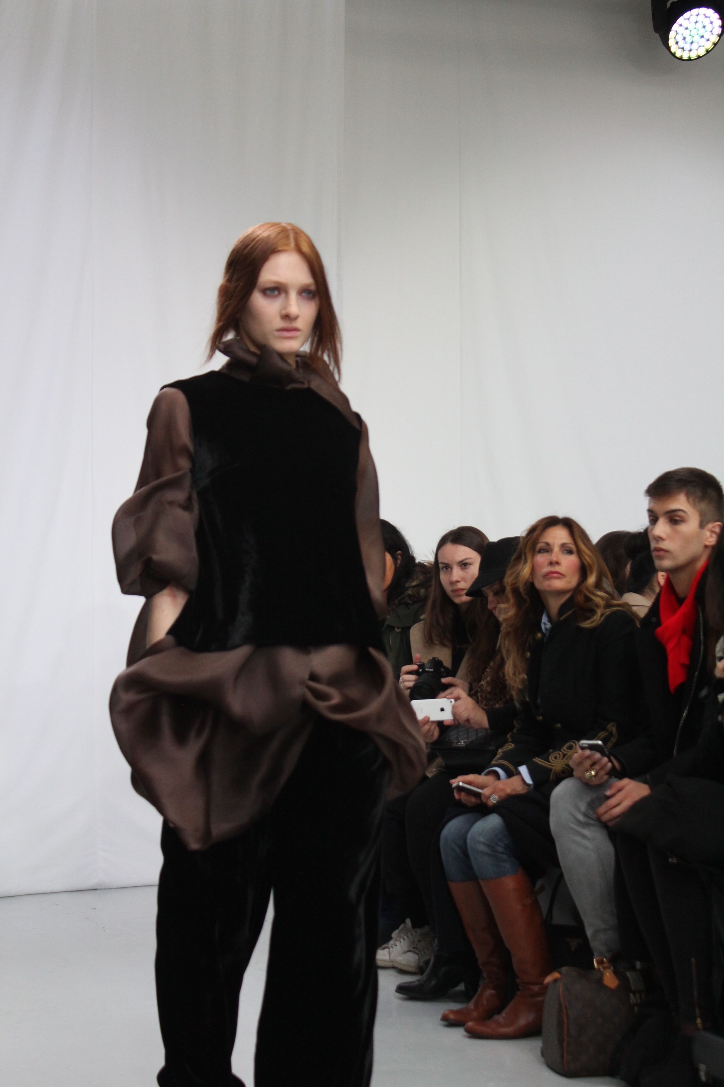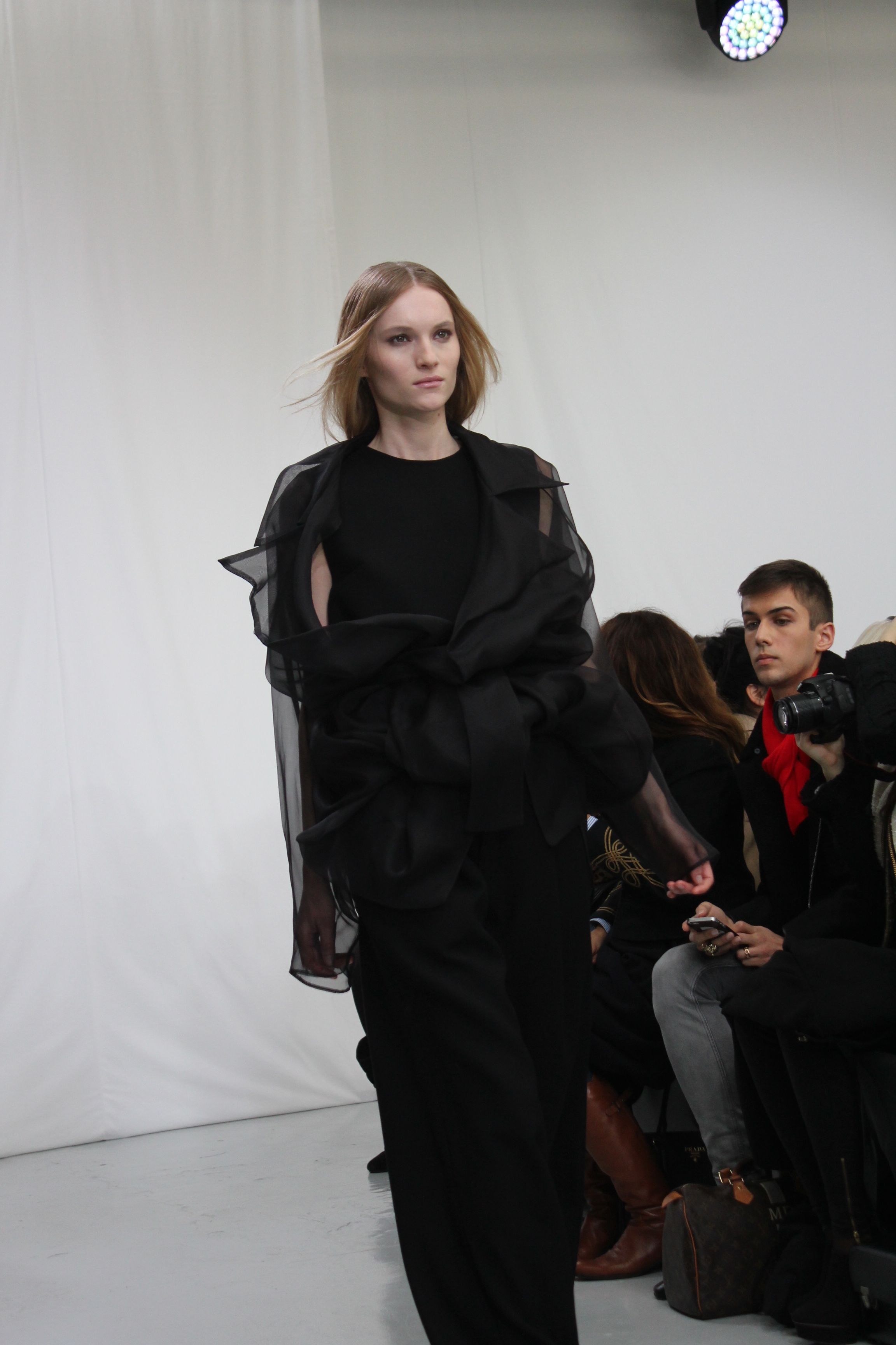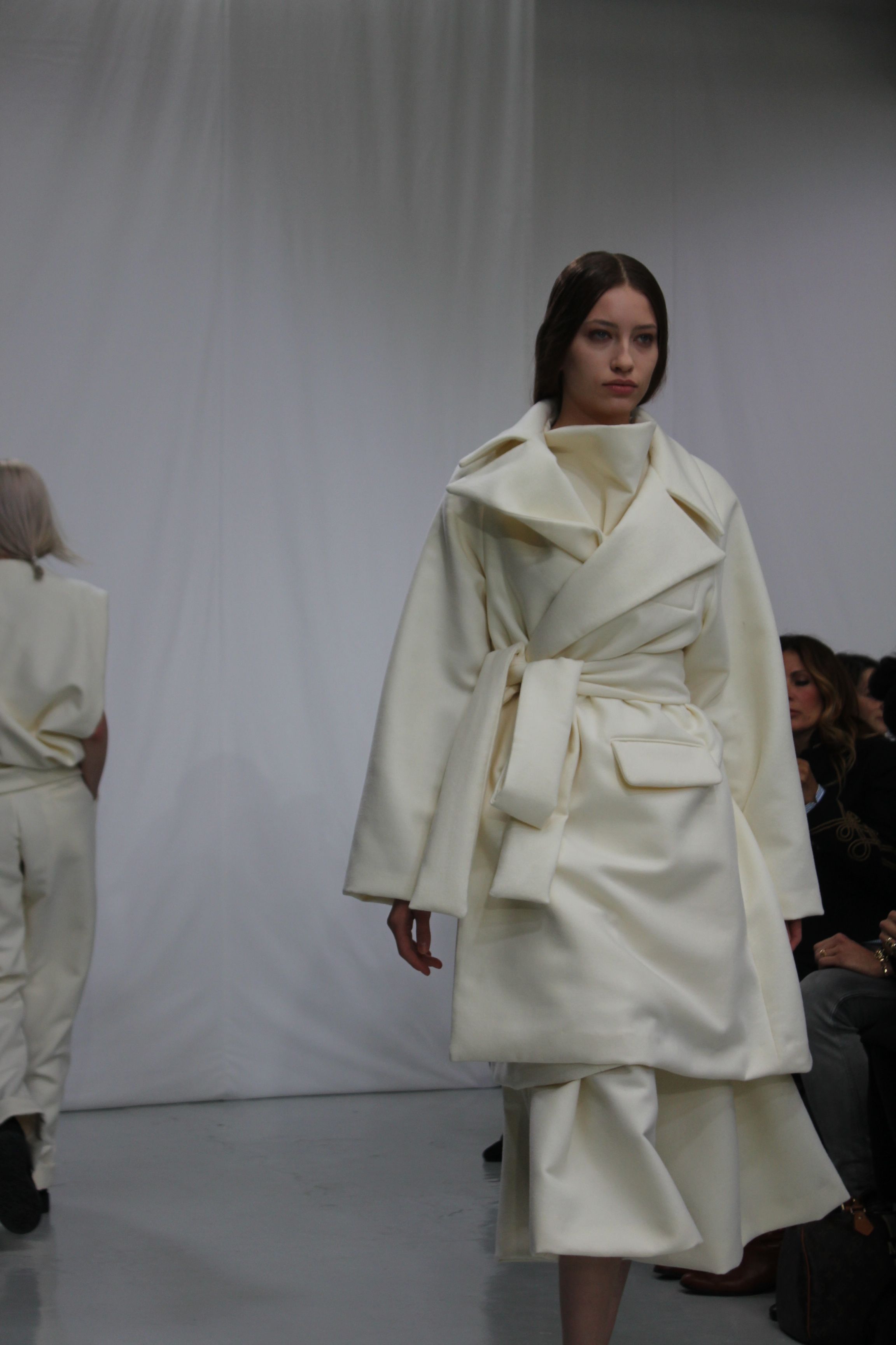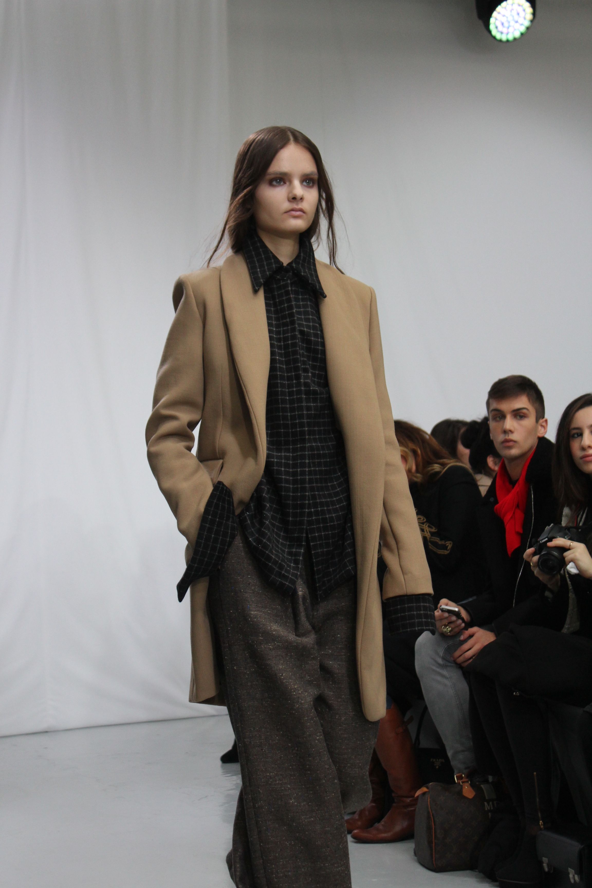 Moon Young Hee présentait une collection automne hiver 2014 aux silhouettes amples, à la fluidité assumée. Les tons sont austères noir, blancs ou beiges. Origamis de matières, superpositions, amplitude des tissus, superpositions de matières, pantalons oversize. Il ressort un sensation de vêtements cocooning, confortables pour une collection masculin féminin.