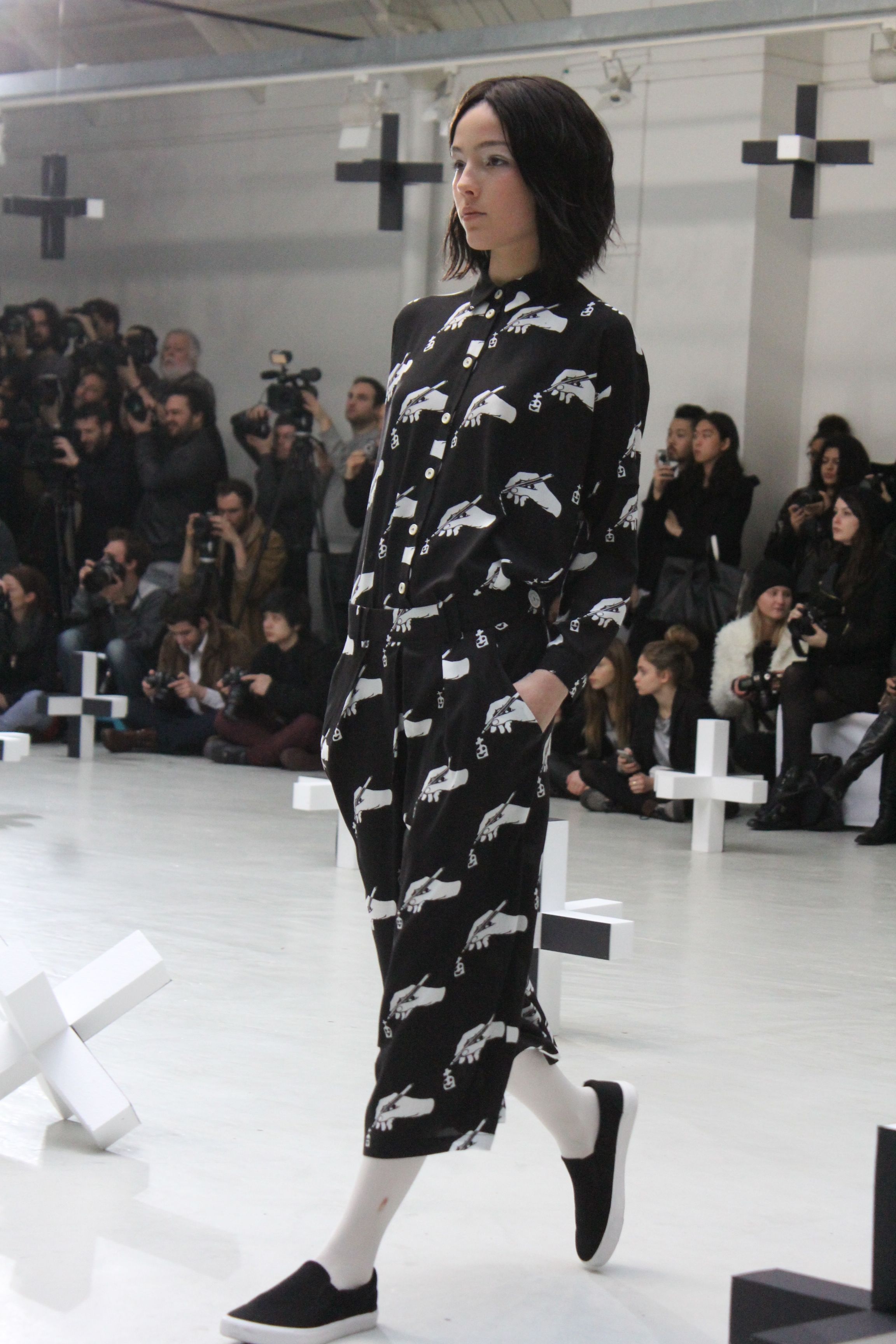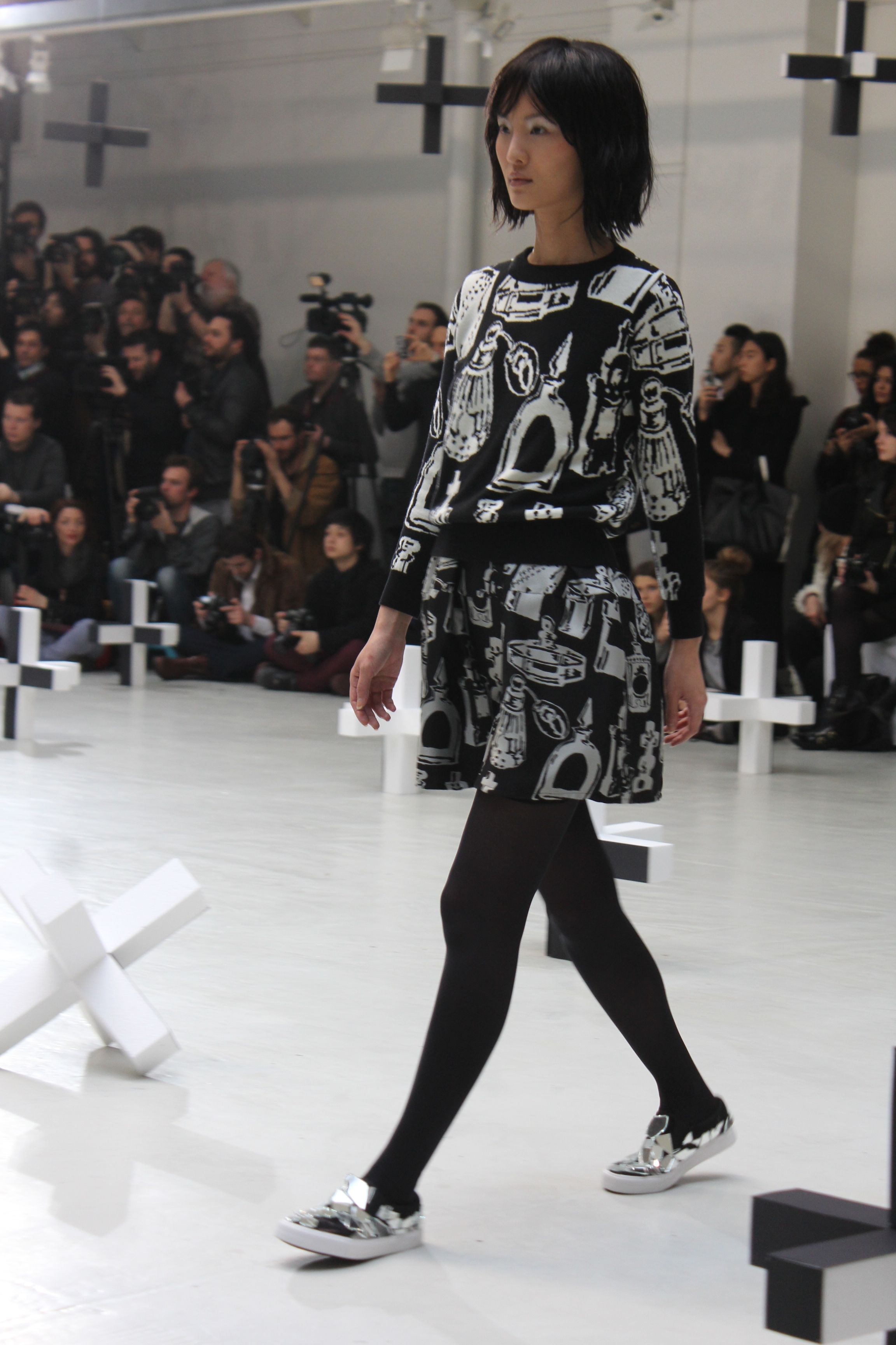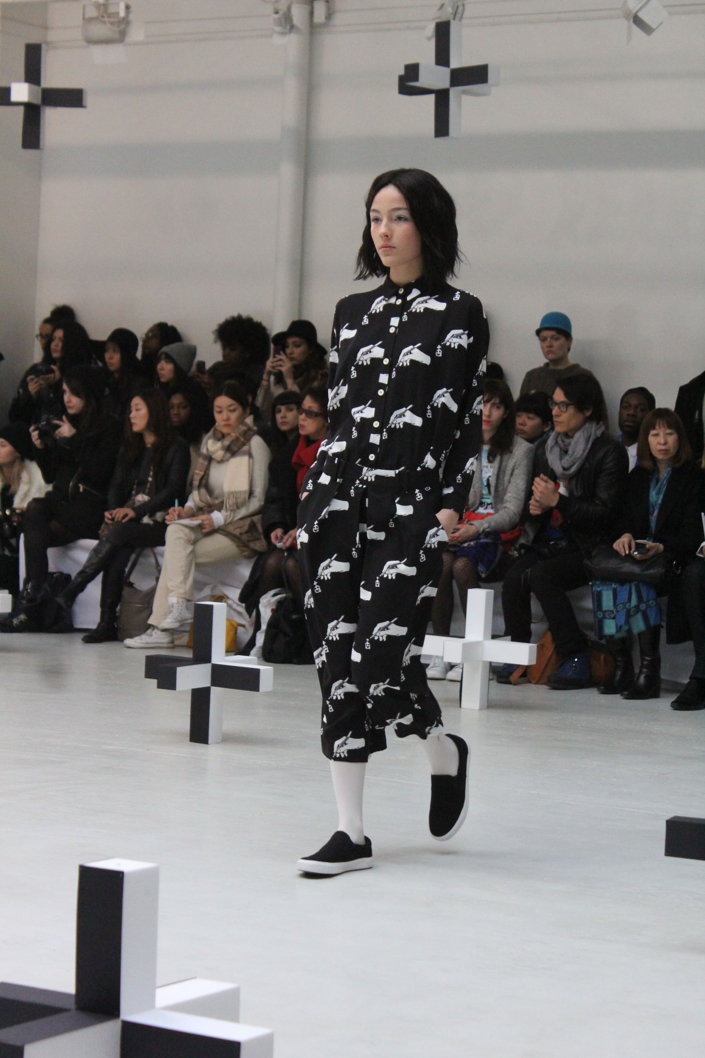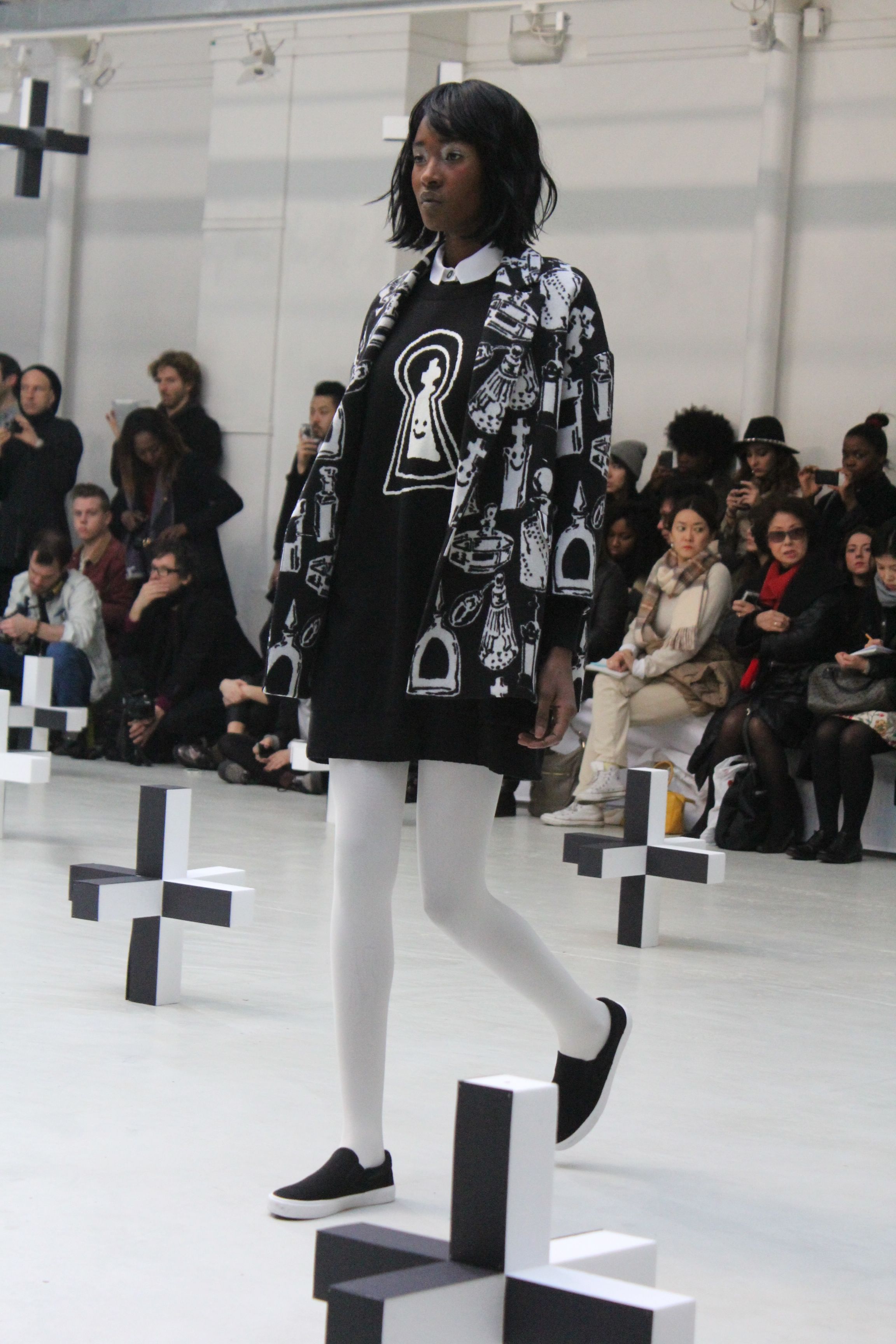 Revisitant un cimetière habité de fantômes vêtus de leur habituel noir et blanc, on retrouve un univers ludique où les imprimés ou motifs sont pixelisés. On retrouve le téléphone, les pierres tombales, bouches, flacons de parfums et le classique fantôme.