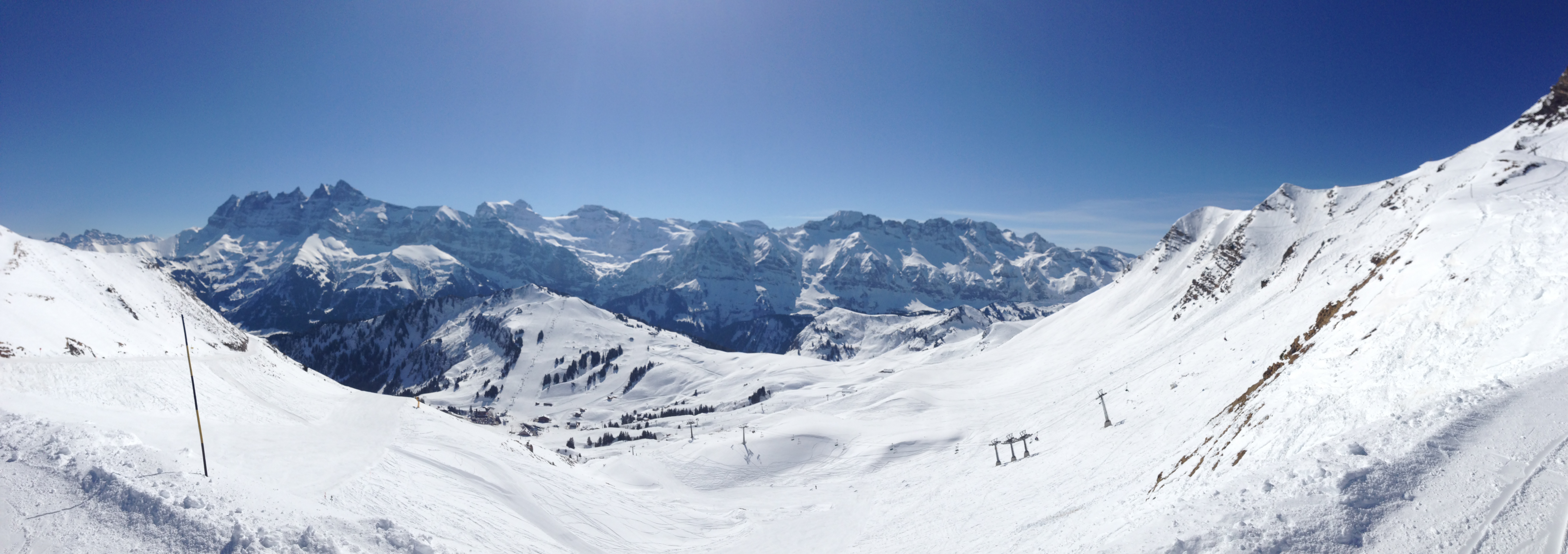Je vous passe nos excellents repas et agréables soirées… pour revenir à un sujet essentiel, le ski. Grâce à l’Office du Tourisme d’Avoriaz 1800, mes potes et moi avons eu la chance de découvrir le domaine des Portes du Soleil autrement, grâce à un guide privé. Déjà, les pistes sont au pied de l’Amara, ce qui facilite grandement le démarrage matinal avec un départ quasi direct depuis la ski-room.