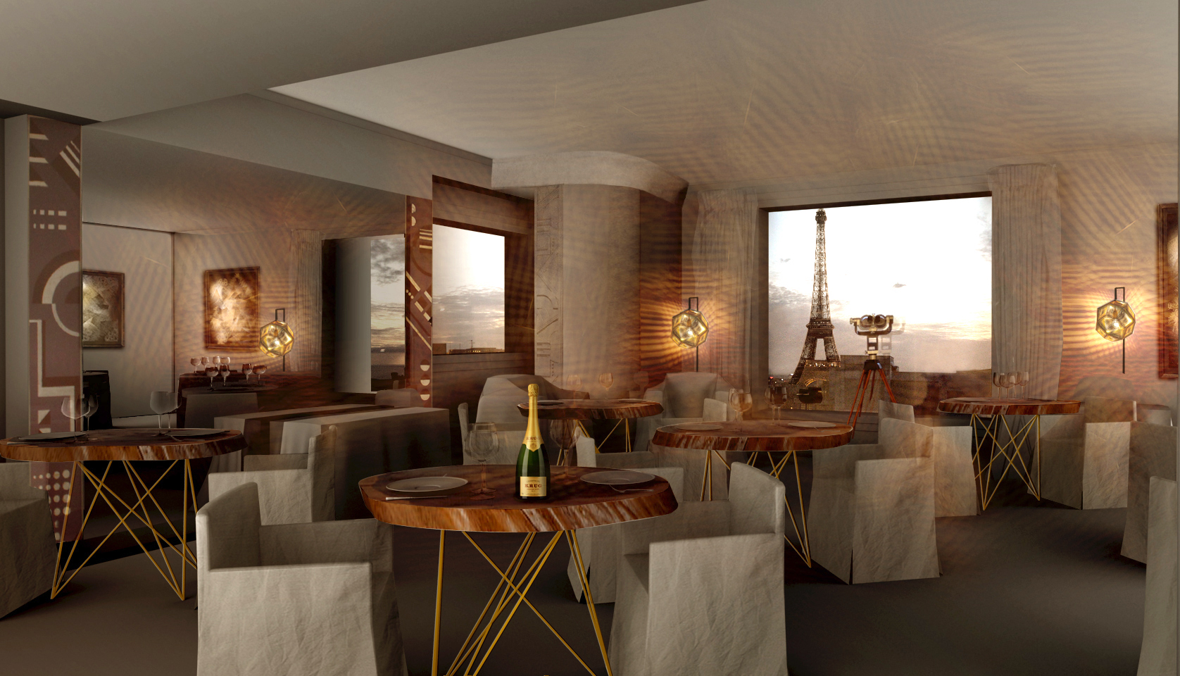 Lieu exceptionnel et éphémère, Krug en Capitale, installé dans la suite Eiffel au 8ème étage du Plaza Athénée ne peut accueillir plus de 14 personnes par session de dîner.