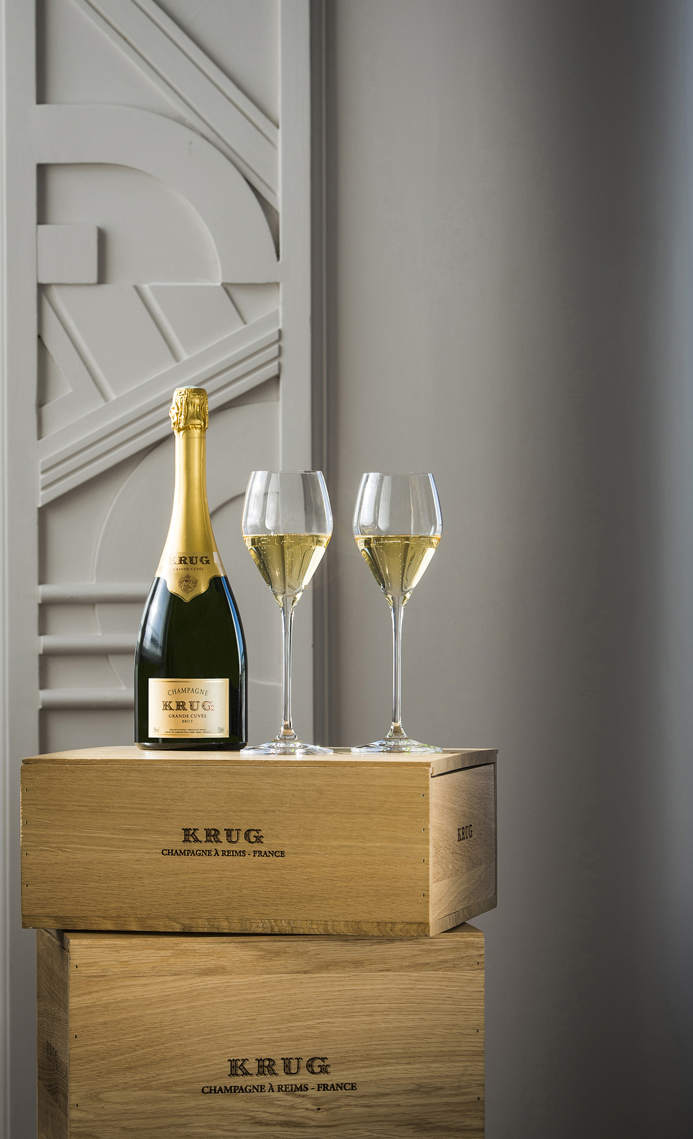 « J’aime beaucoup les allégories musicales utilisées par Krug pour décrire son Champagne. Du soliste virtuose pour dépeindre le Clos du Mesnil jusqu’à l’orchestre philharmonique pour la Grande Cuvée, la richesse des arômes et la finesse des bulles sont autant de notes qui ponctuent la symphonie Krug. La musique a donc été le point de départ de l’univers que j’ai créé pour Krug en Capitale.» cite l’artiste.