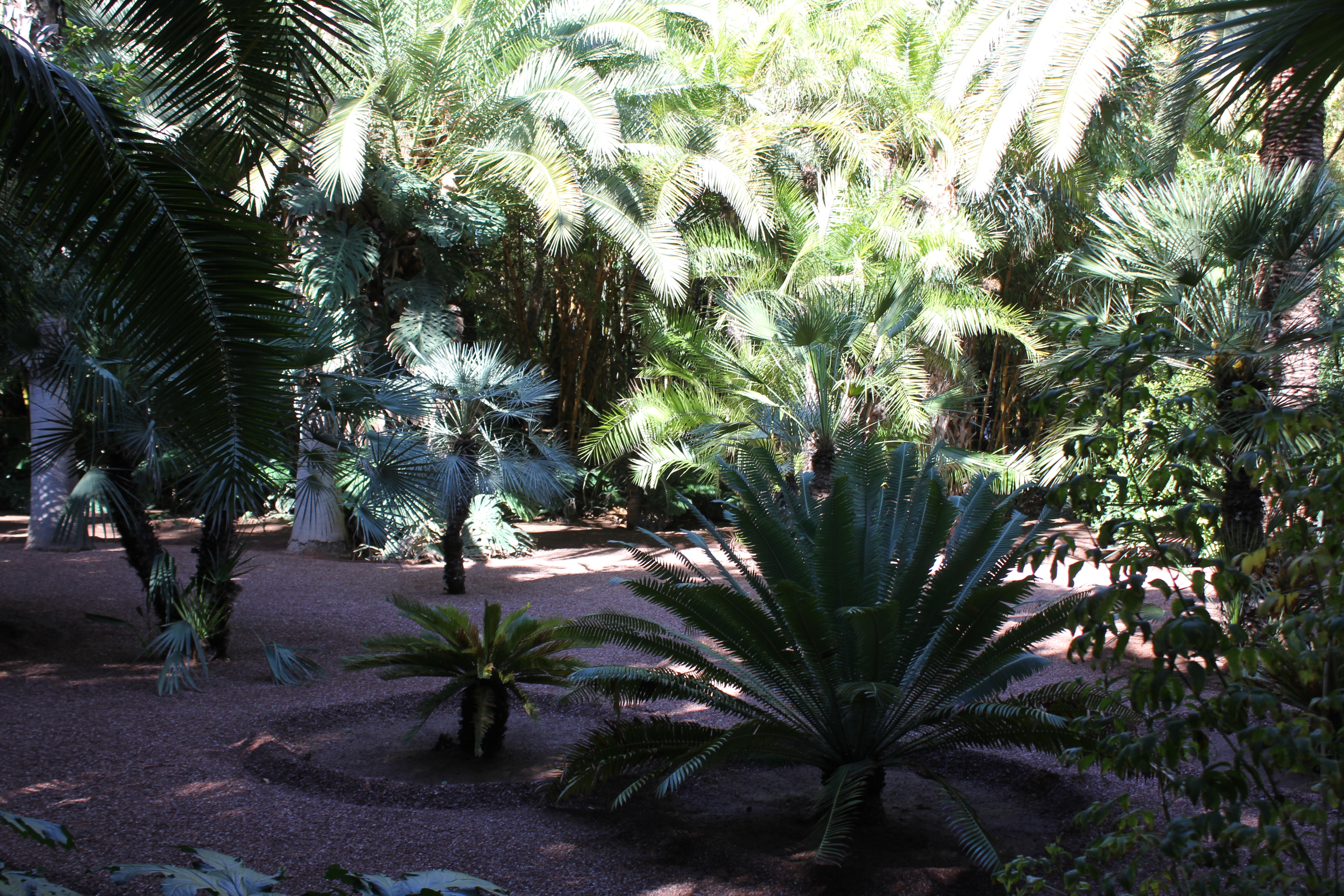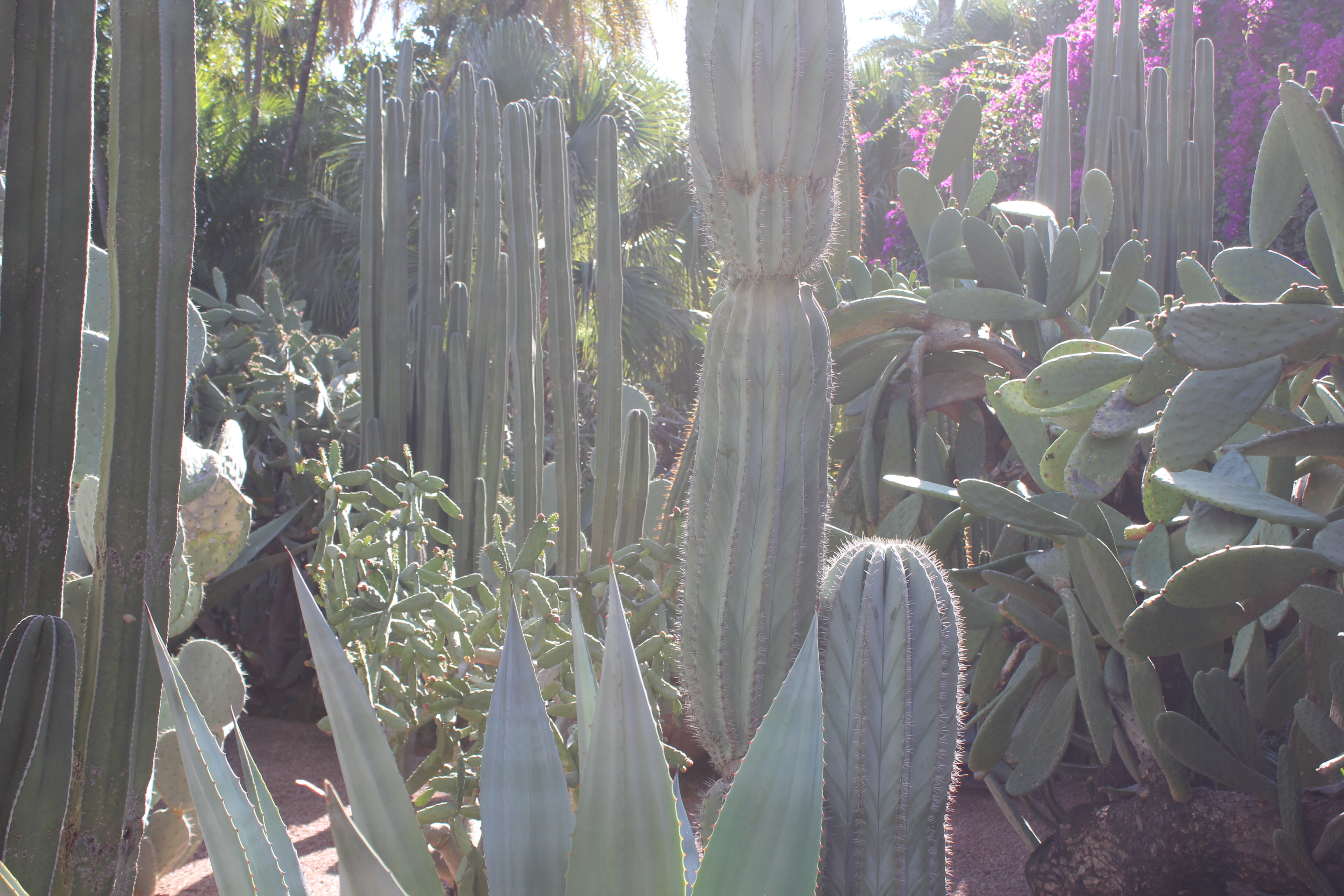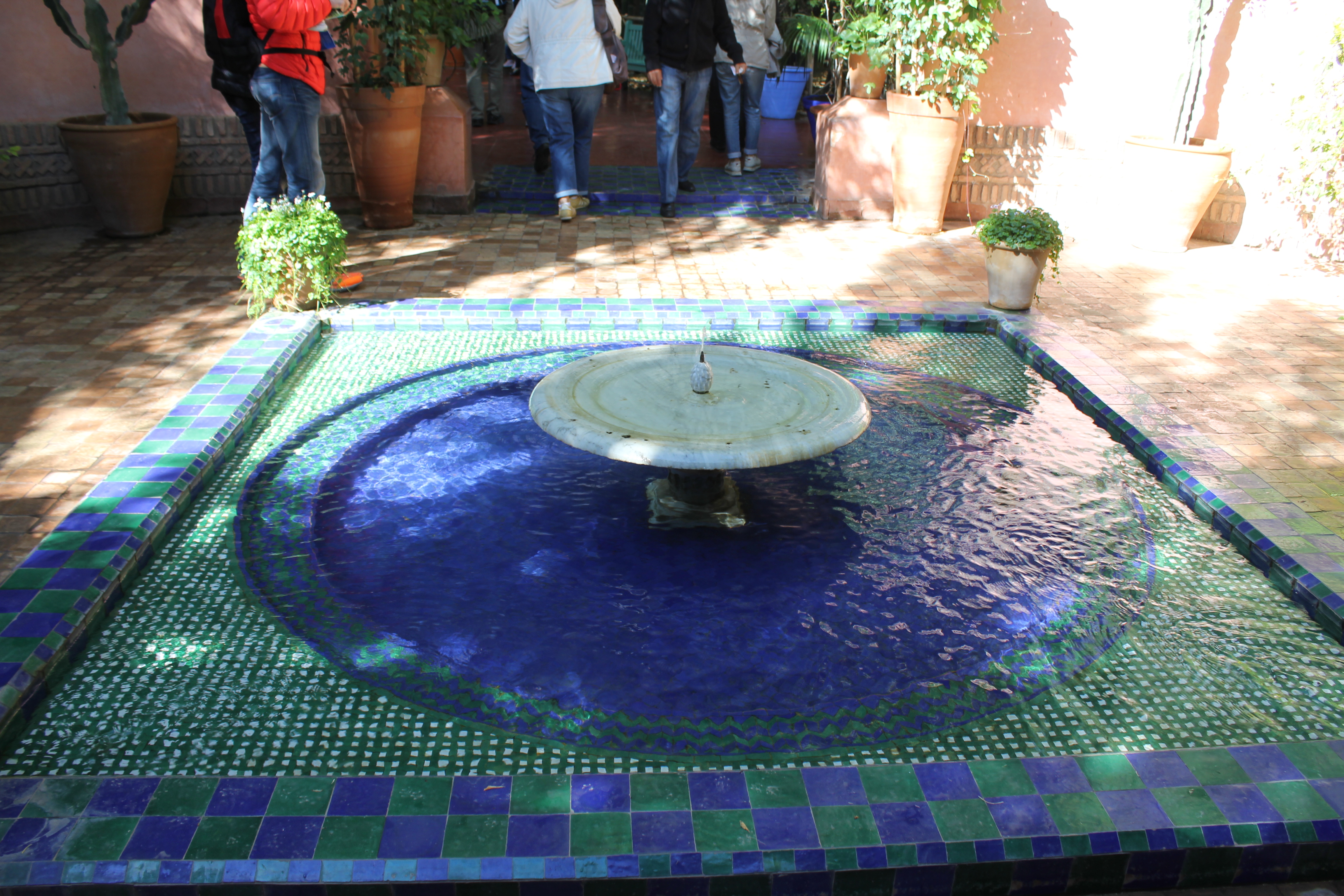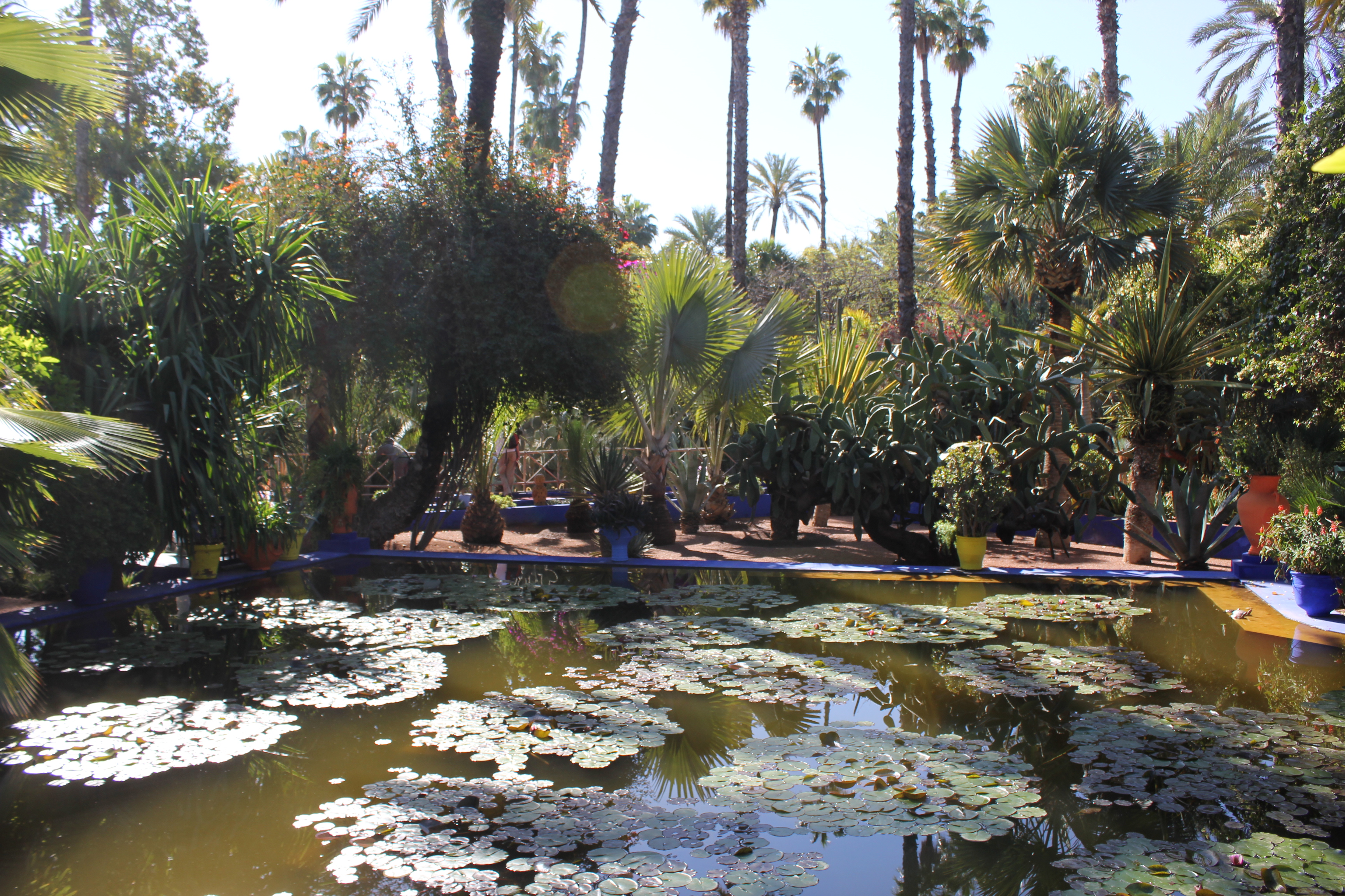 Ce jardin botanique a été créé par l’artiste français Jacques Majorelle dans les années 1930. Inspiré par les couleurs du carrelage des maisons marocaines, il créa une nuance de bleu intense et lumineuse et peignit sa villa, les murs de son jardin, les fontaines, les pots de fleurs avec ce nouveau bleu Majorelle. Après sa mort, la maison fût abandonnée et restaurée en 1980 par Yves Saint Laurent. Le jardin dispose à présent de plantes luxuriantes et exotiques.