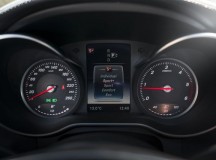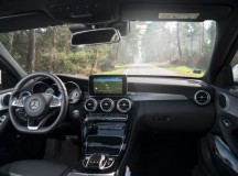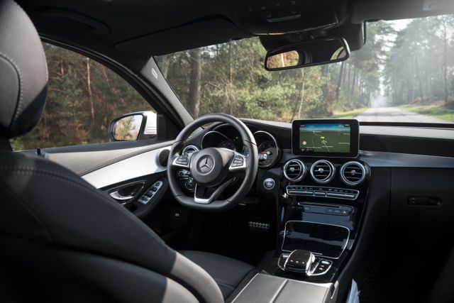 Autre nouveauté sur la Classe C : un affichage tête haute. Comme dans un jet privé, celui-ci affiche les informations clés au niveau du pare-brise, dans le champ de vision direct du conducteur et facilite ainsi leur lisibilité tout en évitant que ce dernier ne détourne son attention du trafic. Le système informe sur la vitesse, les limitations de vitesse, les instructions de navigation et transmet des messages de DISTRONIC.