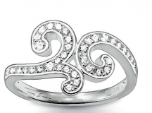 Les nombreuses bagues et les boucles d’oreilles longues brillantes, élégantes et fantaisistes en zircons blancs et noirs captent les rayons de soleil de la Croisette.
