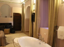 Les quatre niveaux du Riad ont été totalement repensés par l’actuelle propriétaire, pour créer la rupture et accroître ainsi la sensation d’espace. On se croirait parfois dans un boutique hôtel tant tout est mignon et charmant, l’ambiance orientale en plus. A l’origine, le Riad comportait 9 chambres réparties en 2 étages aujourd’hui réunis en un seul niveau autour du patio ombragé. De la plus grande suite de 60 m2 à la vaste chambre de 30 m2, les volumes sont généreux, l’architecture est simple et les plafonds rehaussés