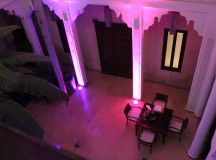 Le rez-de-chaussée, dans un esprit plus tendance et espace lounge, illuminé le soir de teintes mauves, procure un sentiment d’harmonie et de bien-être… de la salle à manger où vous pourrez apprécier la quintessence de la cuisine locale au salon intime et chaleureux ouvert sur le spacieux patio rythmé par le gargouillis de sa fontaine, où l’on vous servira un verre de thé à la menthe accompagné des meilleures pâtisseries marocaines…