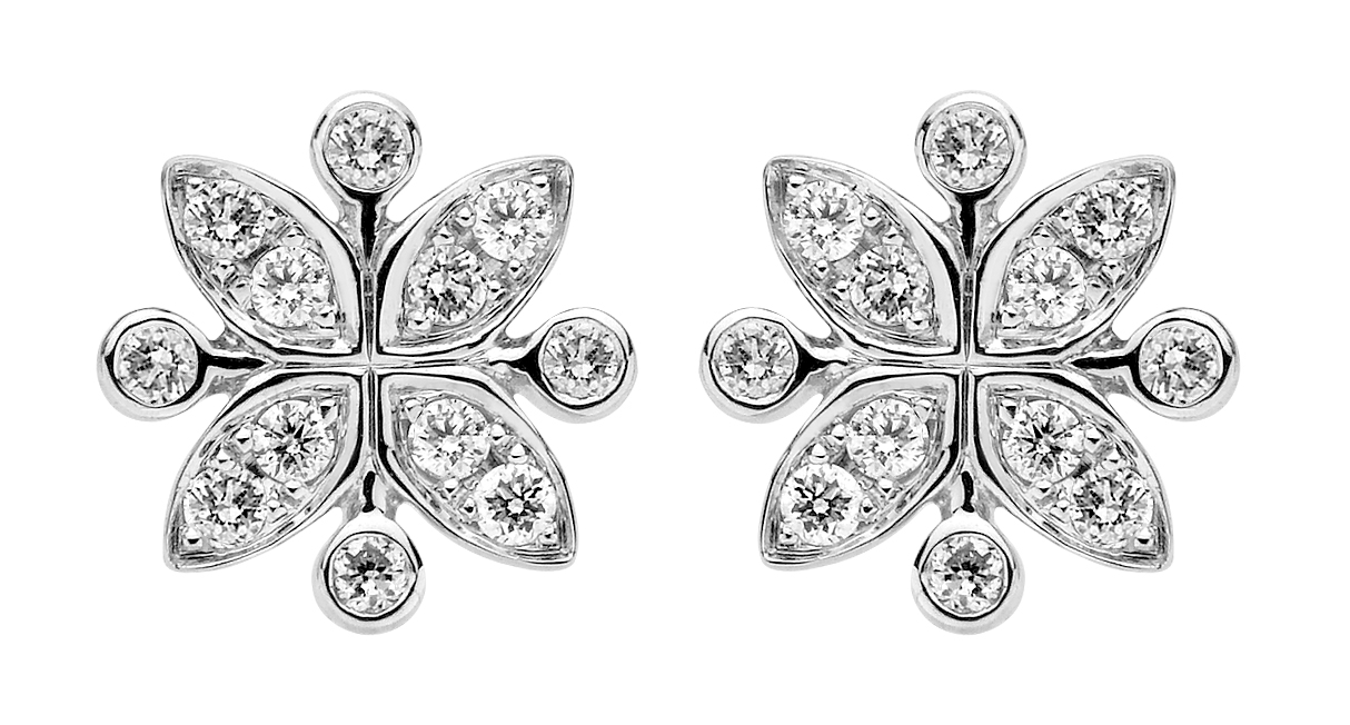 Didier Guérin lance une nouvelle collection au doux nom de « Les Fleurs Diamants de Rosée » en référence à leur motif iconique. La collection se décline en 18 carats rose, jaune ou gris serti de 12 diamants blancs et bruns. Cette collection se veut poétique et magique.