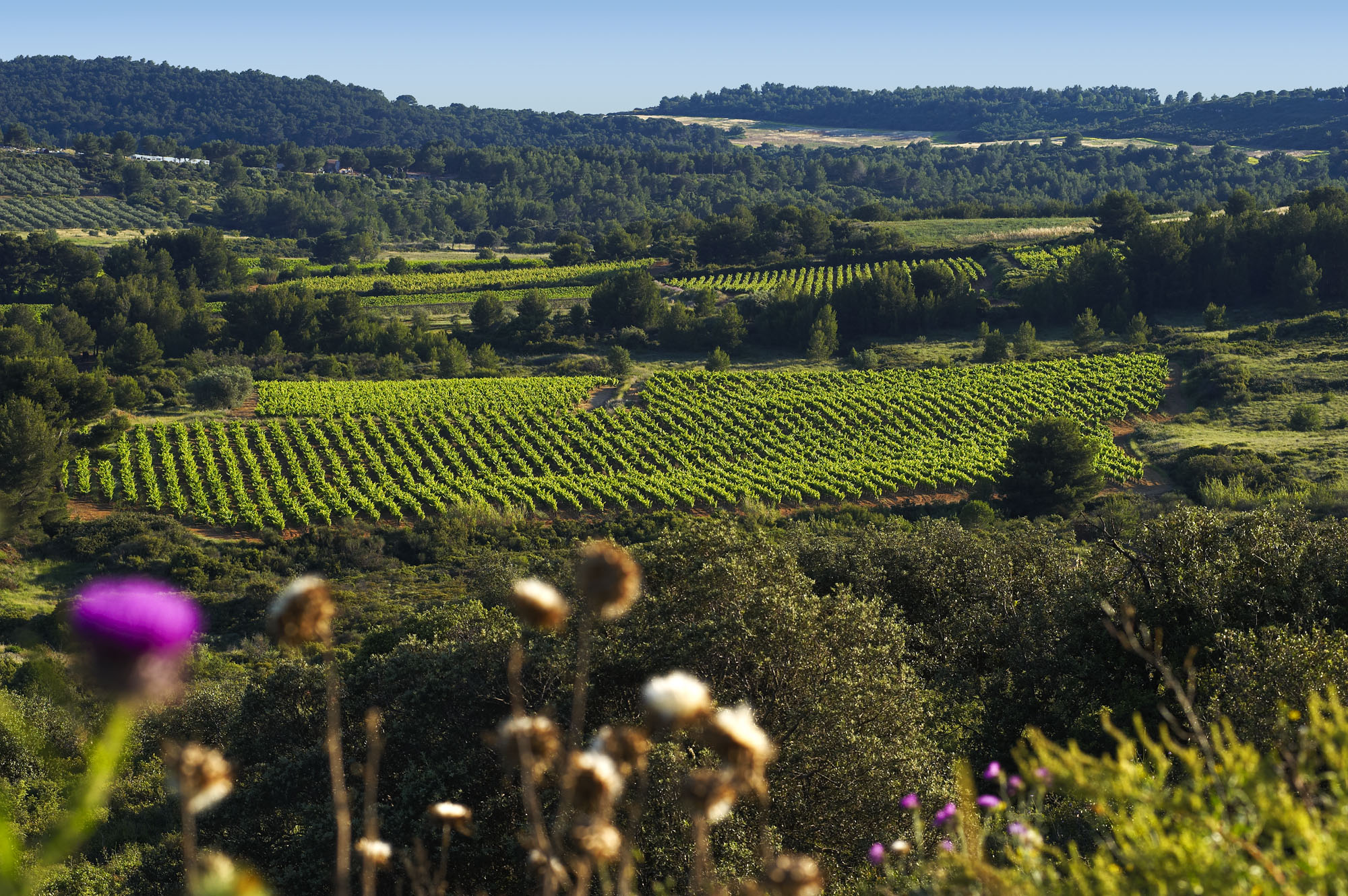 Situé à l’intérieur des terres dans un paysage typique de la garrigue qui embaume le thym et le romarin, le vignoble entre 50 et 250 mètres d’altitude, est soumis à un climat à la fois chaud et sec avec des nuits fraîches. Des conditions idéale pour des vins charnus et amples, aux arômes de fruits mûrs, aux notes épicées avec une très belle longueur en bouche.