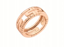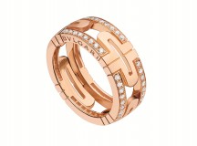 Cette saison, la ligne s’enrichit de nouvelles déclinaisons de bagues et colliers en or rose et blanc. Le motif décoratif se retrouve sur certaines versions pavé de diamants, ce qui accentue son esthétique géométrique. Le logo signature Bulgari subtilement gravé souligne le caractère sophistiqué de ces pièces.