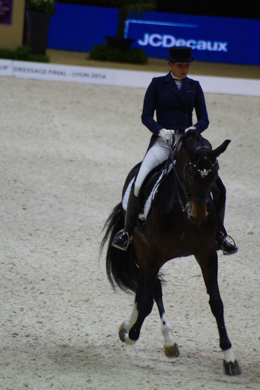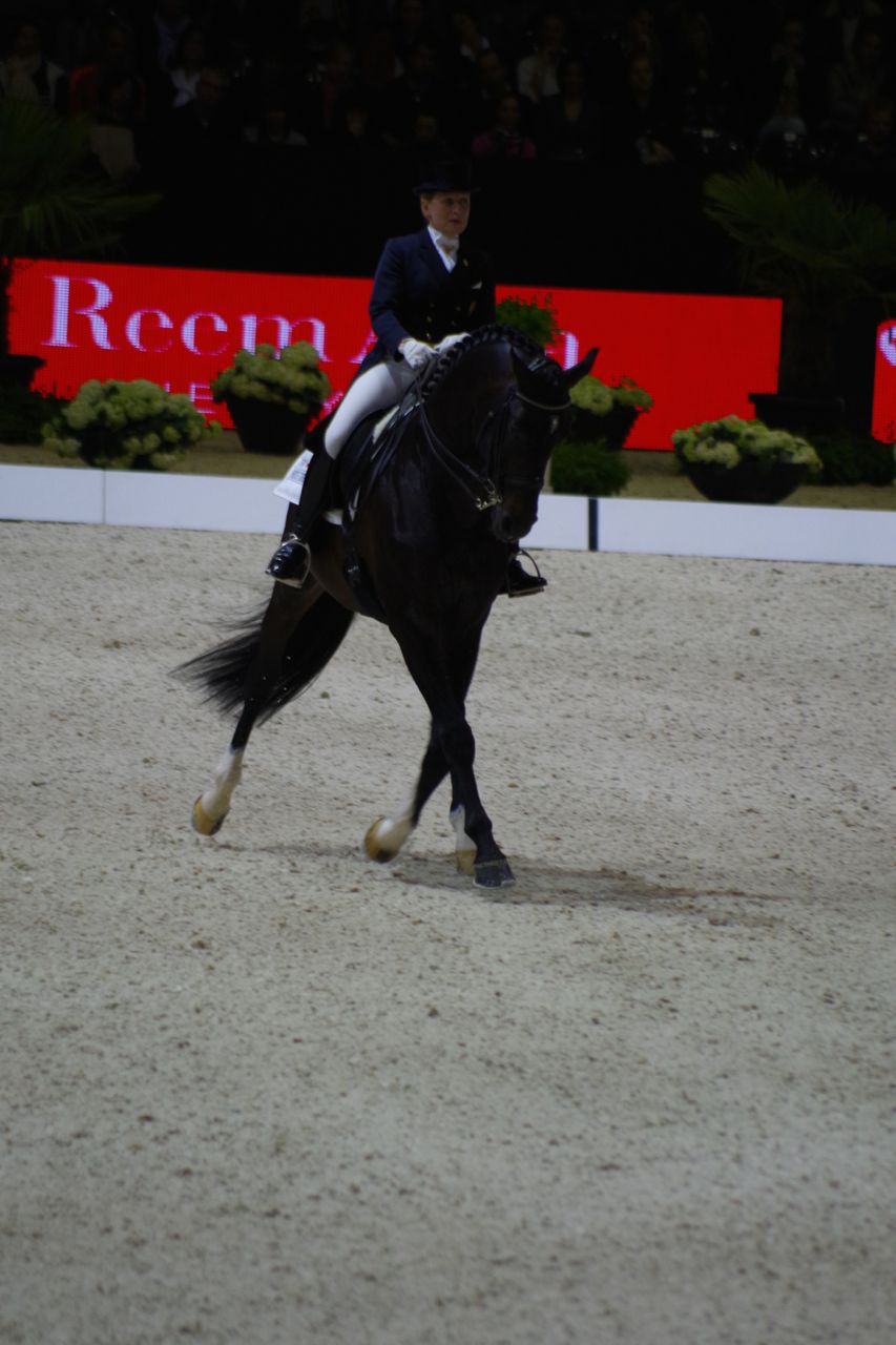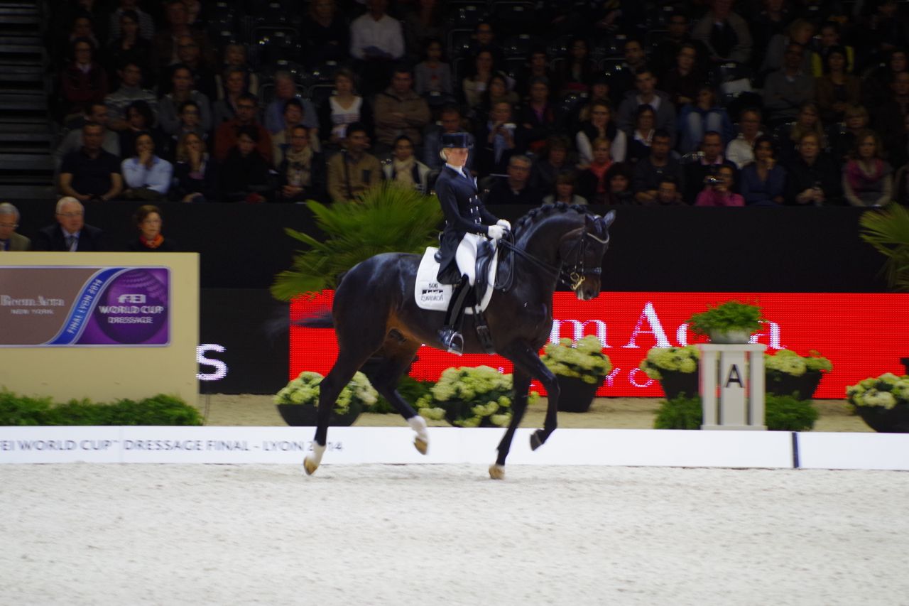 Quel discipline fascinante ! Grâce à la création de la Coupe du Monde, le dressage a pu s’exprimer sur un modèle accessible au grand public, la reprise libre en musique (Grand Prix Freestyle) : moments d’émotions que de voir piaffer, passager, pirouetter ou changer de pied au galop ces athlètes en harmonie sur des compositions musicales spécialement adaptées à leur cadence. L’incroyable maitrise des montures par les cavaliers impose le respect, la concentration est le maître mot. Et c’est dans des arènes pleines mais au public silencieux et tendu que les candidats aux titres entament des véritables chorégraphie équestres. Le spectacle est de toute beauté, la précision des gestes, la grâce des couples, tout est là pour susciter l’émotion. La gagnante Charlotte Dujardin a ravi le public avec une prestation exceptionnelle de beauté.